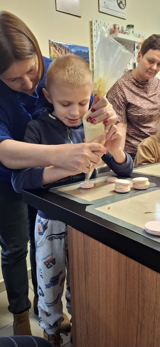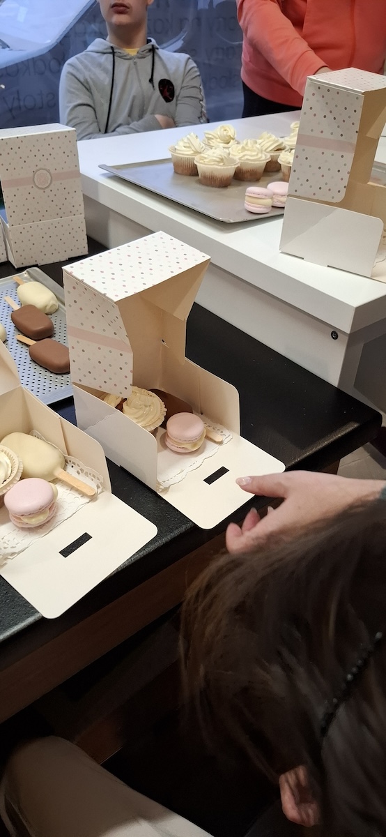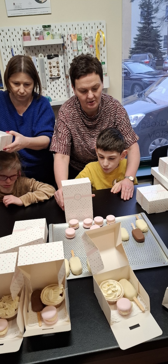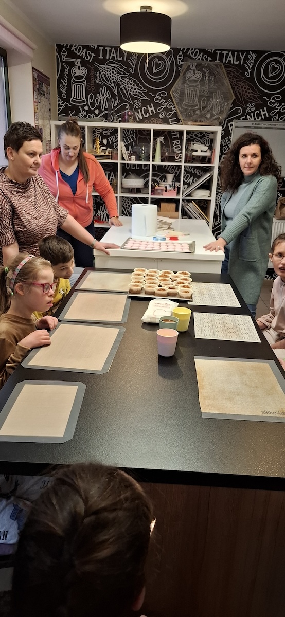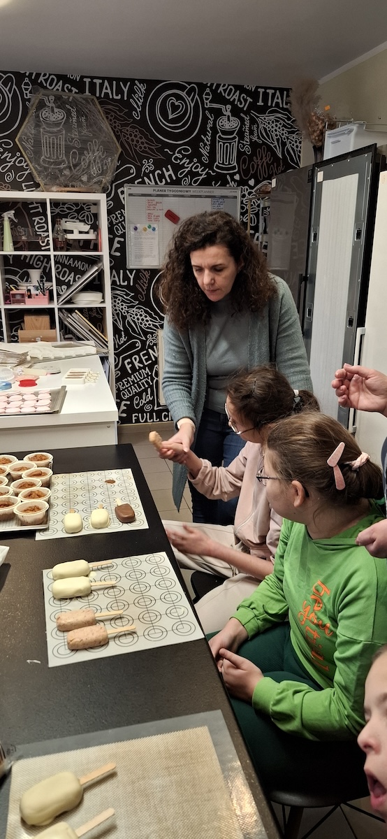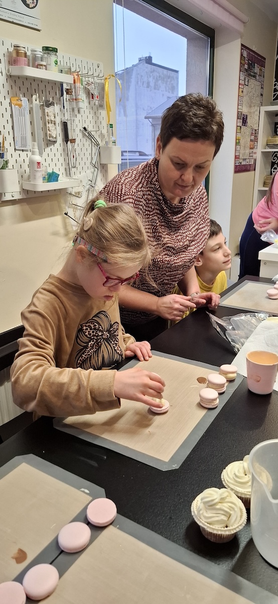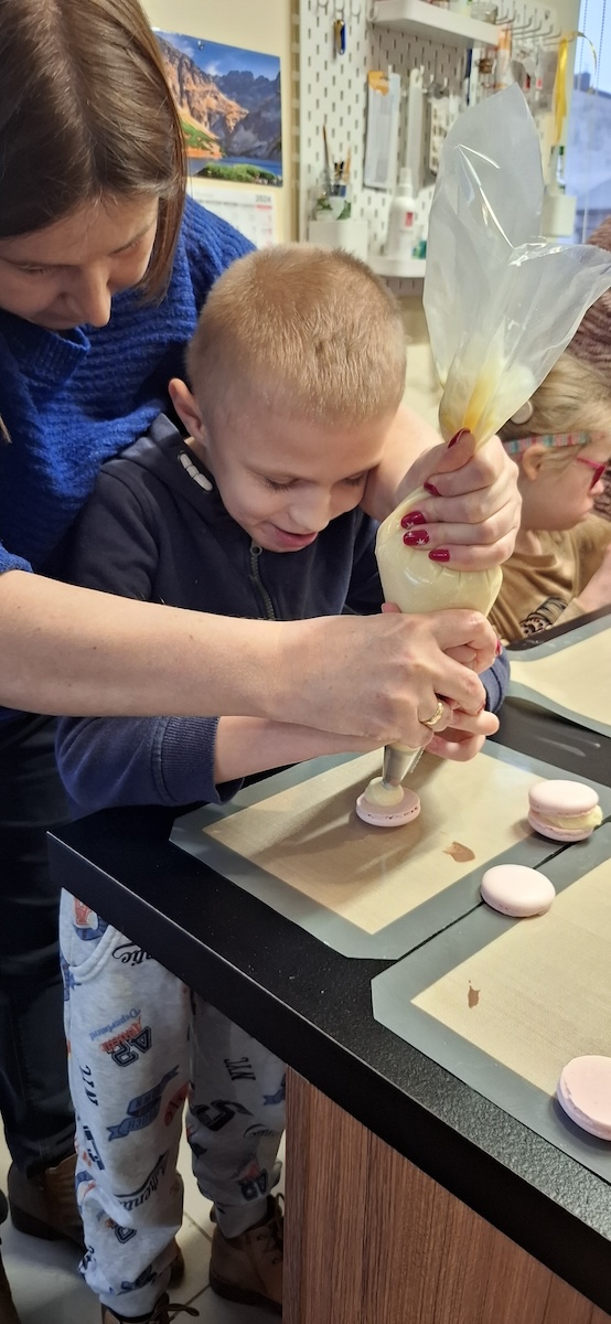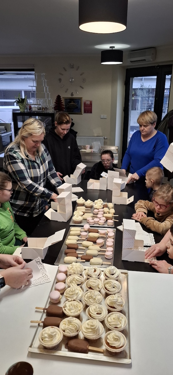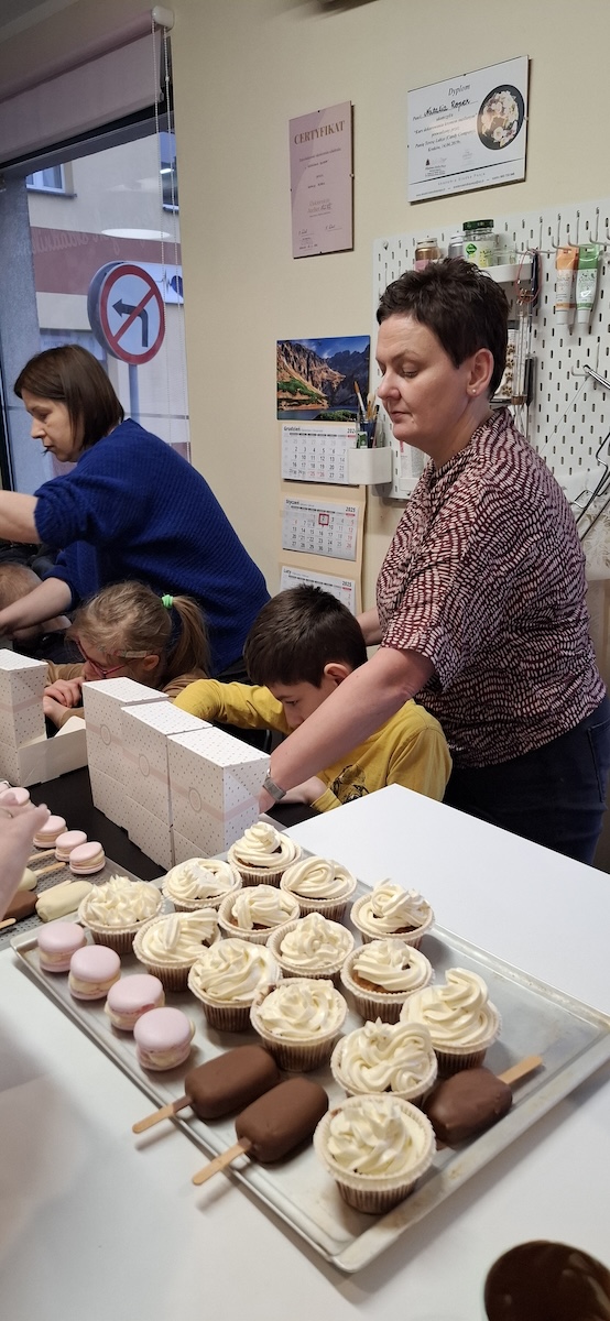 Uczniowie naszej szkoły wraz z nauczycielami udali się do cukierni „Projekt Ciacho By Natalia” na warsztaty cukiernicze. Warsztaty rozpoczęły się od serdecznego powitania wszystkich uczestników. Nasza prowadząca, doświadczona cukierniczka, opowiedziała o planie zajęć oraz o tym, jakie słodkości będą przygotowywane: babeczki, ciepłe lody i makaroniki. Dzieci były bardzo podekscytowane i pełne energii, takie warsztaty to doskonała okazja, aby rozwijać pasje i umiejętności kulinarne uczniów. To nie tylko nauka, ale także świetna zabawa, która sprzyja integracji i rozwijaniu kreatywności. Każde dziecko miało szansę na odkrycie swojego talentu w kuchni!