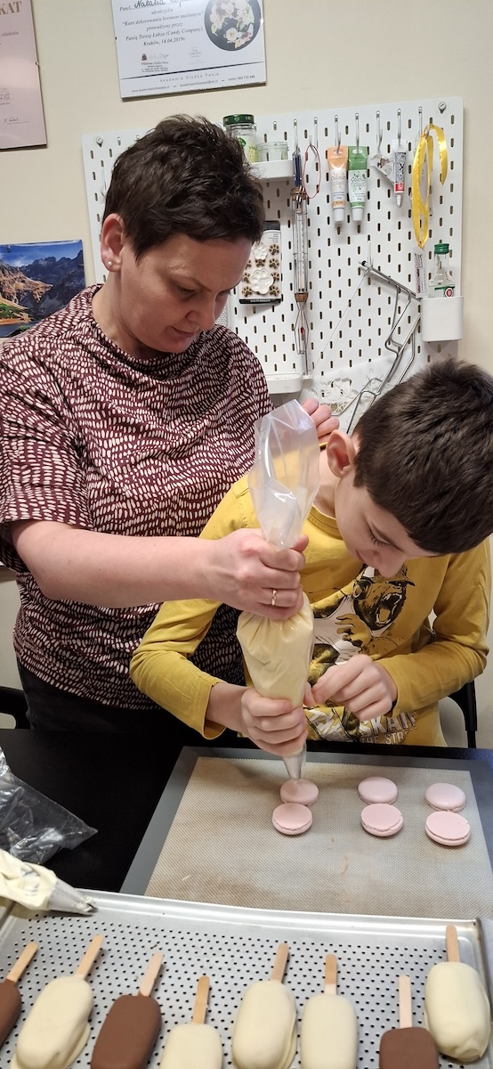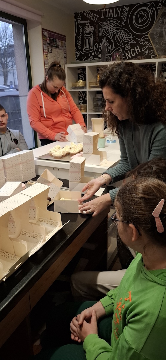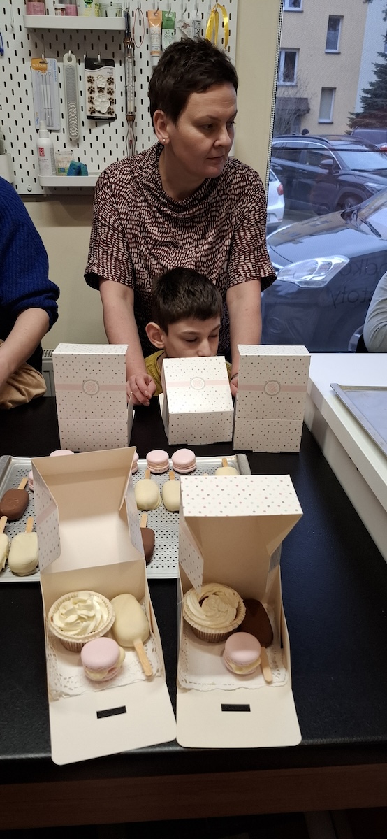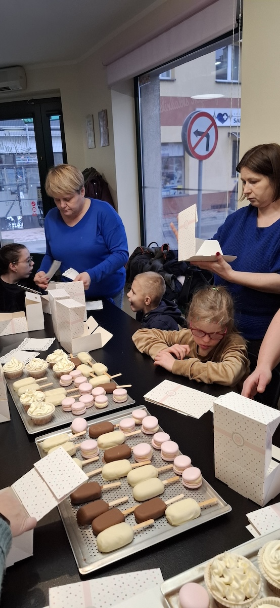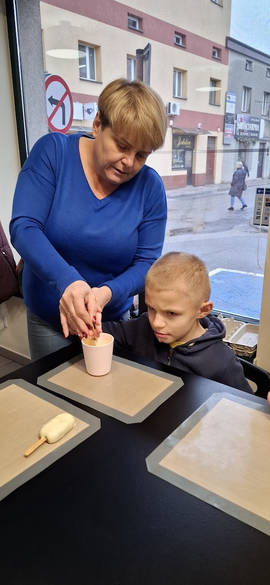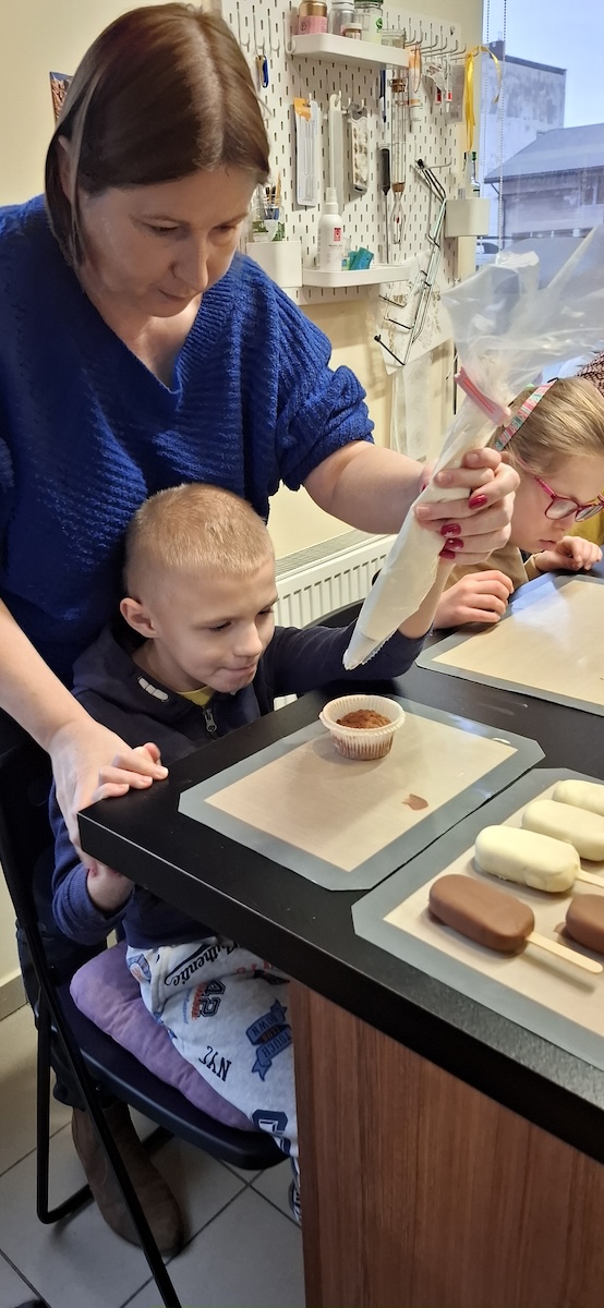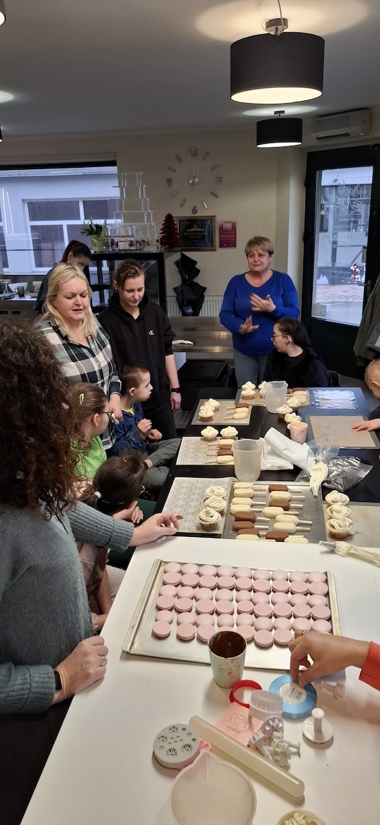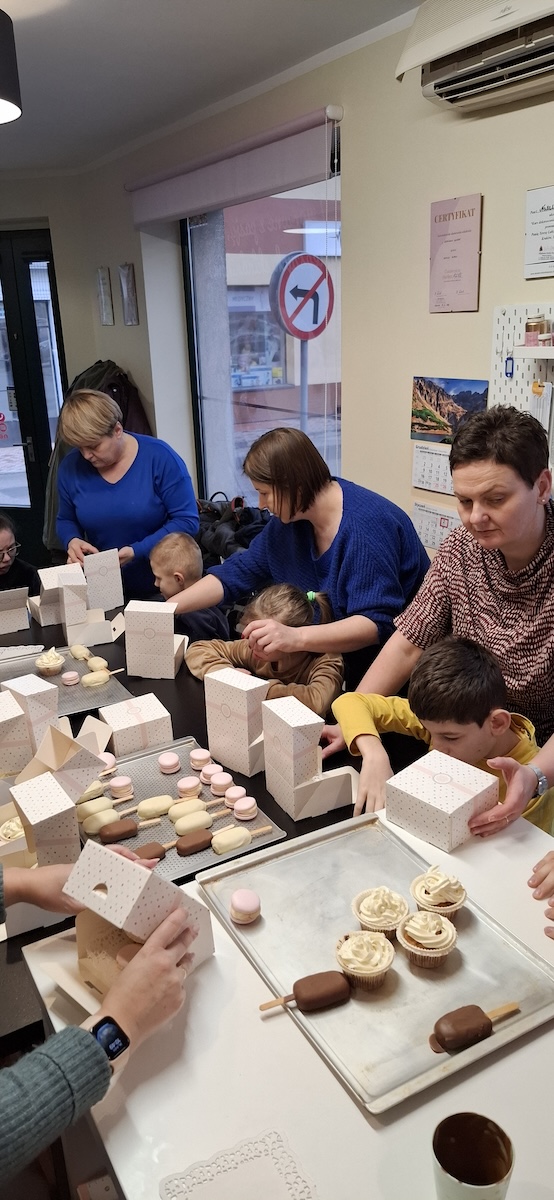 Uczniowie naszej szkoły wraz z nauczycielami udali się do cukierni „Projekt Ciacho By Natalia” na warsztaty cukiernicze. Warsztaty rozpoczęły się od serdecznego powitania wszystkich uczestników. Nasza prowadząca, doświadczona cukierniczka, opowiedziała o planie zajęć oraz o tym, jakie słodkości będą przygotowywane: babeczki, ciepłe lody i makaroniki. Dzieci były bardzo podekscytowane i pełne energii, takie warsztaty to doskonała okazja, aby rozwijać pasje i umiejętności kulinarne uczniów. To nie tylko nauka, ale także świetna zabawa, która sprzyja integracji i rozwijaniu kreatywności. Każde dziecko miało szansę na odkrycie swojego talentu w kuchni!