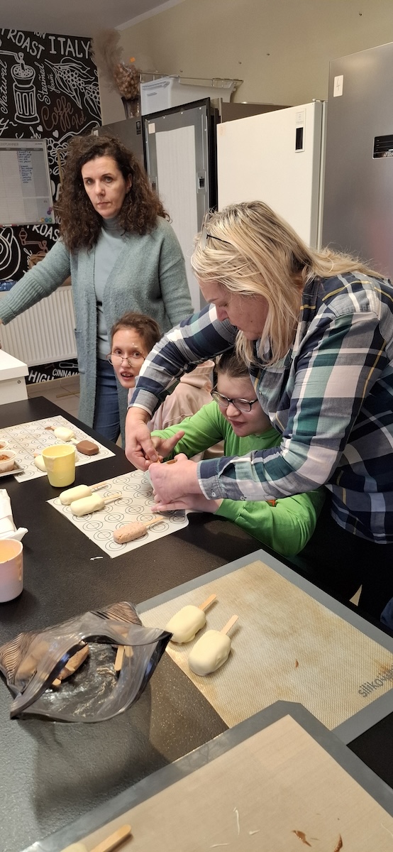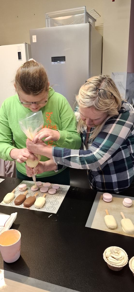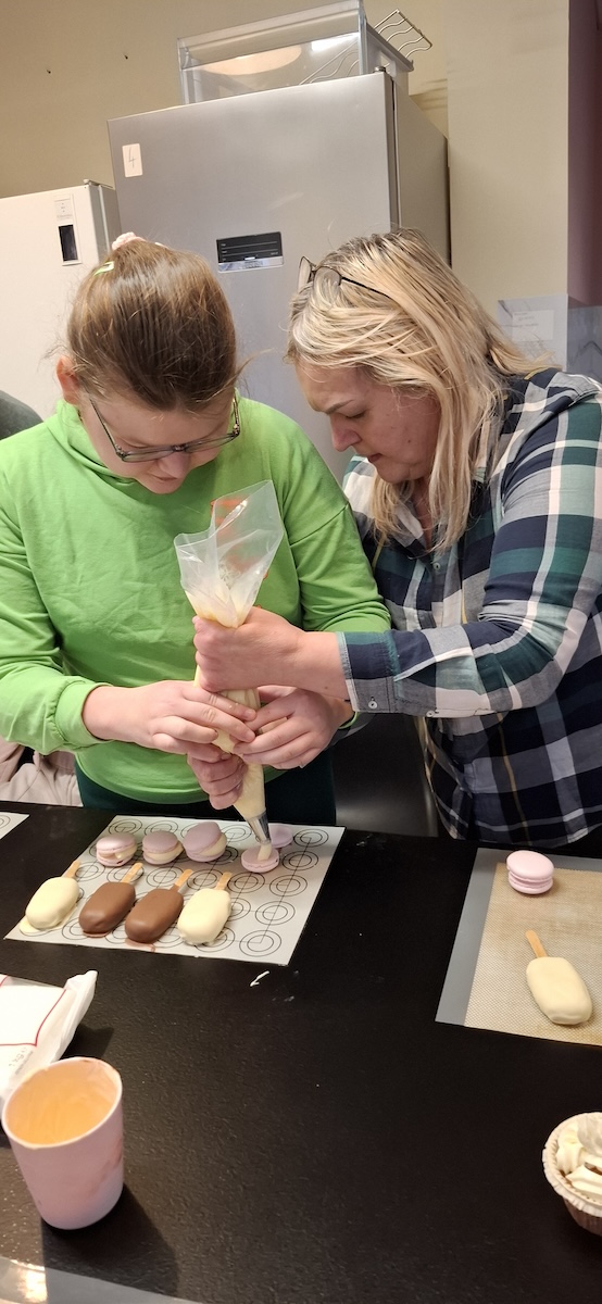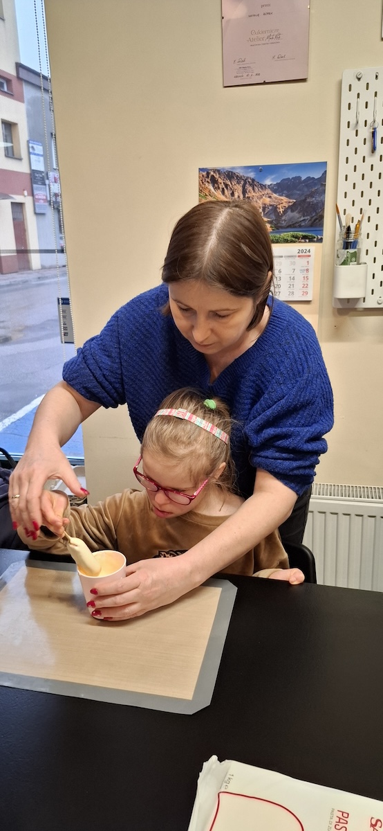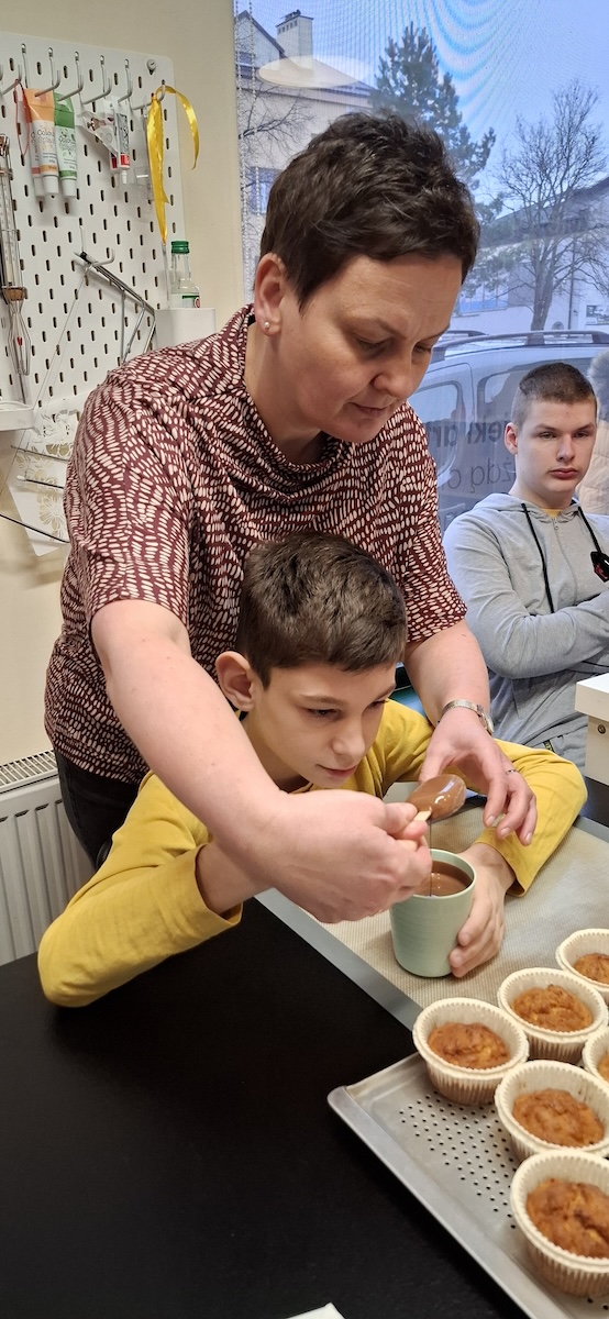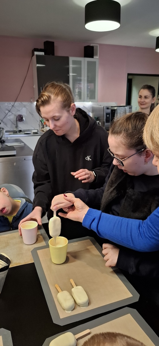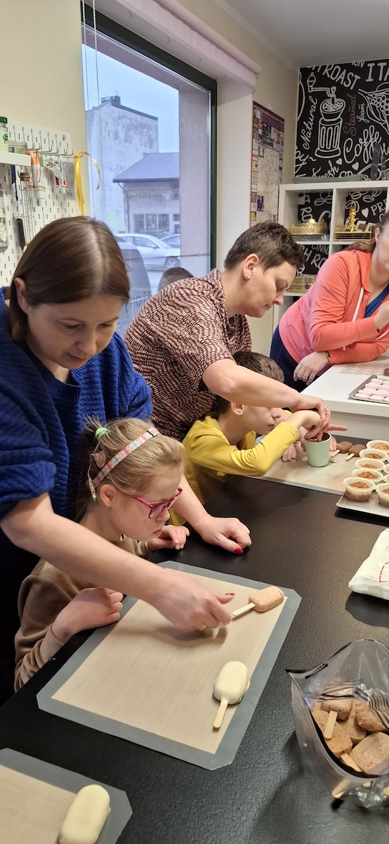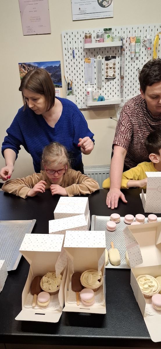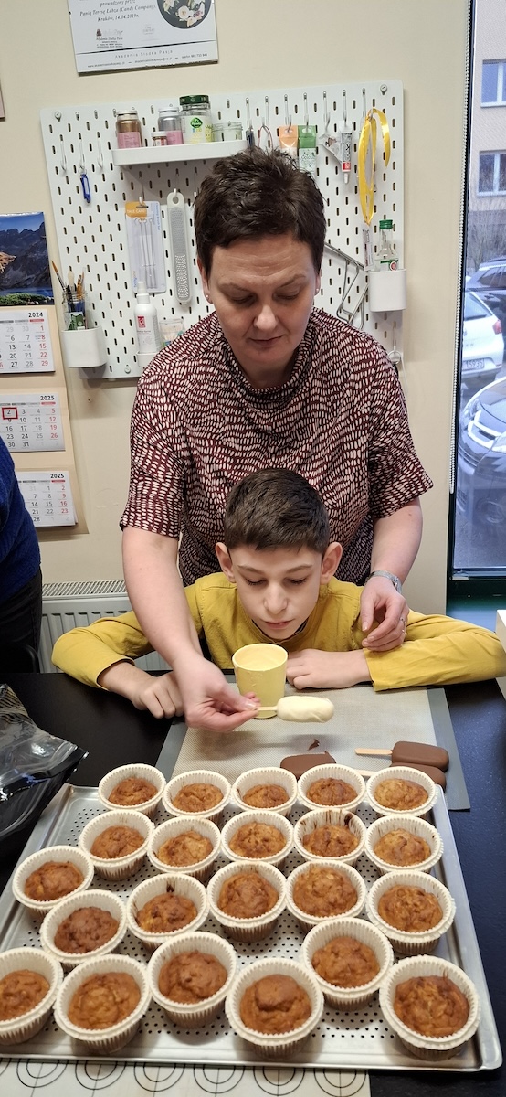 Uczniowie naszej szkoły wraz z nauczycielami udali się do cukierni „Projekt Ciacho By Natalia” na warsztaty cukiernicze. Warsztaty rozpoczęły się od serdecznego powitania wszystkich uczestników. Nasza prowadząca, doświadczona cukierniczka, opowiedziała o planie zajęć oraz o tym, jakie słodkości będą przygotowywane: babeczki, ciepłe lody i makaroniki. Dzieci były bardzo podekscytowane i pełne energii, takie warsztaty to doskonała okazja, aby rozwijać pasje i umiejętności kulinarne uczniów. To nie tylko nauka, ale także świetna zabawa, która sprzyja integracji i rozwijaniu kreatywności. Każde dziecko miało szansę na odkrycie swojego talentu w kuchni!