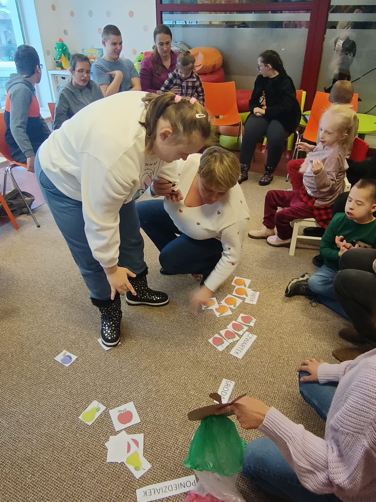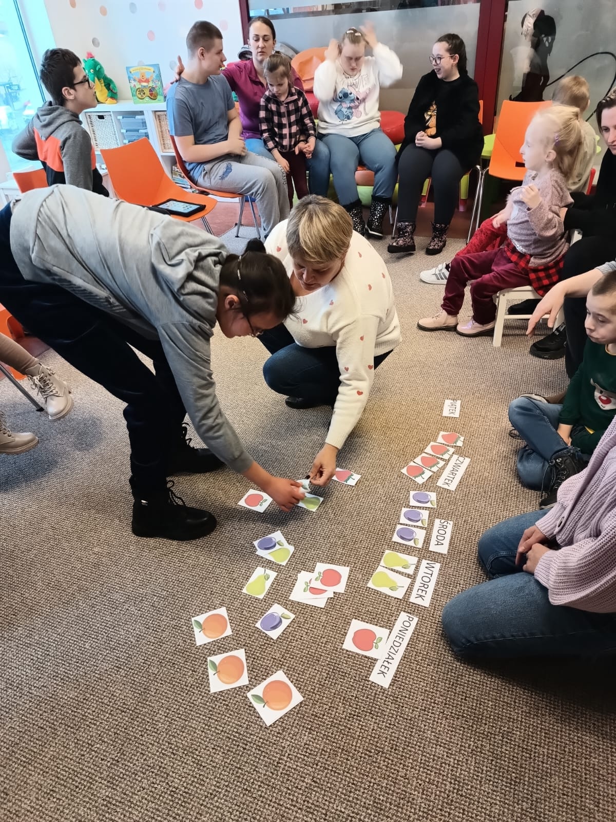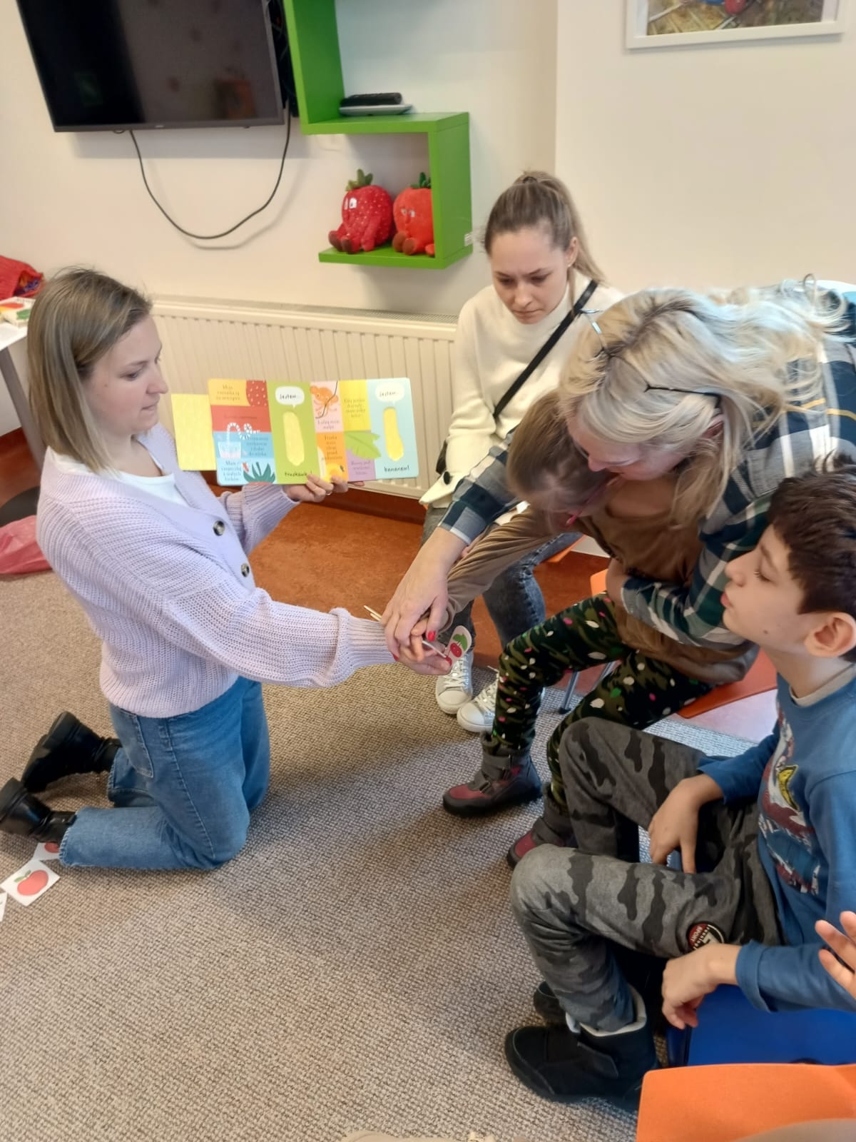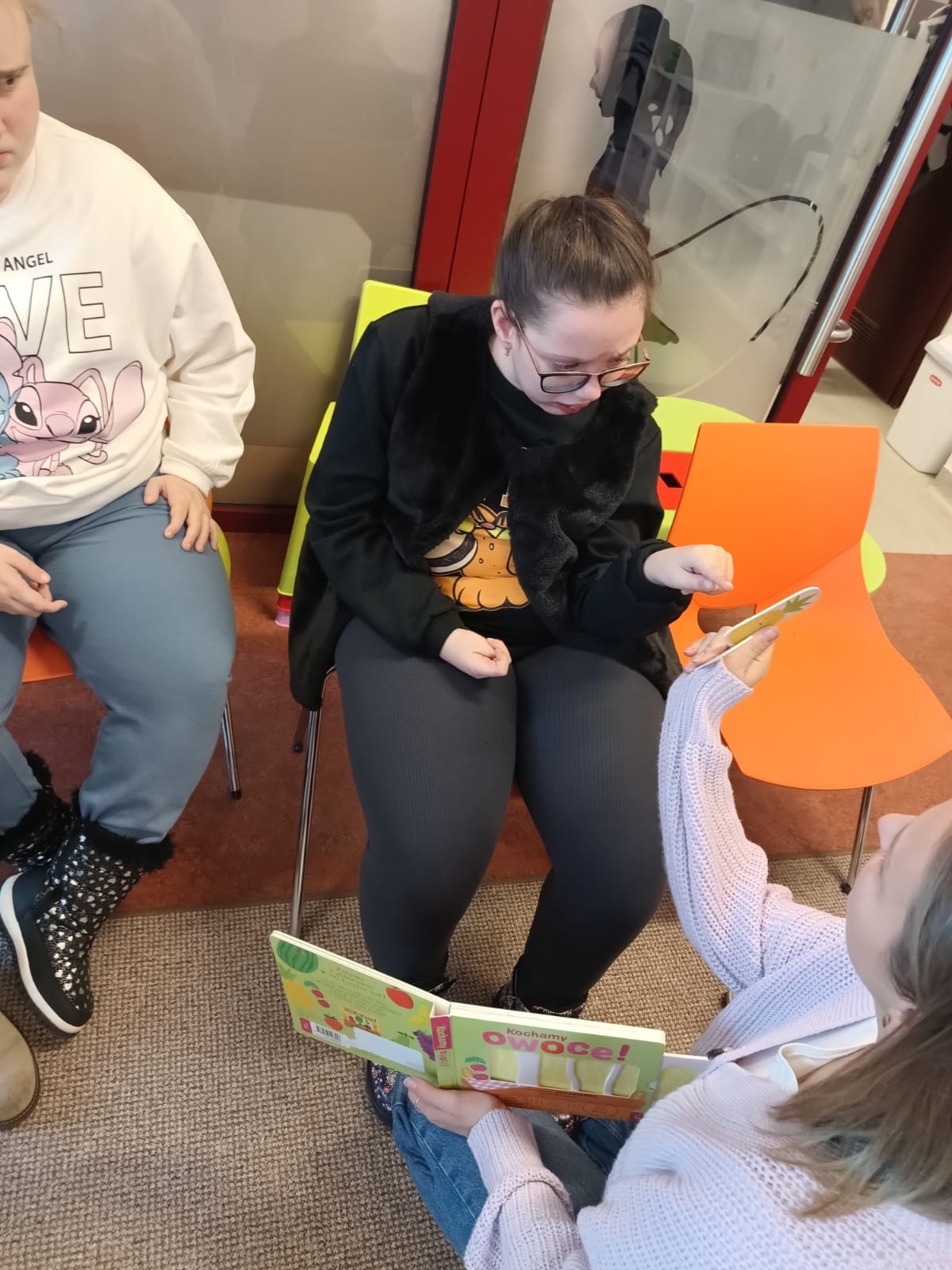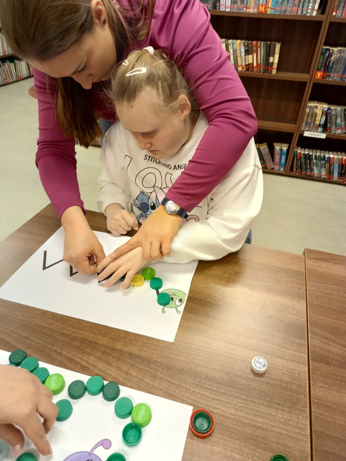 Podczas lutowego spotkania z książką uczniowie naszej szkoły zapoznali się historią bardzo głodnej gąsienicy, bohaterki książeczki dla dzieci o tym samym tytule. Dzieci zapamiętywały, co bohaterka książki lubiła jeść w każdym dniu tygodnia i w jakich ilościach. Potem nazywały i przeliczały owoce, które zjadała każdego dnia. Na koniec każdy mógł nakarmić biblioteczną głodną gąsienicę. W ramach relaksu, uczniowie robili sobie nawzajem masażyk na plecach, do wiersza o gąsienicy. Na koniec zajęć każdy mógł utworzyć swoją kolorową gąsienicę z plastikowych nakrętek, układając je na wybranym wzorze. Mógł także pokolorować gąsienicę kredką, wg podanego wzoru.