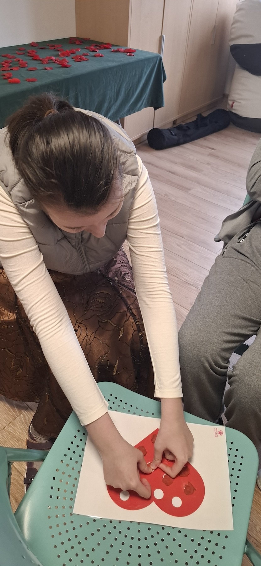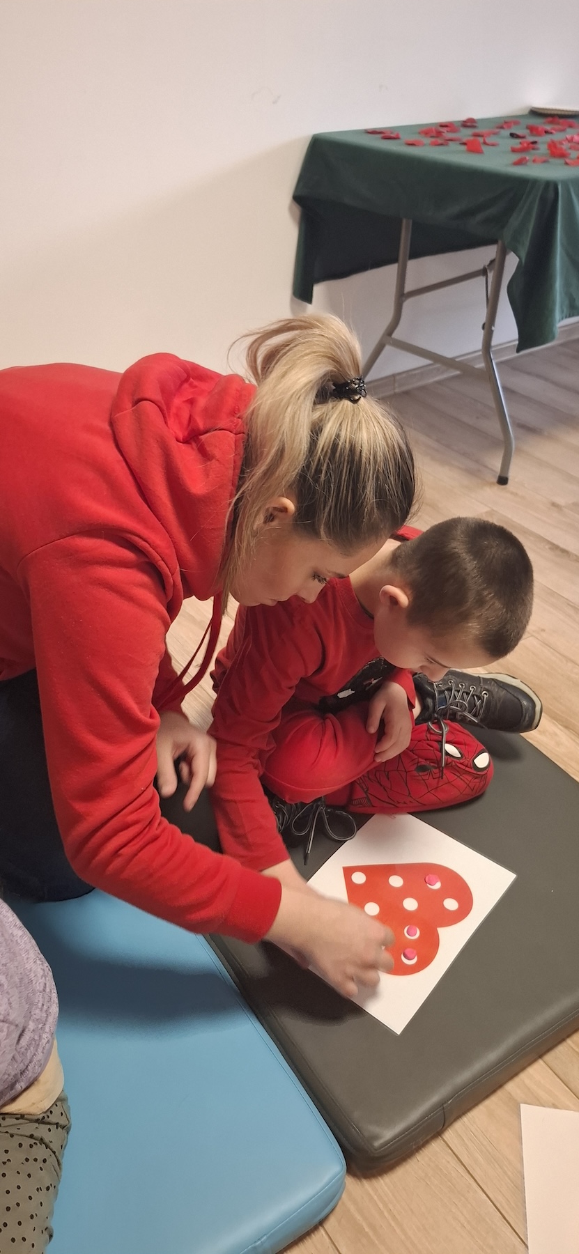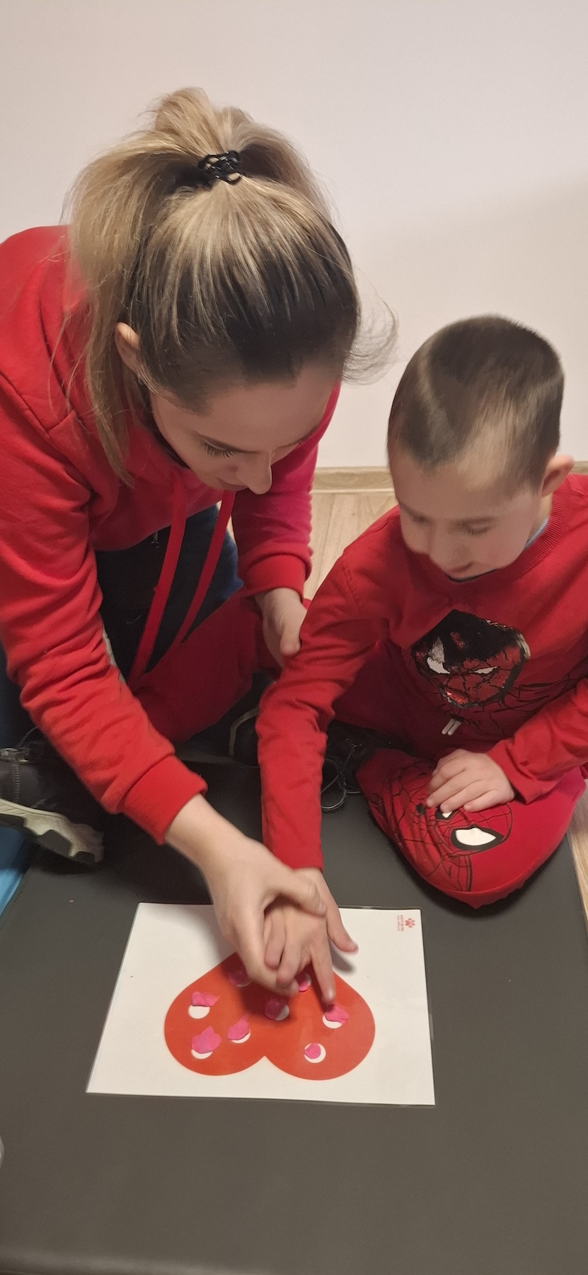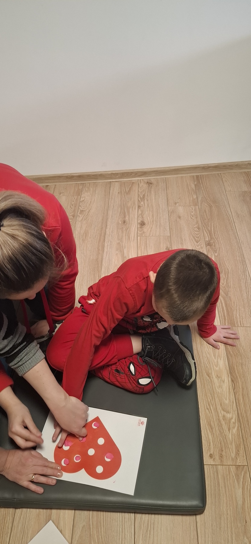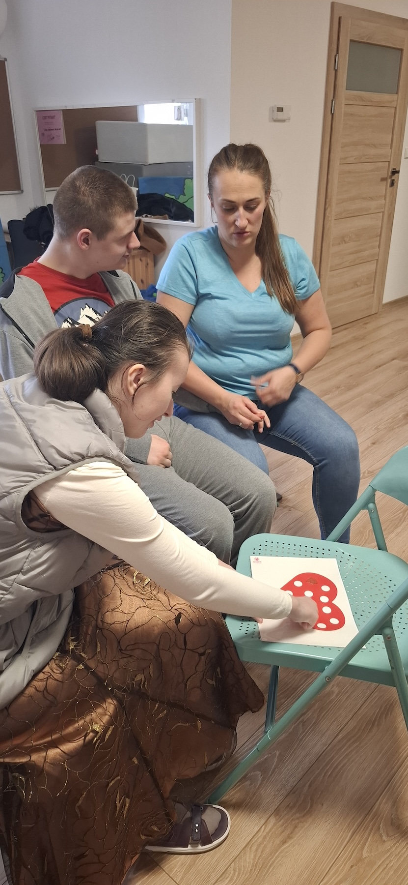 W naszej szkole cyklicznie organizowane są zajęcia z zakresu dogoterapii. Terapia z udziałem psa wykorzystuje jego obecność jako narzędzie wspierające rozwój uczniów. Kontakt z psem sprzyja poprawie samopoczucia, wzmacnia więzi społeczne, redukuje stres i lęk oraz motywuje do aktywności fizycznej. Zajęcia prowadzone są w małych grupach, co pozwala na indywidualne podejście do każdego uczestnika. Na ostatnich zajęciach Pani przygotowała plansze z serduszkami do wyklejania plasteliną, nawiązując do obchodów Walentynek 14 lutego. Następnie uczniowie dopasowywali rysunki większego pieska z mniejszym pieskiem w serduszku, co sprawiło im ogromną radość. Na zakończenie każdy uczeń, żegnając się z psem, podarował mu smakołyk, co było miłym akcentem na zakończenie zajęć.