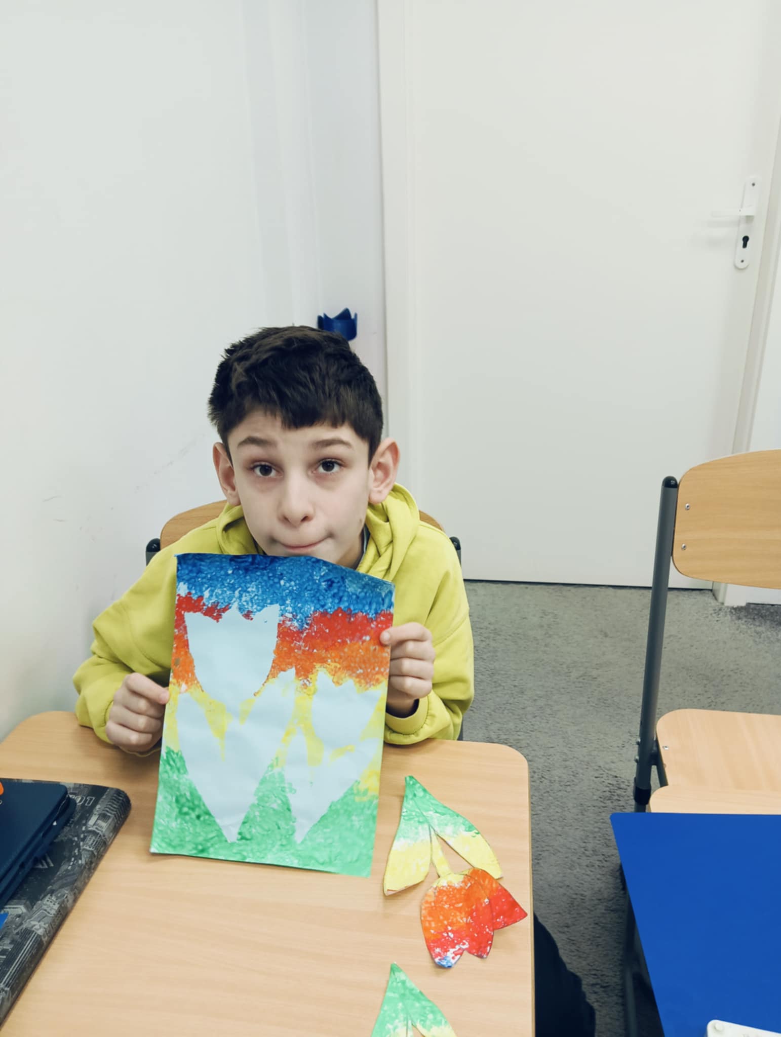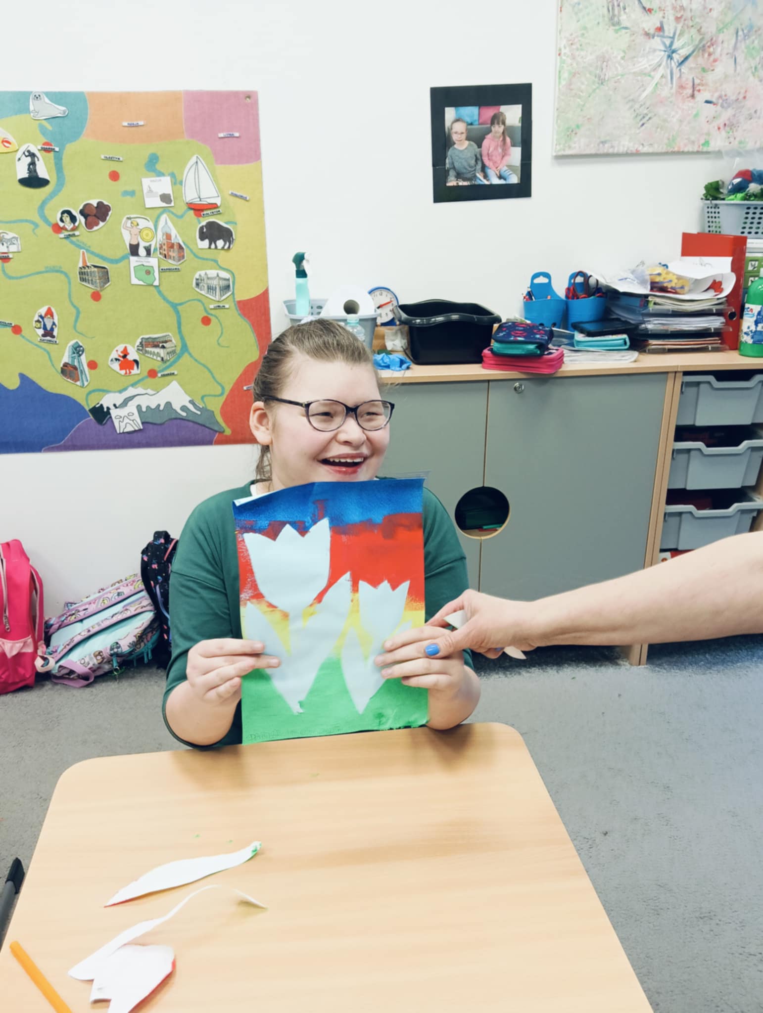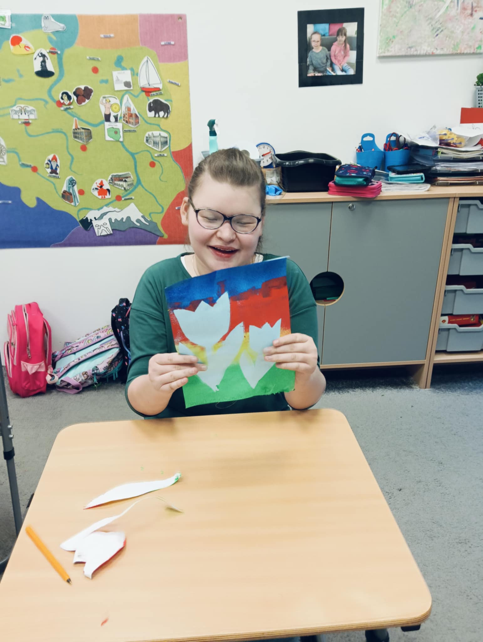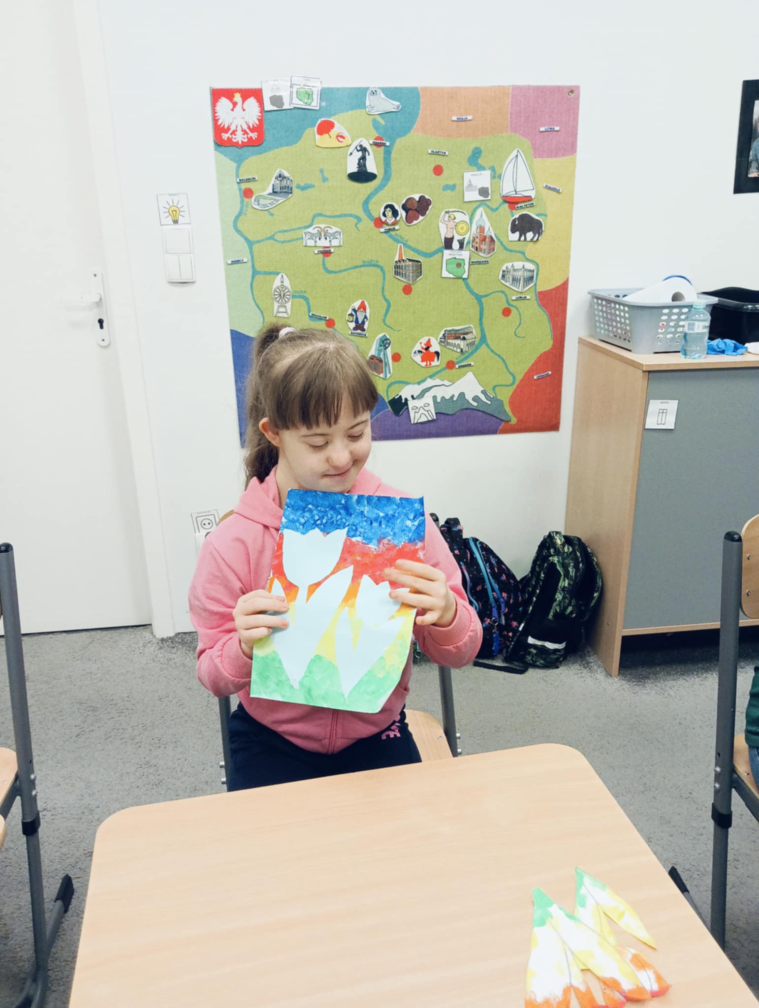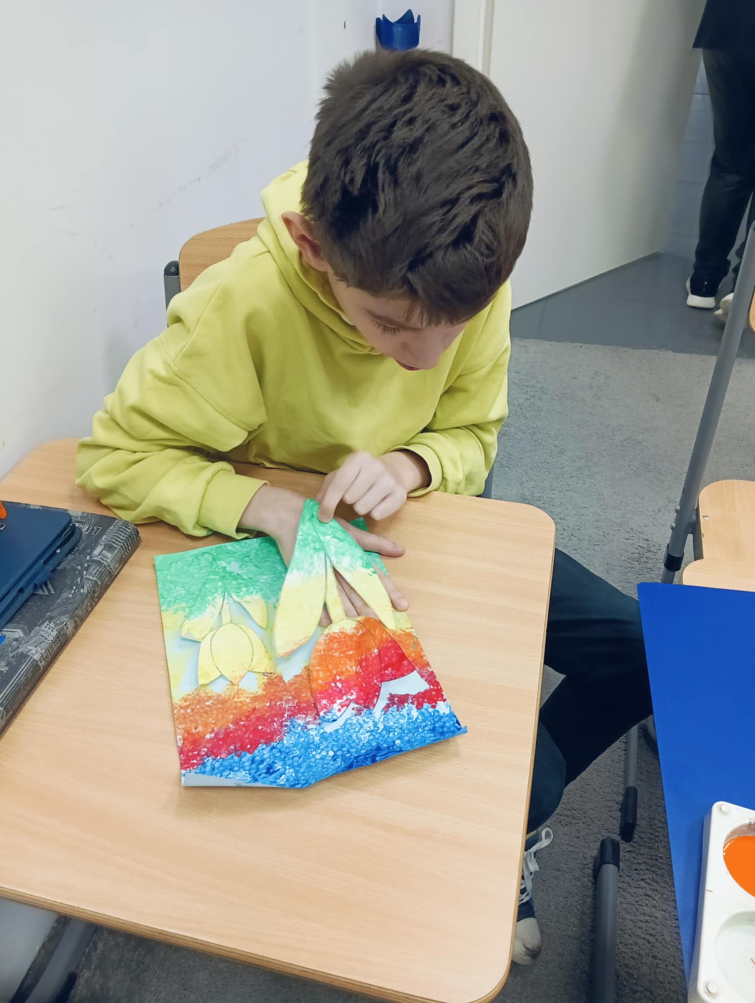 Wiosna zbliża się wielkimi krokami, dlatego w ramach realizacji tematu tygodnia: „Wiosna – nowa pora roku” uczniowie z oddziału „I” wykonali pracę plastyczną pt. „Kolorowe tulipany”. Praca została stworzona przy użyciu farb i różnych technik, takich jak: wałek, patyczki higieniczne oraz gąbeczka. Podczas zajęć dzieci miały okazję rozwijać swoją kreatywność i sprawność manualną. Praca z różnorodnymi materiałami sprawiła im wiele radości, a efekty ich twórczości ozdobiły szkolne korytarze, wprowadzając prawdziwie wiosenny nastrój. Uczniowie z dużym zaangażowaniem opowiadali o swoich dziełach i chętnie dzielili się wrażeniami, co dodatkowo wzbogaciło rozmowę na temat oznak nadchodzącej wiosny.