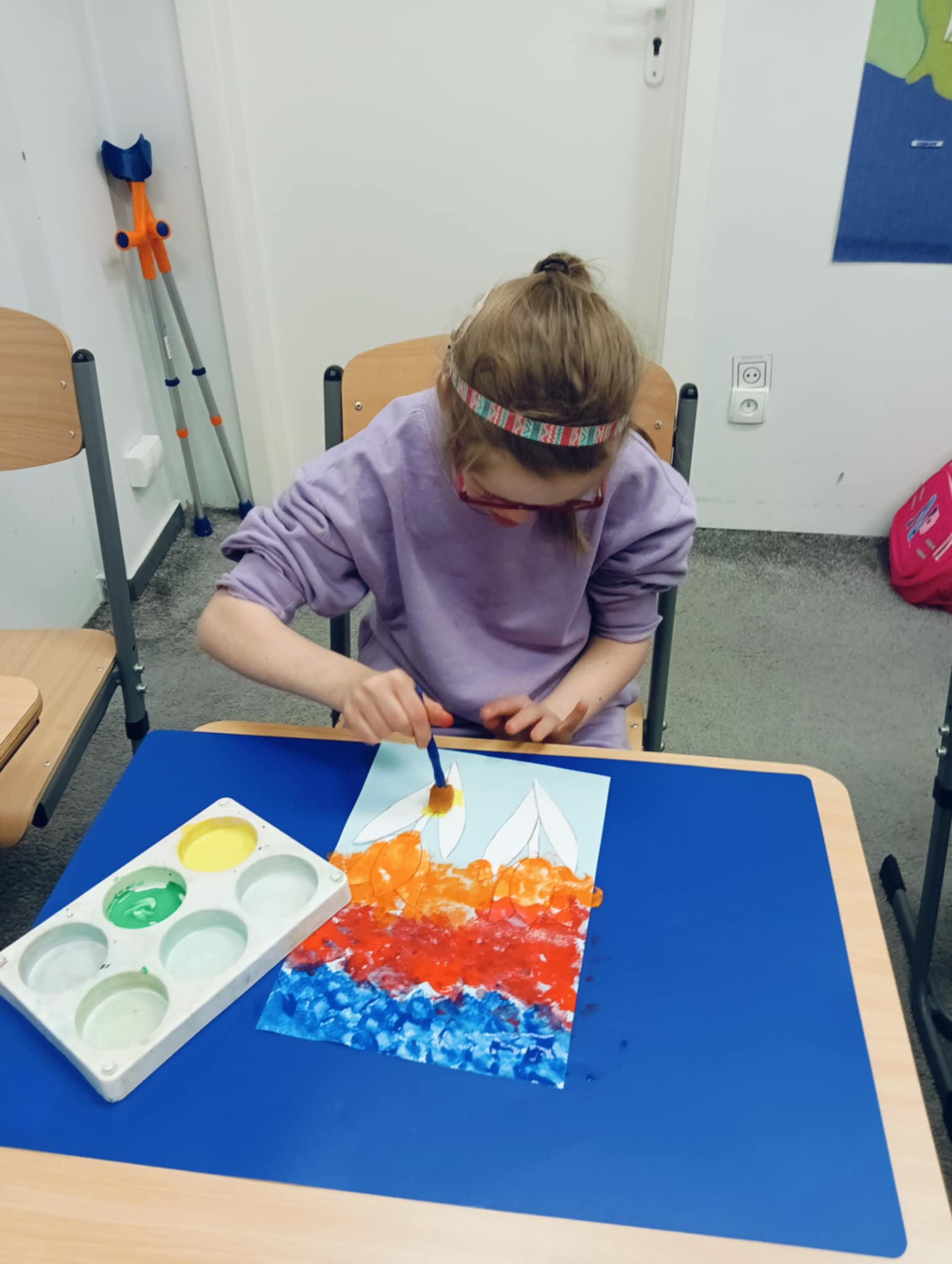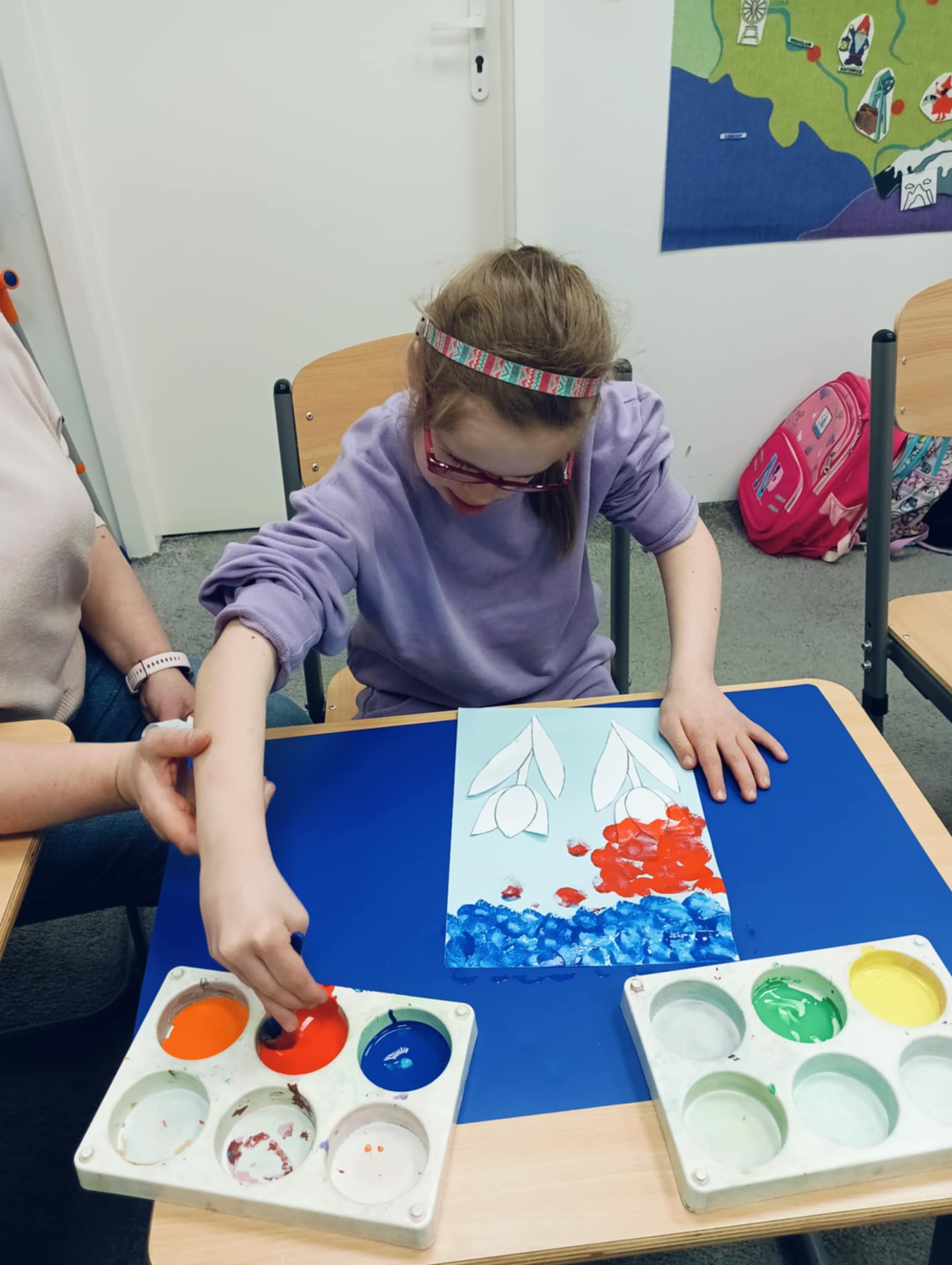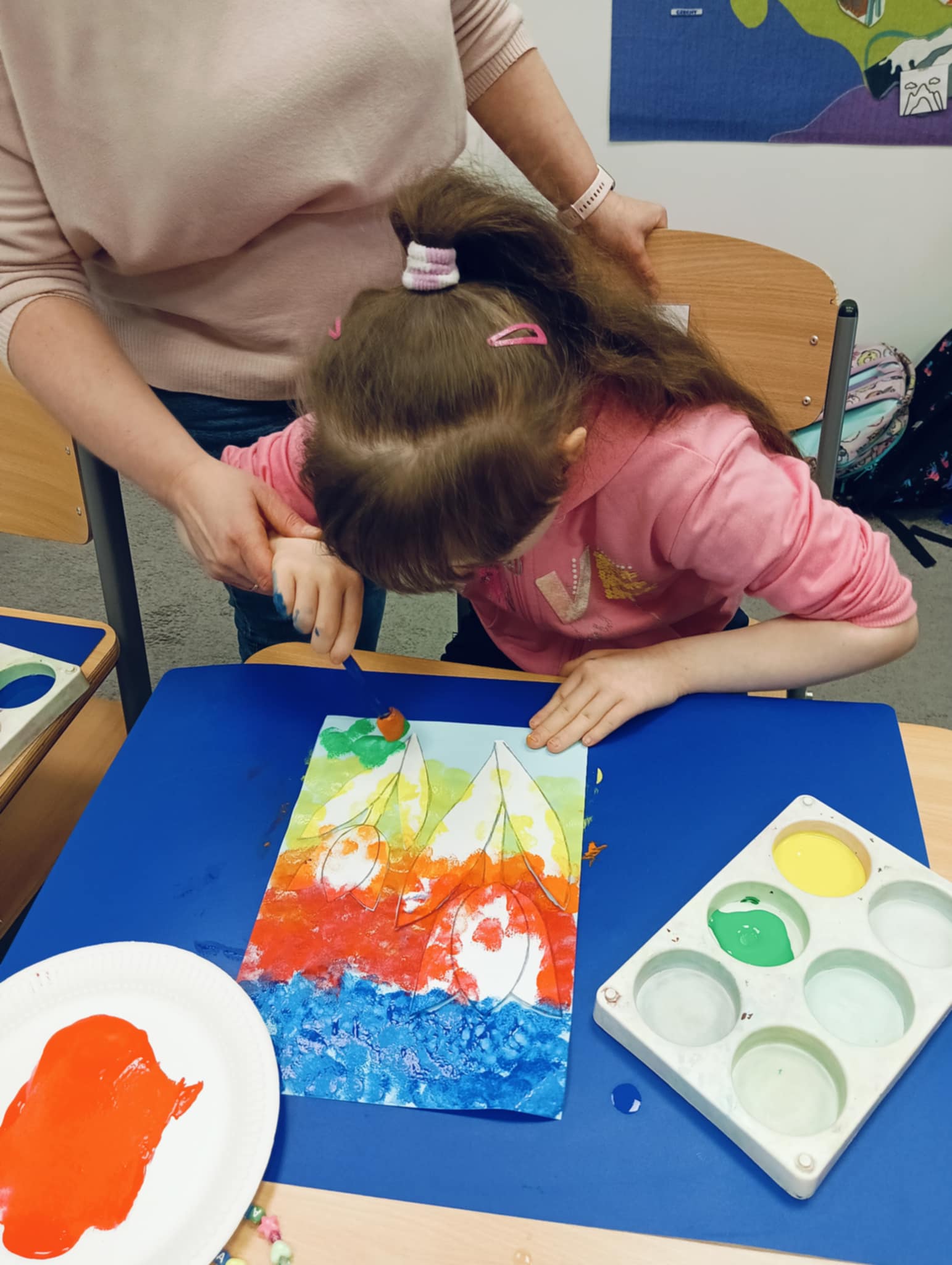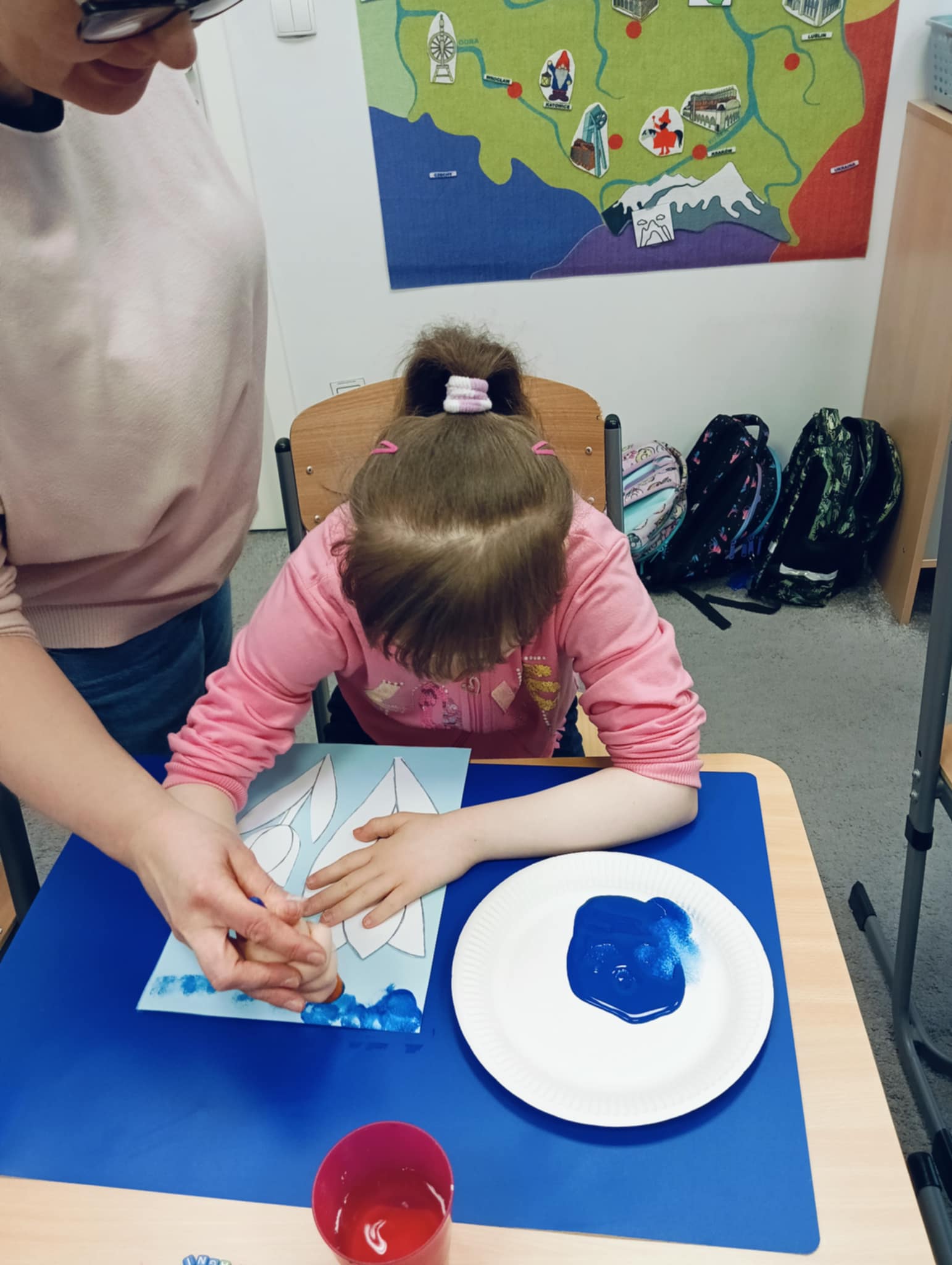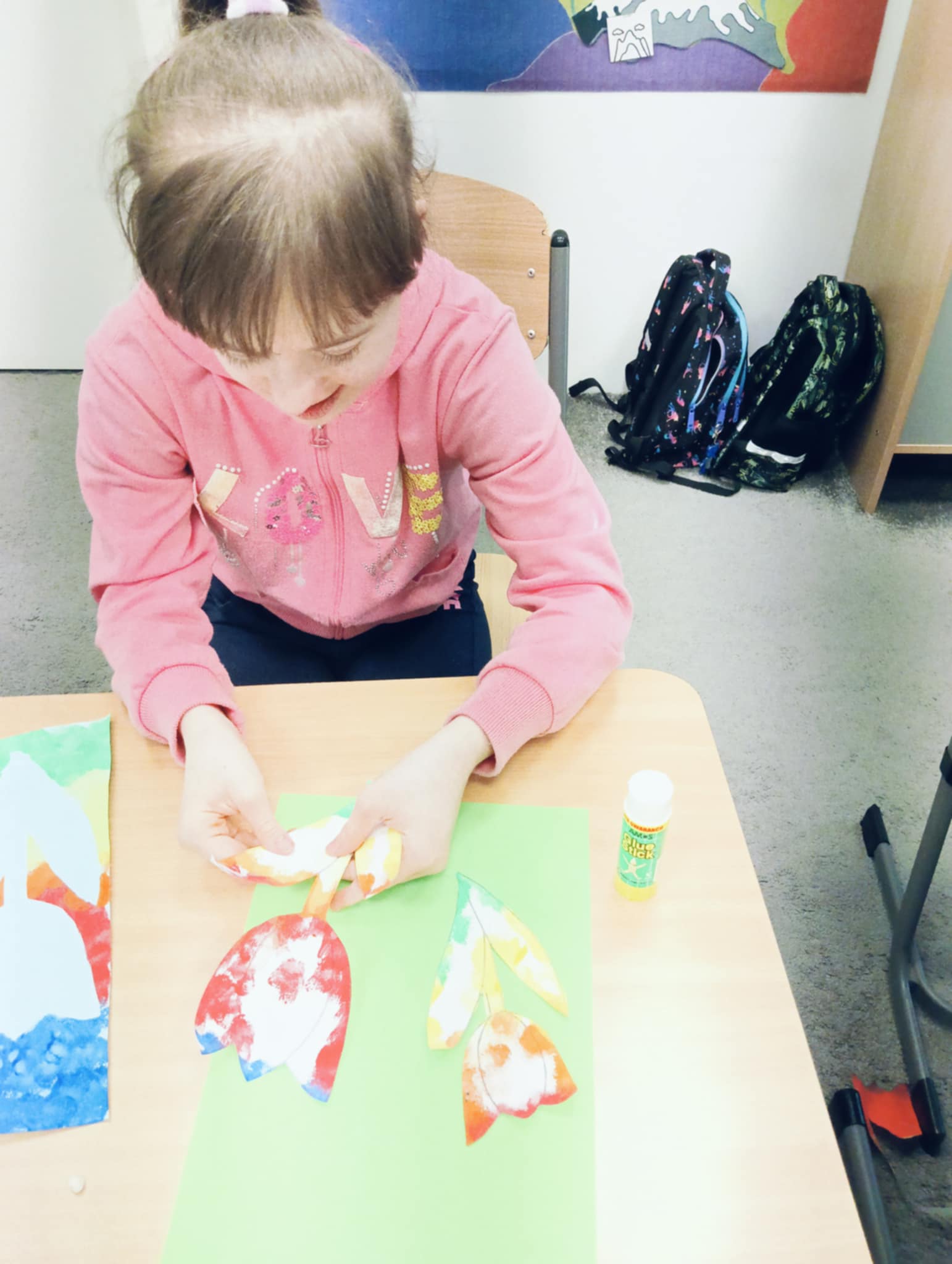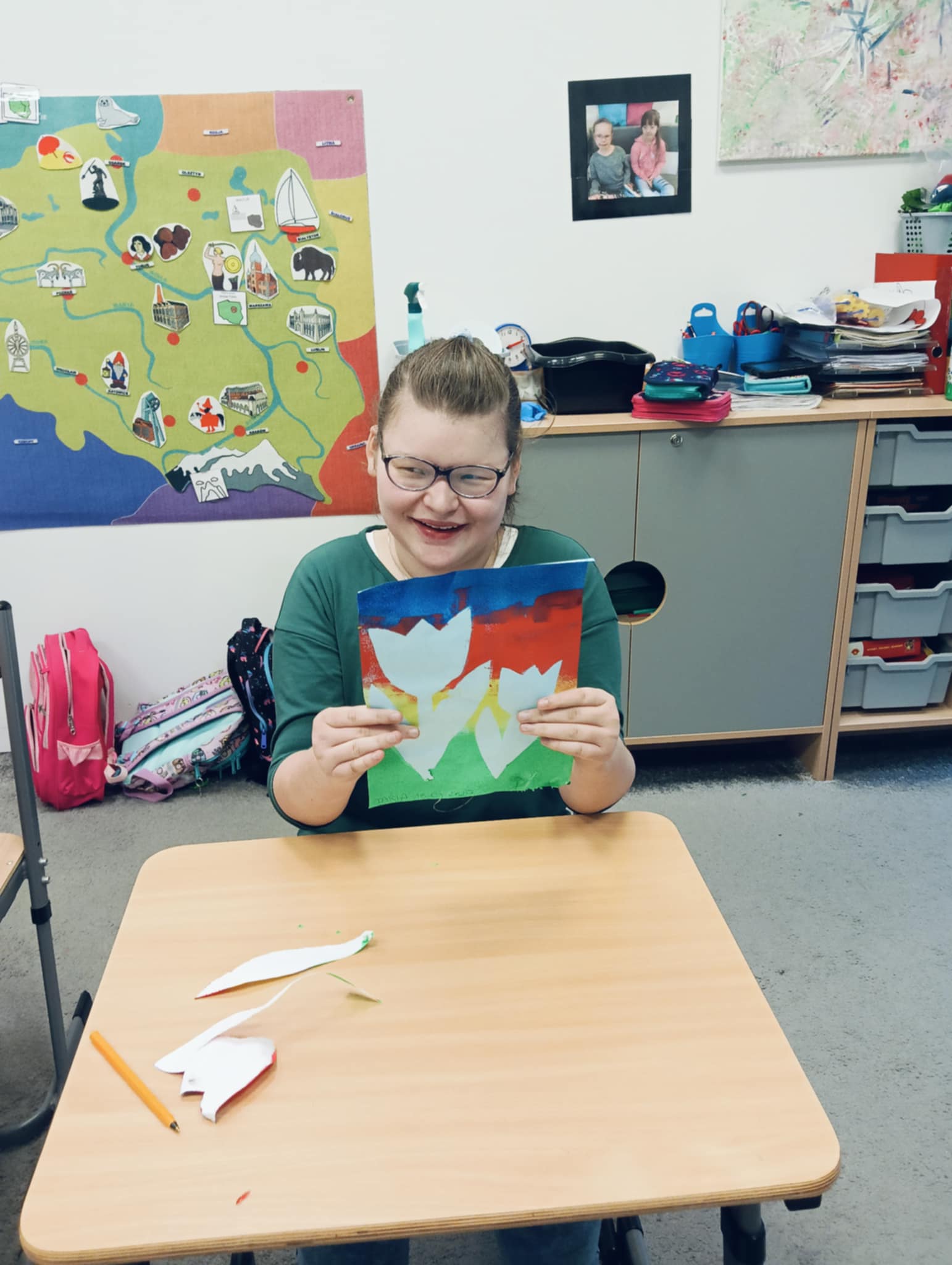 Wiosna zbliża się wielkimi krokami, dlatego w ramach realizacji tematu tygodnia: „Wiosna – nowa pora roku” uczniowie z oddziału „I” wykonali pracę plastyczną pt. „Kolorowe tulipany”. Praca została stworzona przy użyciu farb i różnych technik, takich jak: wałek, patyczki higieniczne oraz gąbeczka. Podczas zajęć dzieci miały okazję rozwijać swoją kreatywność i sprawność manualną. Praca z różnorodnymi materiałami sprawiła im wiele radości, a efekty ich twórczości ozdobiły szkolne korytarze, wprowadzając prawdziwie wiosenny nastrój. Uczniowie z dużym zaangażowaniem opowiadali o swoich dziełach i chętnie dzielili się wrażeniami, co dodatkowo wzbogaciło rozmowę na temat oznak nadchodzącej wiosny.