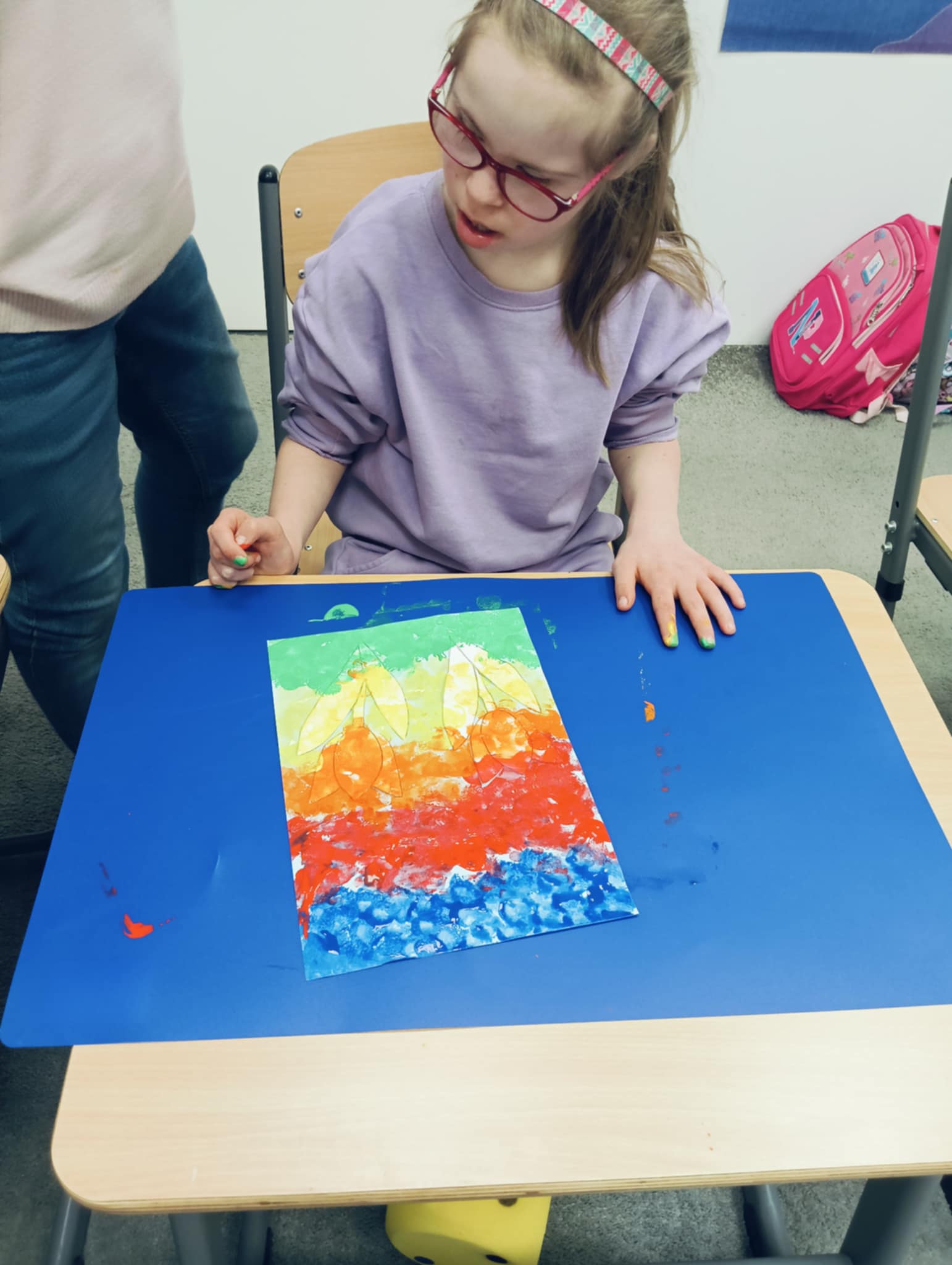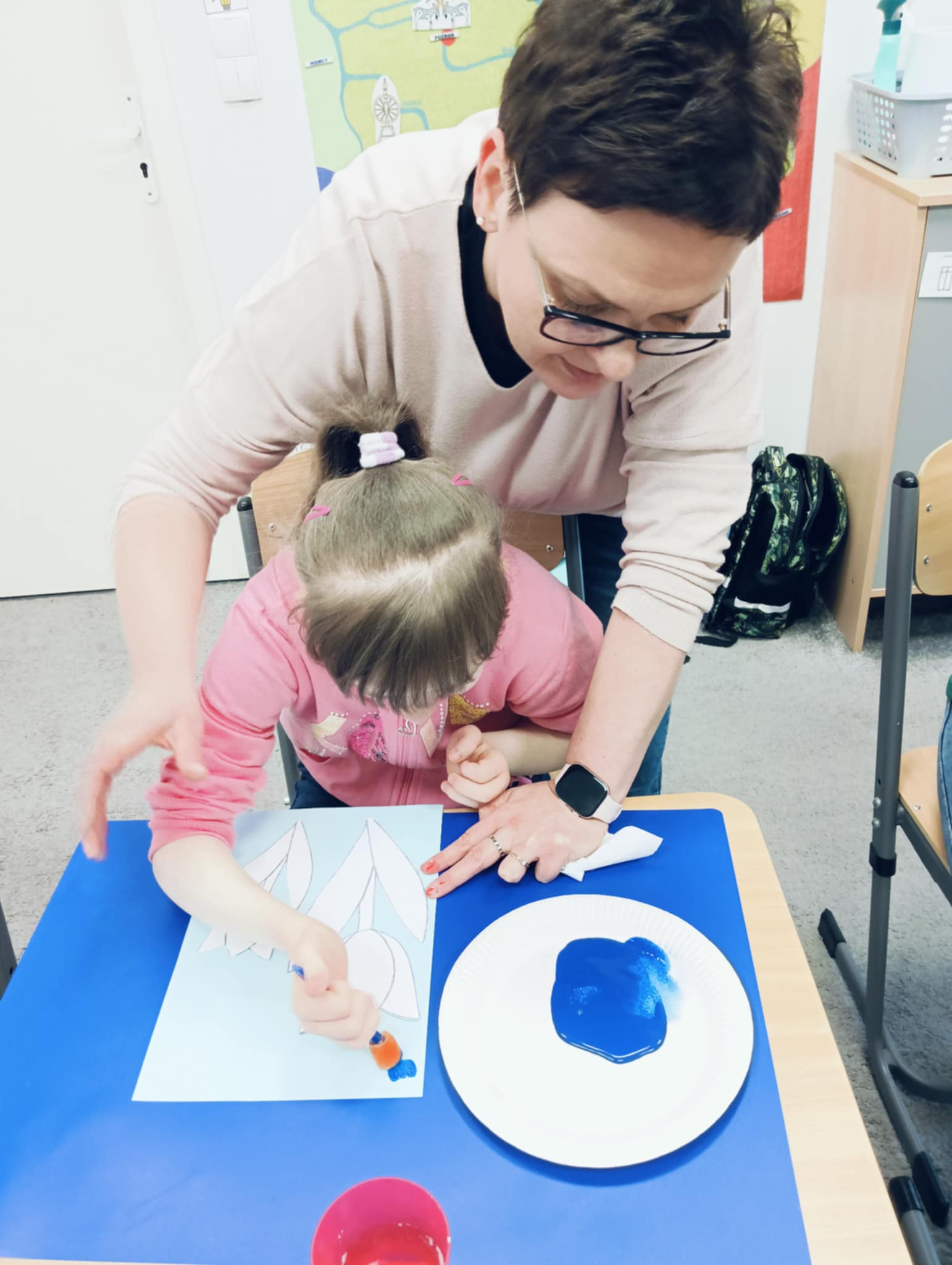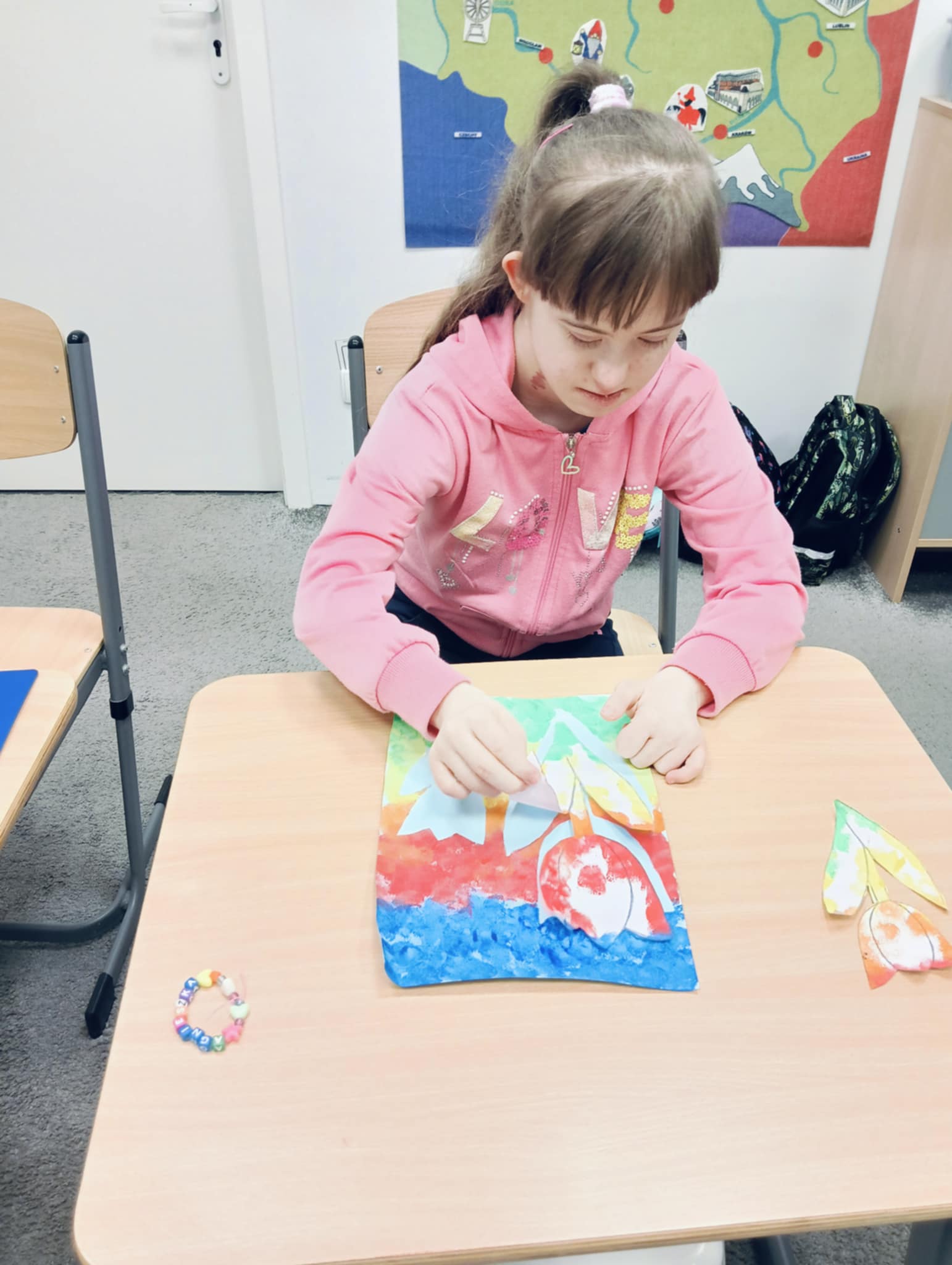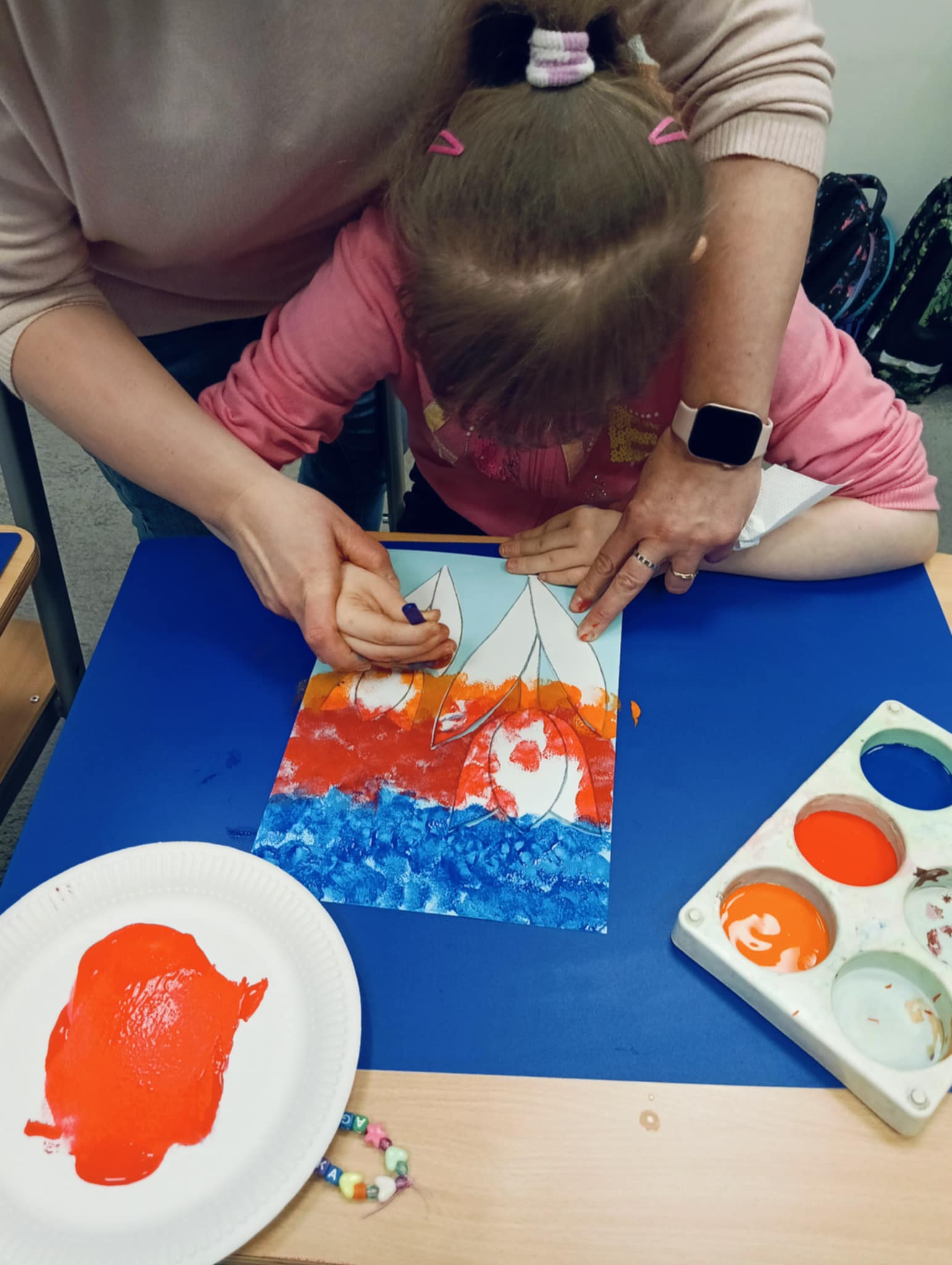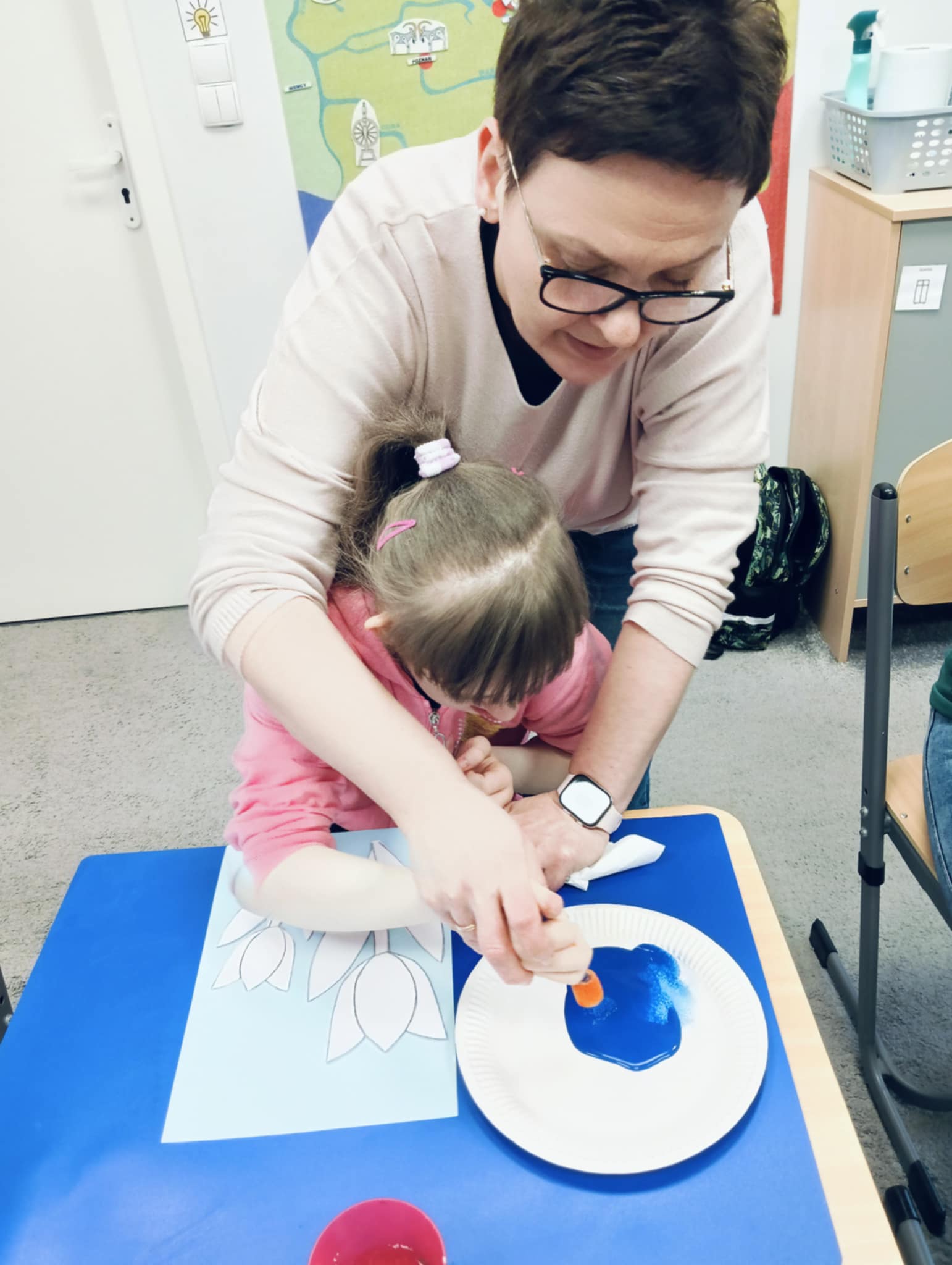 Wiosna zbliża się wielkimi krokami, dlatego w ramach realizacji tematu tygodnia: „Wiosna – nowa pora roku” uczniowie z oddziału „I” wykonali pracę plastyczną pt. „Kolorowe tulipany”. Praca została stworzona przy użyciu farb i różnych technik, takich jak: wałek, patyczki higieniczne oraz gąbeczka. Podczas zajęć dzieci miały okazję rozwijać swoją kreatywność i sprawność manualną. Praca z różnorodnymi materiałami sprawiła im wiele radości, a efekty ich twórczości ozdobiły szkolne korytarze, wprowadzając prawdziwie wiosenny nastrój. Uczniowie z dużym zaangażowaniem opowiadali o swoich dziełach i chętnie dzielili się wrażeniami, co dodatkowo wzbogaciło rozmowę na temat oznak nadchodzącej wiosny.