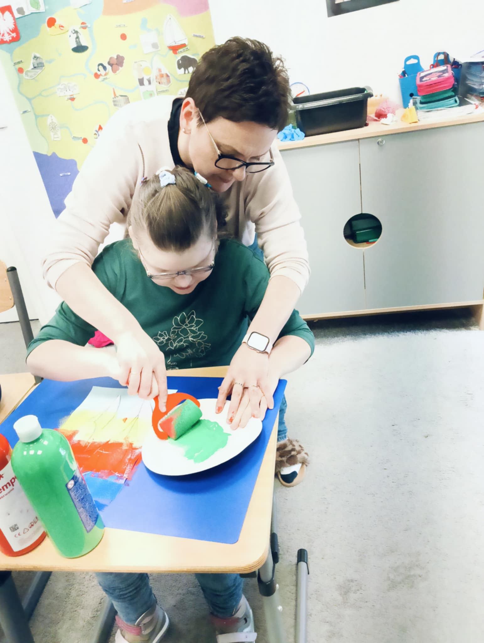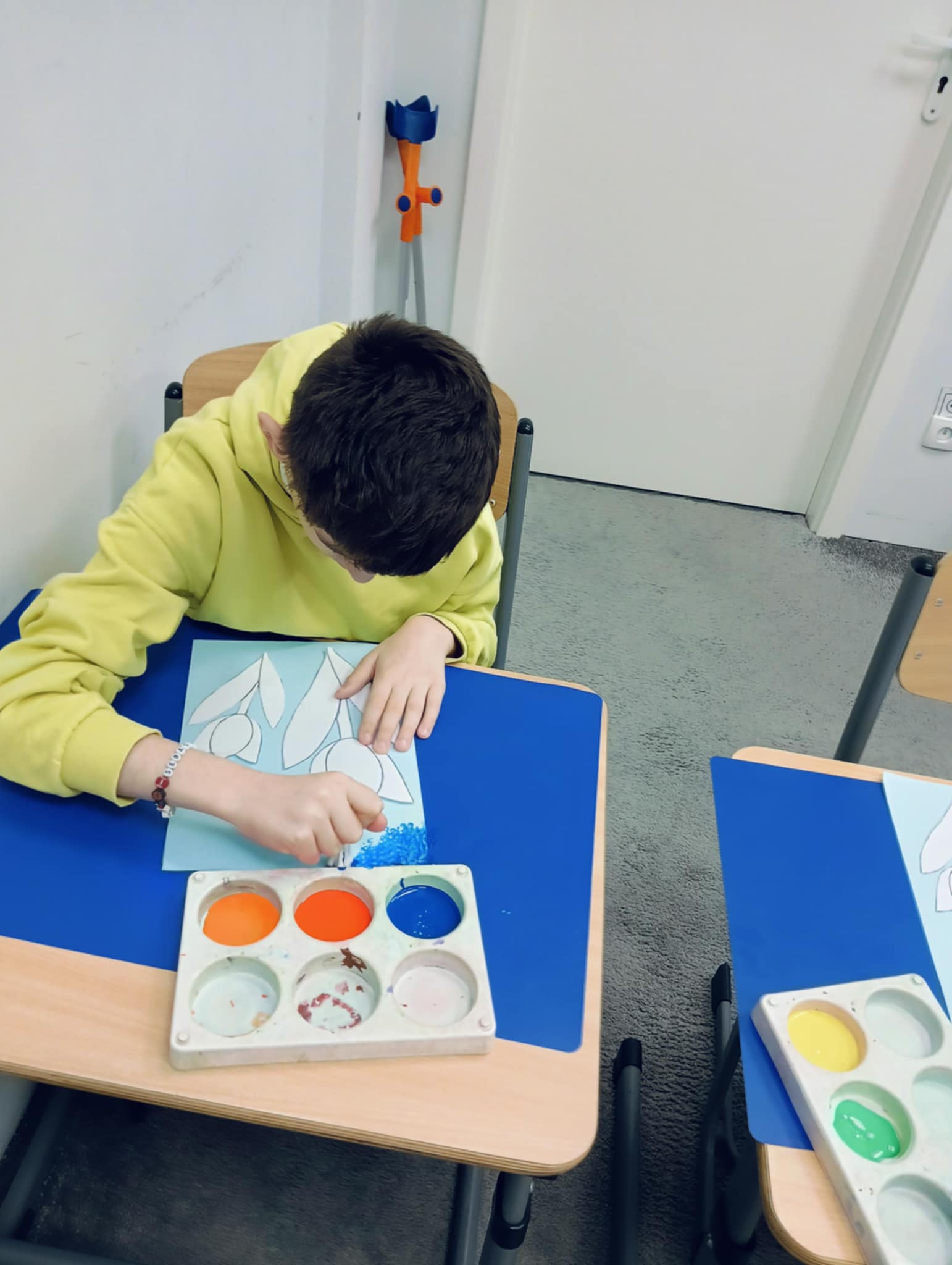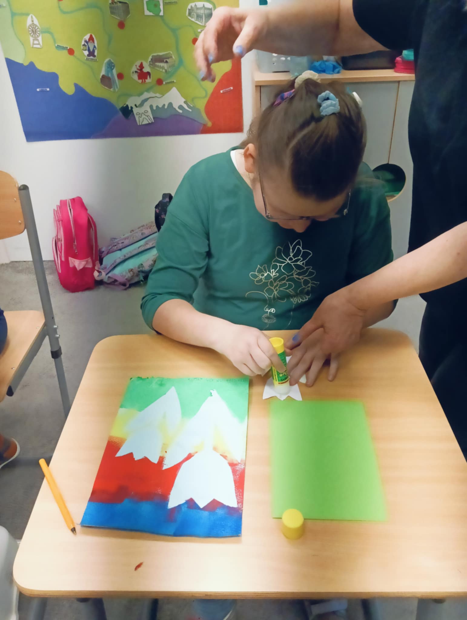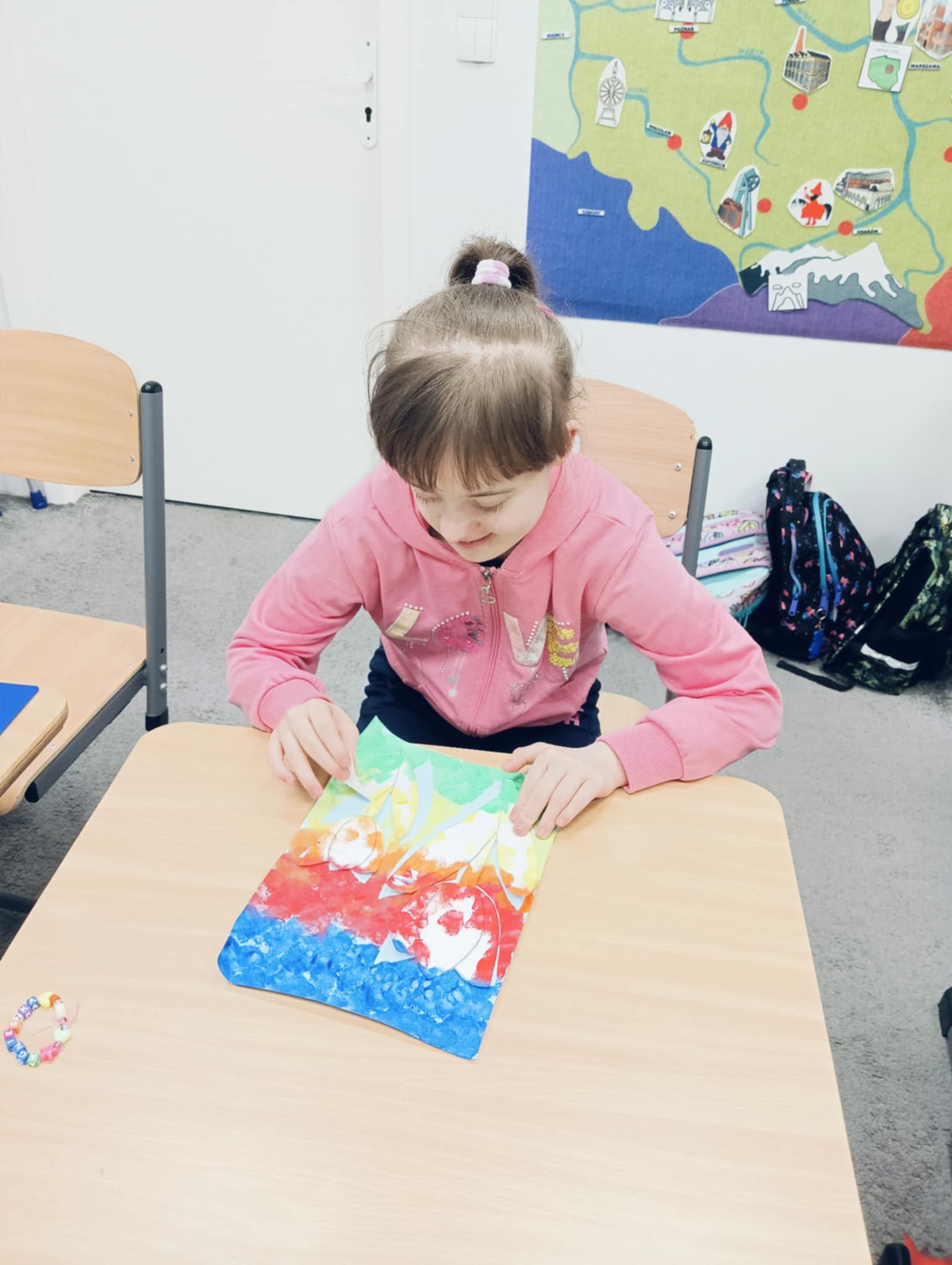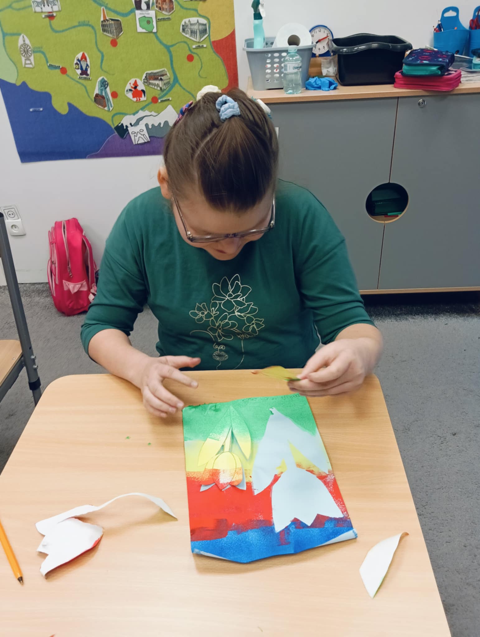 Wiosna zbliża się wielkimi krokami, dlatego w ramach realizacji tematu tygodnia: „Wiosna – nowa pora roku” uczniowie z oddziału „I” wykonali pracę plastyczną pt. „Kolorowe tulipany”. Praca została stworzona przy użyciu farb i różnych technik, takich jak: wałek, patyczki higieniczne oraz gąbeczka. Podczas zajęć dzieci miały okazję rozwijać swoją kreatywność i sprawność manualną. Praca z różnorodnymi materiałami sprawiła im wiele radości, a efekty ich twórczości ozdobiły szkolne korytarze, wprowadzając prawdziwie wiosenny nastrój. Uczniowie z dużym zaangażowaniem opowiadali o swoich dziełach i chętnie dzielili się wrażeniami, co dodatkowo wzbogaciło rozmowę na temat oznak nadchodzącej wiosny.