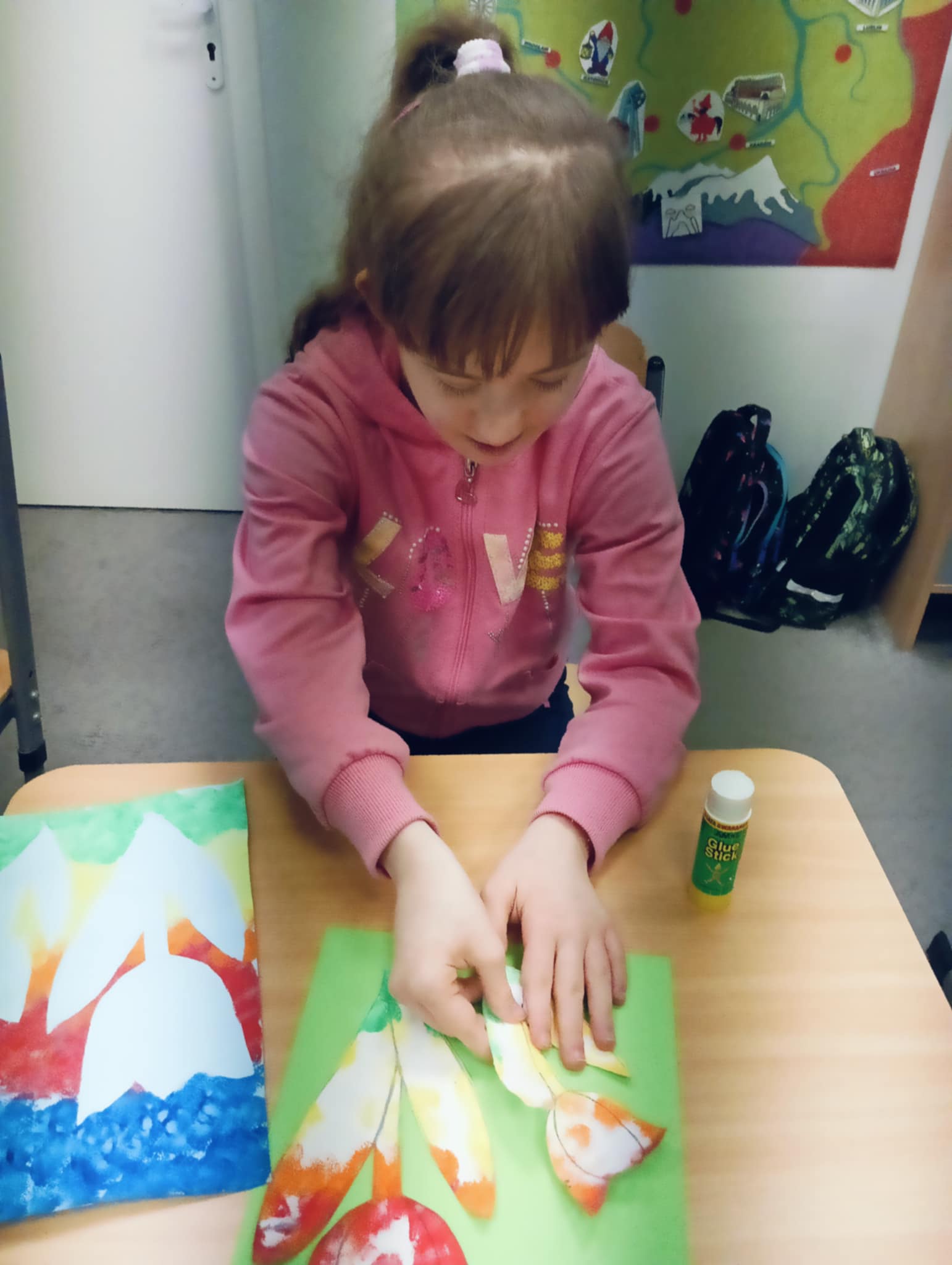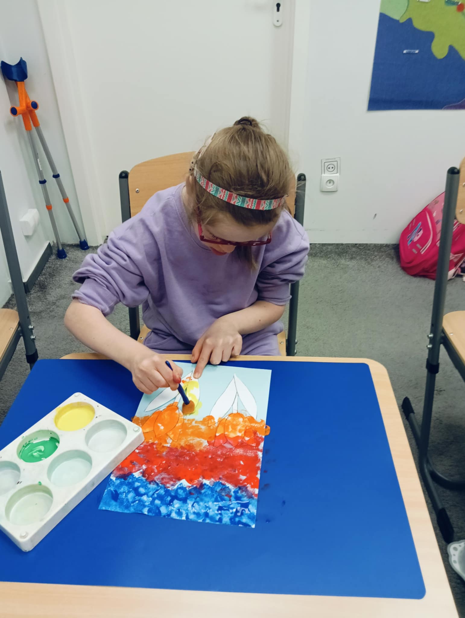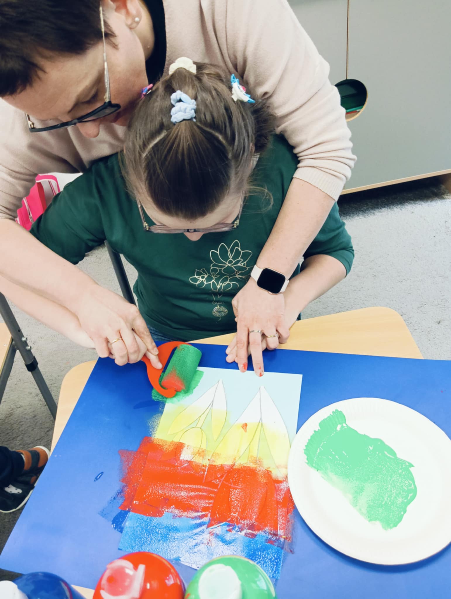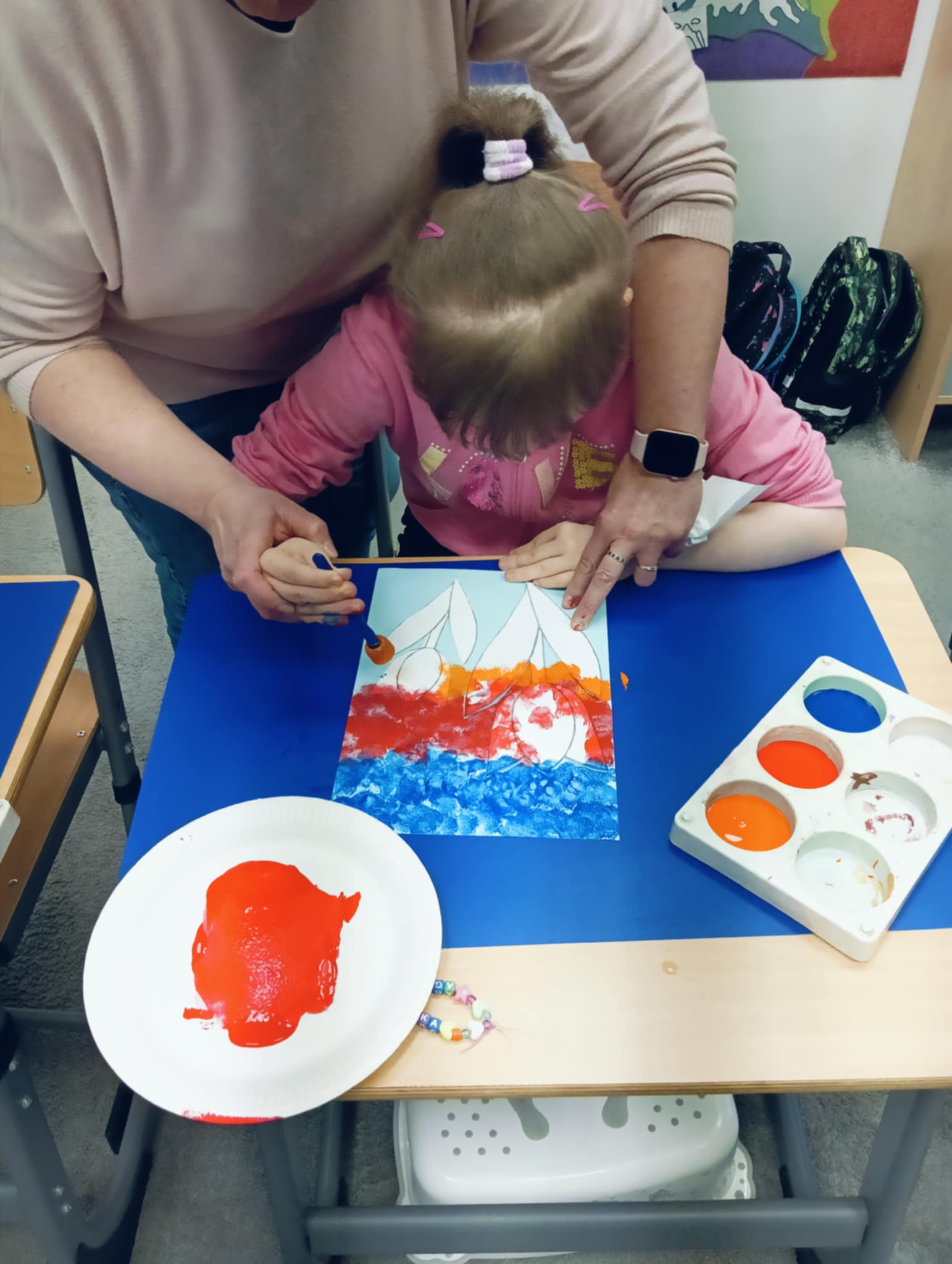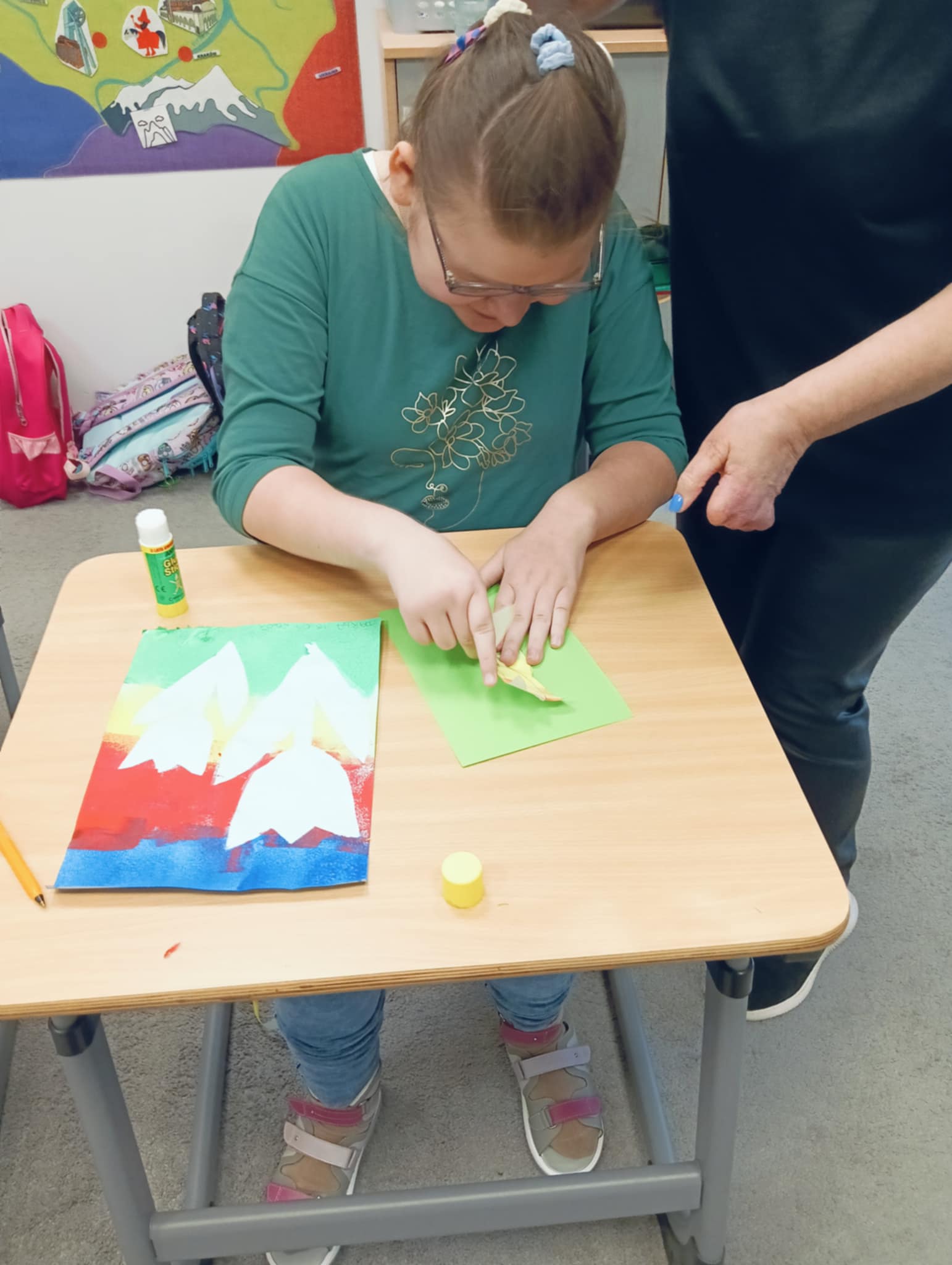 Wiosna zbliża się wielkimi krokami, dlatego w ramach realizacji tematu tygodnia: „Wiosna – nowa pora roku” uczniowie z oddziału „I” wykonali pracę plastyczną pt. „Kolorowe tulipany”. Praca została stworzona przy użyciu farb i różnych technik, takich jak: wałek, patyczki higieniczne oraz gąbeczka. Podczas zajęć dzieci miały okazję rozwijać swoją kreatywność i sprawność manualną. Praca z różnorodnymi materiałami sprawiła im wiele radości, a efekty ich twórczości ozdobiły szkolne korytarze, wprowadzając prawdziwie wiosenny nastrój. Uczniowie z dużym zaangażowaniem opowiadali o swoich dziełach i chętnie dzielili się wrażeniami, co dodatkowo wzbogaciło rozmowę na temat oznak nadchodzącej wiosny.