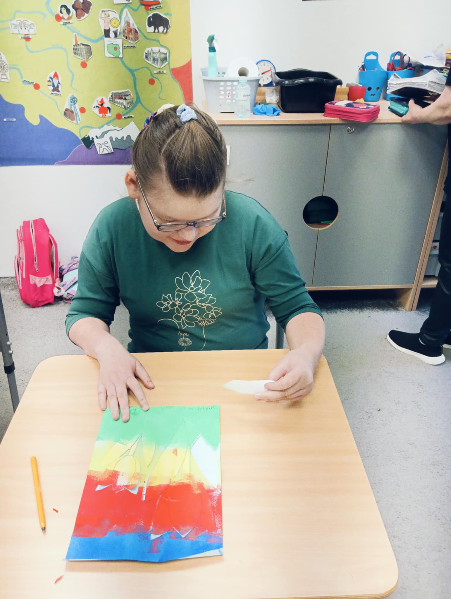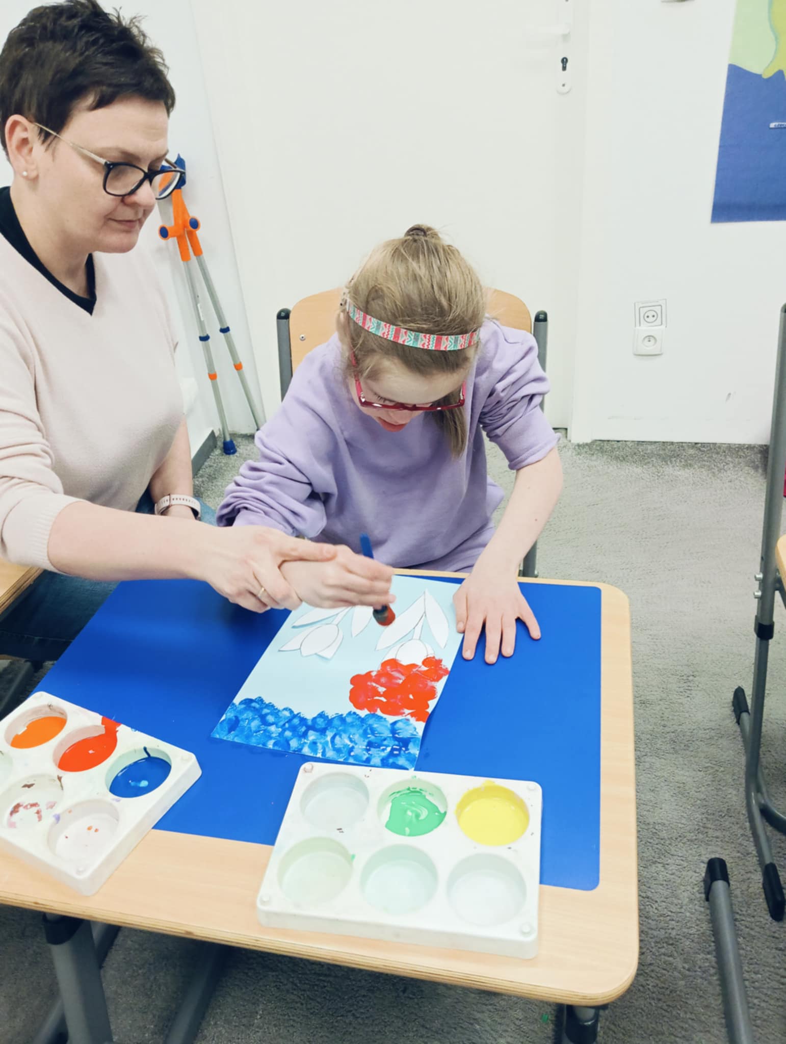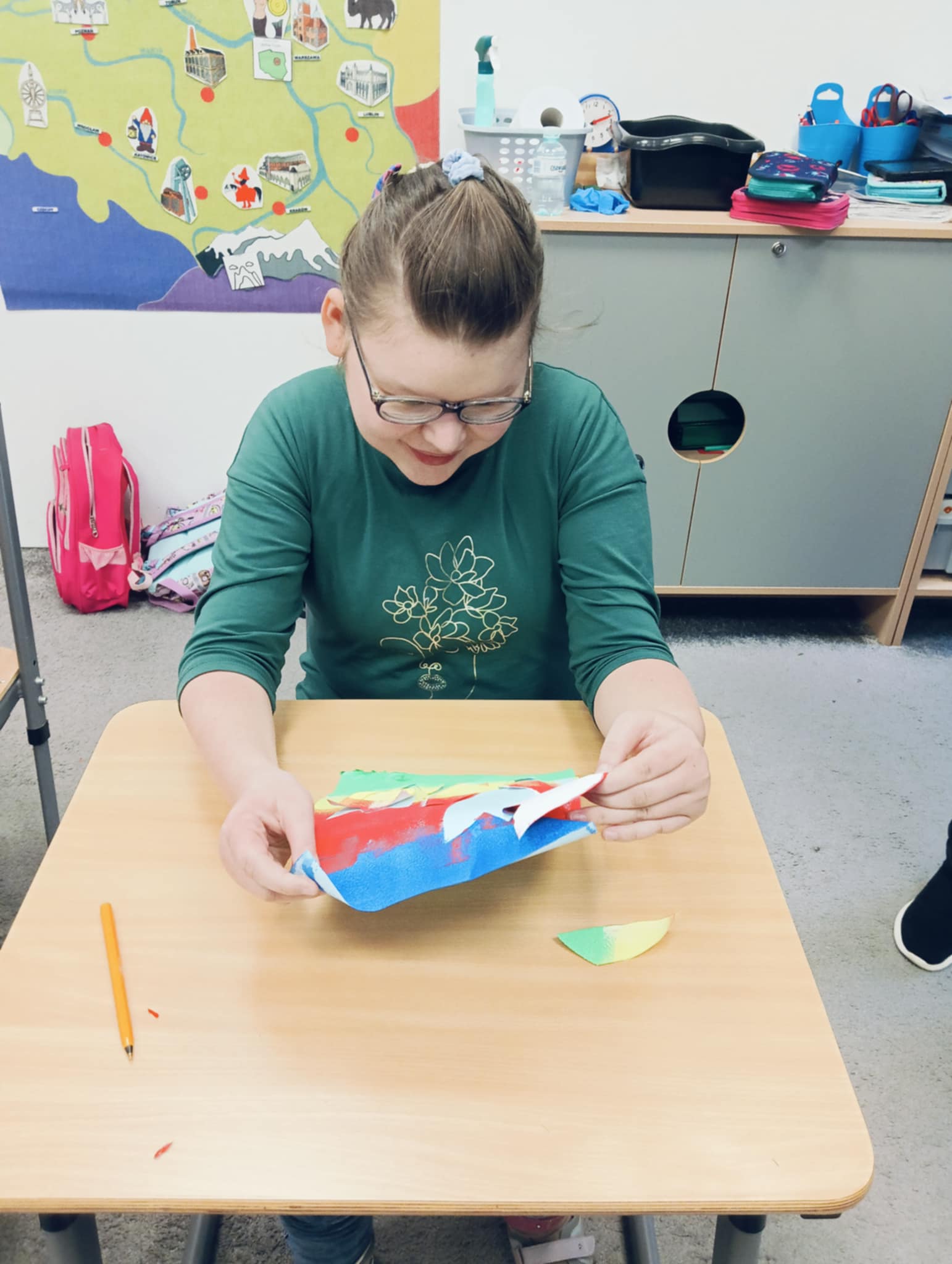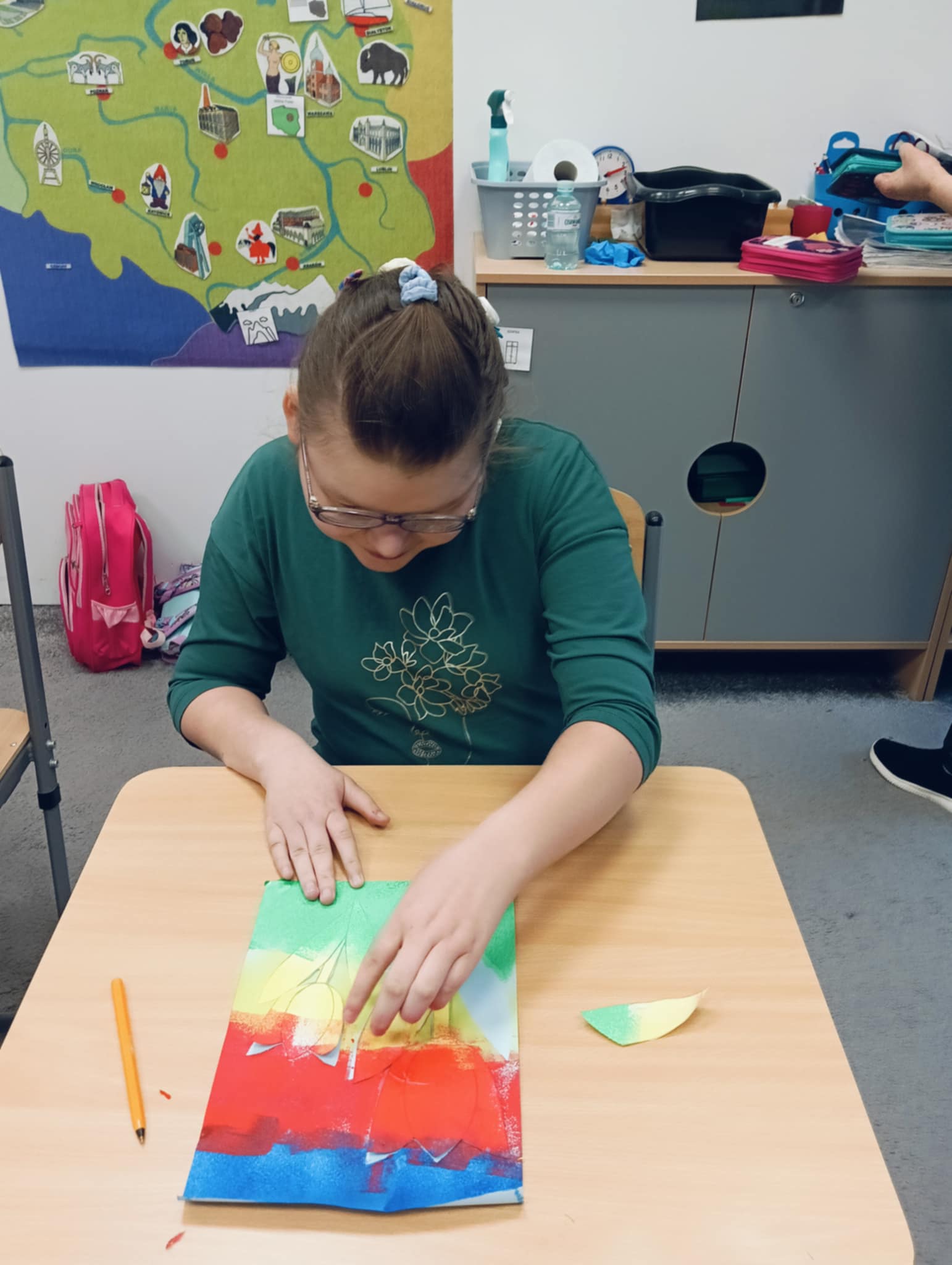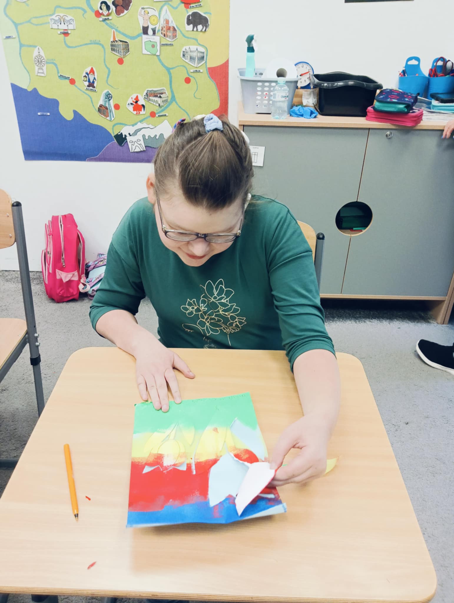 Wiosna zbliża się wielkimi krokami, dlatego w ramach realizacji tematu tygodnia: „Wiosna – nowa pora roku” uczniowie z oddziału „I” wykonali pracę plastyczną pt. „Kolorowe tulipany”. Praca została stworzona przy użyciu farb i różnych technik, takich jak: wałek, patyczki higieniczne oraz gąbeczka. Podczas zajęć dzieci miały okazję rozwijać swoją kreatywność i sprawność manualną. Praca z różnorodnymi materiałami sprawiła im wiele radości, a efekty ich twórczości ozdobiły szkolne korytarze, wprowadzając prawdziwie wiosenny nastrój. Uczniowie z dużym zaangażowaniem opowiadali o swoich dziełach i chętnie dzielili się wrażeniami, co dodatkowo wzbogaciło rozmowę na temat oznak nadchodzącej wiosny.