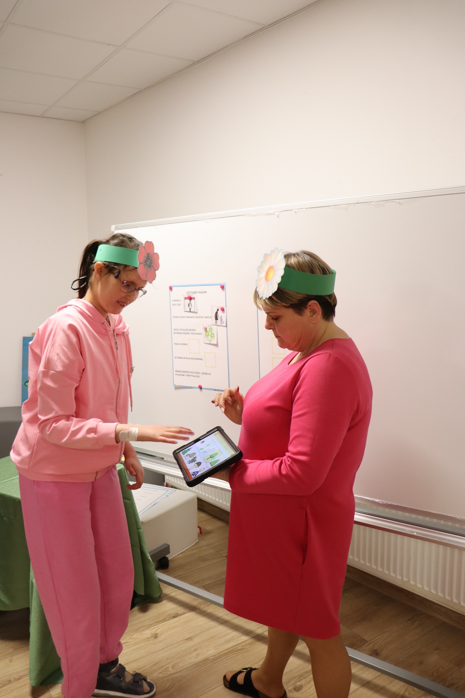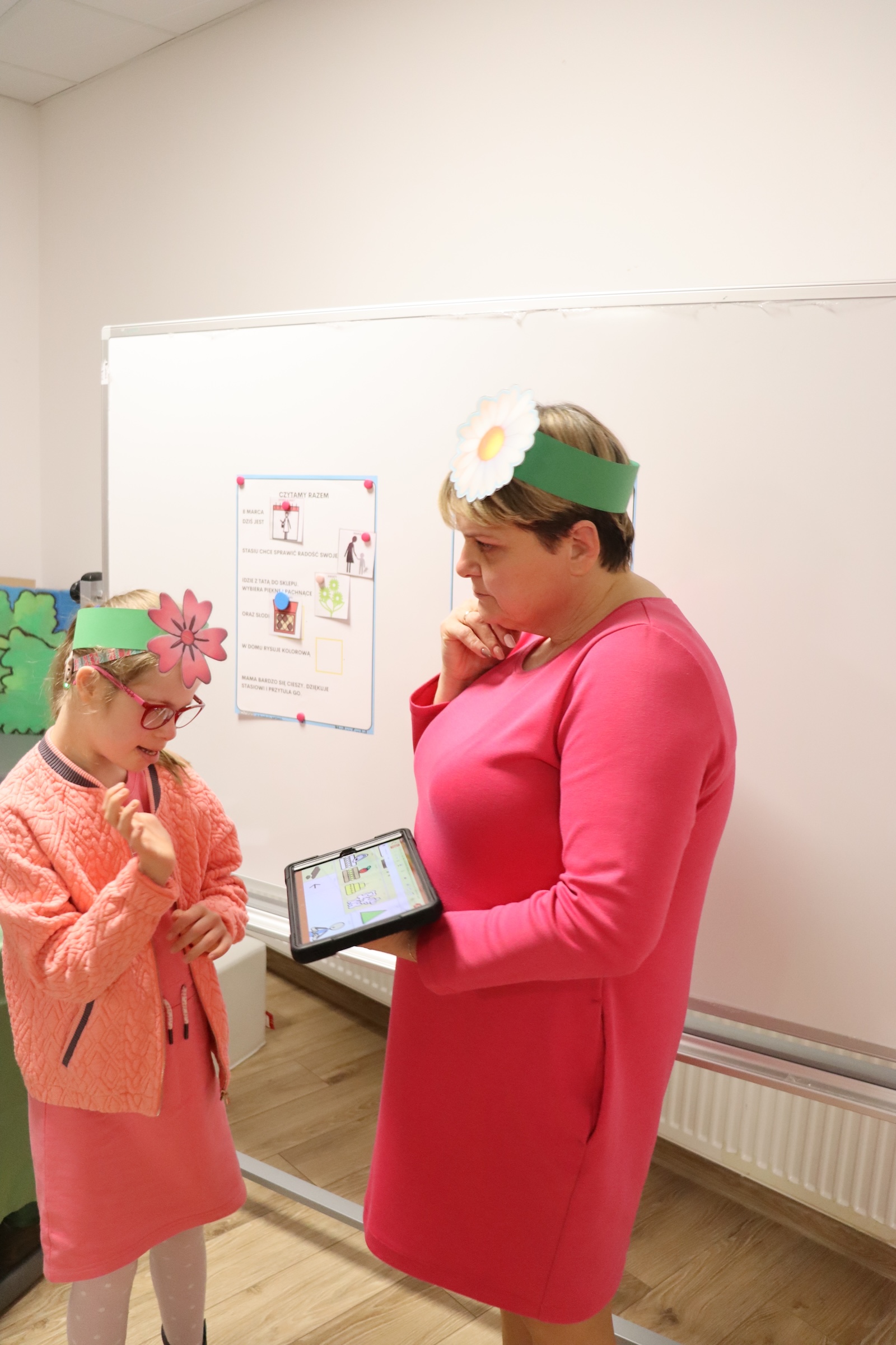 7 marca w naszej szkole świętowaliśmy Dzień Kobiet. Tego dnia zarówno młodsze, jak i starsze dziewczynki oraz panie przyszły ubrane w różne odcienie koloru różowego, co wprowadziło wyjątkową, radosną atmosferę. Na dobry początek każdy uczeń otrzymał opaskę z kolorowym kwiatuszkiem – symbolem święta kobiet. Następnie obejrzeliśmy krótki film edukacyjny z którego dowiedzieliśmy się, skąd wzięła się tradycja obchodzenia Dnia Kobiet. Kolejnym punktem programu było uruchomienie... zmysłu węchu! Uczniowie mieli okazję powąchać różne zapachy i odgadnąć, jaki owoc lub kwiat się za nimi kryje. Na zakończenie wspólnie wzięliśmy udział w teleturnieju. Uczniowie zostali podzieleni na dwie drużyny i odpowiadali na pytania dotyczące znanych kobiet w Polsce. Zabawa odbywała się z wykorzystaniem oprogramowania MÓWik. Wszyscy bawili się doskonale a największymi zwyciężczyniami tego dnia były oczywiście wszystkie kobiety i dziewczynki, które zostały obdarowane pięknymi kwiatami przez naszych chłopców – DZIĘKUJEMY !