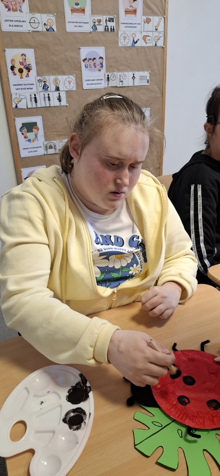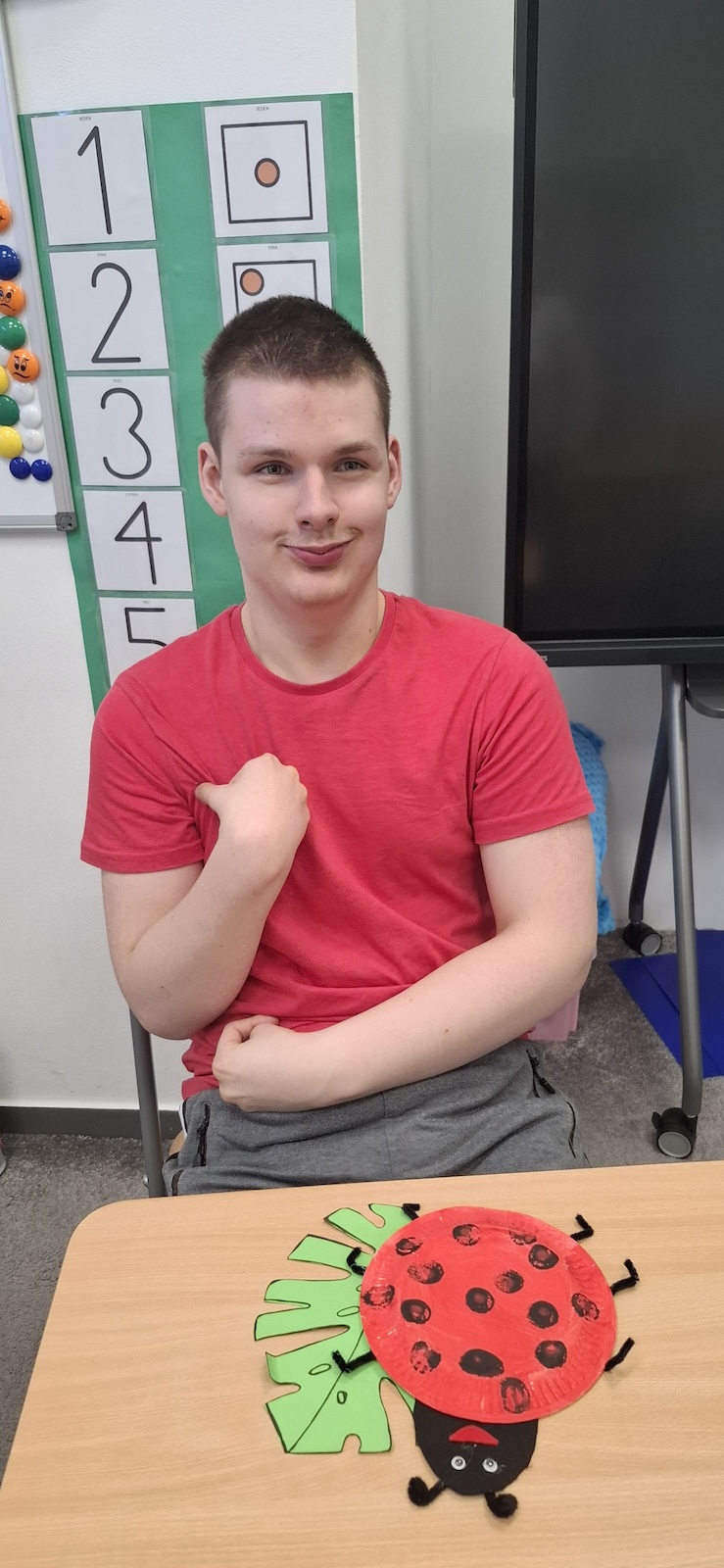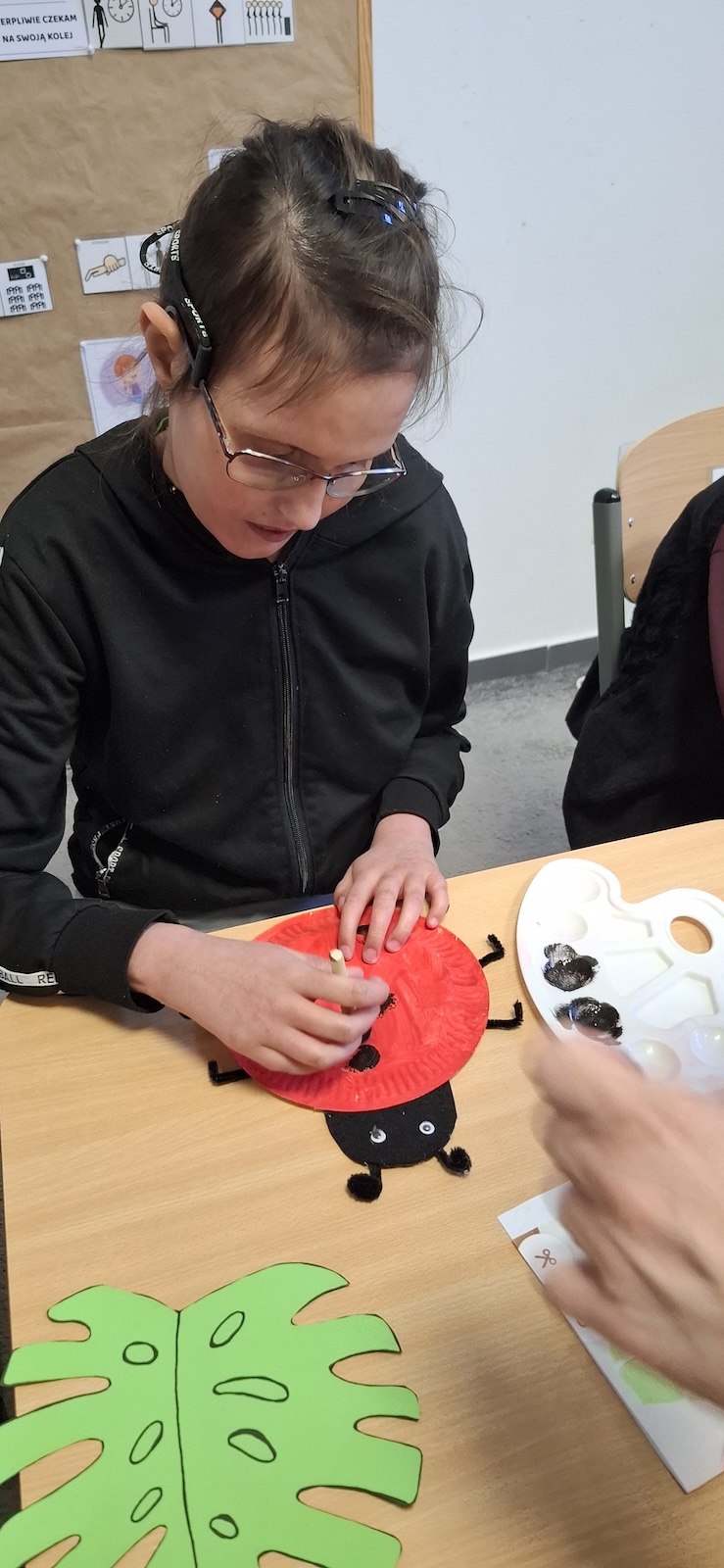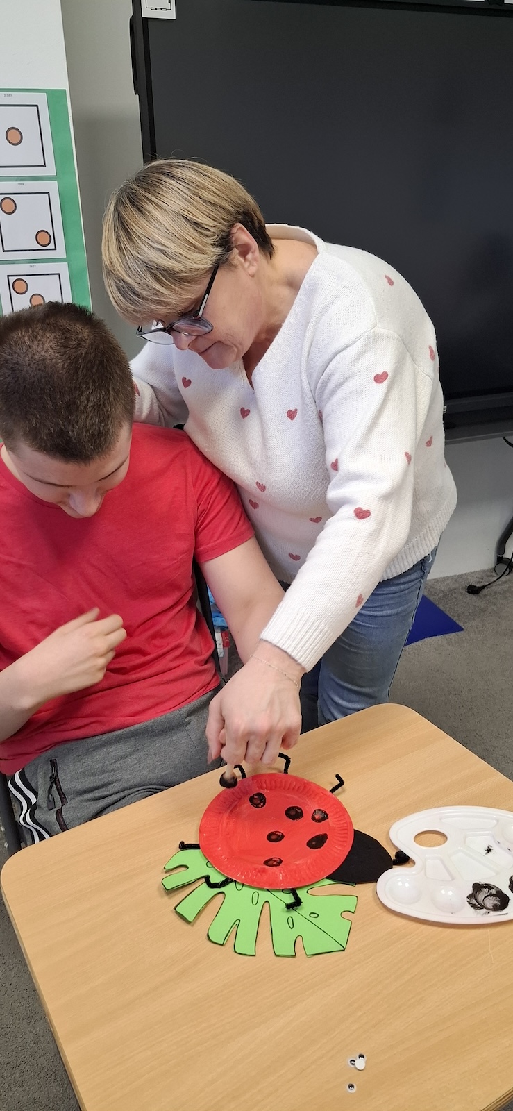 W naszej szkole nie brakuje kreatywnych pomysłów na zajęcia plastyczne. Tym razem uczniowie oddziału „II” wykonali urocze prace pt. „Biedronka na listku” - wykorzystując papier kolorowy, stempelek , farby, talerzyki papierowe , klej i dużo wyobraźni. Dzieci z wielkim zaangażowaniem tworzyły swoje biedronki – każda inna, wyjątkowa i niepowtarzalna. Z talerzyków papierowych wymalowanych na czerwono farbami powstał tułów, czarne kropki - powstały za pomocą stempli moczonych w czarnej farbie, a zielone listki stanowiły idealne tło dla tych wiosennych owadów. Zajęcia były nie tylko świetną zabawą, ale również doskonałą okazją do rozwijania sprawności manualnej i cierpliwości. Gotowe prace ozdobiły nasze szkolne korytarze i wniosły do szkoły dużo koloru oraz wiosennego nastroju.
