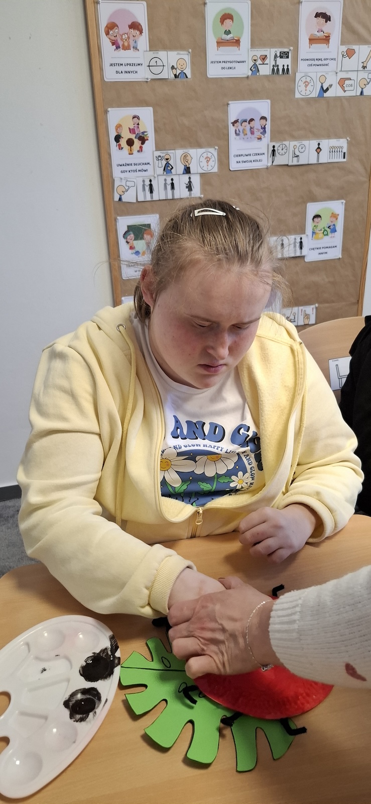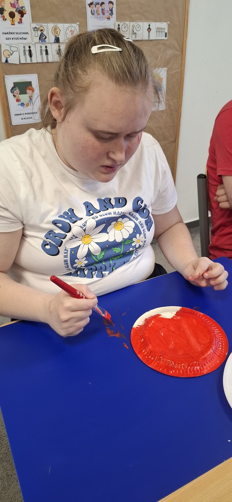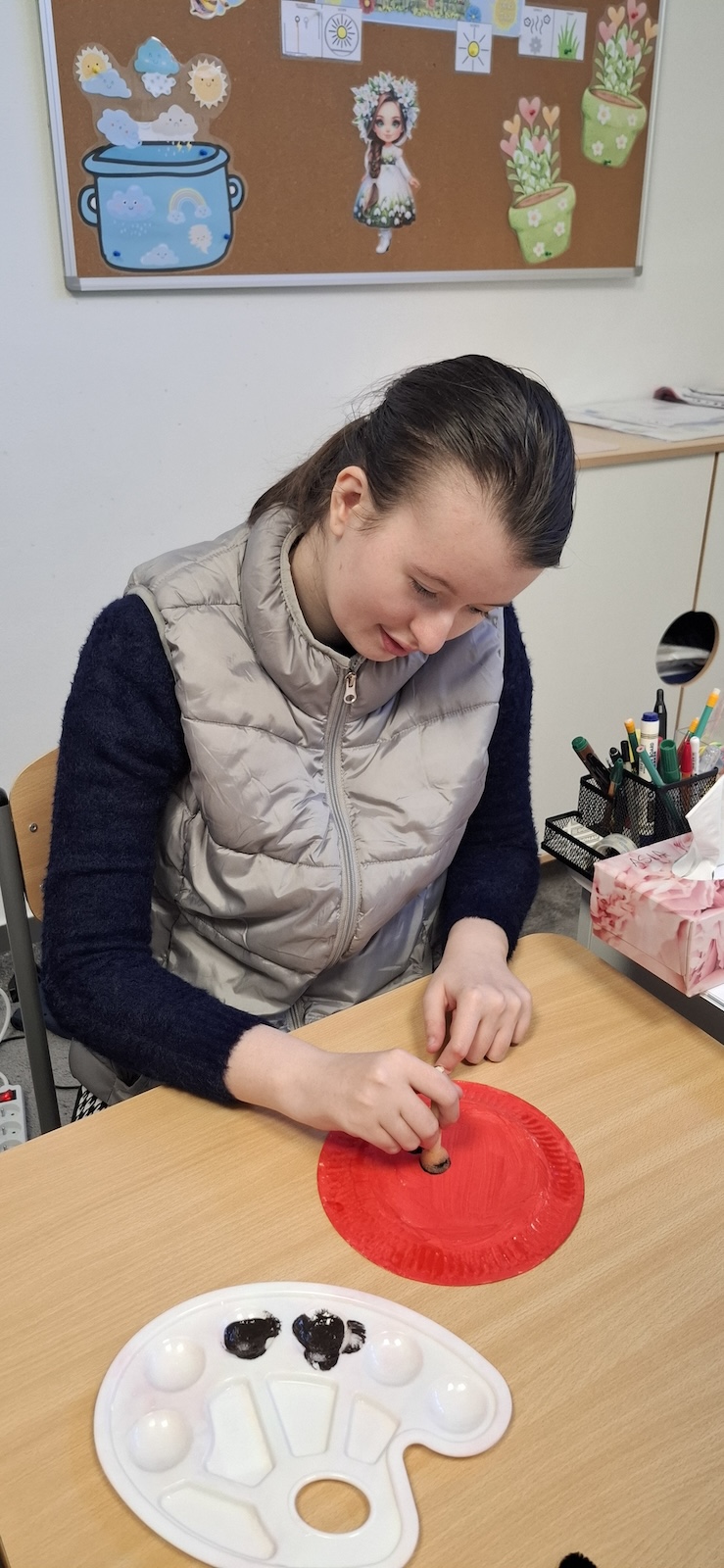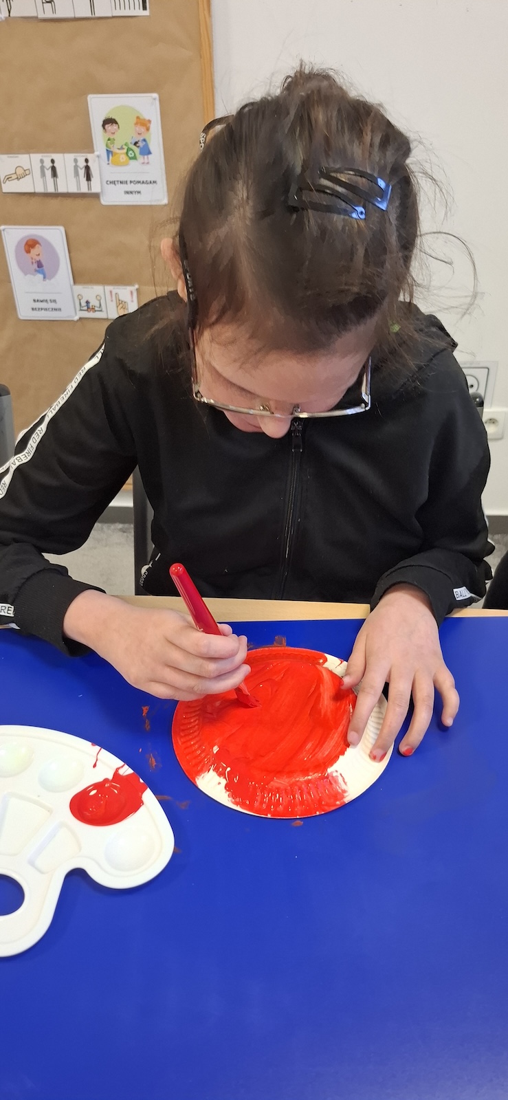 W naszej szkole nie brakuje kreatywnych pomysłów na zajęcia plastyczne. Tym razem uczniowie oddziału „II” wykonali urocze prace pt. „Biedronka na listku” - wykorzystując papier kolorowy, stempelek , farby, talerzyki papierowe , klej i dużo wyobraźni. Dzieci z wielkim zaangażowaniem tworzyły swoje biedronki – każda inna, wyjątkowa i niepowtarzalna. Z talerzyków papierowych wymalowanych na czerwono farbami powstał tułów, czarne kropki - powstały za pomocą stempli moczonych w czarnej farbie, a zielone listki stanowiły idealne tło dla tych wiosennych owadów. Zajęcia były nie tylko świetną zabawą, ale również doskonałą okazją do rozwijania sprawności manualnej i cierpliwości. Gotowe prace ozdobiły nasze szkolne korytarze i wniosły do szkoły dużo koloru oraz wiosennego nastroju.