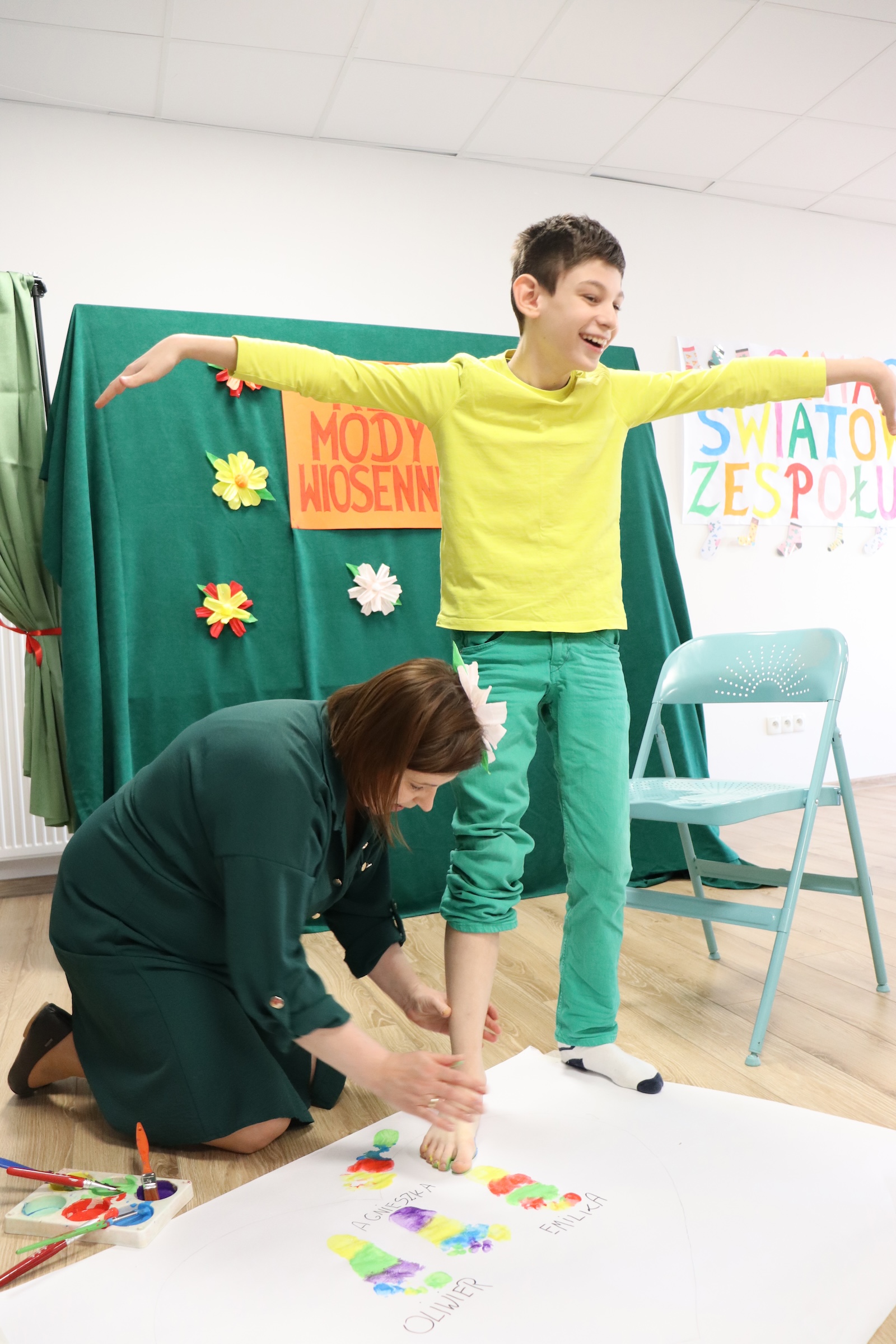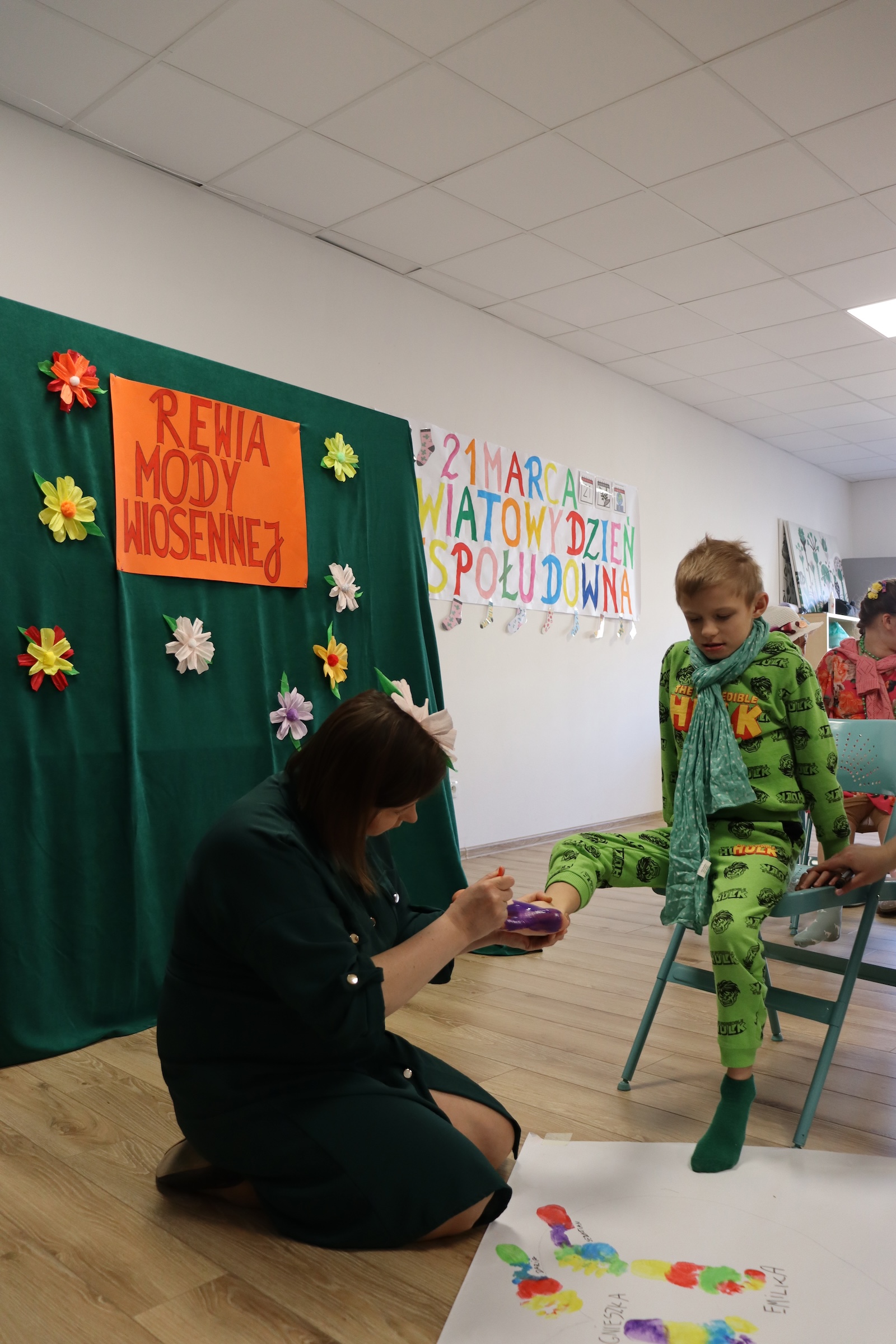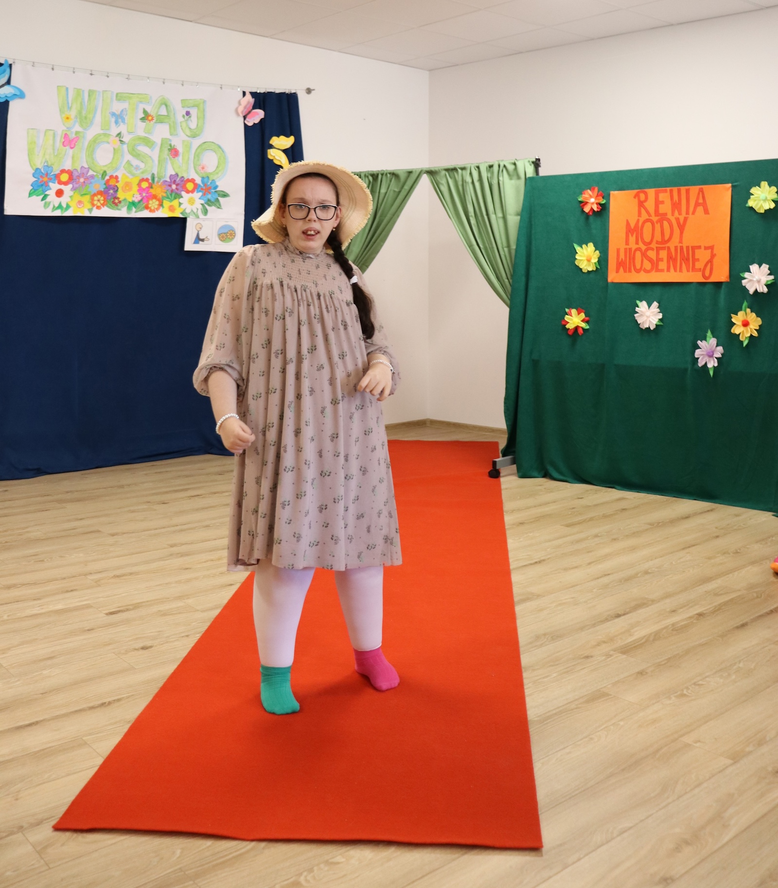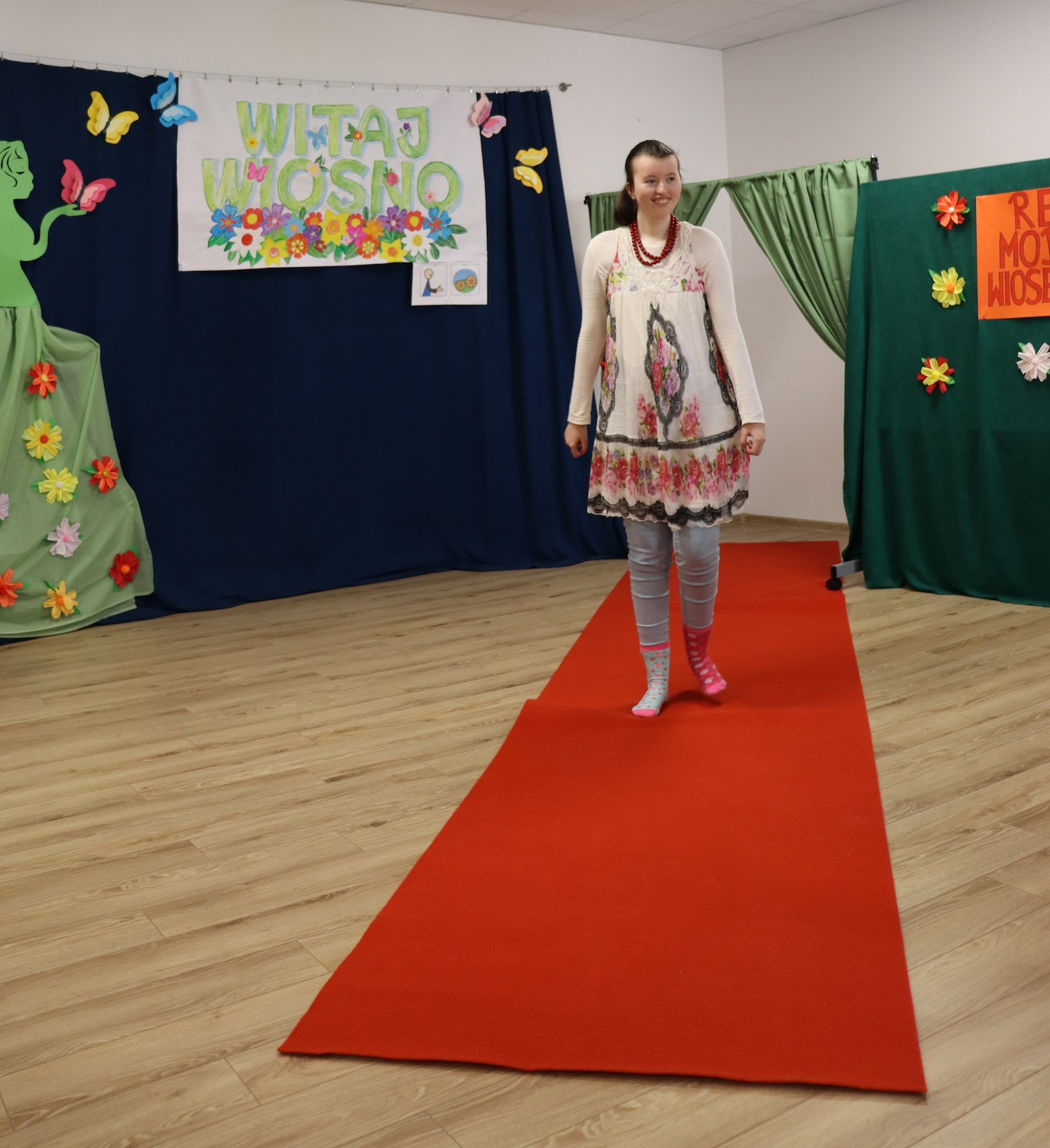 21 marca to pierwszy dzień kalendarzowej wiosny. Po długiej zimie wszyscy z utęsknieniem wyczekiwali tej daty, dlatego w naszej szkole postanowiliśmy uczcić ją w wyjątkowy sposób – poprzez zorganizowanie wiosennego pokazu mody, w którym udział wzięli uczniowie z różnych klas. Każdy uczestnik włożył mnóstwo serca i zaangażowania w przygotowanie swojej wiosennej kreacji. Pokaz był pełen kolorów, kreatywnych pomysłów i radosnej atmosfery. Oczywiście nie zabrakło również jury, które wyróżniło trzy osoby za szczególne zaangażowanie i wyjątkowy sposób zaprezentowania swojego stroju. Mimo to, wszyscy uczestnicy zasłużyli na miano zwycięzców! Po pokazie mody przystąpiliśmy do kolejnej części wydarzenia – w geście solidarności z naszymi koleżankami i kolegami z zespołem Downa, wspólnie odbijaliśmy na kartkach pomalowane stopy. Było przy tym mnóstwo śmiechu – okazało się, kto jest łaskotliwy, a kto z uśmiechem pozwolił pomalować sobie stopy i zostawić kolorowy ślad. Na zakończenie wspólnie zaśpiewaliśmy wesołą piosenkę o oznakach wiosny, a każdy uczeń otrzymał drobny upominek. To był radosny, pełen pozytywnej energii dzień, który na długo zostanie w naszej pamięci!