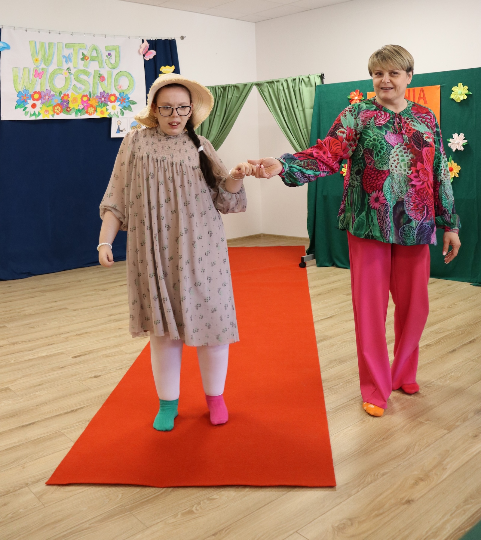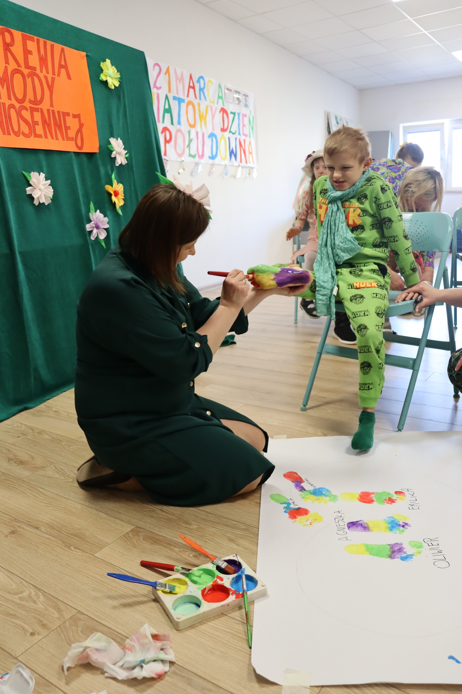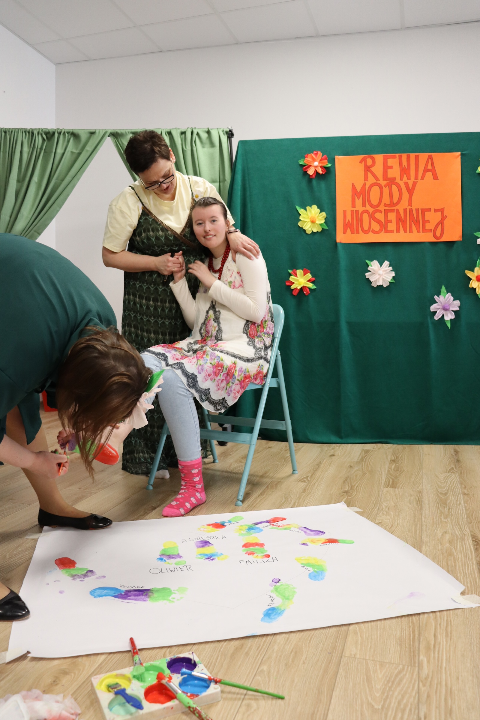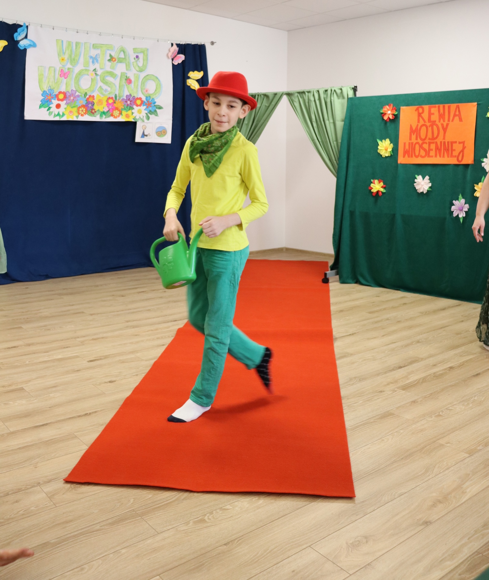 21 marca to pierwszy dzień kalendarzowej wiosny. Po długiej zimie wszyscy z utęsknieniem wyczekiwali tej daty, dlatego w naszej szkole postanowiliśmy uczcić ją w wyjątkowy sposób – poprzez zorganizowanie wiosennego pokazu mody, w którym udział wzięli uczniowie z różnych klas. Każdy uczestnik włożył mnóstwo serca i zaangażowania w przygotowanie swojej wiosennej kreacji. Pokaz był pełen kolorów, kreatywnych pomysłów i radosnej atmosfery. Oczywiście nie zabrakło również jury, które wyróżniło trzy osoby za szczególne zaangażowanie i wyjątkowy sposób zaprezentowania swojego stroju. Mimo to, wszyscy uczestnicy zasłużyli na miano zwycięzców! Po pokazie mody przystąpiliśmy do kolejnej części wydarzenia – w geście solidarności z naszymi koleżankami i kolegami z zespołem Downa, wspólnie odbijaliśmy na kartkach pomalowane stopy. Było przy tym mnóstwo śmiechu – okazało się, kto jest łaskotliwy, a kto z uśmiechem pozwolił pomalować sobie stopy i zostawić kolorowy ślad. Na zakończenie wspólnie zaśpiewaliśmy wesołą piosenkę o oznakach wiosny, a każdy uczeń otrzymał drobny upominek. To był radosny, pełen pozytywnej energii dzień, który na długo zostanie w naszej pamięci!