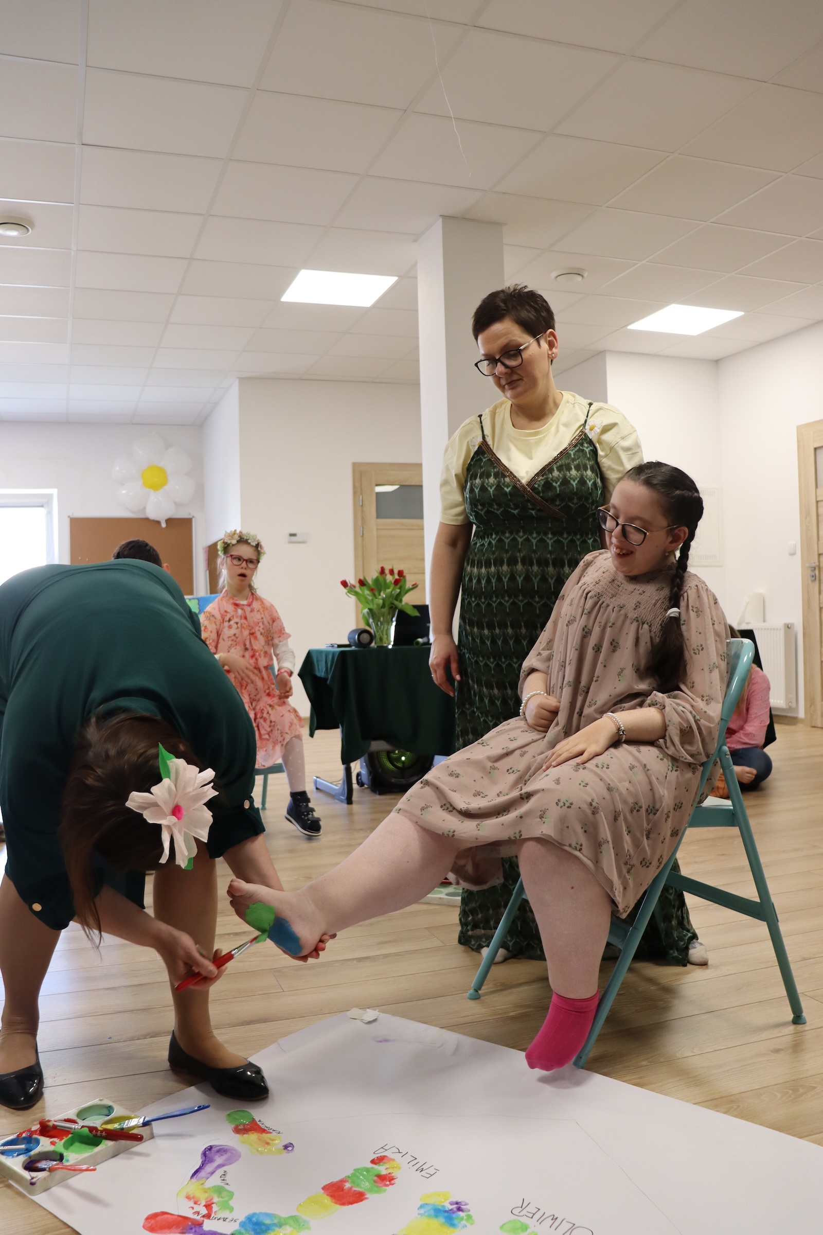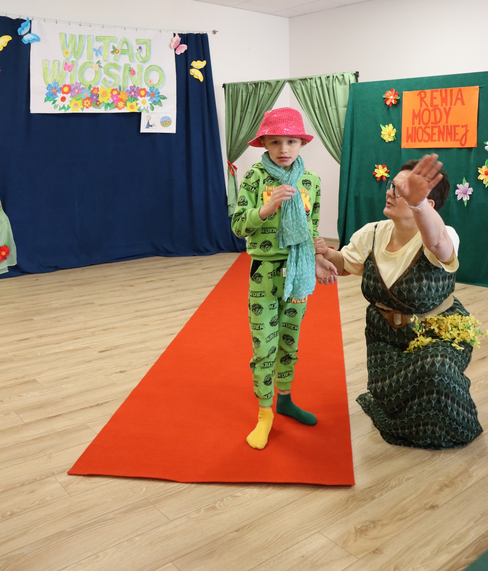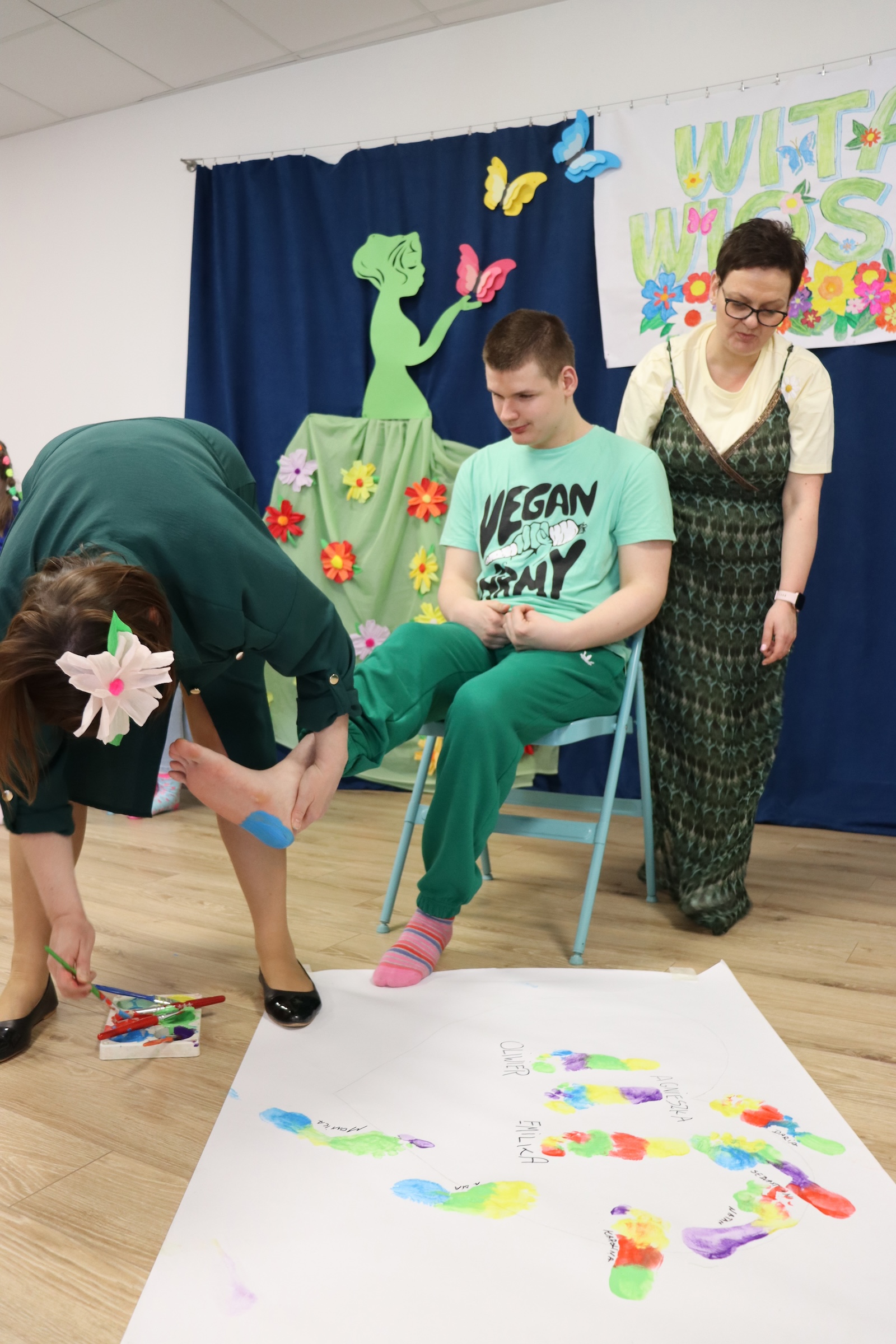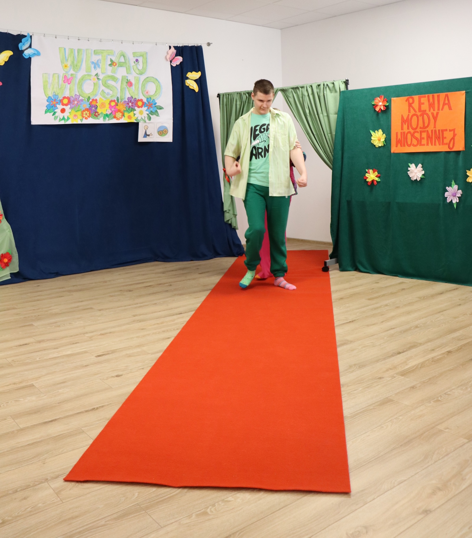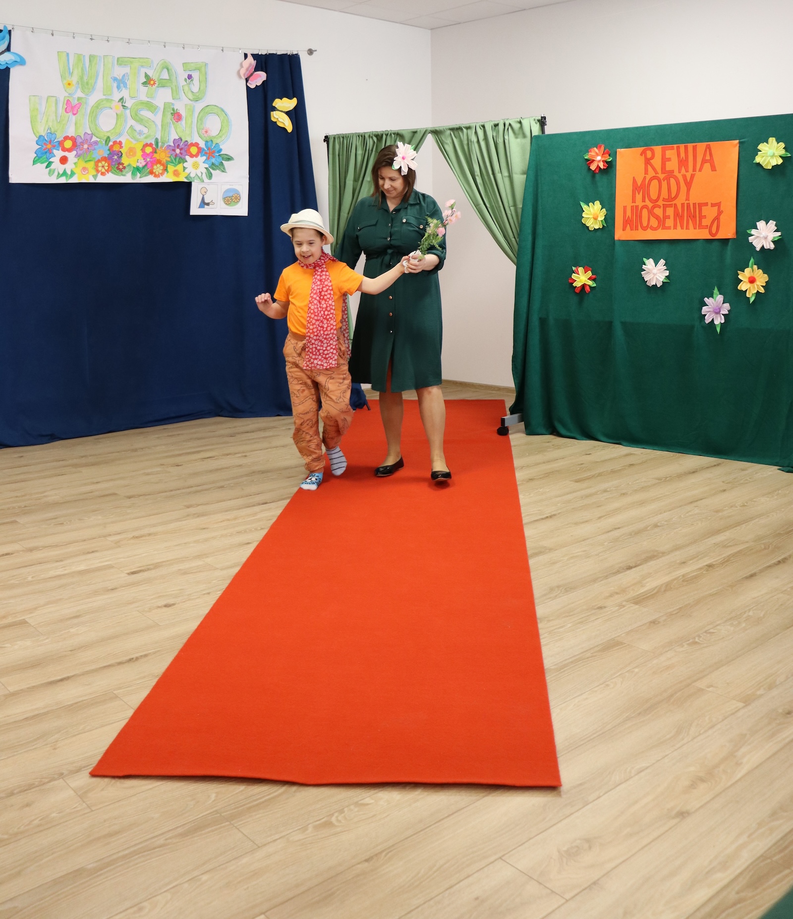 21 marca to pierwszy dzień kalendarzowej wiosny. Po długiej zimie wszyscy z utęsknieniem wyczekiwali tej daty, dlatego w naszej szkole postanowiliśmy uczcić ją w wyjątkowy sposób – poprzez zorganizowanie wiosennego pokazu mody, w którym udział wzięli uczniowie z różnych klas. Każdy uczestnik włożył mnóstwo serca i zaangażowania w przygotowanie swojej wiosennej kreacji. Pokaz był pełen kolorów, kreatywnych pomysłów i radosnej atmosfery. Oczywiście nie zabrakło również jury, które wyróżniło trzy osoby za szczególne zaangażowanie i wyjątkowy sposób zaprezentowania swojego stroju. Mimo to, wszyscy uczestnicy zasłużyli na miano zwycięzców! Po pokazie mody przystąpiliśmy do kolejnej części wydarzenia – w geście solidarności z naszymi koleżankami i kolegami z zespołem Downa, wspólnie odbijaliśmy na kartkach pomalowane stopy. Było przy tym mnóstwo śmiechu – okazało się, kto jest łaskotliwy, a kto z uśmiechem pozwolił pomalować sobie stopy i zostawić kolorowy ślad. Na zakończenie wspólnie zaśpiewaliśmy wesołą piosenkę o oznakach wiosny, a każdy uczeń otrzymał drobny upominek. To był radosny, pełen pozytywnej energii dzień, który na długo zostanie w naszej pamięci!