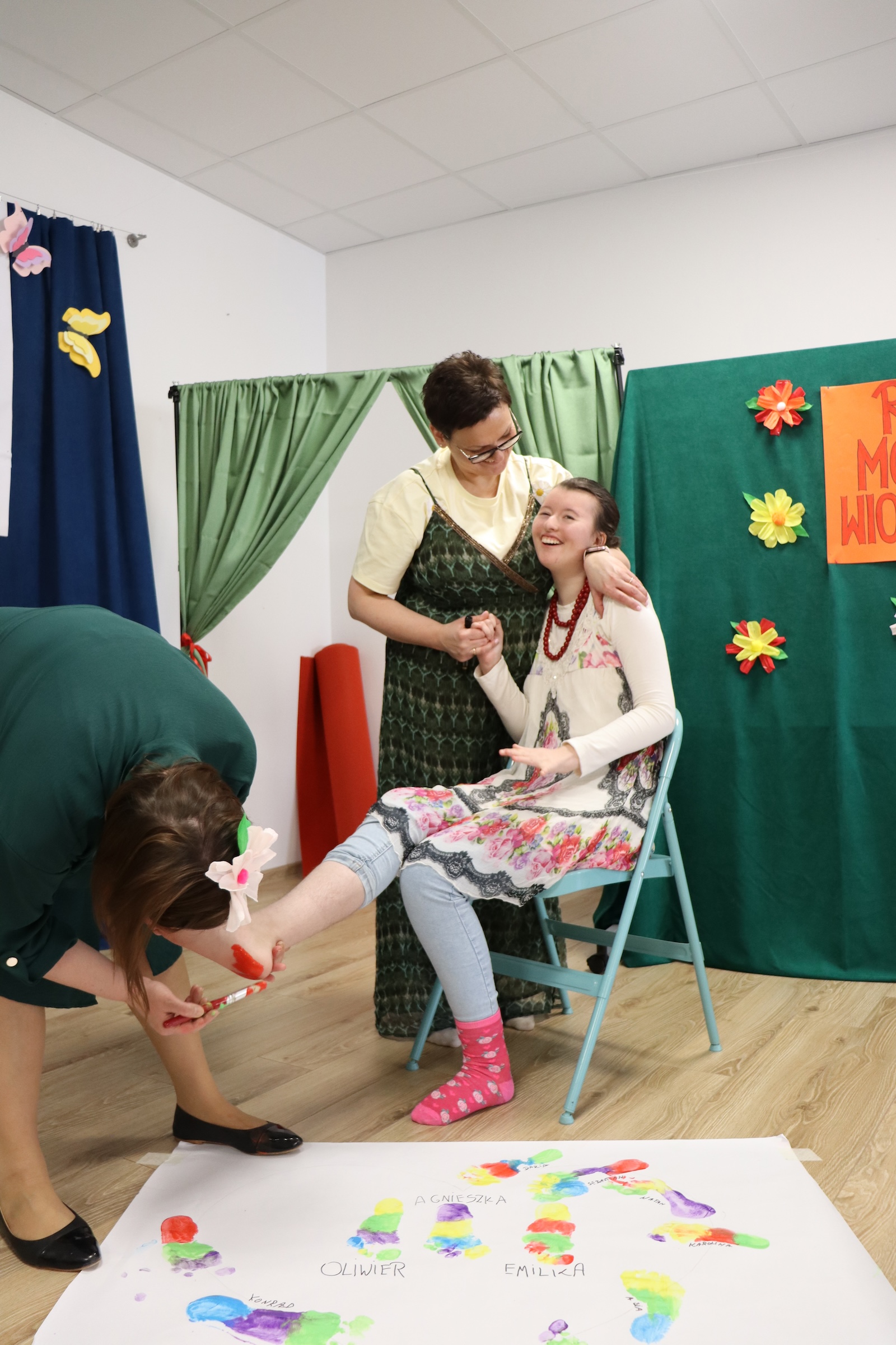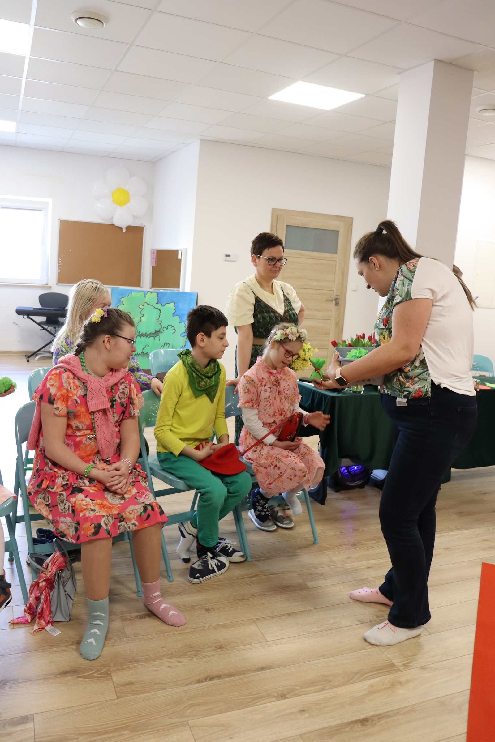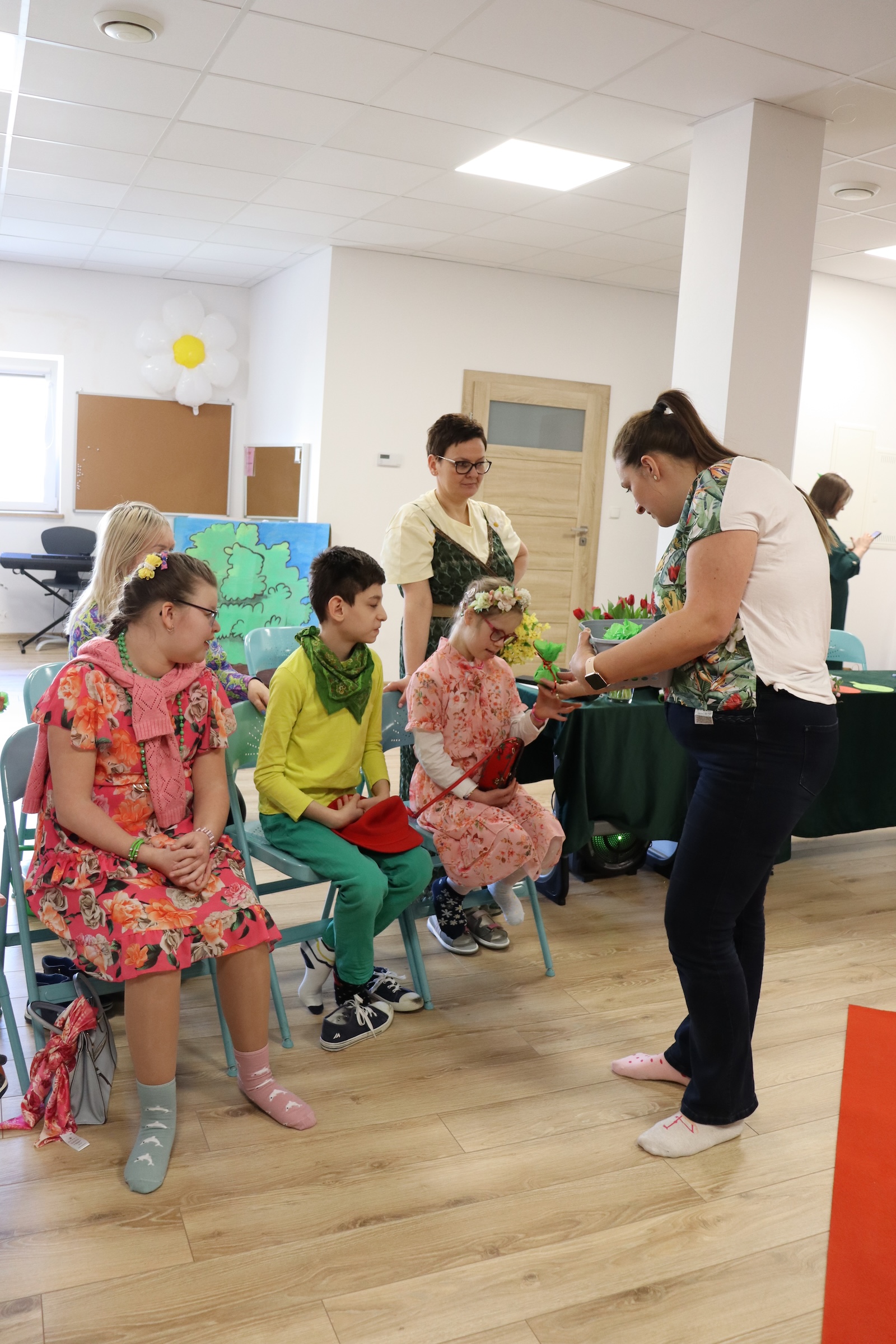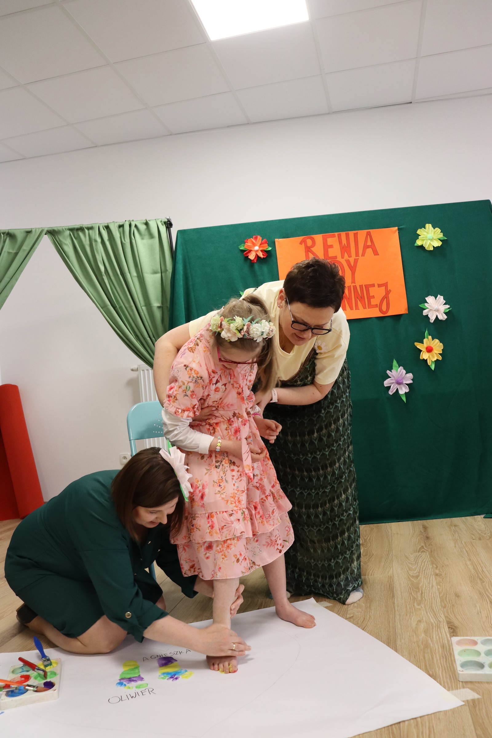 21 marca to pierwszy dzień kalendarzowej wiosny. Po długiej zimie wszyscy z utęsknieniem wyczekiwali tej daty, dlatego w naszej szkole postanowiliśmy uczcić ją w wyjątkowy sposób – poprzez zorganizowanie wiosennego pokazu mody, w którym udział wzięli uczniowie z różnych klas. Każdy uczestnik włożył mnóstwo serca i zaangażowania w przygotowanie swojej wiosennej kreacji. Pokaz był pełen kolorów, kreatywnych pomysłów i radosnej atmosfery. Oczywiście nie zabrakło również jury, które wyróżniło trzy osoby za szczególne zaangażowanie i wyjątkowy sposób zaprezentowania swojego stroju. Mimo to, wszyscy uczestnicy zasłużyli na miano zwycięzców! Po pokazie mody przystąpiliśmy do kolejnej części wydarzenia – w geście solidarności z naszymi koleżankami i kolegami z zespołem Downa, wspólnie odbijaliśmy na kartkach pomalowane stopy. Było przy tym mnóstwo śmiechu – okazało się, kto jest łaskotliwy, a kto z uśmiechem pozwolił pomalować sobie stopy i zostawić kolorowy ślad. Na zakończenie wspólnie zaśpiewaliśmy wesołą piosenkę o oznakach wiosny, a każdy uczeń otrzymał drobny upominek. To był radosny, pełen pozytywnej energii dzień, który na długo zostanie w naszej pamięci!