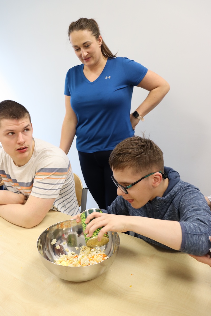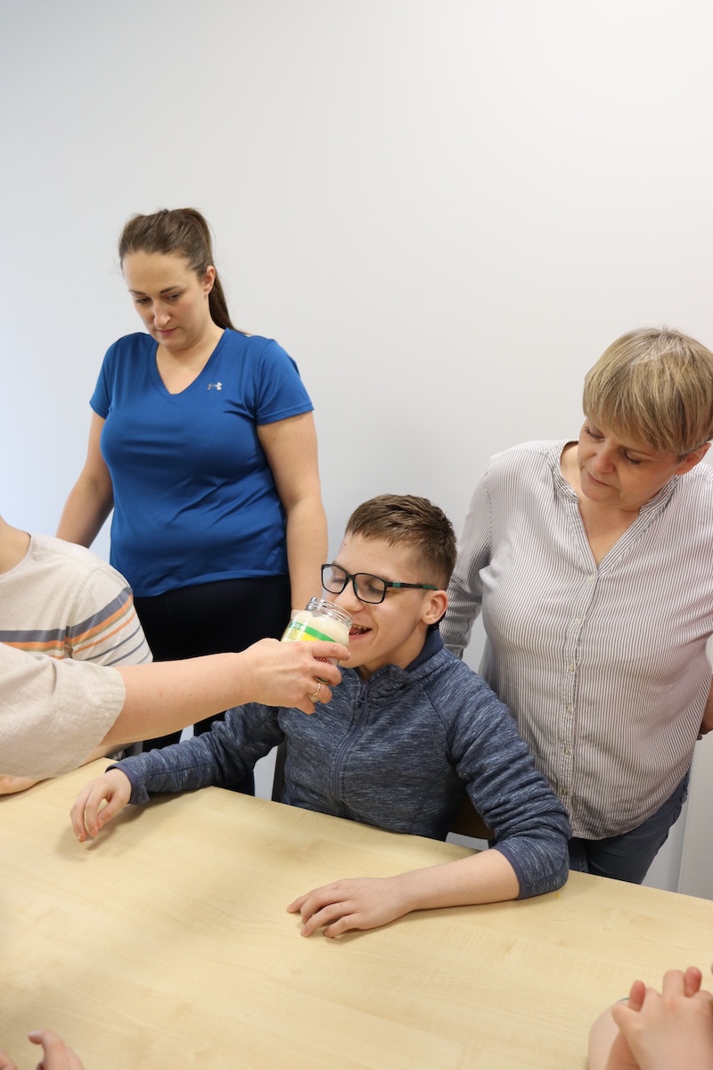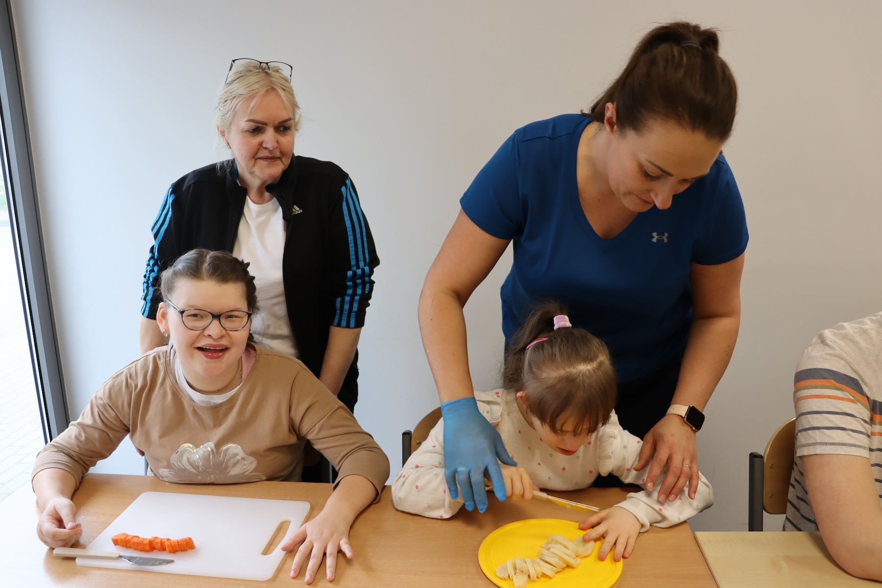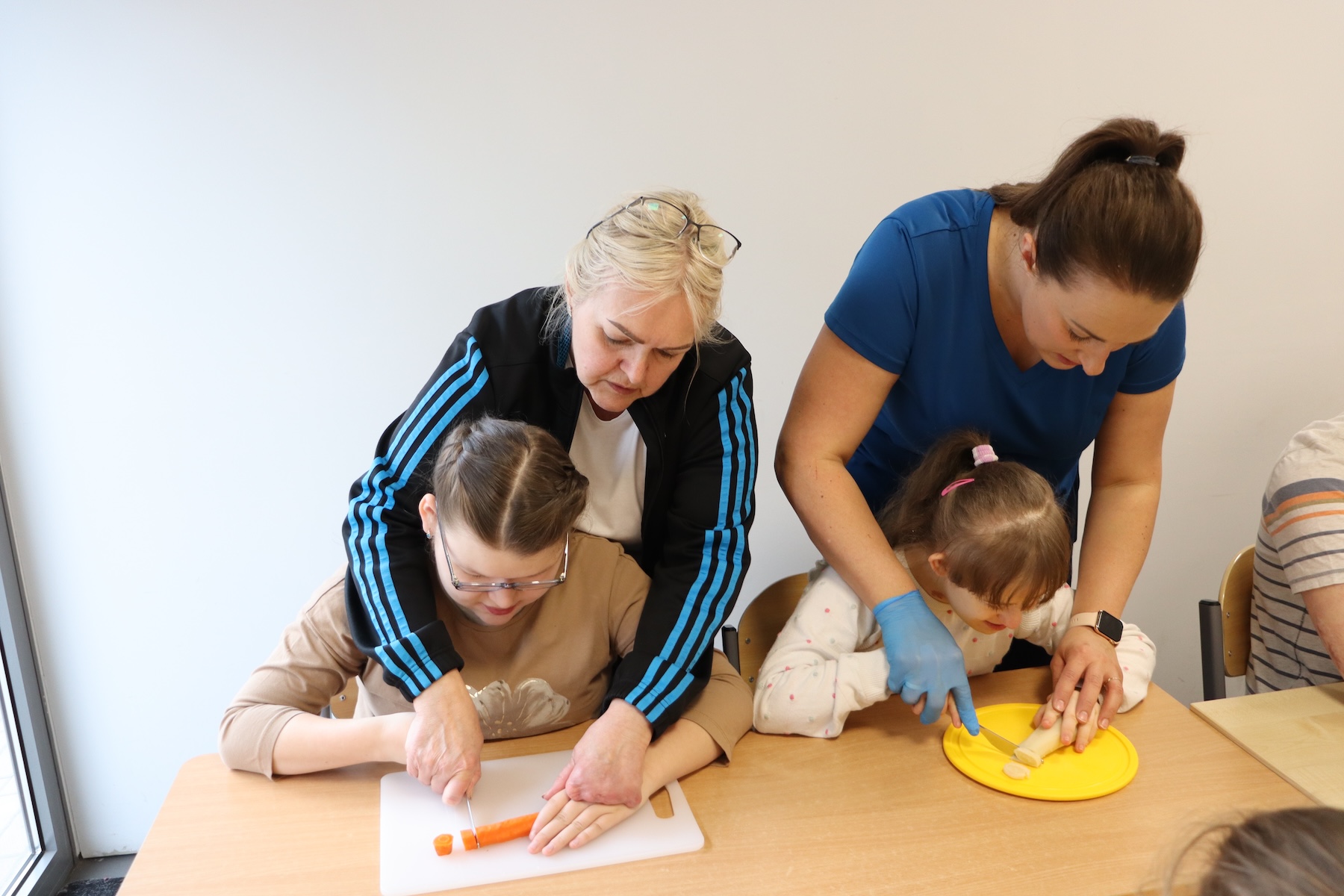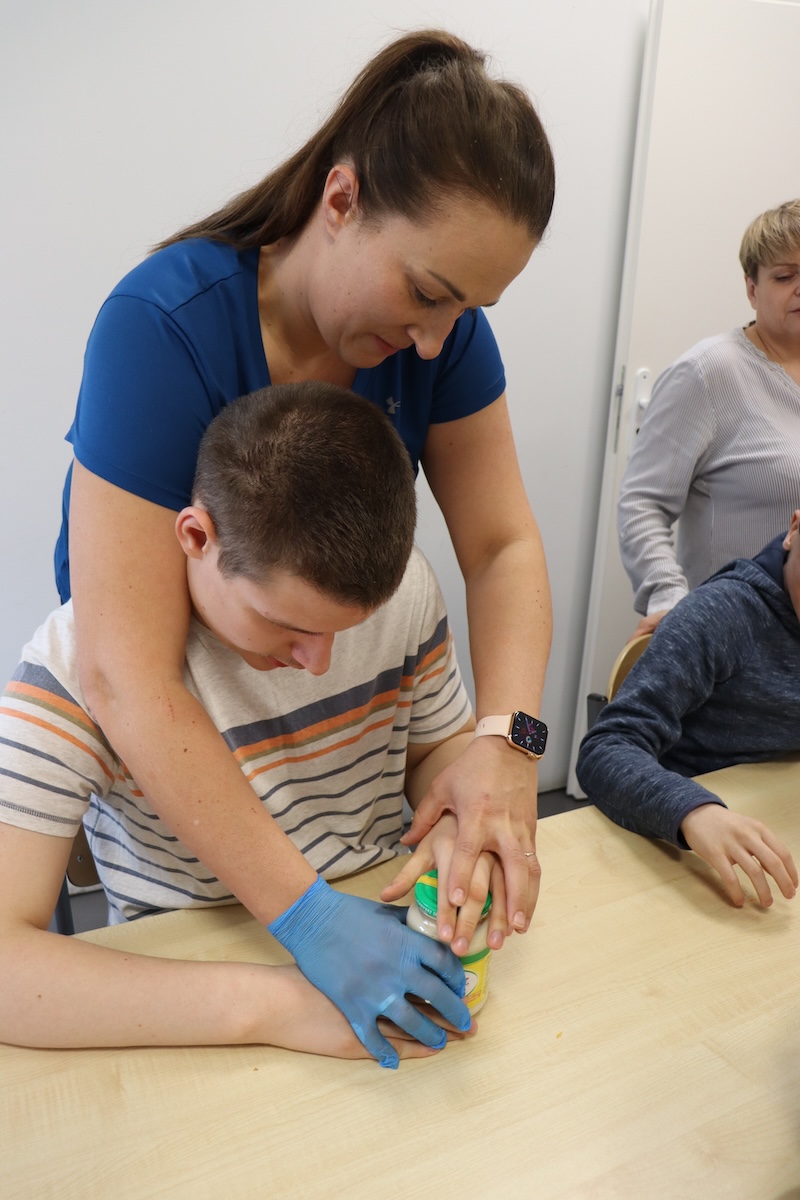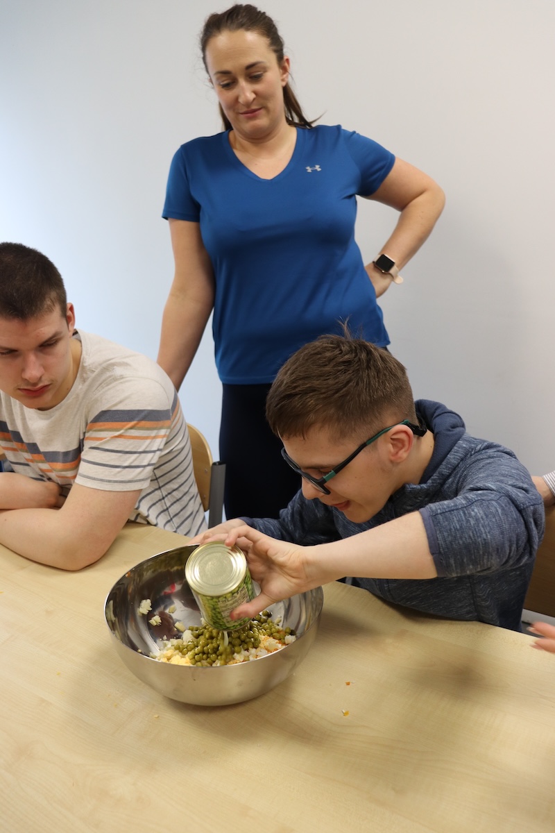 Wielki Wtorek w naszej szkole był dniem pełnym zaangażowania, pracy zespołowej i radosnych przygotowań do nadchodzących świąt. Już od samego rana panie wraz z uczniami zabrały się do pracy– najpierw zostały obrane i dokładnie umyte warzywa: marchewki, ziemniaki, pietruszka oraz jajka ugotowane na twardo. Wszystkie te składniki były niezbędne do przygotowania tradycyjnej sałatki jarzynowej, która miała być jednym z głównych elementów naszego szkolnego Śniadania Wielkanocnego. Po przygotowaniu produktów uczniowie, korzystając z oprogramowania MÓWik, nazywali poszczególne warzywa, ucząc się przy tym ich nazw oraz rozwijając swoje umiejętności komunikacyjne. To była doskonała okazja do połączenia nauki z praktycznym działaniem. Następnie wszyscy razem przystąpiliśmy do krojenia składników – każdy miał swoje zadanie i pracował z dużym zaangażowaniem. Pokrojone warzywa i jajka trafiły do jednej dużej misy, do której dodaliśmy naturalny jogurt, odrobinę majonezu dla smaku oraz przyprawy. Po dokładnym wymieszaniu sałatki została ona szczelnie przykryta i wstawiona do lodówki. Dzięki wspólnej pracy i dobrej organizacji wszystko przebiegło sprawnie, a my z niecierpliwością czekaliśmy na kolejny dzień, kiedy podczas uroczystego Śniadania Wielkanocnego będziemy mogli spróbować efektów naszej kulinarnej pracy.