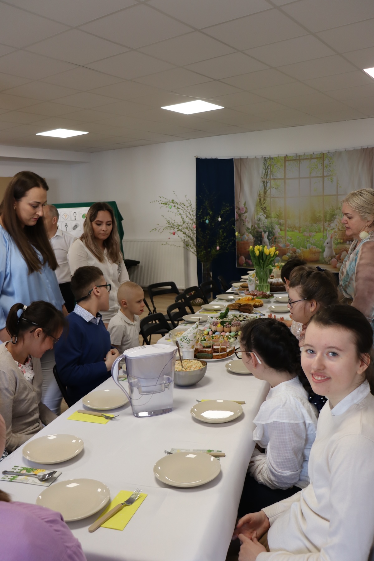 W Wielką Środę w naszej szkole wspólnie z uczniami zasiedliśmy do uroczystego Śniadania Wielkanocnego. Już od poniedziałku trwały intensywne przygotowania – razem z uczniami szykowaliśmy tradycyjną sałatkę jarzynową oraz pyszne babeczki marchewkowe. Świętowanie rozpoczęliśmy od złożenia sobie świątecznych życzeń. Następnie zasiedliśmy do pięknie nakrytego stołu i z radością próbowaliśmy potraw, które wspólnie przygotowaliśmy. Atmosfera była serdeczna, pełna uśmiechów i wzruszeń. Po części degustacyjnej przeszliśmy do wspólnego odśpiewania radosnego „Alleluja!”. Na zakończenie uczniowie udali się na poszukiwania wielkanocnych jajeczek, które następnie posłużyły do ozdobienia naszego szkolnego drzewka wielkanocnego. Z okazji Świąt Wielkanocnych życzymy wszystkim zdrowia, spokoju oraz radości. Niech Zmartwychwstały Chrystus obdarzy Was swoim błogosławieństwem i napełni serca nadzieją!