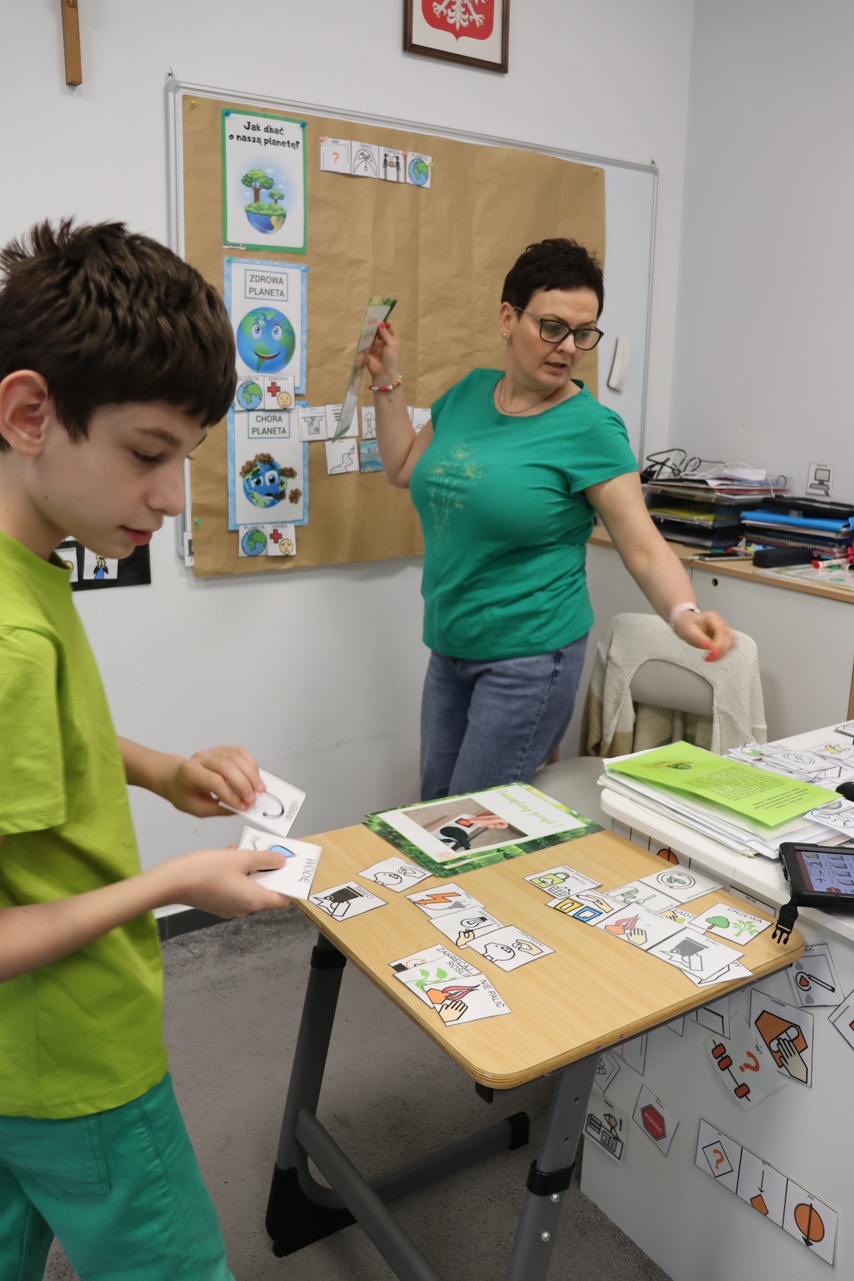 22 kwietnia obchodzony jest Światowy Dzień Ziemi – wyjątkowe święto poświęcone promowaniu postaw proekologicznych oraz zwiększaniu świadomości na temat ochrony środowiska. Tego dnia szczególnie podkreśla się, jak ważne jest dbanie o naszą planetę i podejmowanie codziennych działań na rzecz jej dobra. W naszej szkole również uczciliśmy ten dzień w sposób wyjątkowy. Celem było nie tylko przekazanie wiedzy na temat ekologii, ale przede wszystkim kształtowanie postawy odpowiedzialności za środowisko wśród naszych uczniów. Zajęcia rozpoczęliśmy od obejrzenia filmu edukacyjnego, który w przystępny sposób ukazywał, jak każdy z nas może troszczyć się o Ziemię – zarówno w domu, jak i poza nim. Następnie uczniowie uczestniczyli w ćwiczeniu, w którym segregowali różne zachowania na te pozytywne – proekologiczne oraz negatywne – szkodliwe dla środowiska. Dzięki temu utrwalili dobre nawyki i uświadomili sobie, jakich działań powinni unikać. Na zakończenie wszyscy przystąpili do praktycznego zadania – wspólnego segregowania odpadów. Uczniowie uczyli się, jak prawidłowo rozdzielać śmieci na odpowiednie frakcje: papier, plastik, szkło, bioodpady i odpady zmieszane. Dla wielu była to nie tylko nauka, ale i świetna zabawa. Obchody Światowego Dnia Ziemi w naszej szkole były nie tylko pouczające, ale także inspirujące. Mamy nadzieję, że zdobyta wiedza i doświadczenie przełożą się na codzienne wybory naszych uczniów, a troska o środowisko stanie się dla nich czymś naturalnym.
