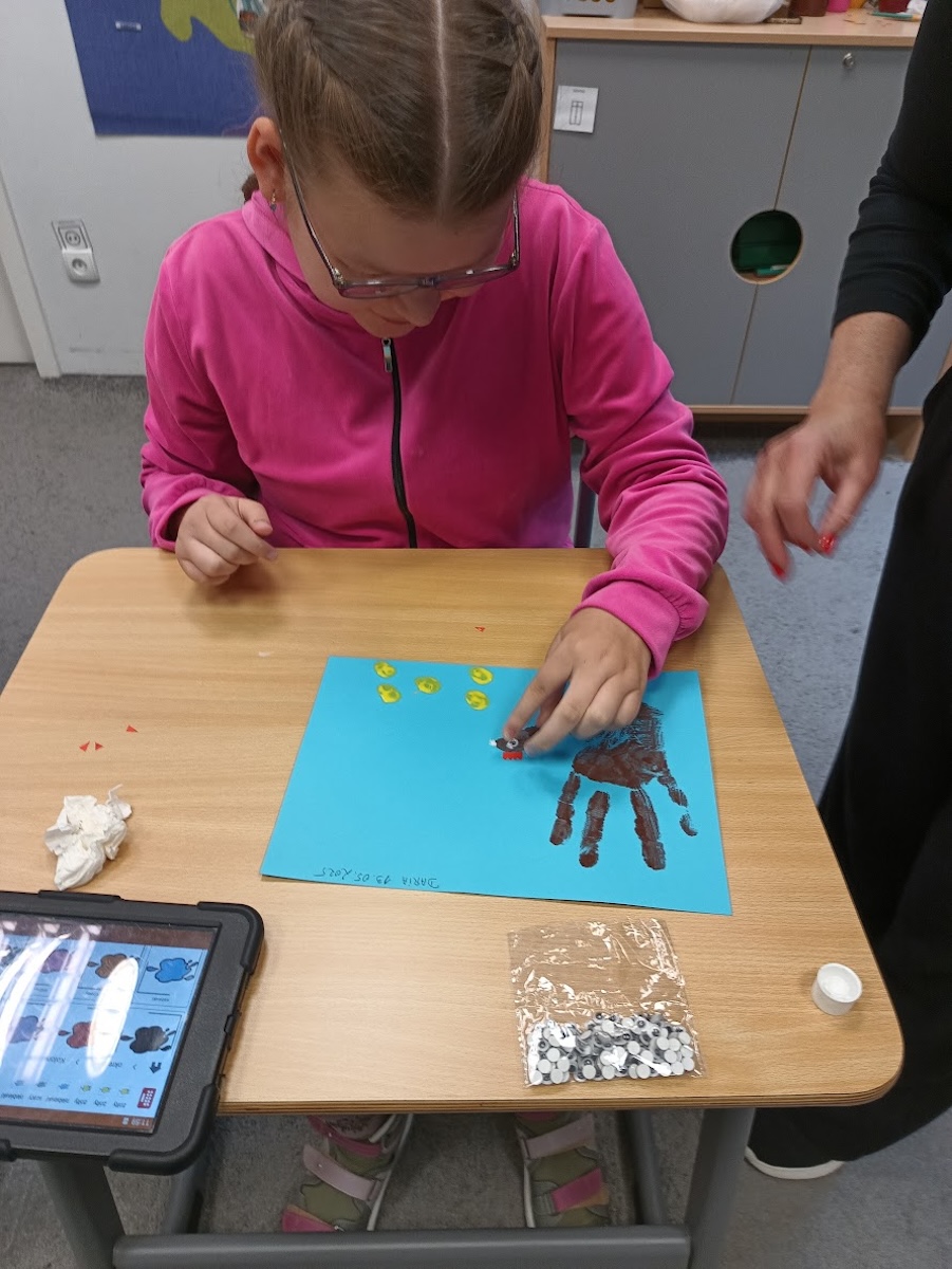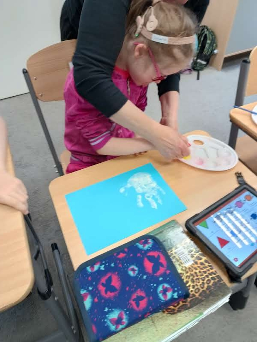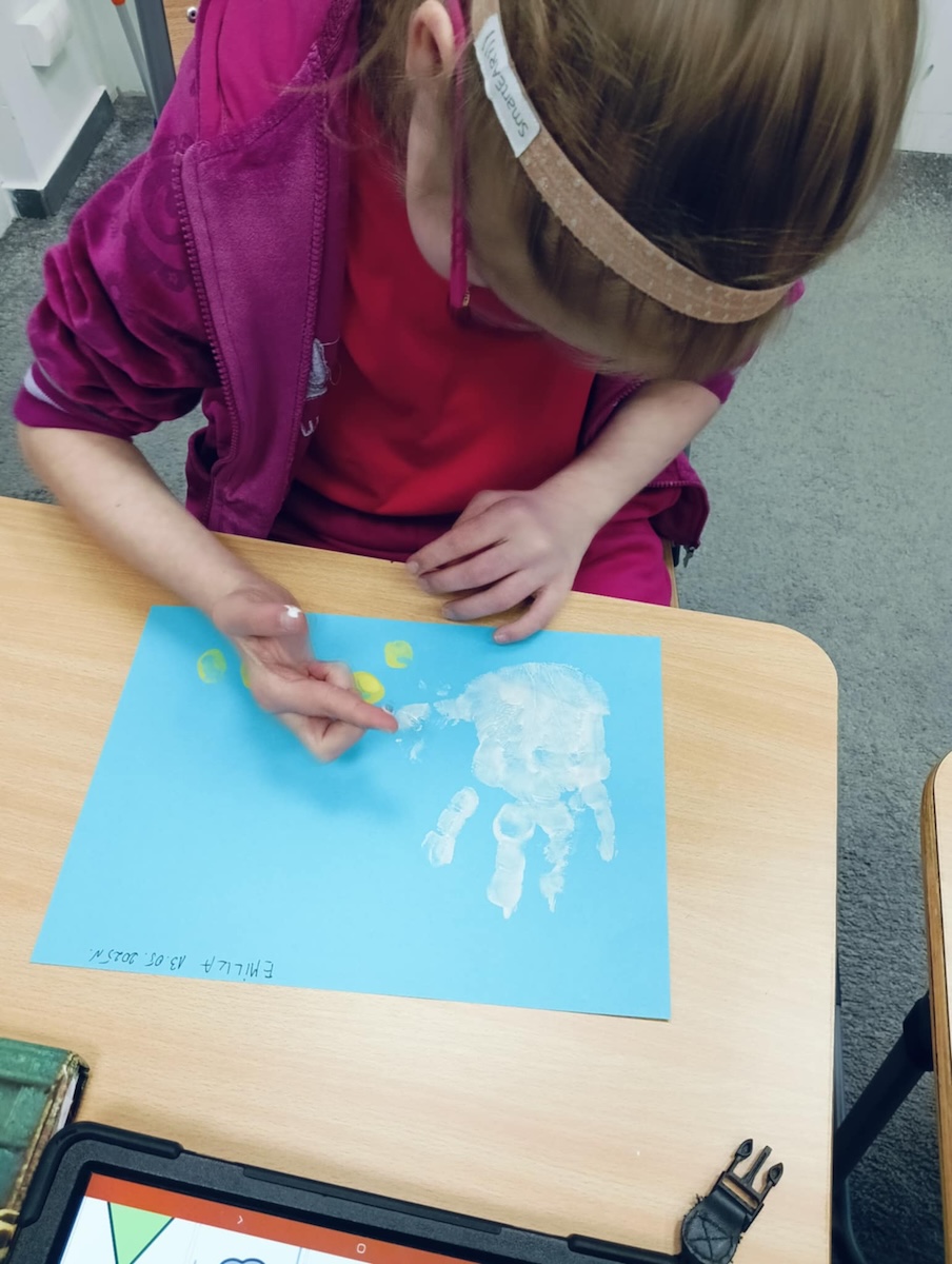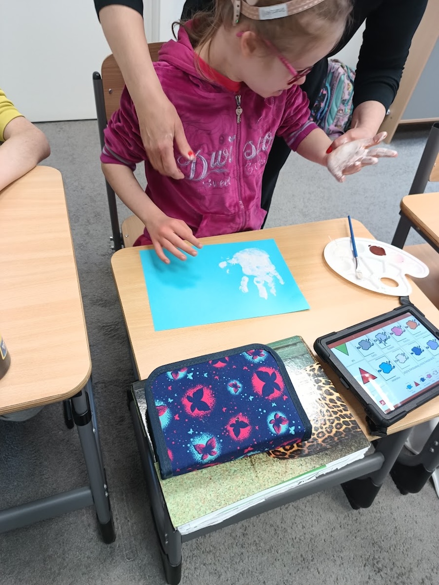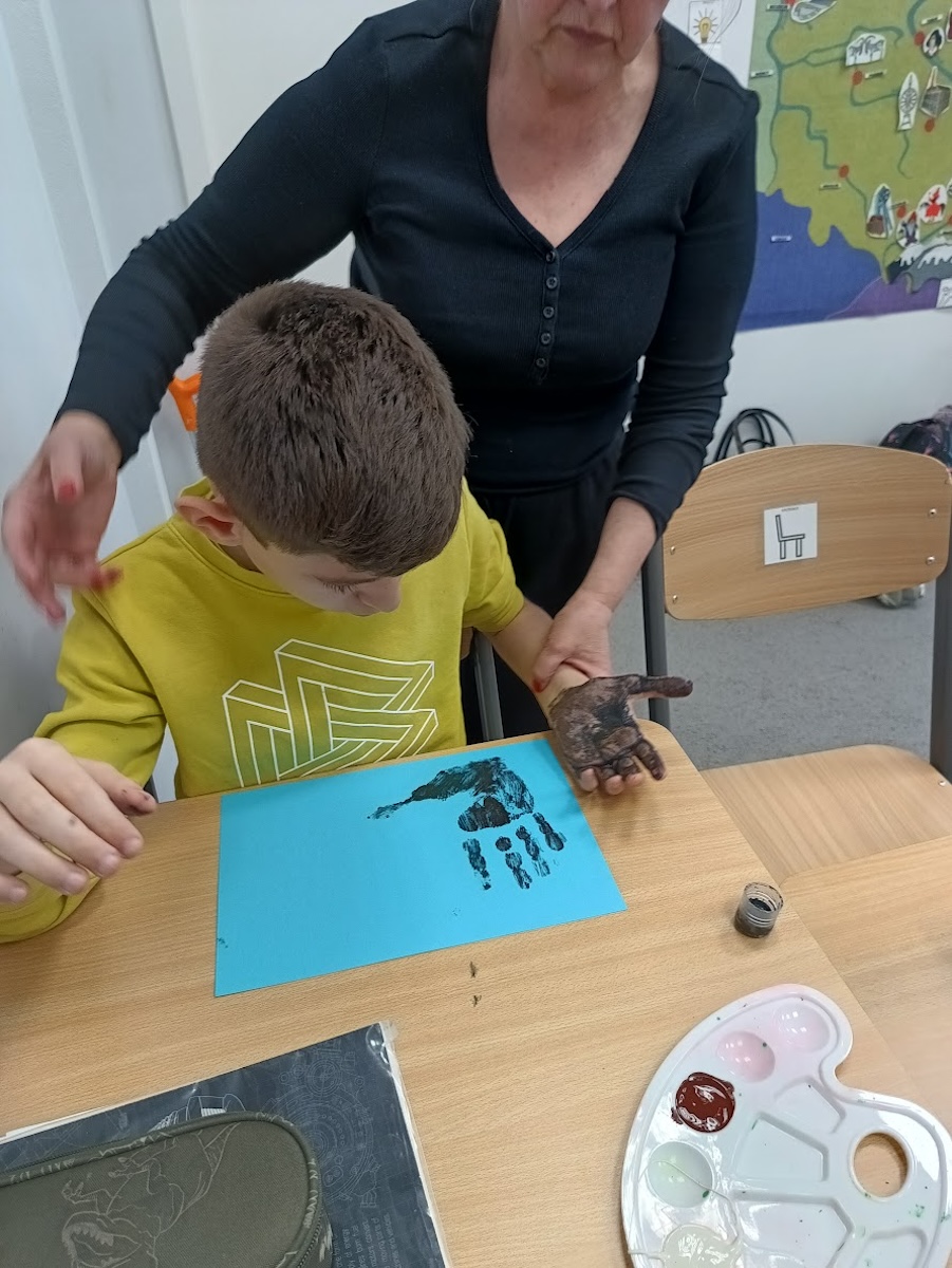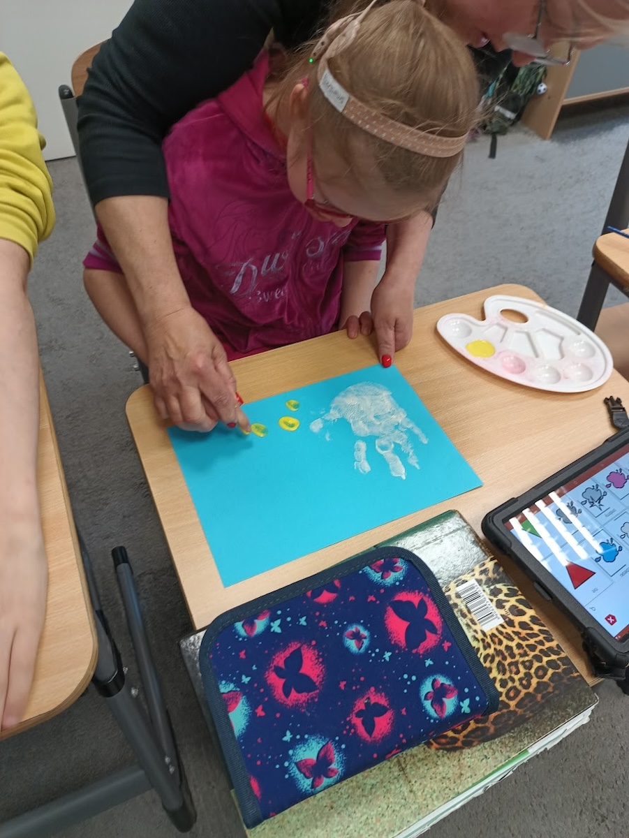 Podczas zajęć w minionym tygodniu rozmawialiśmy na temat zwierząt hodowlanych. Uczniowie poznawali różne gatunki zwierząt żyjących w gospodarstwach rolnych oraz uczyły się, w jakich miejscach mieszkają – wspólnie segregowaliśmy je według środowiska życia. Po części dydaktycznej przeszliśmy do działania plastycznego, które miało na celu utrwalenie zdobytej wiedzy w kreatywny sposób. Dzieci z oddziału „I” wykonały pracę plastyczną pod tytułem „Kurczątko i Kura”. Do jej stworzenia wykorzystały kolorowe kartki, farby oraz… swoje dłonie! Malowały je farbami i odbijały na kartkach papieru, tworząc sylwetki ptaków. Działanie to sprawiło dzieciom wiele radości i było świetną okazją do rozwijania sprawności manualnej. Oddział „II” przygotował pracę pod tytułem „Łaciata Krowa”. Wykorzystano różnorodne materiały plastyczne, a dzieci z dużym zaangażowaniem wyklejały sylwetkę krowy, dbając o jej charakterystyczne czarne łaty. Dzięki temu ćwiczyły spostrzegawczość, precyzję i wyobraźnię. Zajęcia przebiegły w miłej atmosferze, a pracę plastyczne ozdobiły korytarze naszej szkoły.