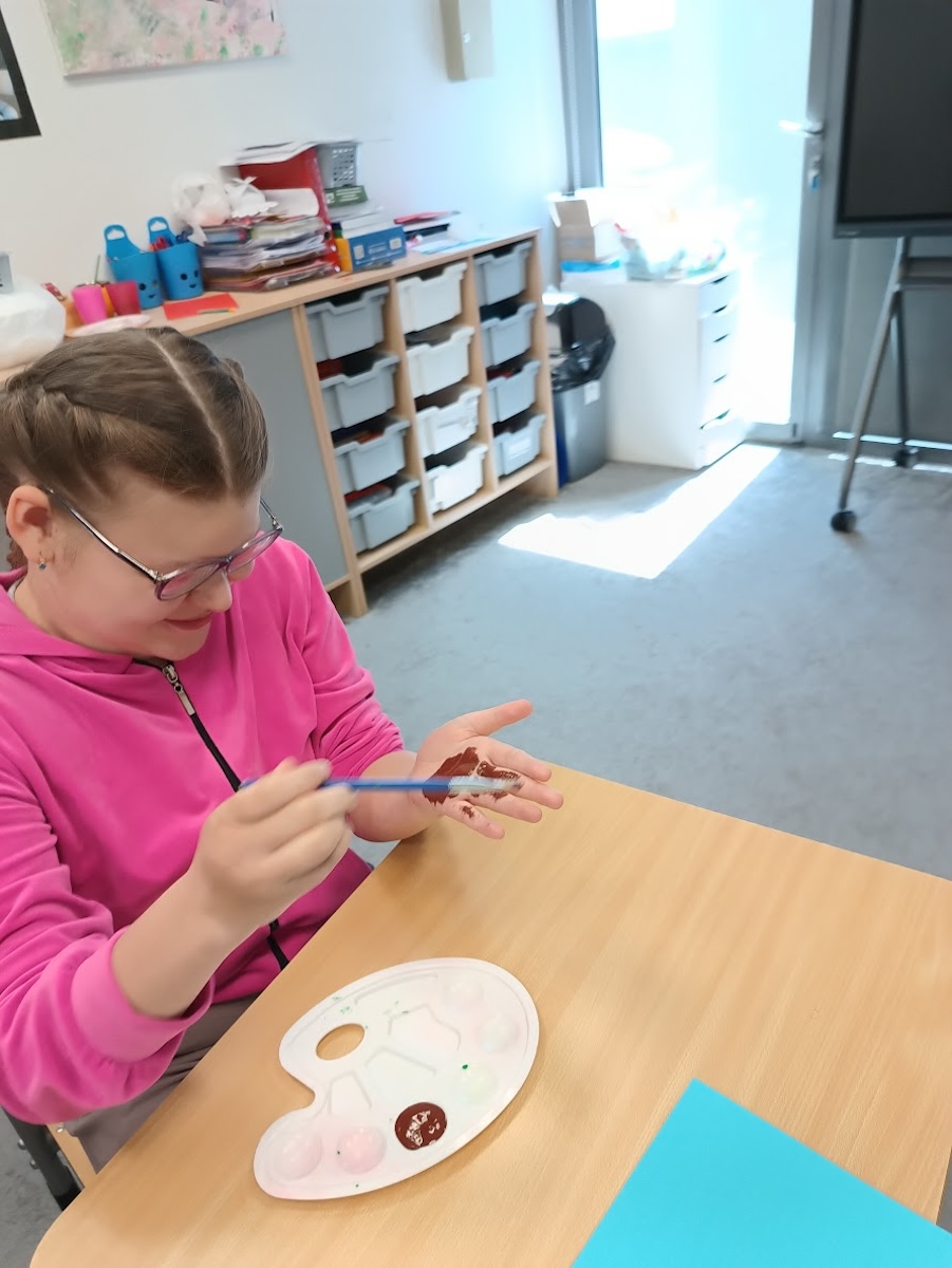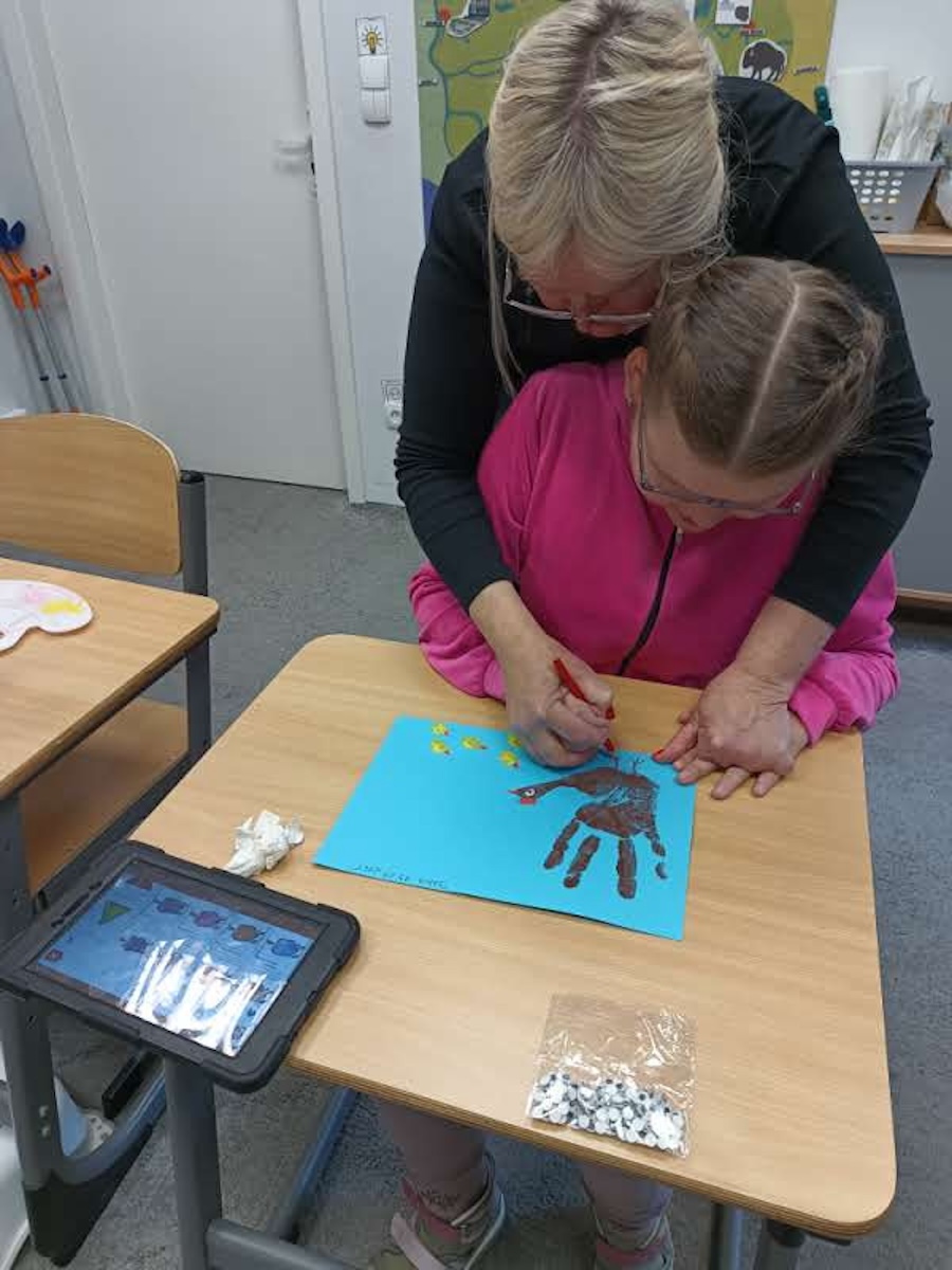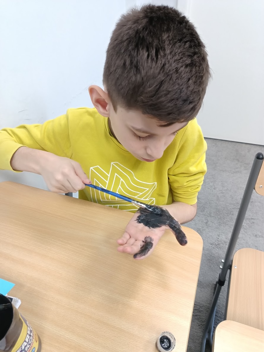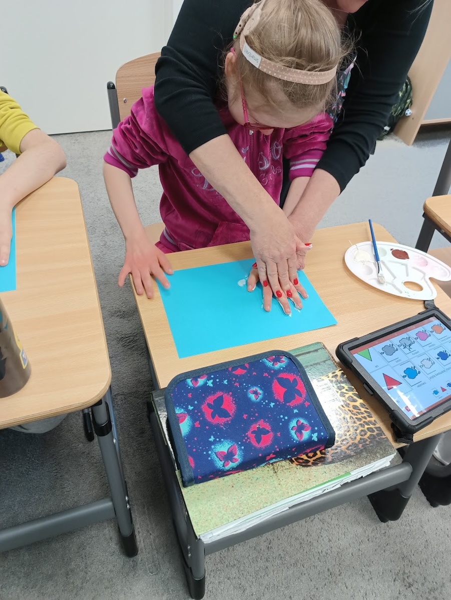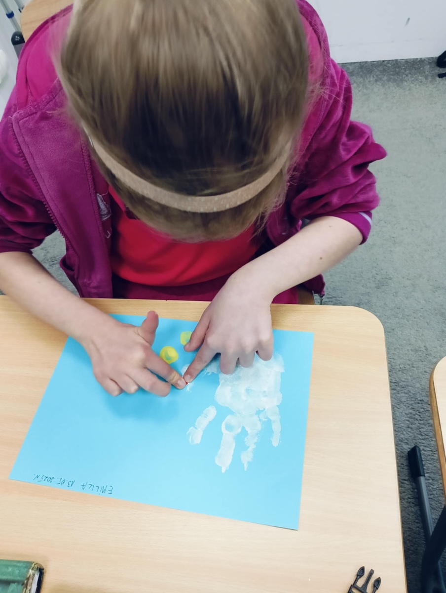 Podczas zajęć w minionym tygodniu rozmawialiśmy na temat zwierząt hodowlanych. Uczniowie poznawali różne gatunki zwierząt żyjących w gospodarstwach rolnych oraz uczyły się, w jakich miejscach mieszkają – wspólnie segregowaliśmy je według środowiska życia. Po części dydaktycznej przeszliśmy do działania plastycznego, które miało na celu utrwalenie zdobytej wiedzy w kreatywny sposób. Dzieci z oddziału „I” wykonały pracę plastyczną pod tytułem „Kurczątko i Kura”. Do jej stworzenia wykorzystały kolorowe kartki, farby oraz… swoje dłonie! Malowały je farbami i odbijały na kartkach papieru, tworząc sylwetki ptaków. Działanie to sprawiło dzieciom wiele radości i było świetną okazją do rozwijania sprawności manualnej. Oddział „II” przygotował pracę pod tytułem „Łaciata Krowa”. Wykorzystano różnorodne materiały plastyczne, a dzieci z dużym zaangażowaniem wyklejały sylwetkę krowy, dbając o jej charakterystyczne czarne łaty. Dzięki temu ćwiczyły spostrzegawczość, precyzję i wyobraźnię. Zajęcia przebiegły w miłej atmosferze, a pracę plastyczne ozdobiły korytarze naszej szkoły.
