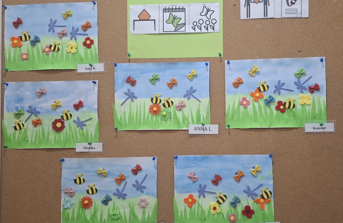 W naszej szkole odbywają się zajęcia plastyczne, które umożliwiają uczniom rozwijanie wyobraźni oraz twórczego myślenia. Praca manualna wspomaga jednocześnie rozwój motoryki małej, co ma ogromne znaczenie dla ogólnego rozwoju dziecka. Choć nie zawsze udaje się nam uchwycić każdy etap pracy uczniów na zdjęciach, staramy się dokumentować ich działania najlepiej, jak potrafimy. Przedstawiamy więc choć namiastkę efektów, które udało się utrwalić — to dowód na to, ile pasji, zaangażowania i talentu drzemie w naszych artystach.