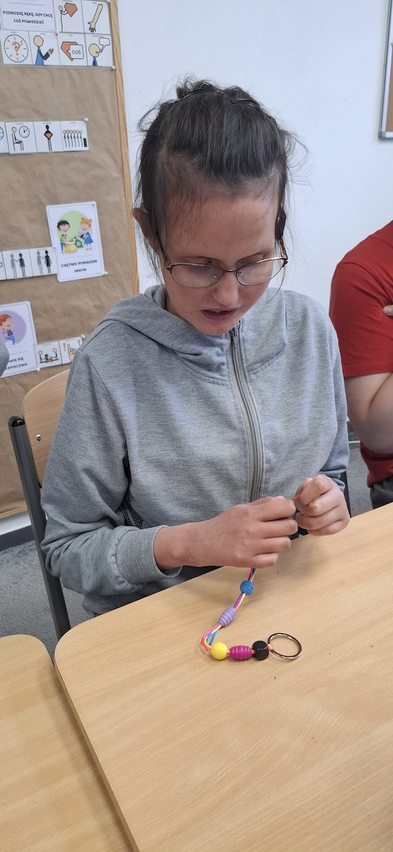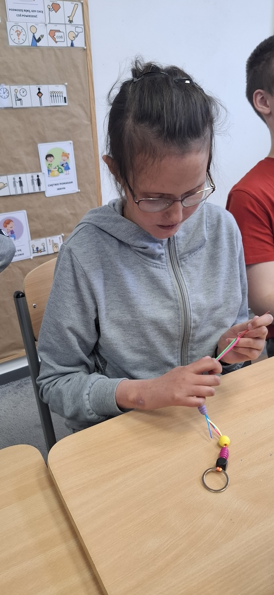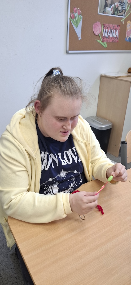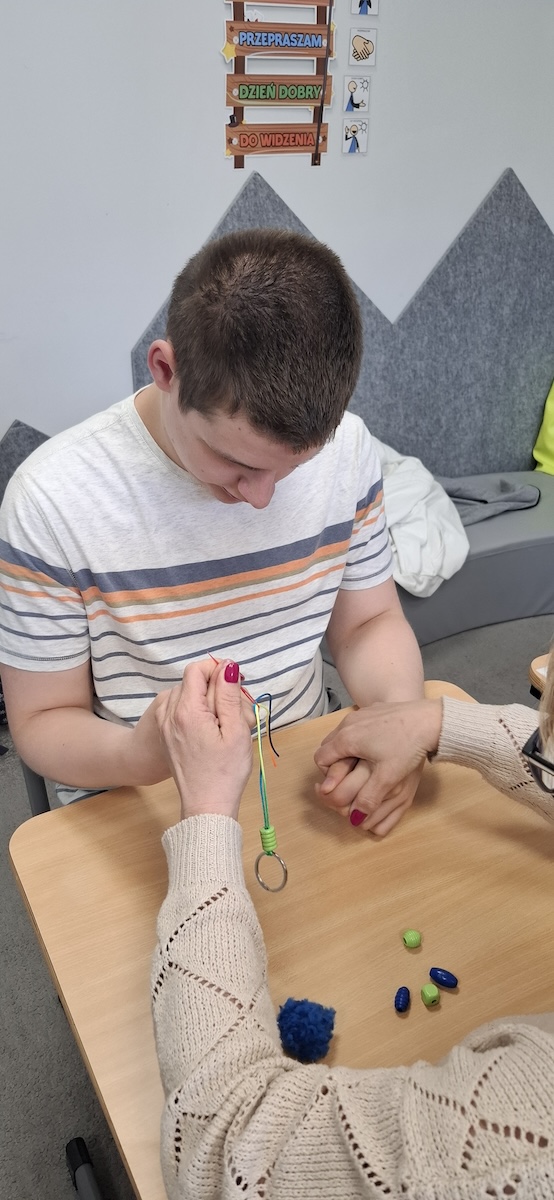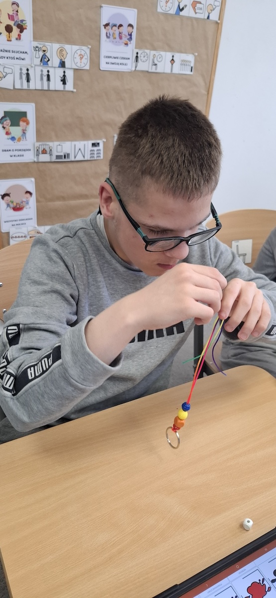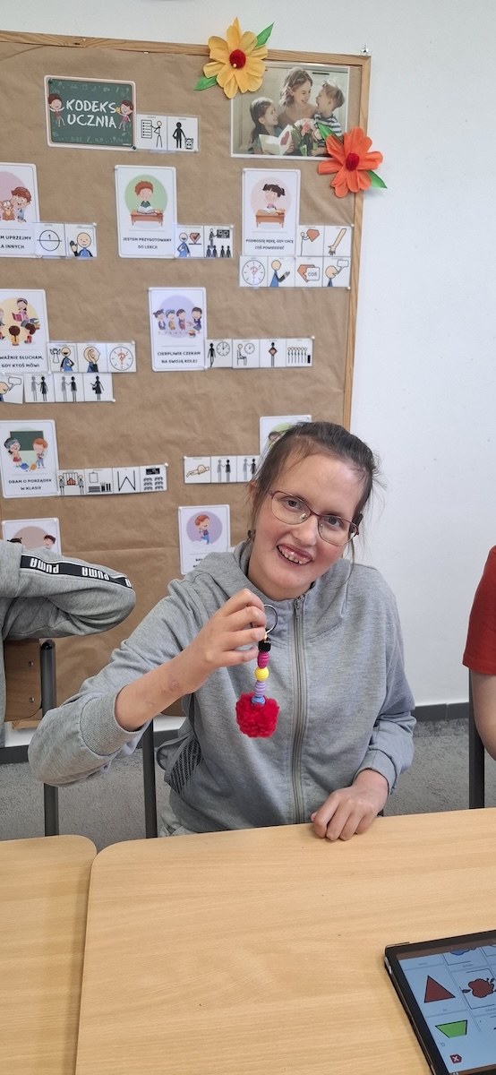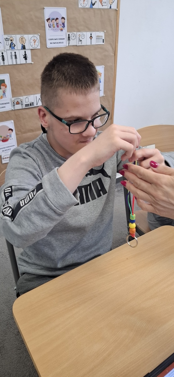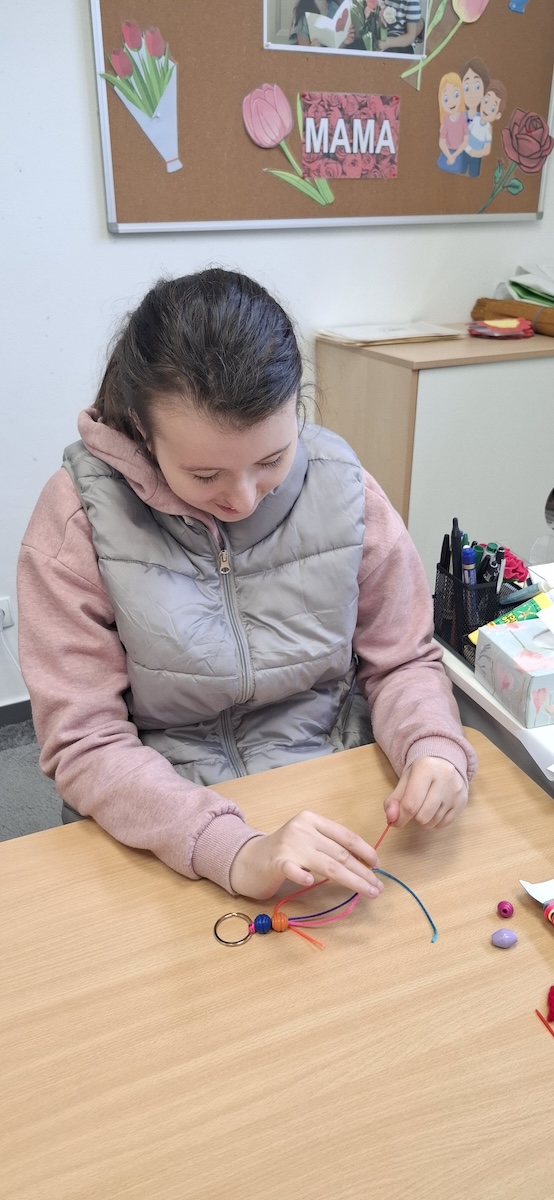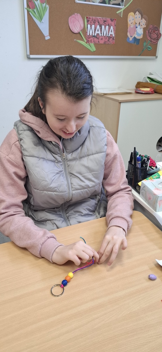 Każdy z nas wie, że Dzień Matki to jedno z najważniejszych świąt – bo przecież wszyscy mamy mamę! Z tej okazji, wraz z naszymi uczniami, z wielkim zaangażowaniem przygotowywaliśmy upominki dla tych wspaniałych kobiet. Na początku tworzyliśmy kolorowe breloczki do kluczy – z pomponikami, koralikami i innymi barwnymi ozdobami. Uczniowie doskonalili przy tym sprawność motoryki małej, nawlekając koraliki na igłę z dużą precyzją i cierpliwością. Kolejną niespodzianką był obrazek wykonany na płótnie – bukiet kwiatów stworzony techniką origami. Każda praca była wyjątkowa, tak jak wyjątkowe są nasze mamy. Na zakończenie dzieci przygotowały laurki w kształcie kwiatków, a w ich wnętrzu ukryły piękne, życzenia napisanie za pomocą oprogramowania MÓWik. Z okazji Dnia Matki przesyłamy wszystkim Mamom moc najcieplejszych życzeń – zdrowia, radości, dumy z dzieci i wielu powodów do uśmiechu każdego dnia. Dziękujemy, że jesteście! 💐