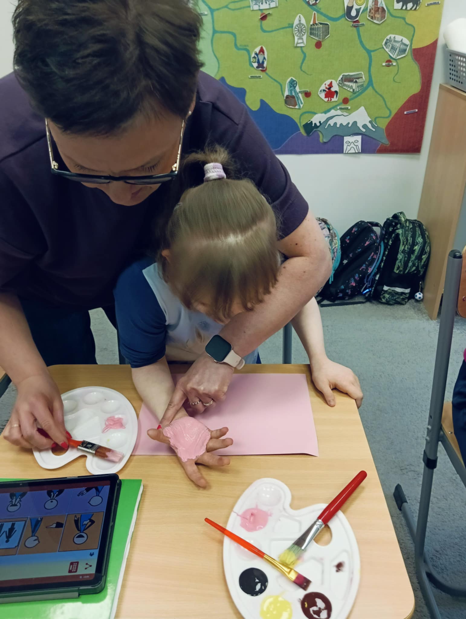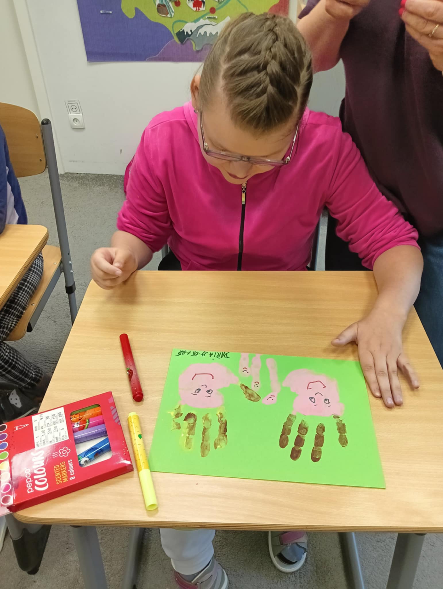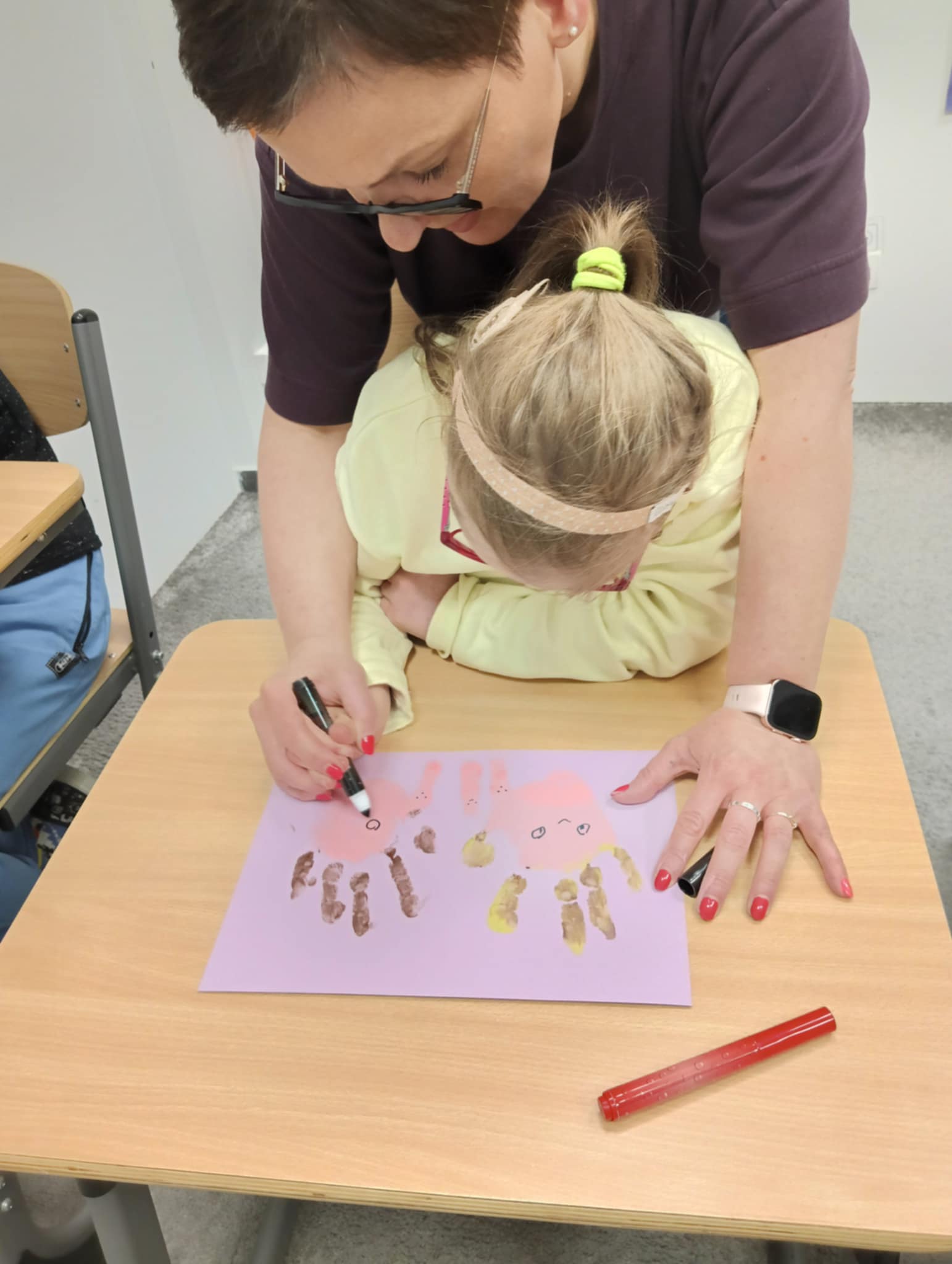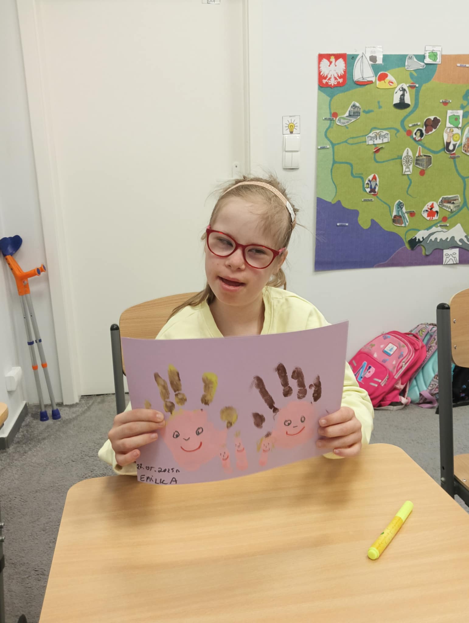 Każdy z nas ma rodzinę, która odgrywa bardzo ważną rolę w naszym życiu. W trakcie tygodnia poświęconego tematyce rodziny uczniowie mieli okazję podzielić się informacjami o swoich najbliższych. Wykorzystując oprogramowanie MÓW-ik, opowiedzieli o swoich rodzicach, rodzeństwie , opiekunach oraz dziadkach. Uczniowie z zaangażowaniem opisywali, z kim najczęściej spędzają wolny czas oraz jakie aktywności podejmują wspólnie z najbliższymi im osobami – były to m.in. spacery, zabawy, wspólne oglądanie filmów czy czytanie książek. Podsumowaniem tygodnia były zajęcia plastyczne, które pozwoliły uczniom wyrazić swoją wdzięczność i uczucia wobec bliskich. Uczniowie Oddziału „I” stworzyli barwne prace plastyczne, wykorzystując do tego farby oraz odbicia własnych dłoni – symbol bliskości i więzi rodzinnych. Natomiast uczniowie Oddziału „II” wykonali piękne kompozycje przy użyciu kolorowych kartek papieru i kredek, przedstawiające ich rodziny.
