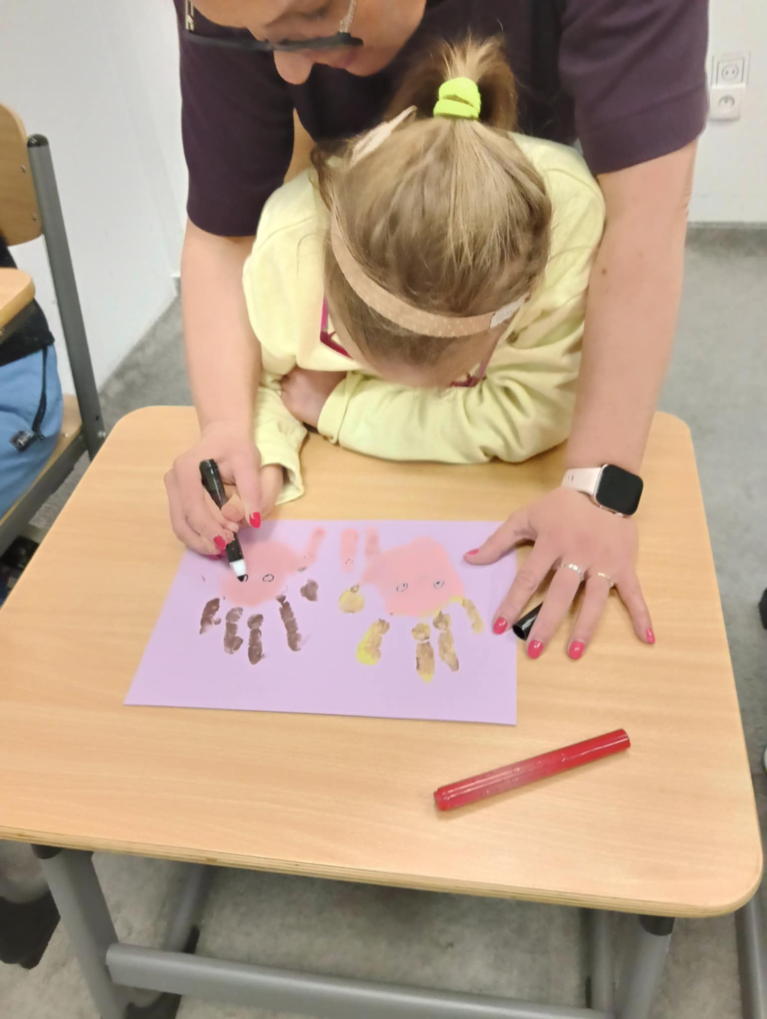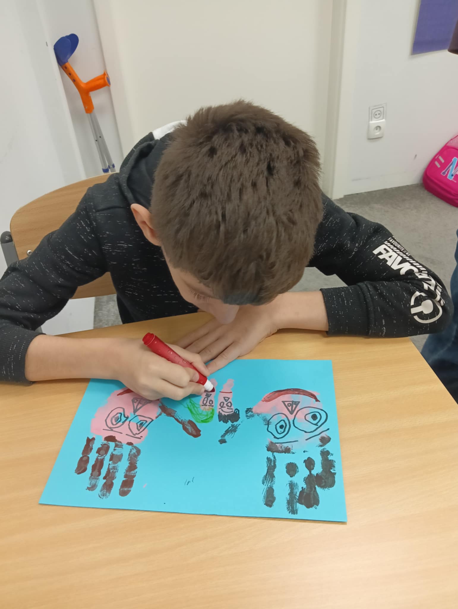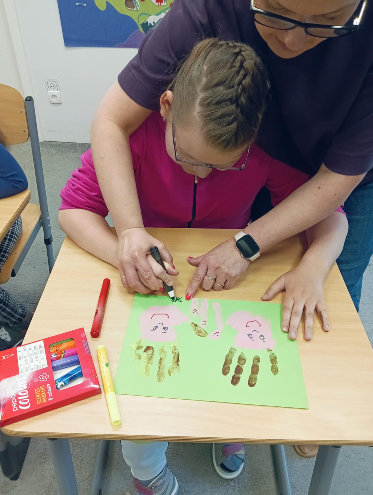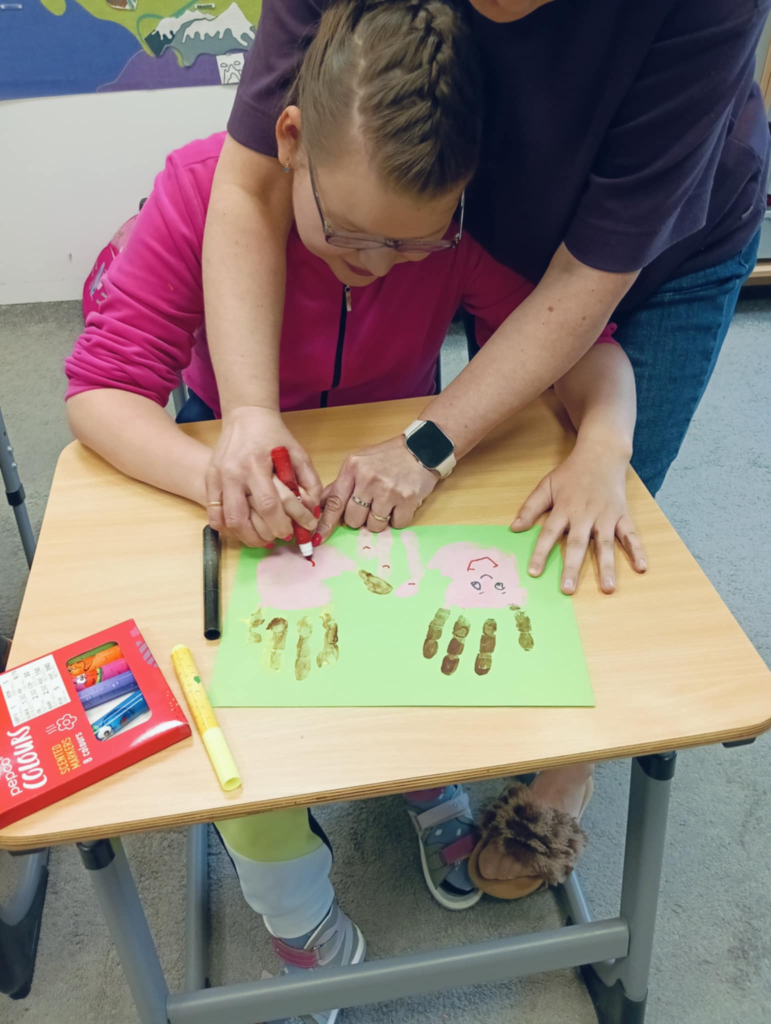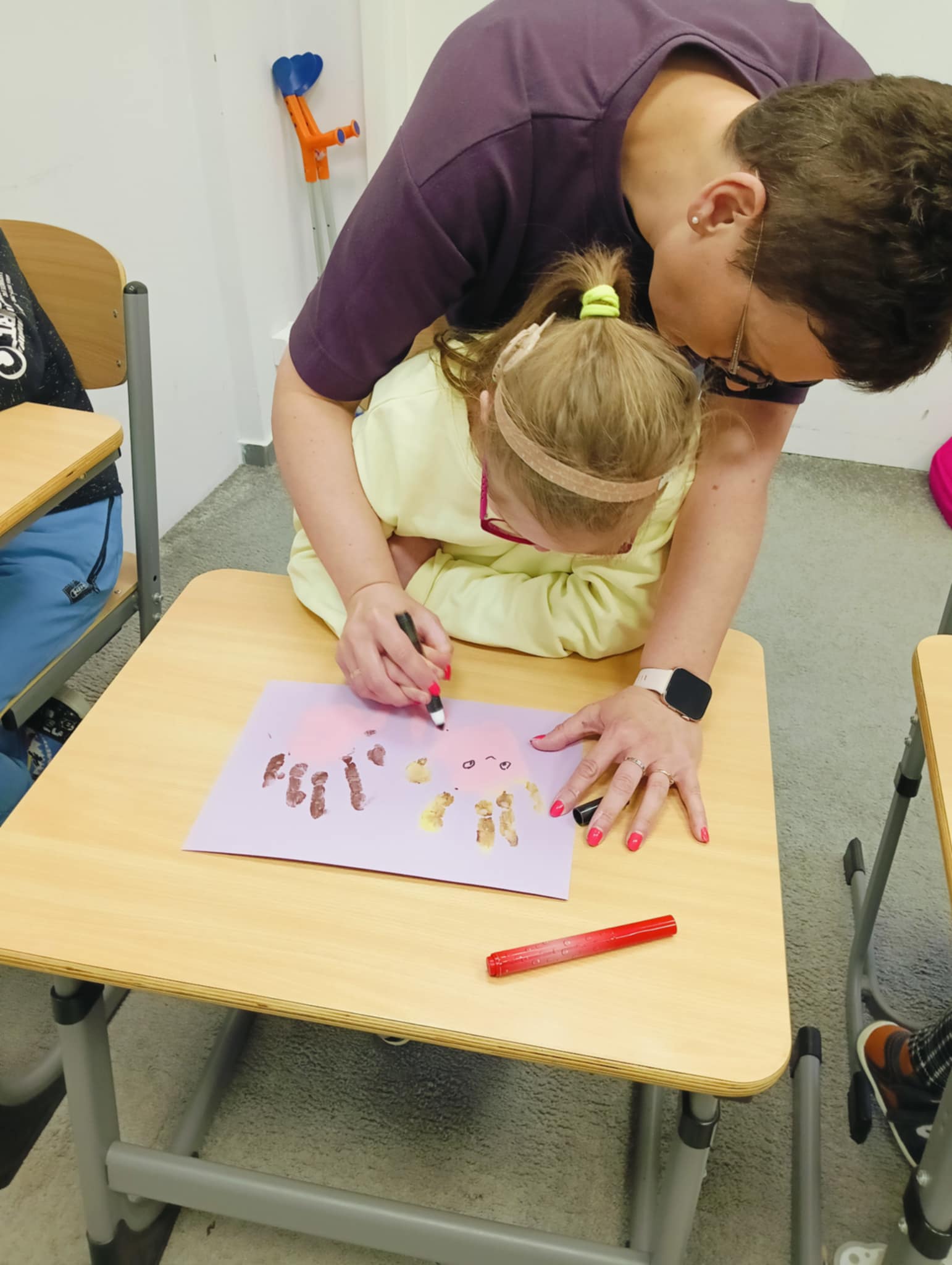 Każdy z nas ma rodzinę, która odgrywa bardzo ważną rolę w naszym życiu. W trakcie tygodnia poświęconego tematyce rodziny uczniowie mieli okazję podzielić się informacjami o swoich najbliższych. Wykorzystując oprogramowanie MÓW-ik, opowiedzieli o swoich rodzicach, rodzeństwie , opiekunach oraz dziadkach. Uczniowie z zaangażowaniem opisywali, z kim najczęściej spędzają wolny czas oraz jakie aktywności podejmują wspólnie z najbliższymi im osobami – były to m.in. spacery, zabawy, wspólne oglądanie filmów czy czytanie książek. Podsumowaniem tygodnia były zajęcia plastyczne, które pozwoliły uczniom wyrazić swoją wdzięczność i uczucia wobec bliskich. Uczniowie Oddziału „I” stworzyli barwne prace plastyczne, wykorzystując do tego farby oraz odbicia własnych dłoni – symbol bliskości i więzi rodzinnych. Natomiast uczniowie Oddziału „II” wykonali piękne kompozycje przy użyciu kolorowych kartek papieru i kredek, przedstawiające ich rodziny.