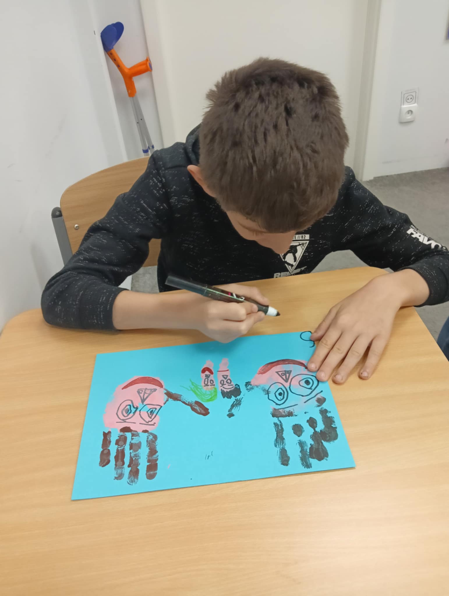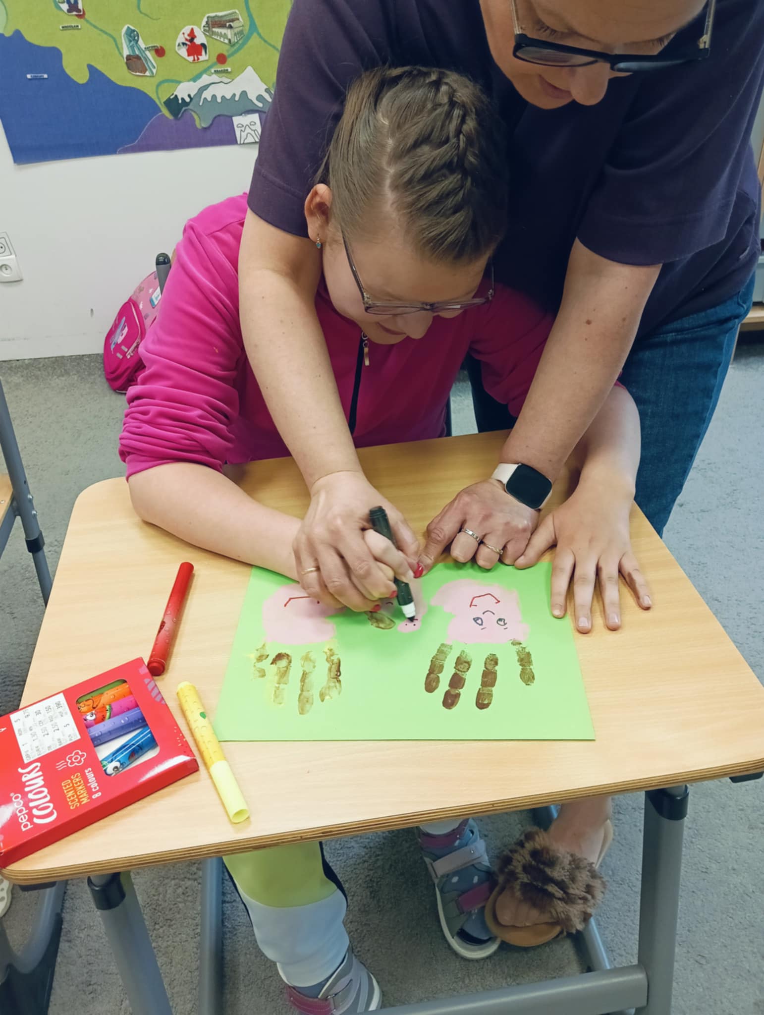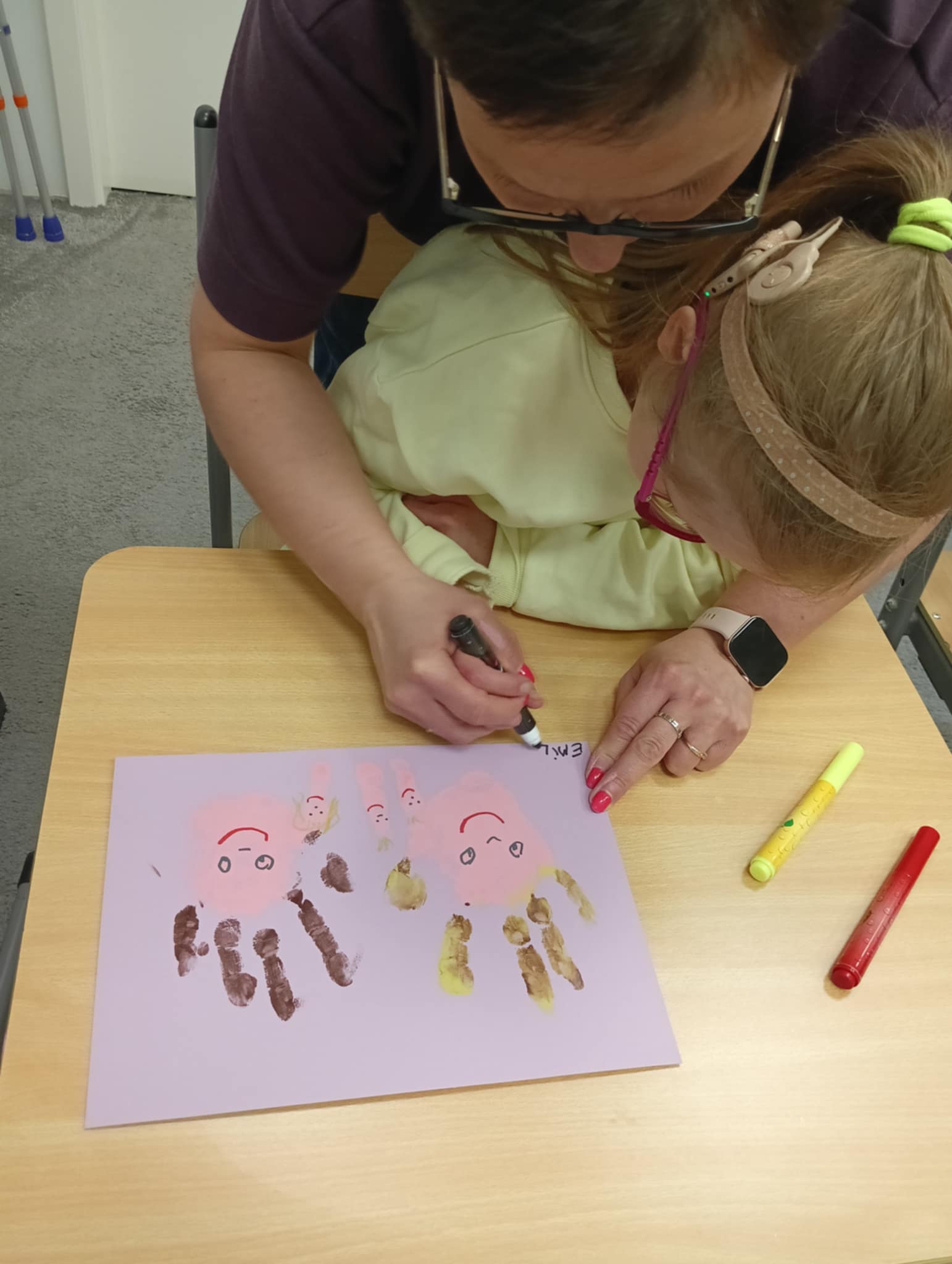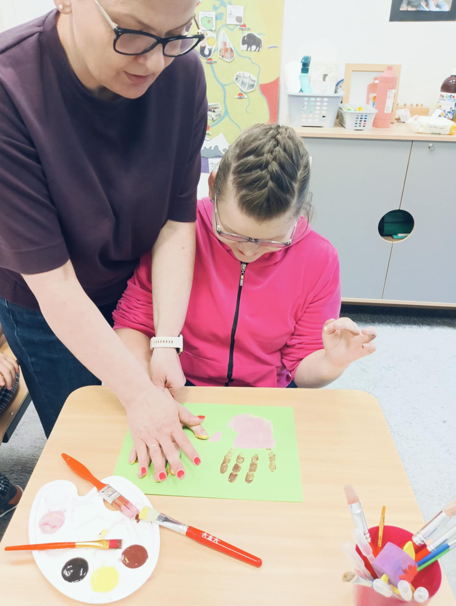 Każdy z nas ma rodzinę, która odgrywa bardzo ważną rolę w naszym życiu. W trakcie tygodnia poświęconego tematyce rodziny uczniowie mieli okazję podzielić się informacjami o swoich najbliższych. Wykorzystując oprogramowanie MÓW-ik, opowiedzieli o swoich rodzicach, rodzeństwie , opiekunach oraz dziadkach. Uczniowie z zaangażowaniem opisywali, z kim najczęściej spędzają wolny czas oraz jakie aktywności podejmują wspólnie z najbliższymi im osobami – były to m.in. spacery, zabawy, wspólne oglądanie filmów czy czytanie książek. Podsumowaniem tygodnia były zajęcia plastyczne, które pozwoliły uczniom wyrazić swoją wdzięczność i uczucia wobec bliskich. Uczniowie Oddziału „I” stworzyli barwne prace plastyczne, wykorzystując do tego farby oraz odbicia własnych dłoni – symbol bliskości i więzi rodzinnych. Natomiast uczniowie Oddziału „II” wykonali piękne kompozycje przy użyciu kolorowych kartek papieru i kredek, przedstawiające ich rodziny.