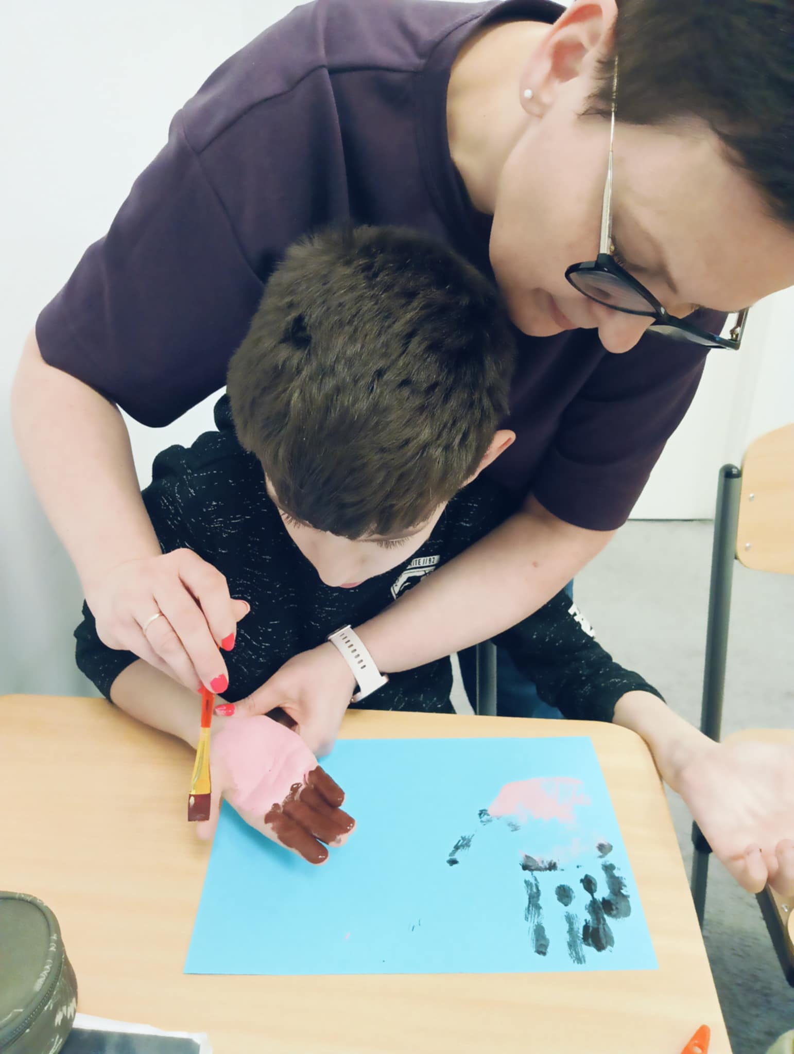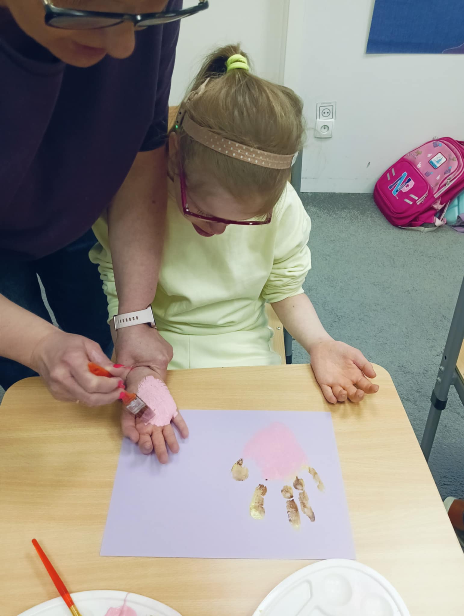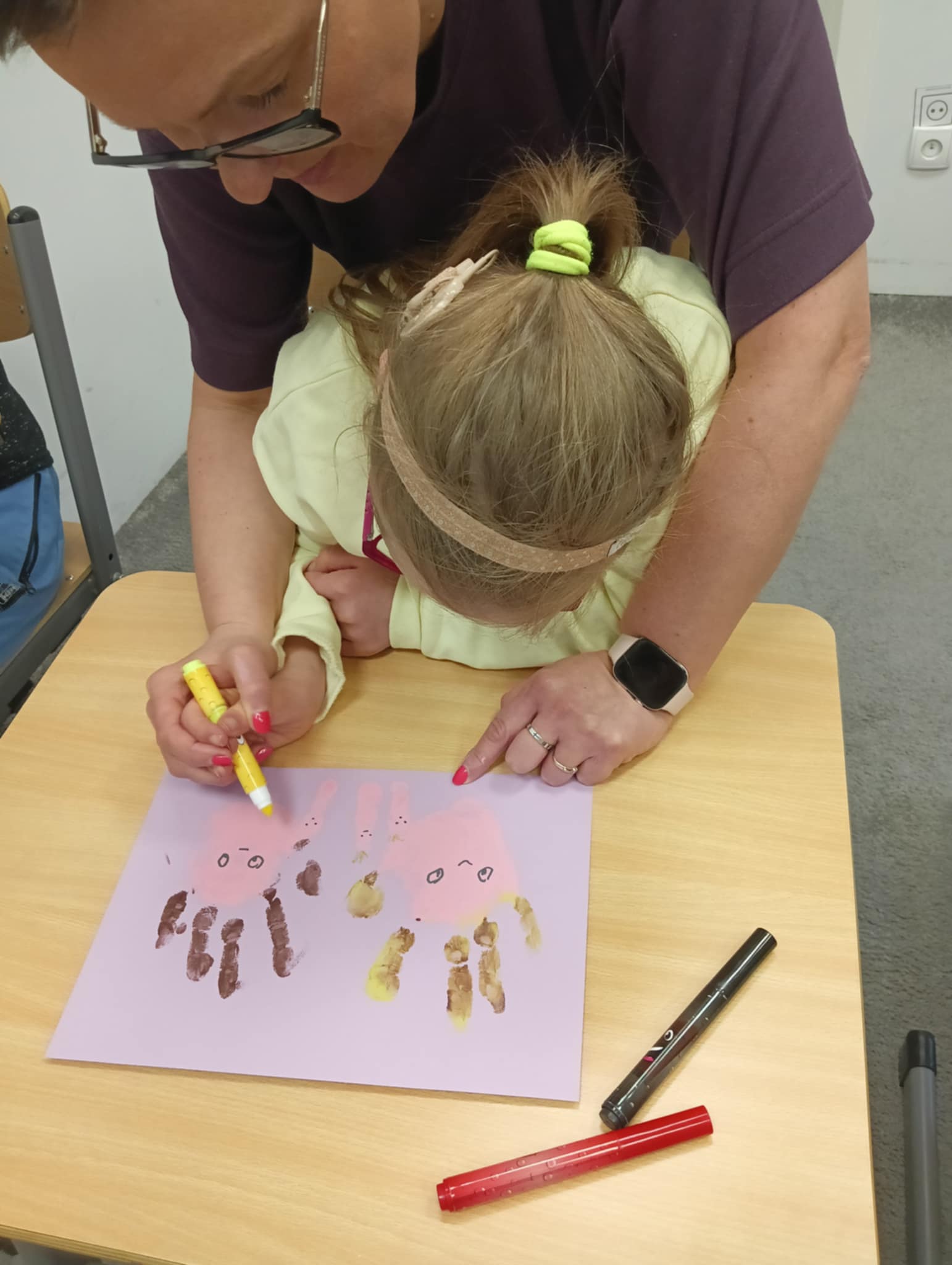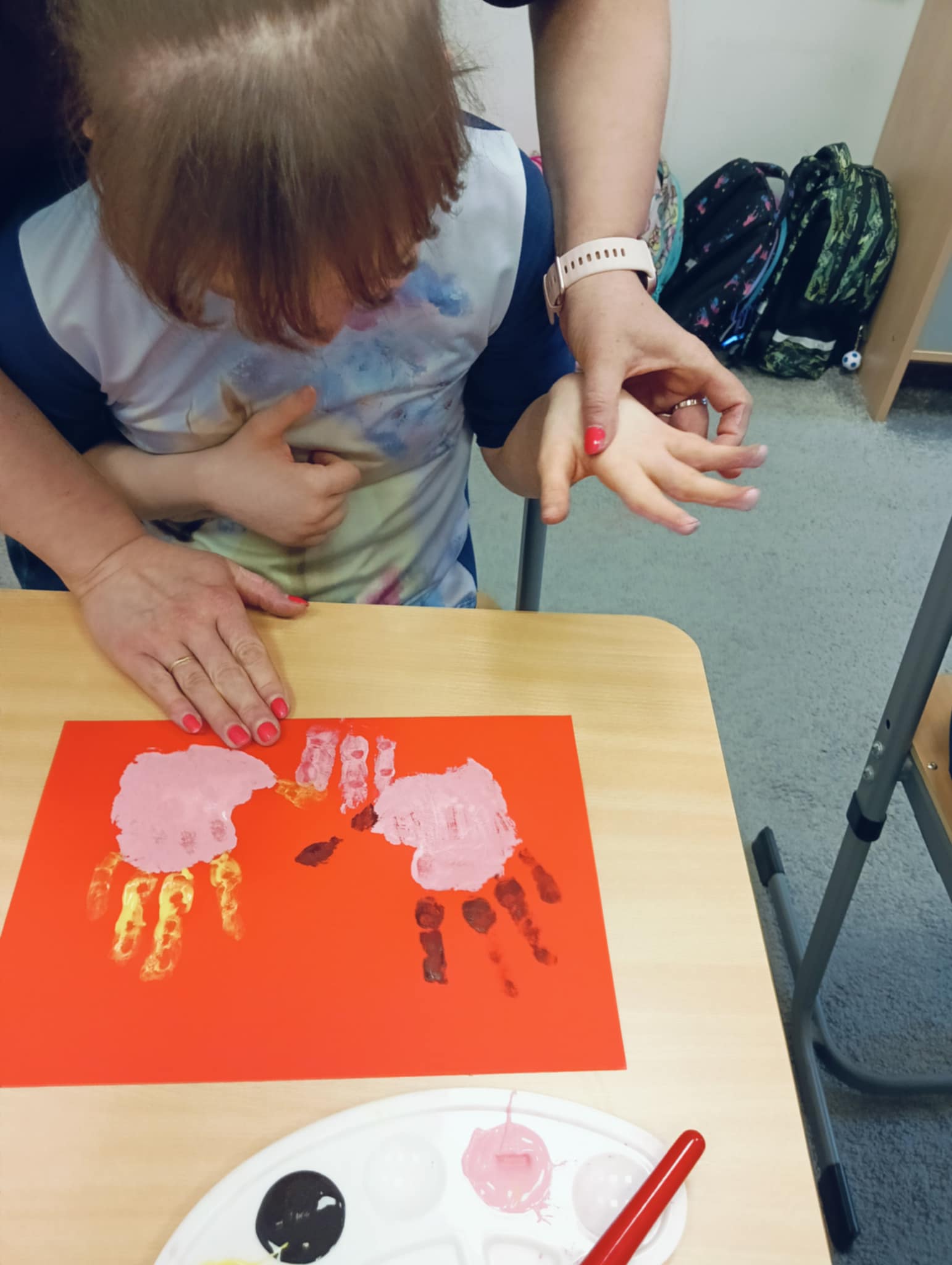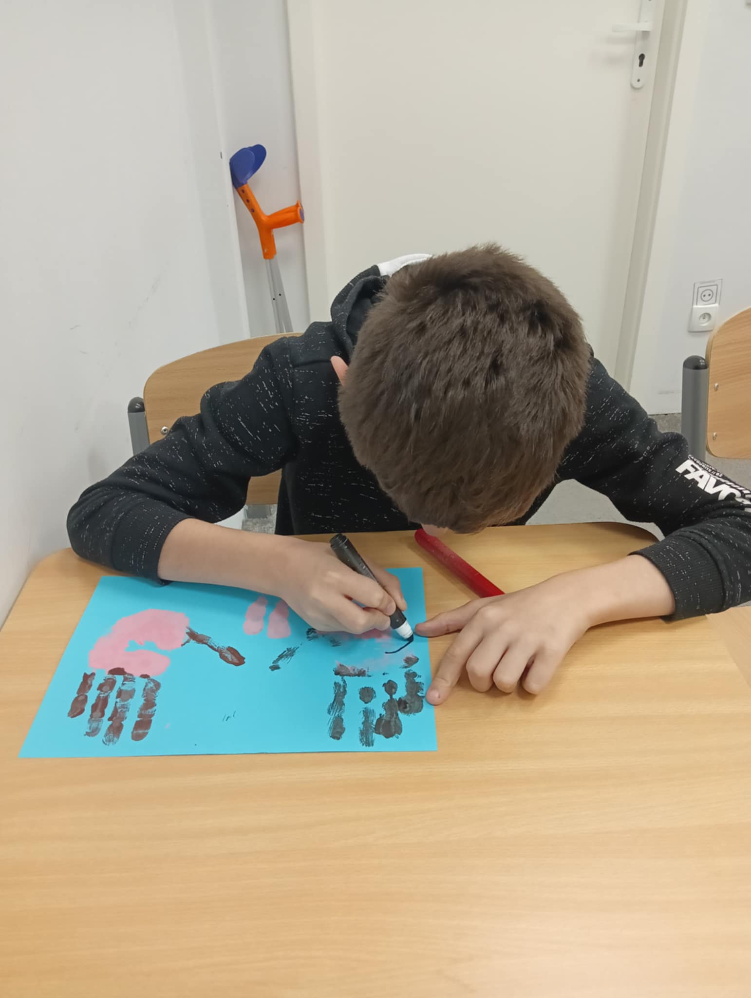 Każdy z nas ma rodzinę, która odgrywa bardzo ważną rolę w naszym życiu. W trakcie tygodnia poświęconego tematyce rodziny uczniowie mieli okazję podzielić się informacjami o swoich najbliższych. Wykorzystując oprogramowanie MÓW-ik, opowiedzieli o swoich rodzicach, rodzeństwie , opiekunach oraz dziadkach. Uczniowie z zaangażowaniem opisywali, z kim najczęściej spędzają wolny czas oraz jakie aktywności podejmują wspólnie z najbliższymi im osobami – były to m.in. spacery, zabawy, wspólne oglądanie filmów czy czytanie książek. Podsumowaniem tygodnia były zajęcia plastyczne, które pozwoliły uczniom wyrazić swoją wdzięczność i uczucia wobec bliskich. Uczniowie Oddziału „I” stworzyli barwne prace plastyczne, wykorzystując do tego farby oraz odbicia własnych dłoni – symbol bliskości i więzi rodzinnych. Natomiast uczniowie Oddziału „II” wykonali piękne kompozycje przy użyciu kolorowych kartek papieru i kredek, przedstawiające ich rodziny.