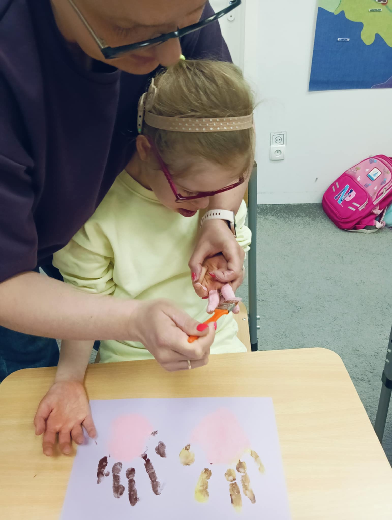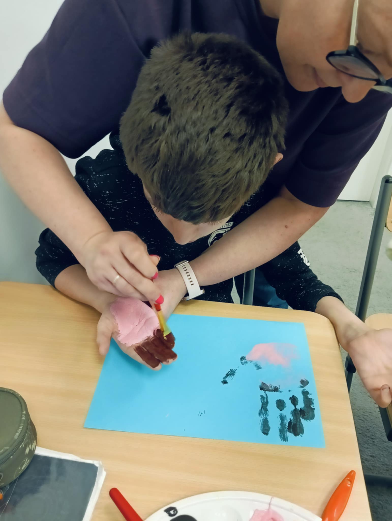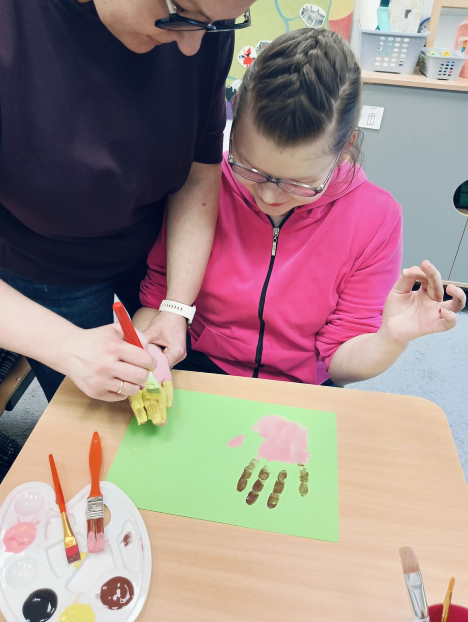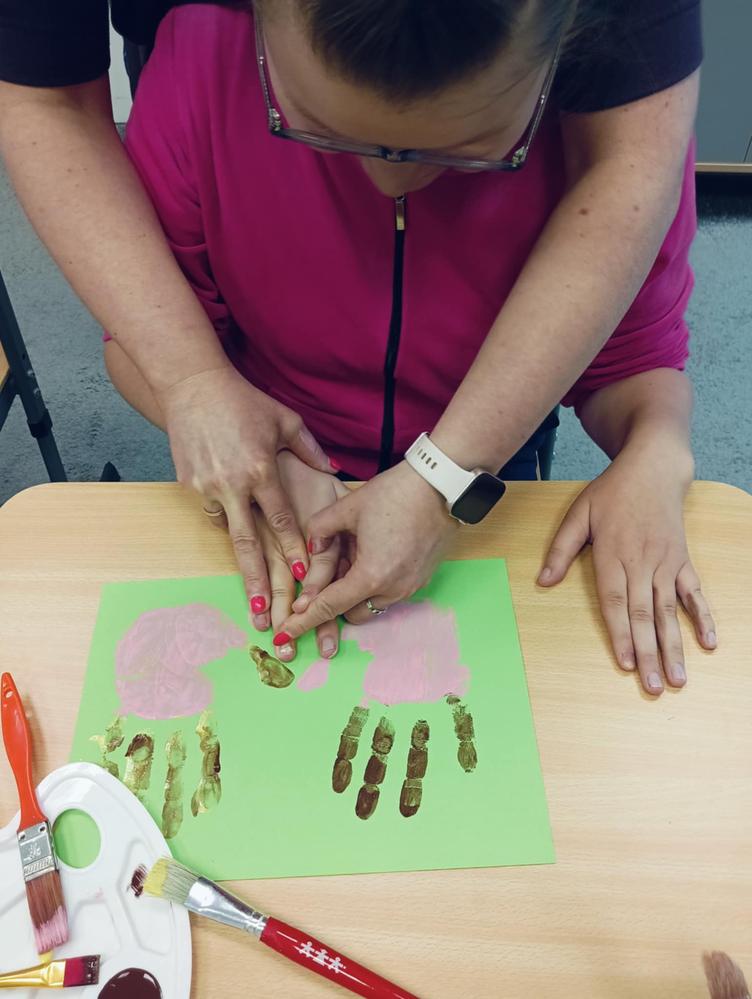 Każdy z nas ma rodzinę, która odgrywa bardzo ważną rolę w naszym życiu. W trakcie tygodnia poświęconego tematyce rodziny uczniowie mieli okazję podzielić się informacjami o swoich najbliższych. Wykorzystując oprogramowanie MÓW-ik, opowiedzieli o swoich rodzicach, rodzeństwie , opiekunach oraz dziadkach. Uczniowie z zaangażowaniem opisywali, z kim najczęściej spędzają wolny czas oraz jakie aktywności podejmują wspólnie z najbliższymi im osobami – były to m.in. spacery, zabawy, wspólne oglądanie filmów czy czytanie książek. Podsumowaniem tygodnia były zajęcia plastyczne, które pozwoliły uczniom wyrazić swoją wdzięczność i uczucia wobec bliskich. Uczniowie Oddziału „I” stworzyli barwne prace plastyczne, wykorzystując do tego farby oraz odbicia własnych dłoni – symbol bliskości i więzi rodzinnych. Natomiast uczniowie Oddziału „II” wykonali piękne kompozycje przy użyciu kolorowych kartek papieru i kredek, przedstawiające ich rodziny.