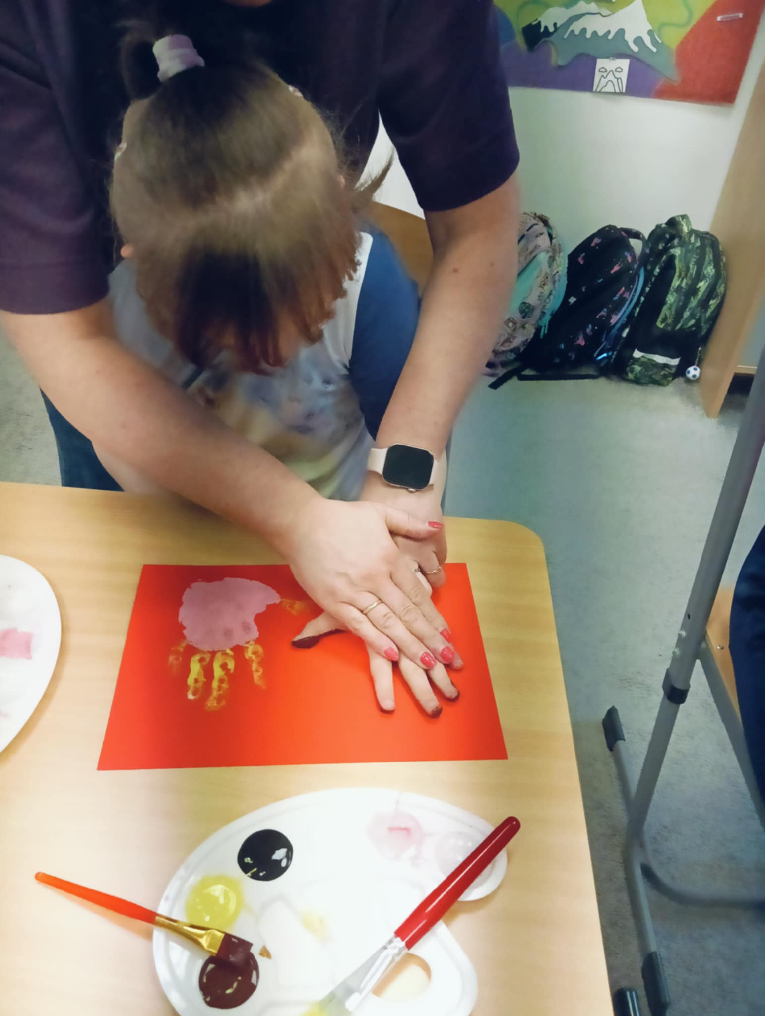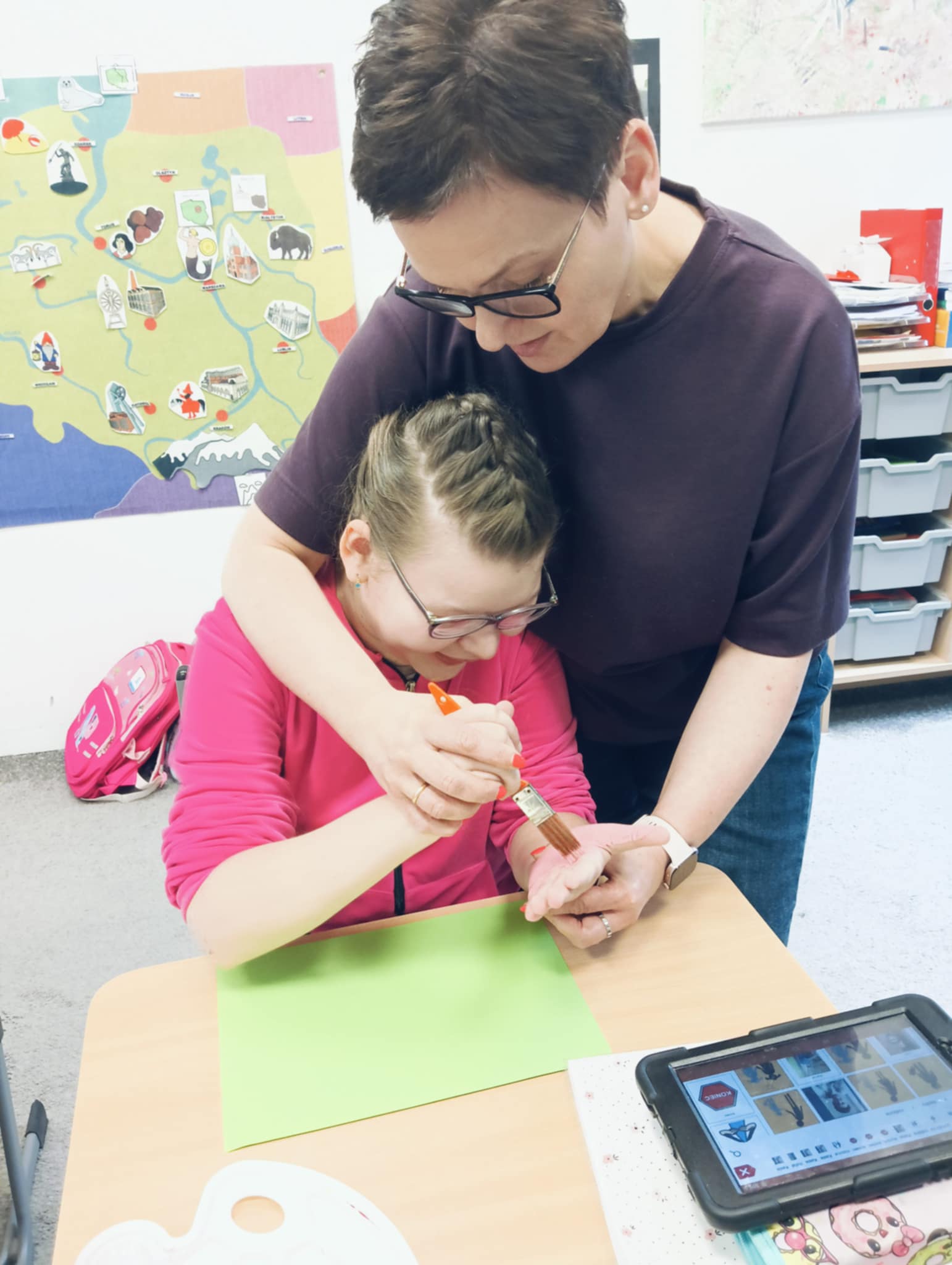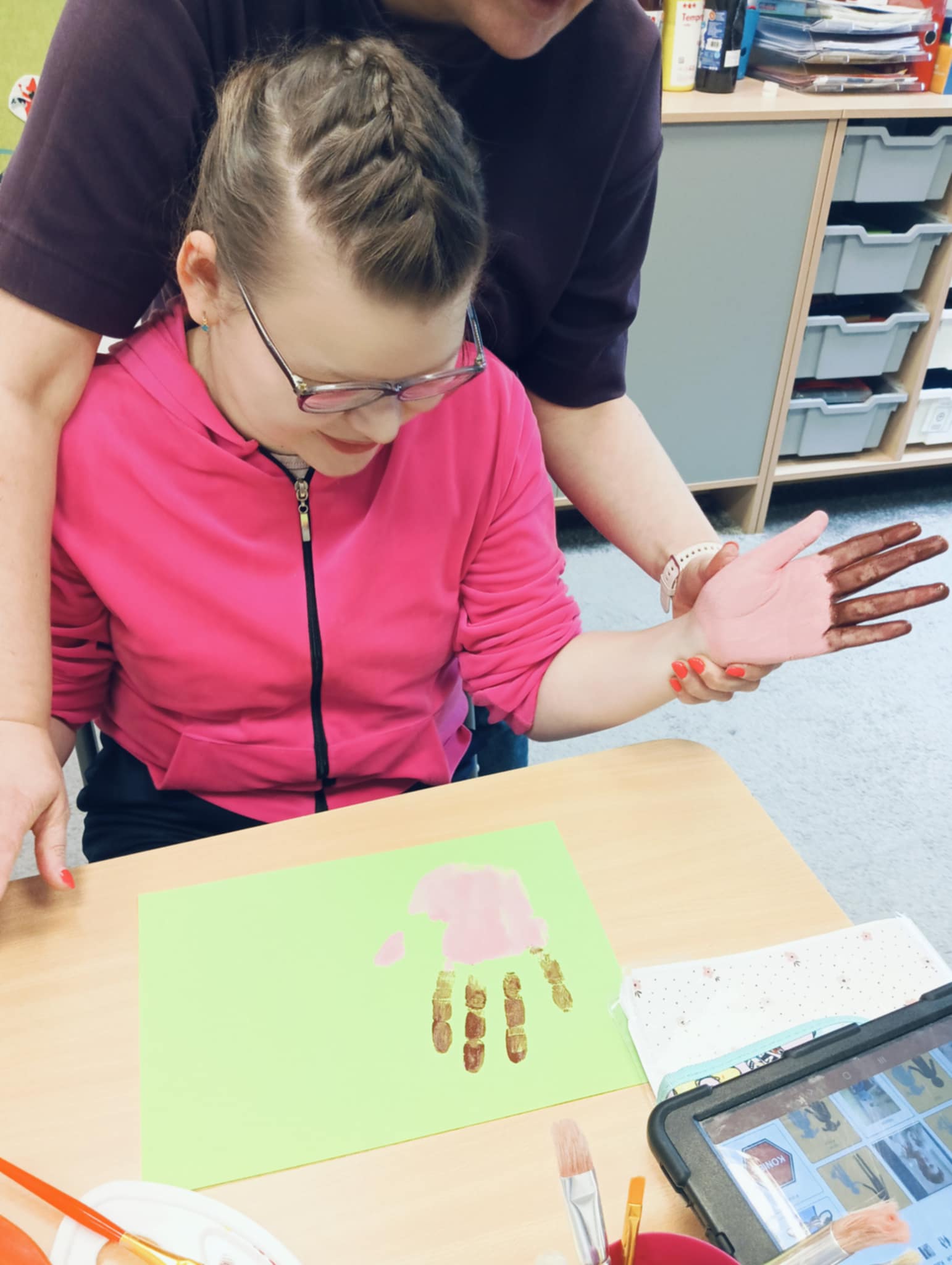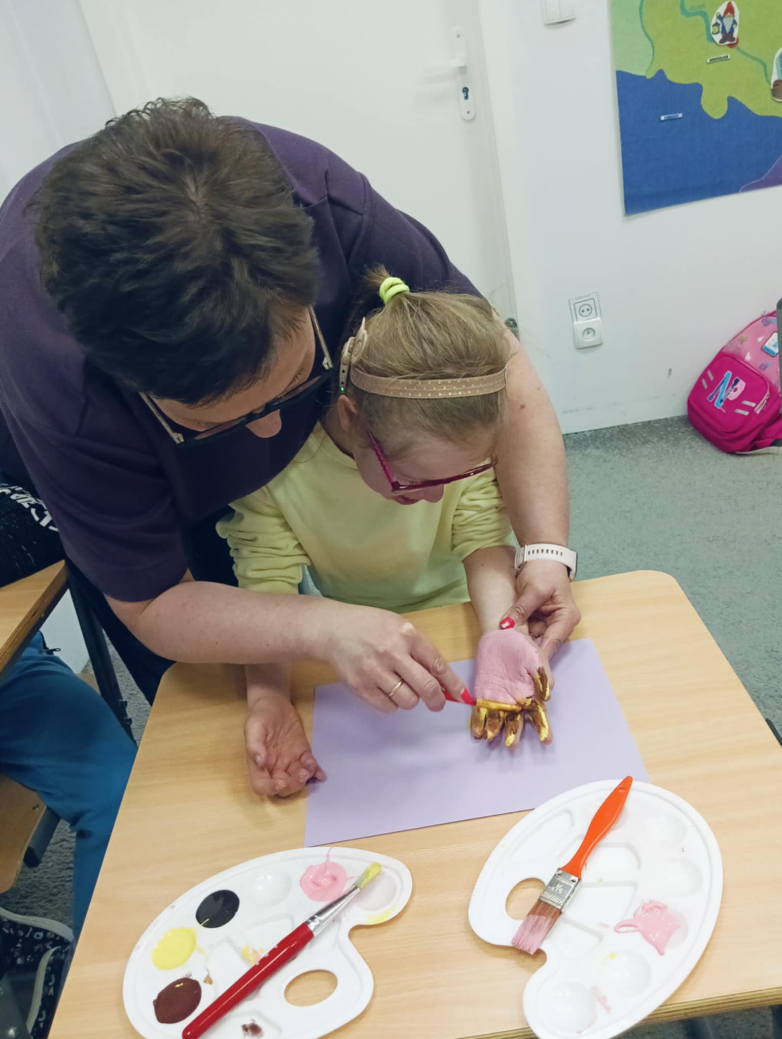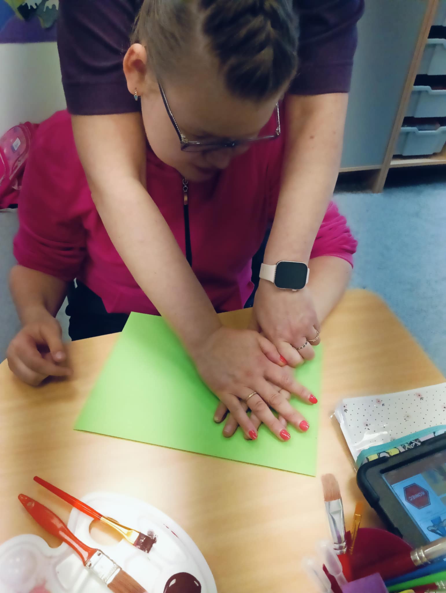 Każdy z nas ma rodzinę, która odgrywa bardzo ważną rolę w naszym życiu. W trakcie tygodnia poświęconego tematyce rodziny uczniowie mieli okazję podzielić się informacjami o swoich najbliższych. Wykorzystując oprogramowanie MÓW-ik, opowiedzieli o swoich rodzicach, rodzeństwie , opiekunach oraz dziadkach. Uczniowie z zaangażowaniem opisywali, z kim najczęściej spędzają wolny czas oraz jakie aktywności podejmują wspólnie z najbliższymi im osobami – były to m.in. spacery, zabawy, wspólne oglądanie filmów czy czytanie książek. Podsumowaniem tygodnia były zajęcia plastyczne, które pozwoliły uczniom wyrazić swoją wdzięczność i uczucia wobec bliskich. Uczniowie Oddziału „I” stworzyli barwne prace plastyczne, wykorzystując do tego farby oraz odbicia własnych dłoni – symbol bliskości i więzi rodzinnych. Natomiast uczniowie Oddziału „II” wykonali piękne kompozycje przy użyciu kolorowych kartek papieru i kredek, przedstawiające ich rodziny.