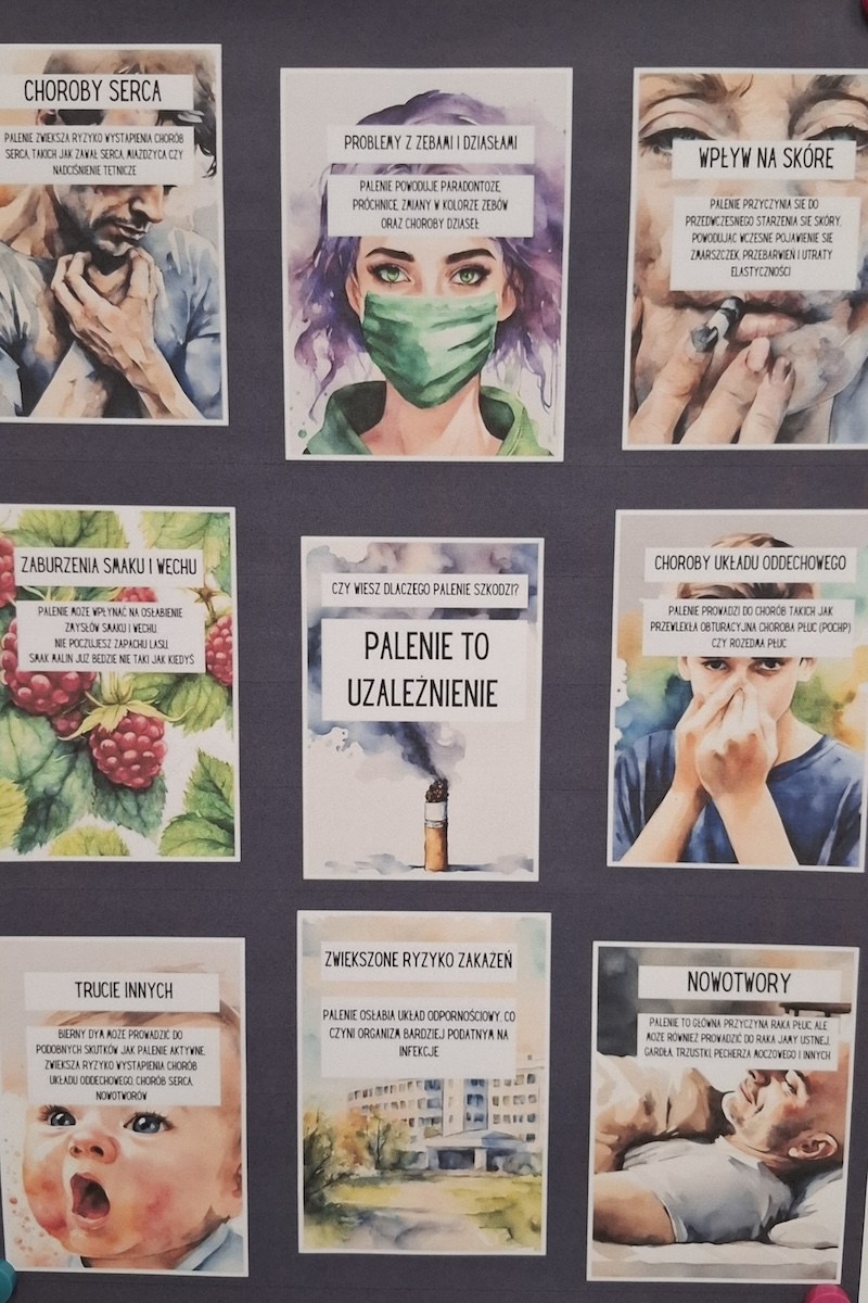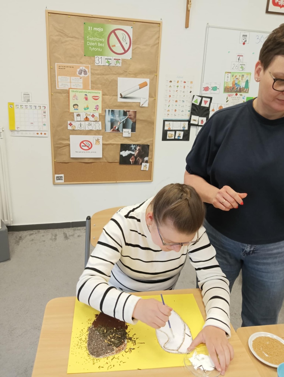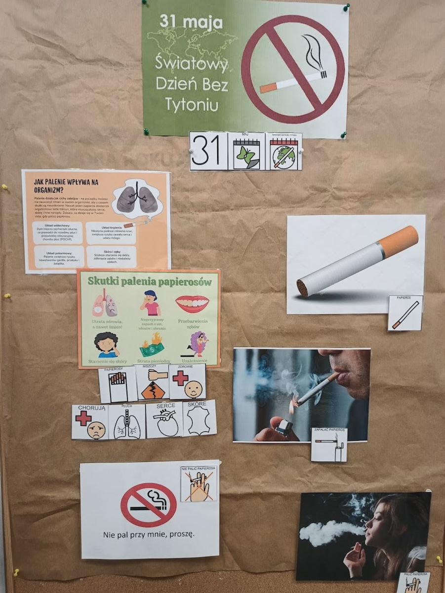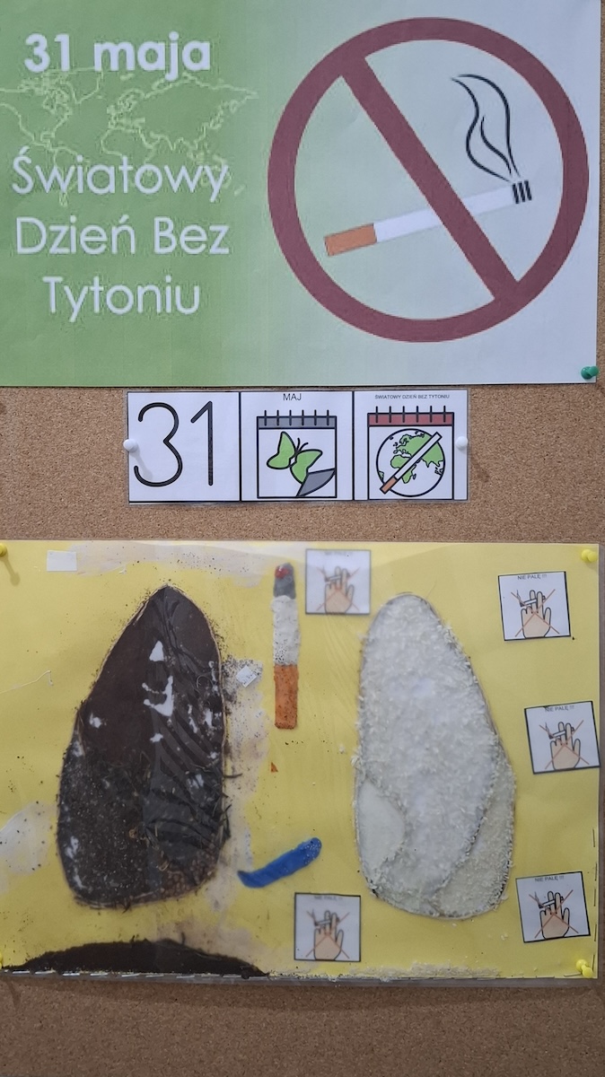 31 maja obchodzony jest Światowy Dzień Bez Tytoniu – ważne wydarzenie, które ma na celu zwiększenie świadomości społecznej na temat szkodliwości palenia tytoniu oraz promowanie zdrowego stylu życia. W naszej szkole również nie przeszliśmy obok tego dnia obojętnie. W ramach ogólnopolskiego projektu edukacyjnego „Zainwestuj w zdrowie” uczniowie aktywnie zaangażowali się w działania promujące życie wolne od dymu tytoniowego. Podczas zajęć rozmawialiśmy o zagrożeniach związanych z paleniem papierosów, zarówno czynnym, jak i biernym. Uczniowie dowiedzieli się, jakie negatywne skutki zdrowotne niesie za sobą kontakt z dymem tytoniowym – od chorób układu oddechowego, przez schorzenia serca, aż po nowotwory. Zwieńczeniem zajęć była twórcza praca plastyczna pod hasłem „Zdrowe płuco i chore płuco”. Uczniowie przy użyciu różnorodnych materiałów – takich jak kolorowy papier, kasza manna, cukier, herbata, kawa, cynamon, kminek oraz pieprz – stworzyli przestrzenne modele płuc, obrazujące różnice między organem osoby zdrowej a osoby palącej. Prace nie tylko pobudziły wyobraźnię i kreatywność, ale też w przystępny sposób ukazały konsekwencje palenia tytoniu. Dzięki takim inicjatywom młodzież nie tylko zdobywa wiedzę, ale także uczy się podejmować świadome i odpowiedzialne decyzje dotyczące własnego zdrowia. Dzień Bez Tytoniu stał się dla naszej szkolnej społeczności ważnym momentem refleksji i rozmowy o tym, co naprawdę oznacza inwestowanie w zdrowie.