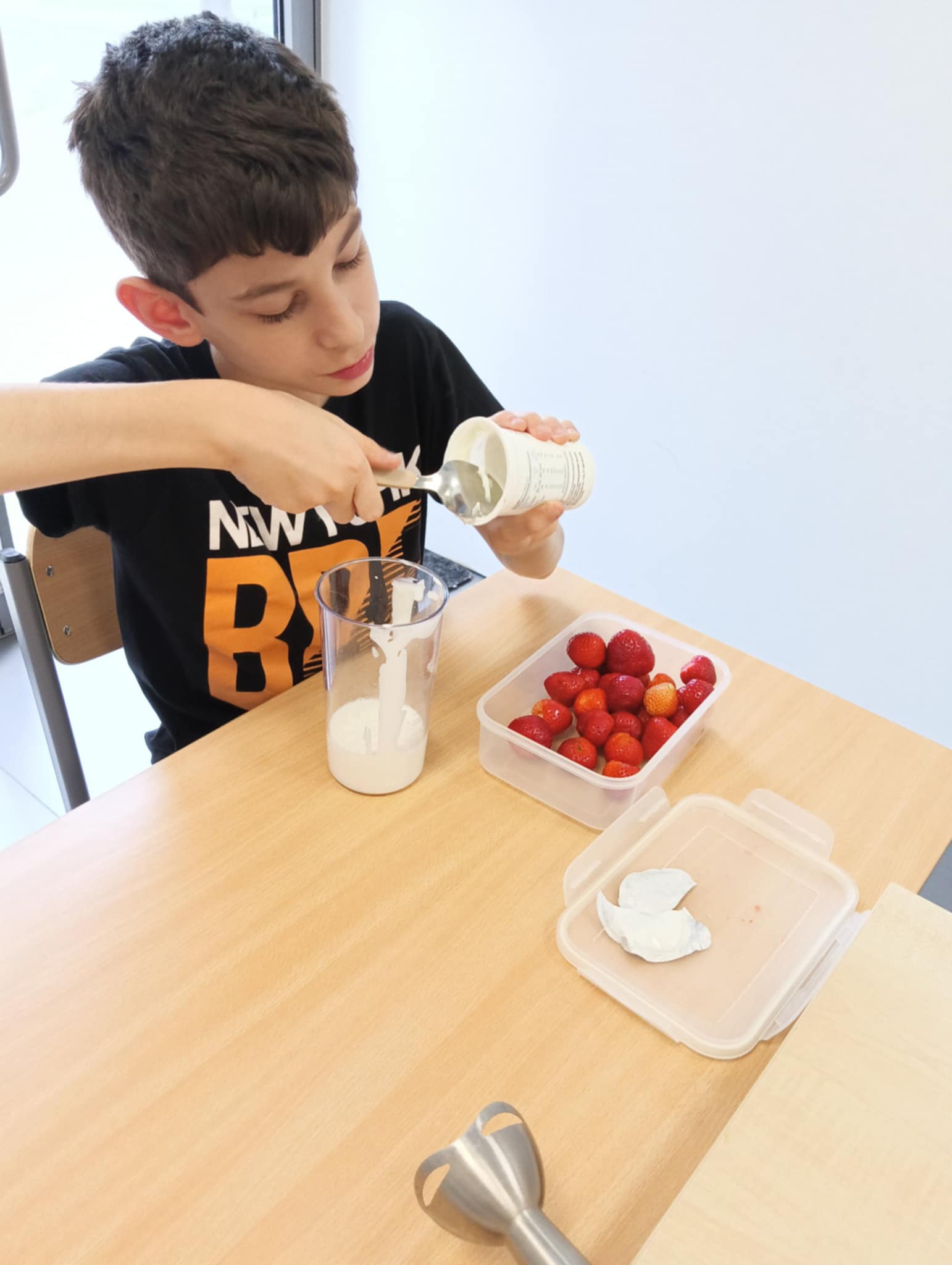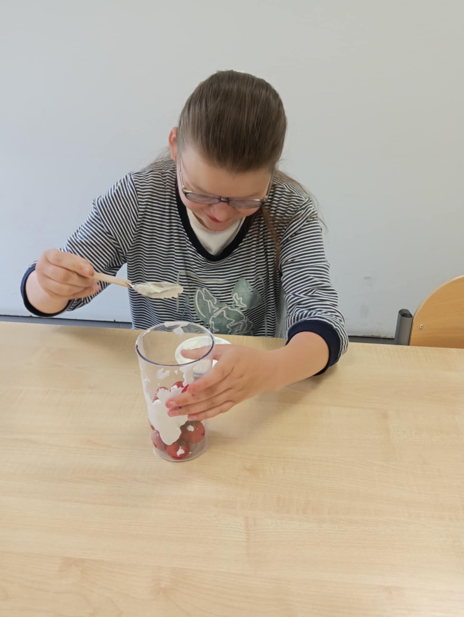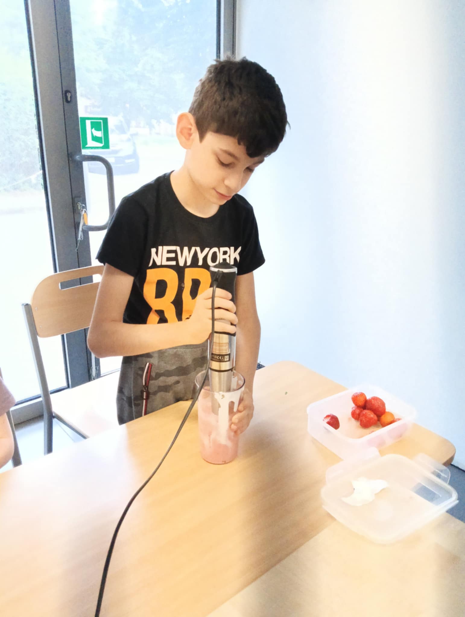 Owocowa przygoda w naszej szkole – uczniowie przygotowują zdrowy koktajl! 🍓 - oodział I