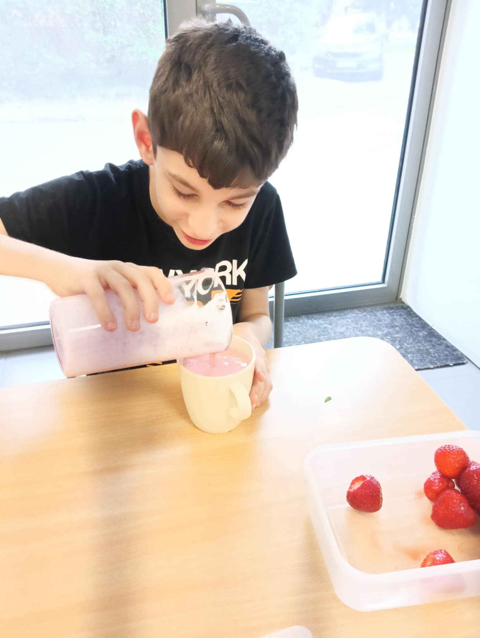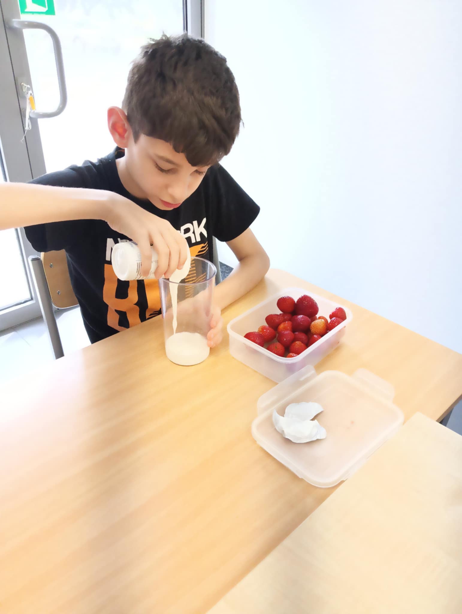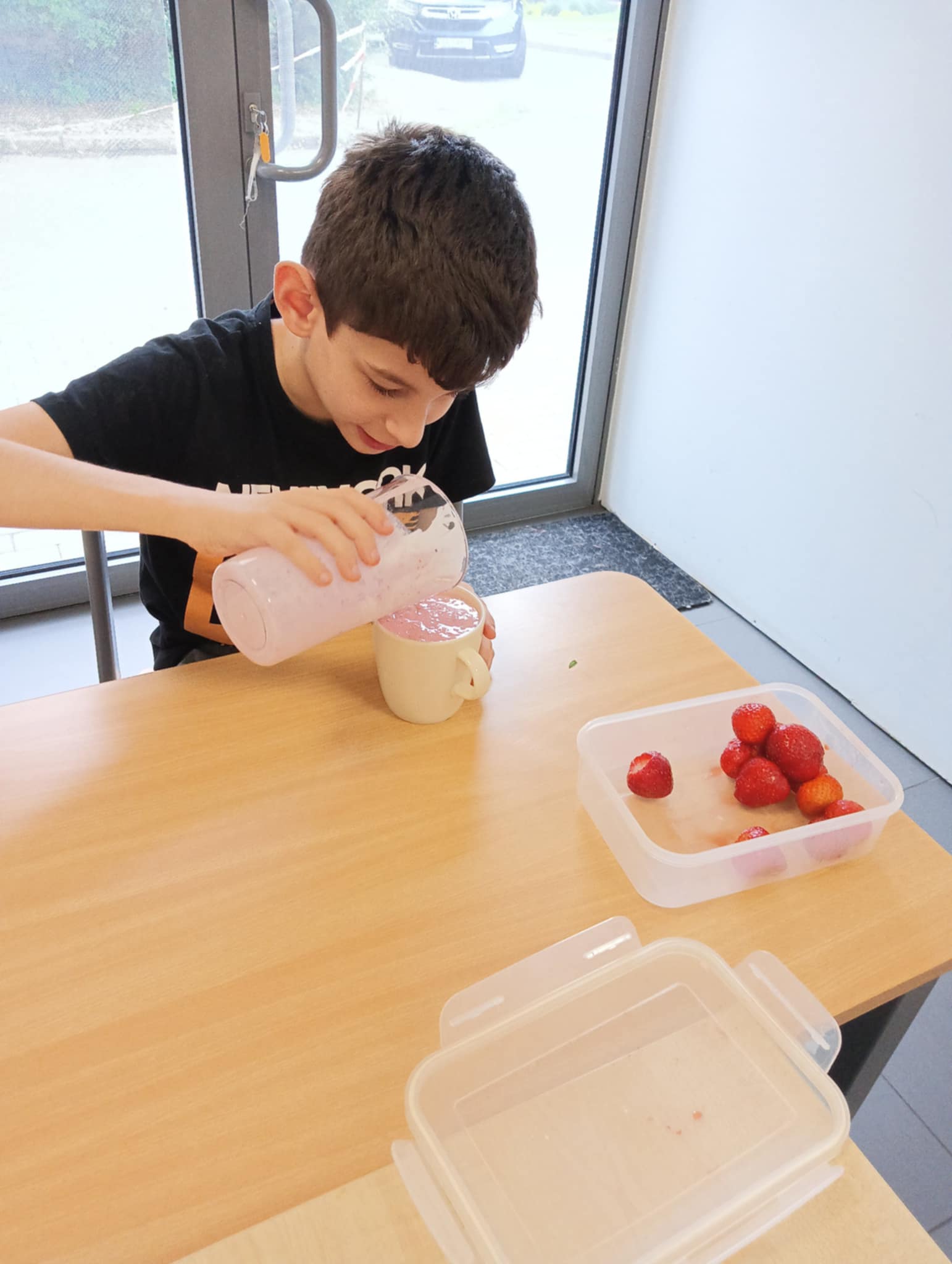 Owocowa przygoda w naszej szkole – uczniowie przygotowują zdrowy koktajl! 🍓 - oodział I