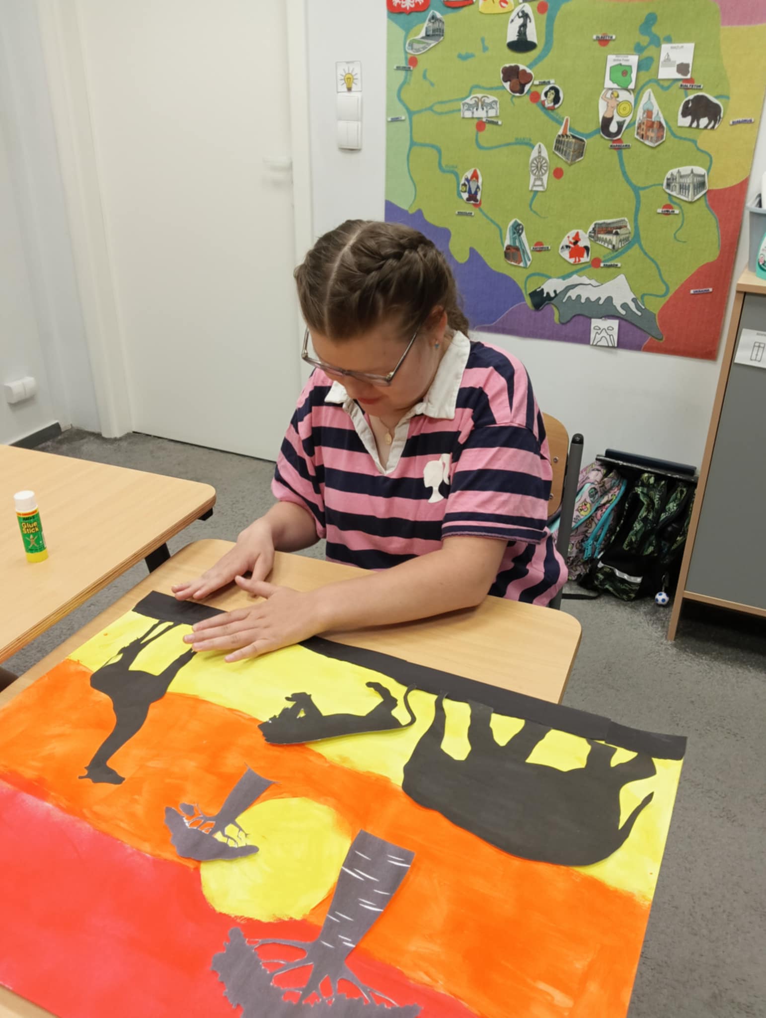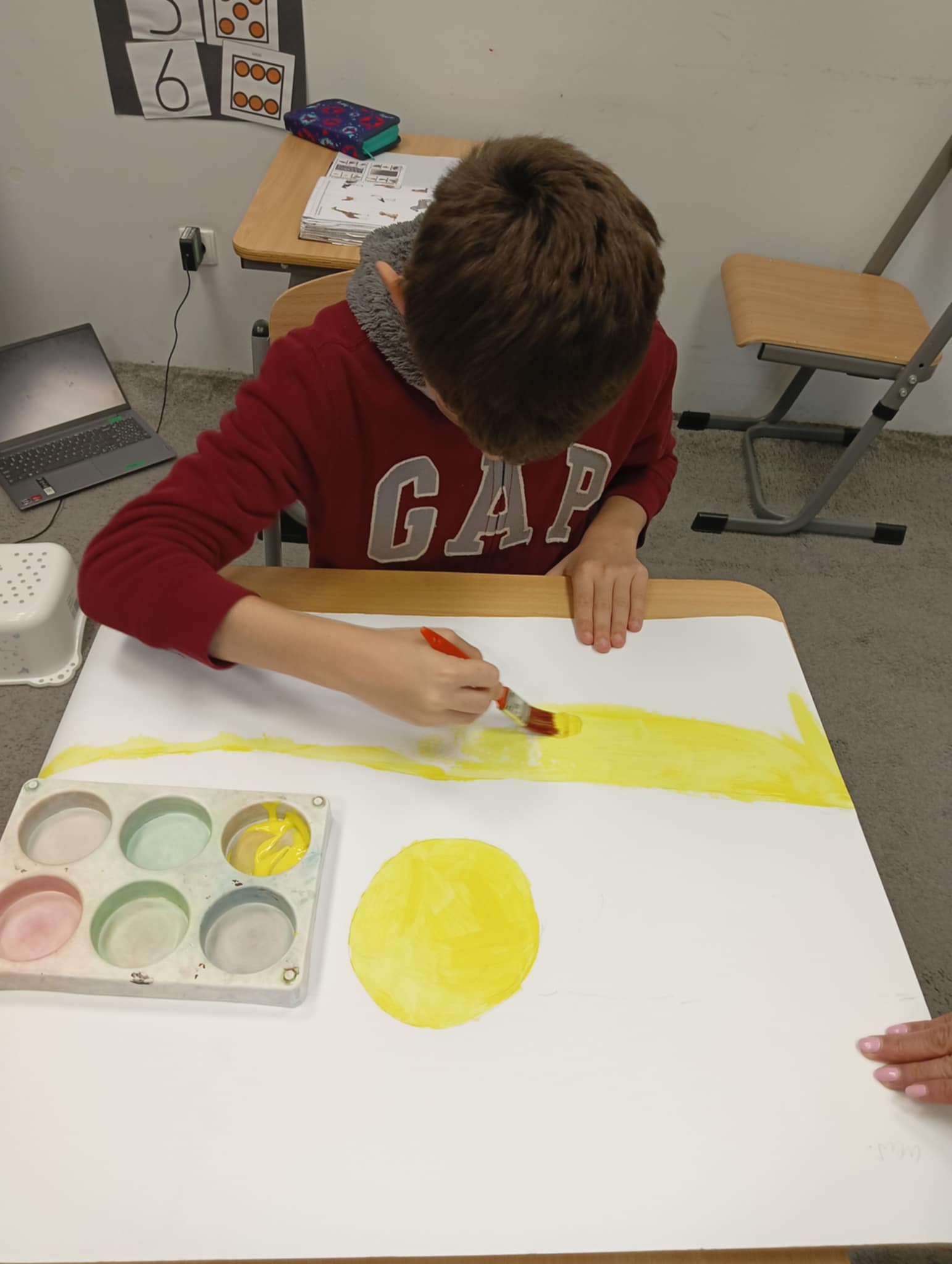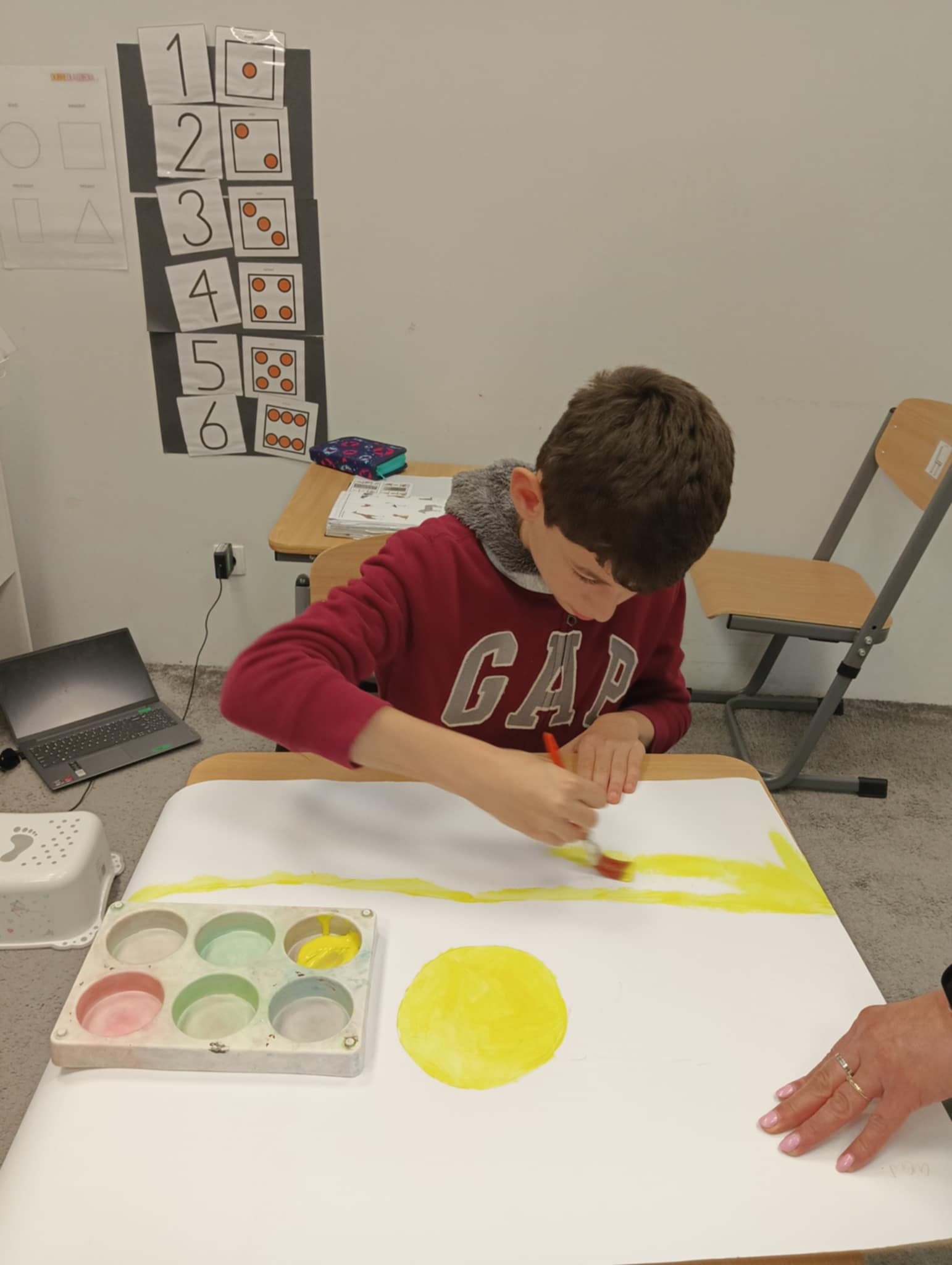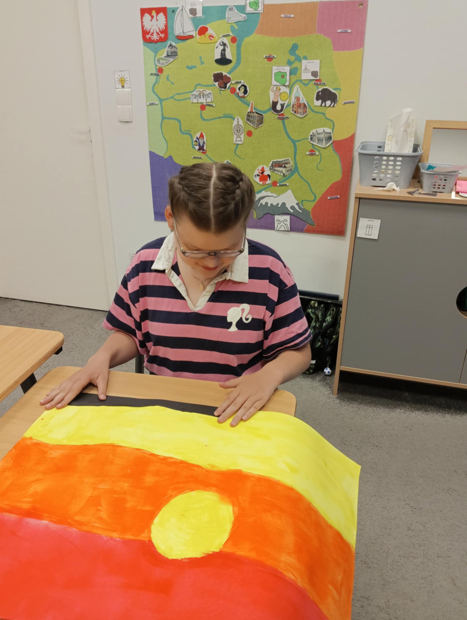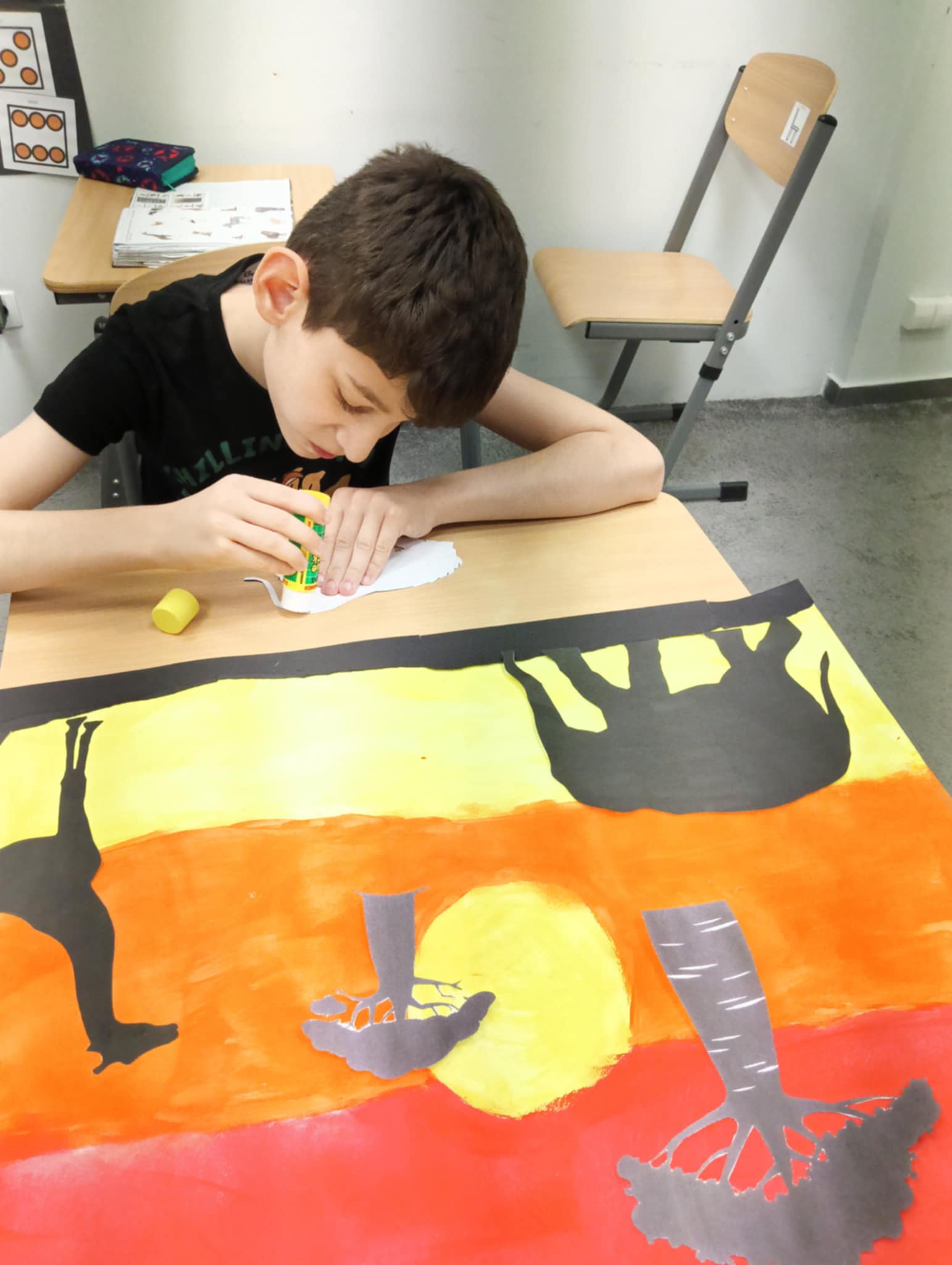 Uczniowie oddziału I podczas tygodniowego cyklu zajęć poświęconego tematowi „Dzikie zwierzęta” z zaangażowaniem zgłębiali wiedzę o mieszkańcach sawanny, dżungli, lasów i innych naturalnych środowisk. Poznawali nazwy dzikich zwierząt, ich charakterystyczne cechy, sposób poruszania się, zwyczaje oraz środowiska, w których żyją. Dowiadywali się również, jaką rolę pełnią te zwierzęta w przyrodzie i jak ważna jest ich ochrona. W trakcie zajęć dzieci uczyły się rozpoznawać odgłosy różnych dzikich zwierząt, co wzbudzało wiele emocji i radości. Omawiano również zagrożenia, jakie mogą nieść spotkania z dzikimi zwierzętami w naturalnym środowisku, oraz uczono zasad bezpiecznego zachowania w ich pobliżu. W ramach zajęć rozwijających kreatywność uczniowie wykonali wspólnie dużą pracę plastyczną zatytułowaną „Sawanna”. Tworząc kolorowy krajobraz z żyrafami, lwami i słoniami, dzieci rozwijały swoją wyobraźnię plastyczną, ćwiczyły sprawność manualną, a także uczyły się współpracy i dzielenia zadaniami. Praca była nie tylko okazją do twórczego działania, ale również do utrwalenia zdobytej wiedzy o dzikiej przyrodzie. Powstała praca została wyeksponowana w szkolnym korytarzu, budząc zachwyt zarówno uczniów, jak i odwiedzających ją dorosłych.