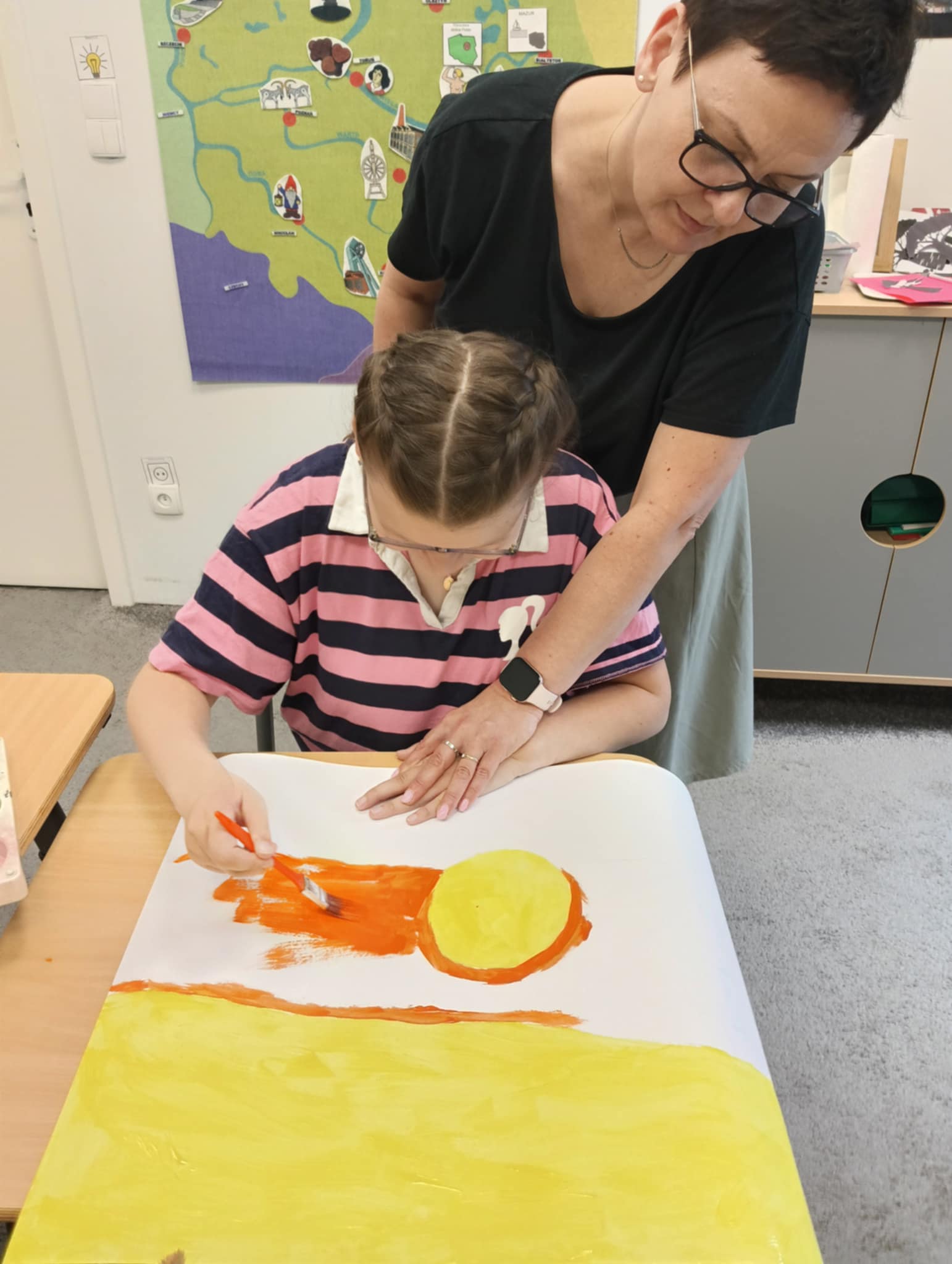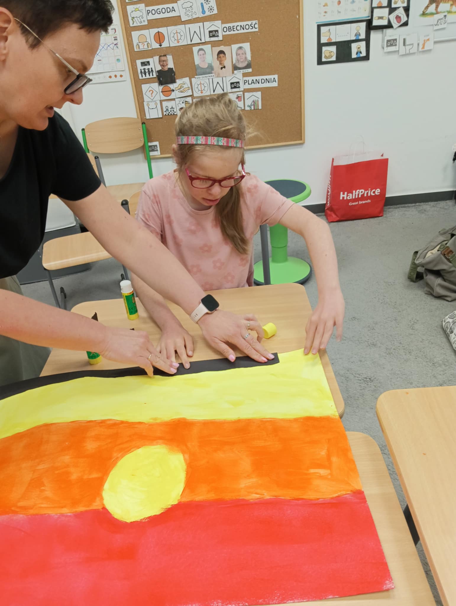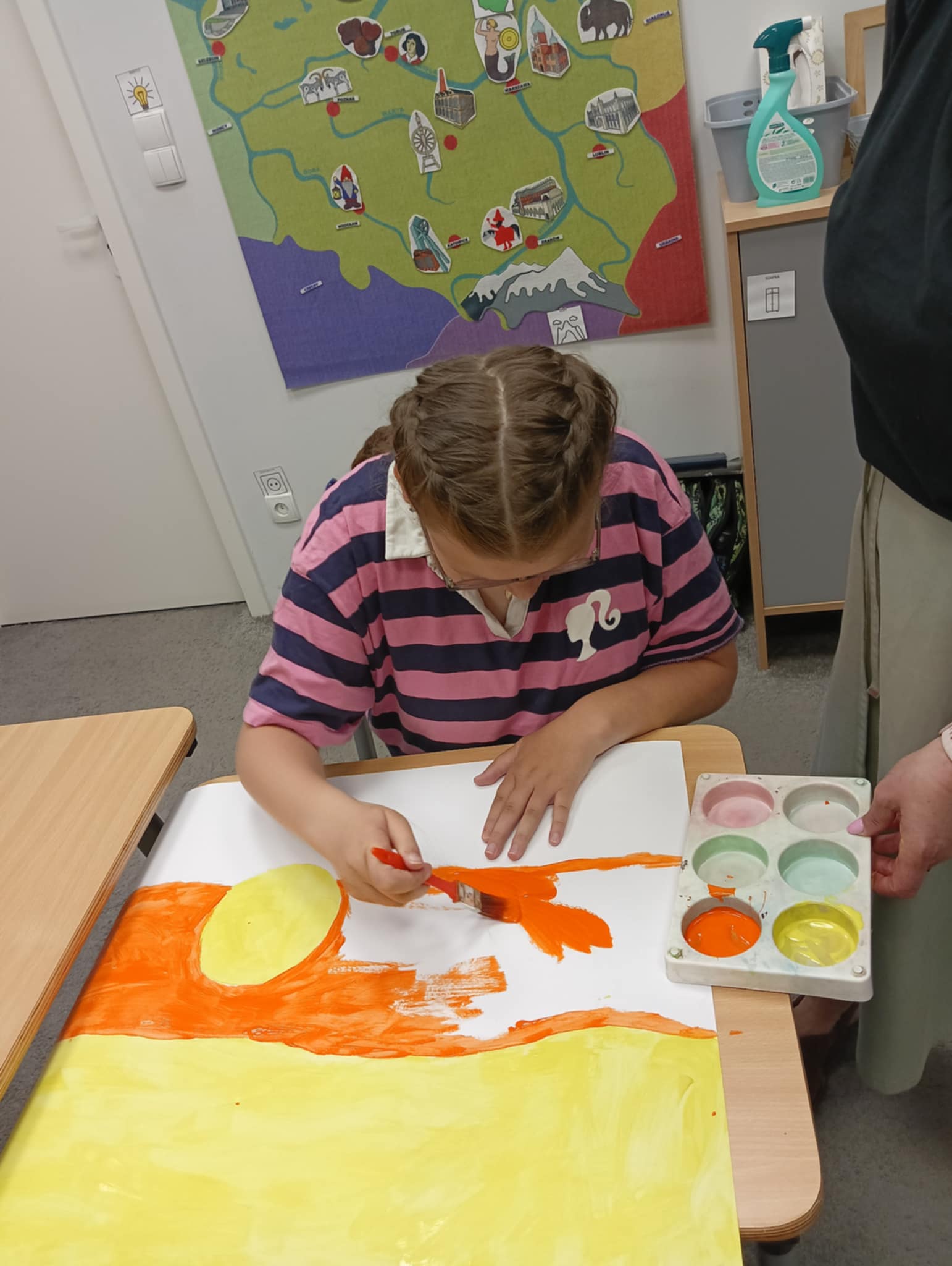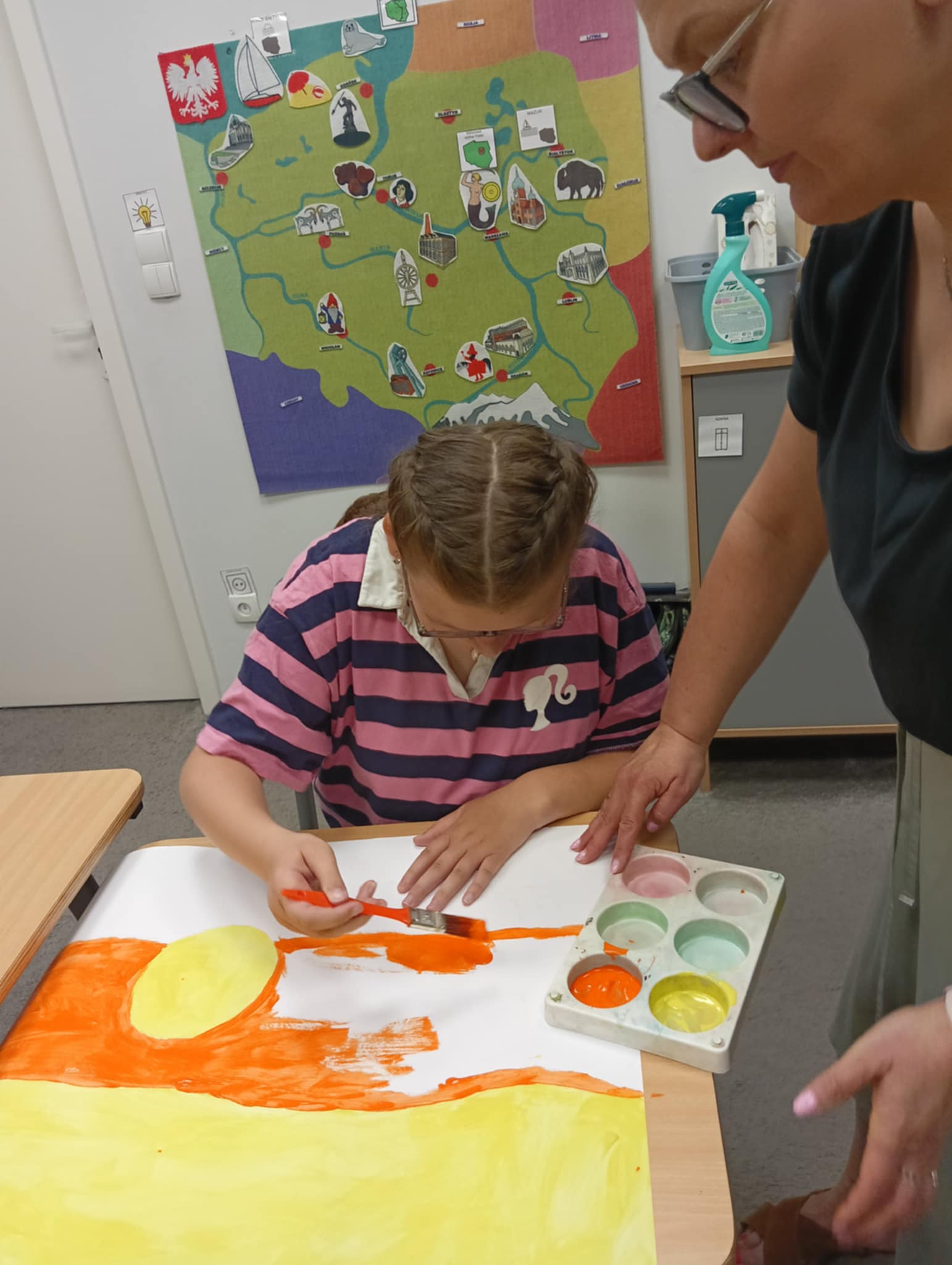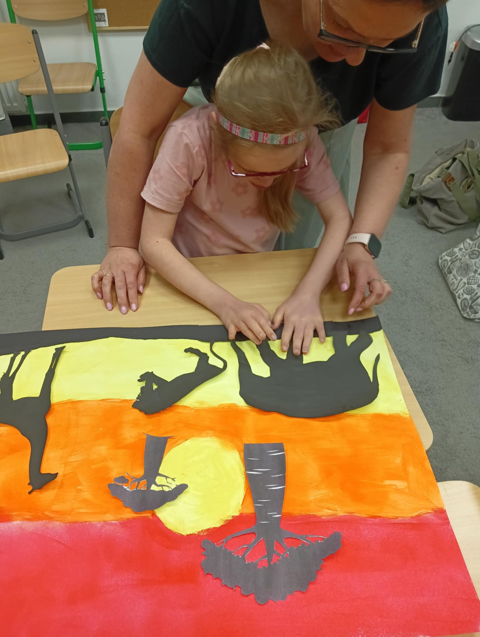 Uczniowie oddziału I podczas tygodniowego cyklu zajęć poświęconego tematowi „Dzikie zwierzęta” z zaangażowaniem zgłębiali wiedzę o mieszkańcach sawanny, dżungli, lasów i innych naturalnych środowisk. Poznawali nazwy dzikich zwierząt, ich charakterystyczne cechy, sposób poruszania się, zwyczaje oraz środowiska, w których żyją. Dowiadywali się również, jaką rolę pełnią te zwierzęta w przyrodzie i jak ważna jest ich ochrona. W trakcie zajęć dzieci uczyły się rozpoznawać odgłosy różnych dzikich zwierząt, co wzbudzało wiele emocji i radości. Omawiano również zagrożenia, jakie mogą nieść spotkania z dzikimi zwierzętami w naturalnym środowisku, oraz uczono zasad bezpiecznego zachowania w ich pobliżu. W ramach zajęć rozwijających kreatywność uczniowie wykonali wspólnie dużą pracę plastyczną zatytułowaną „Sawanna”. Tworząc kolorowy krajobraz z żyrafami, lwami i słoniami, dzieci rozwijały swoją wyobraźnię plastyczną, ćwiczyły sprawność manualną, a także uczyły się współpracy i dzielenia zadaniami. Praca była nie tylko okazją do twórczego działania, ale również do utrwalenia zdobytej wiedzy o dzikiej przyrodzie. Powstała praca została wyeksponowana w szkolnym korytarzu, budząc zachwyt zarówno uczniów, jak i odwiedzających ją dorosłych.