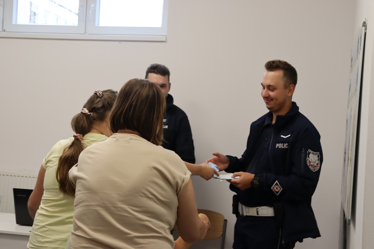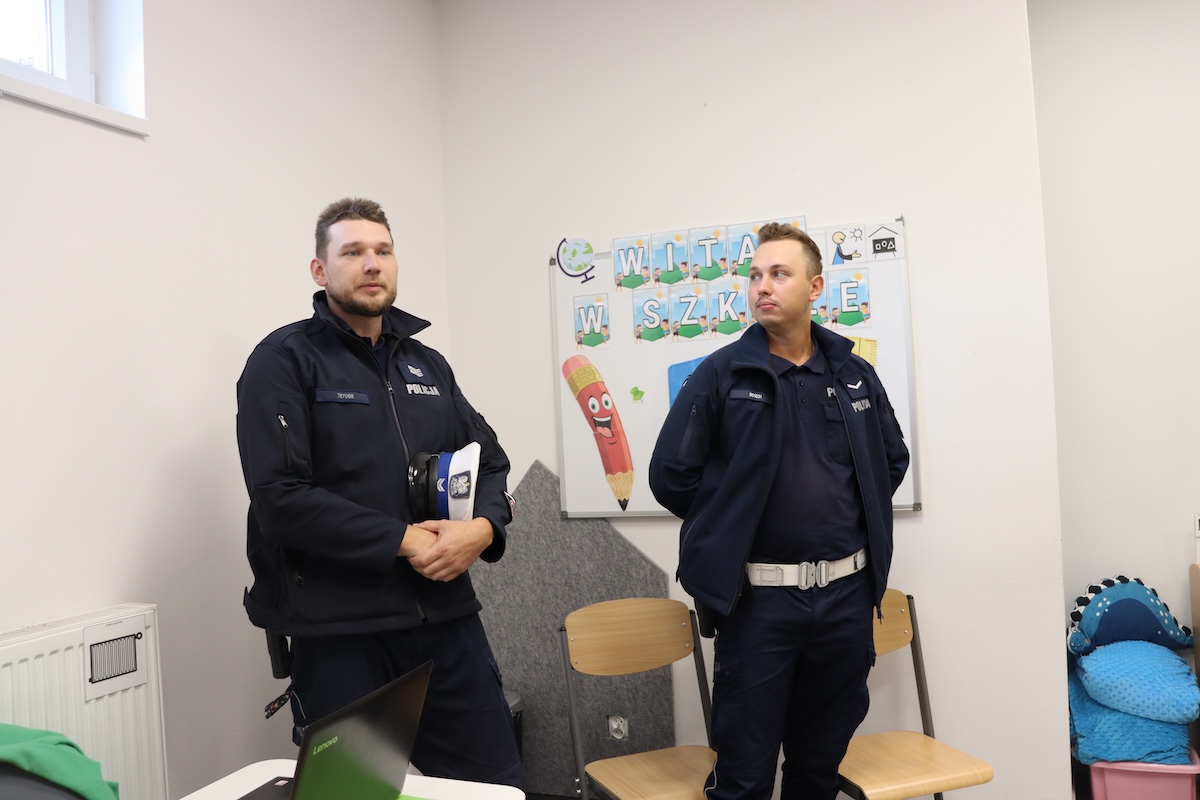 Na początku września w naszej szkole odbyło się spotkanie z funkcjonariuszami Policji, podczas którego omówiono zasady bezpieczeństwa w codziennych sytuacjach. Uczniowie przypomnieli sobie, jak prawidłowo poruszać się po drodze, zwłaszcza jak bezpiecznie przechodzić przez ulicę na przejściach dla pieszych oraz dlaczego tak ważne jest noszenie elementów odblaskowych. Serdecznie dziękujemy Panom Policjantom za wizytę, cenne wskazówki i zaangażowanie w edukację naszych uczniów!