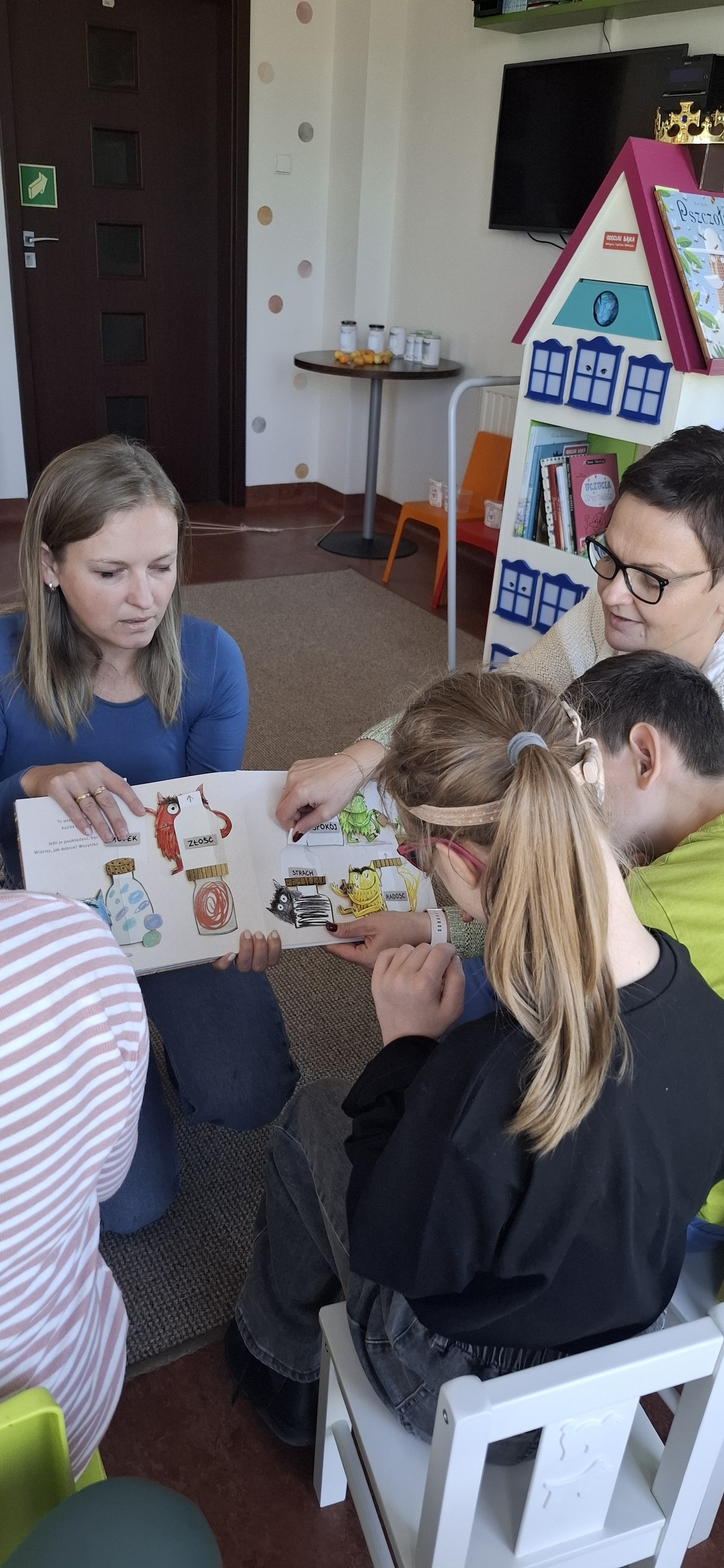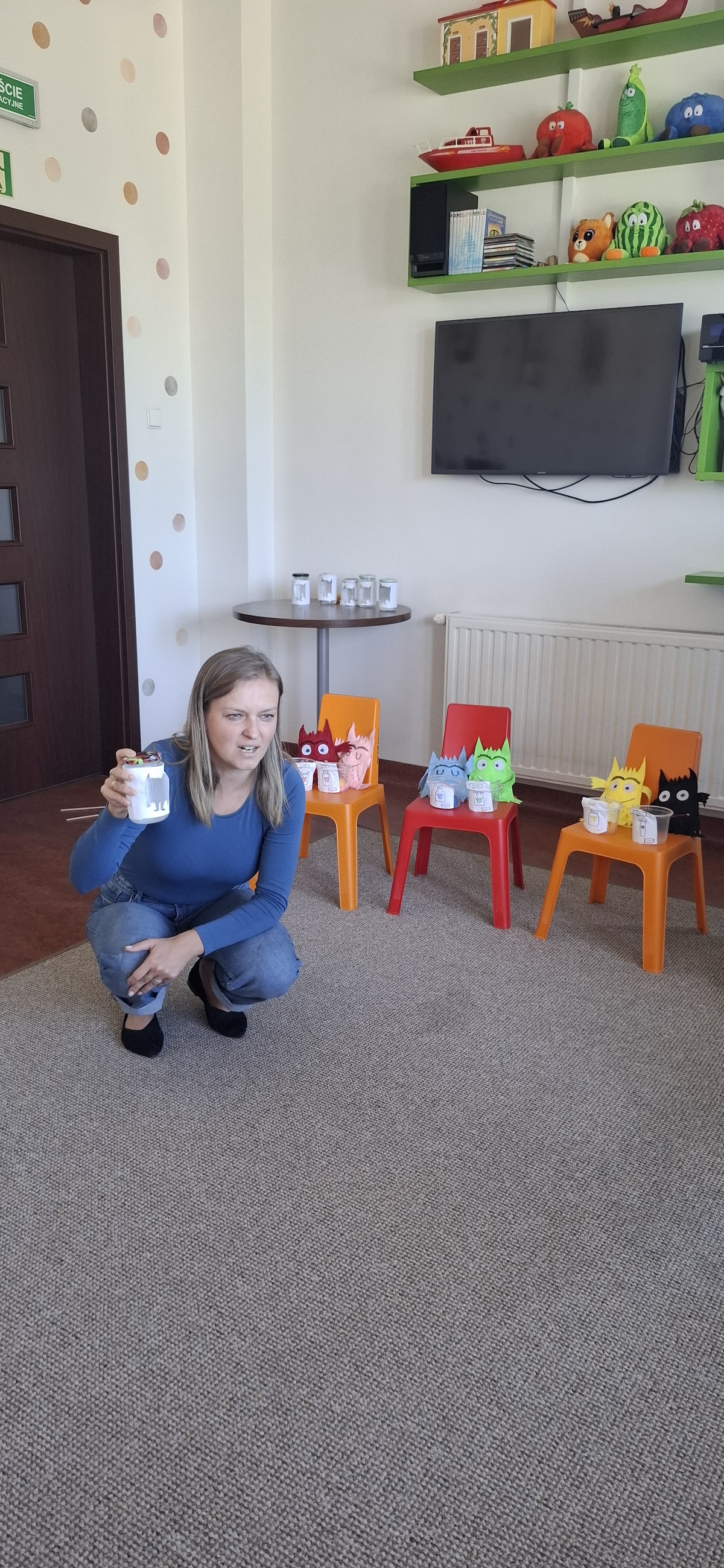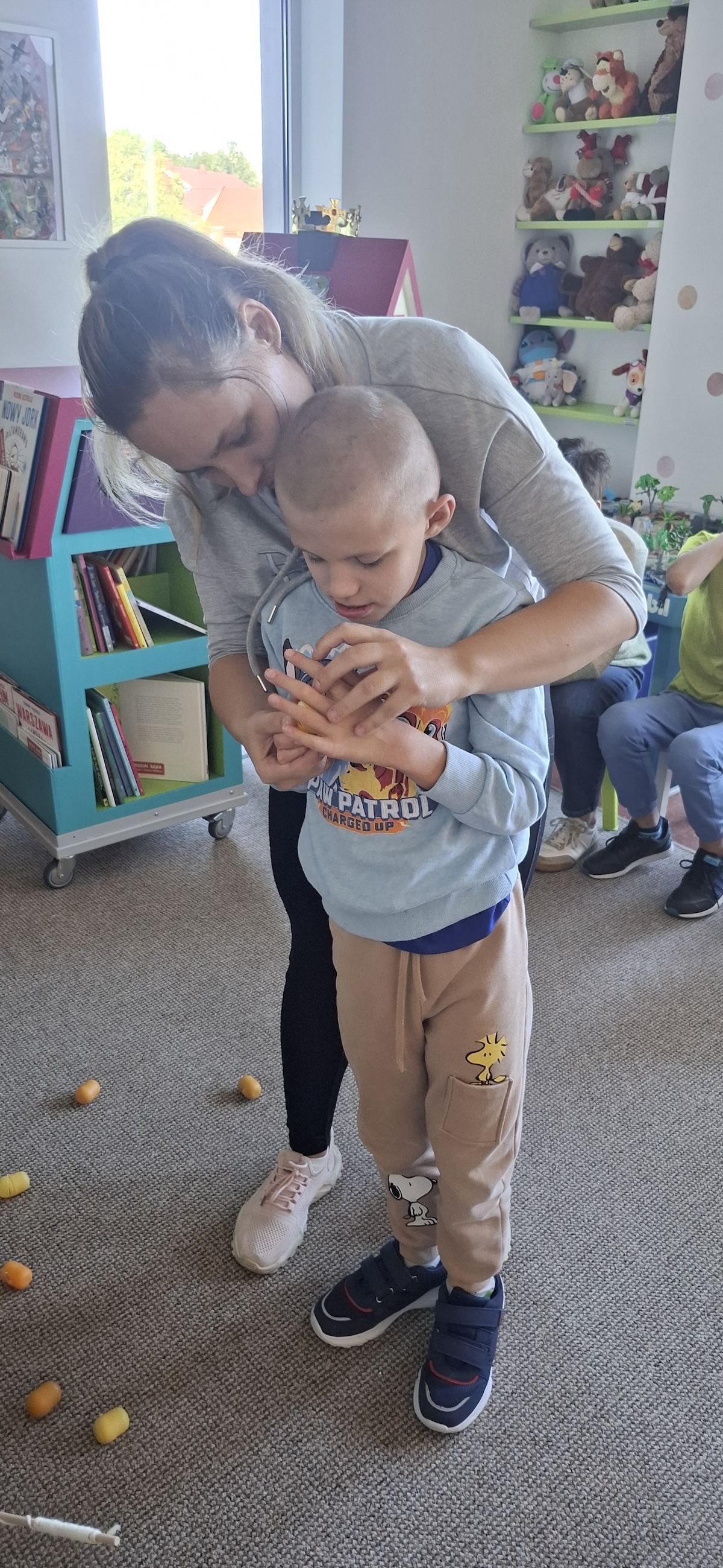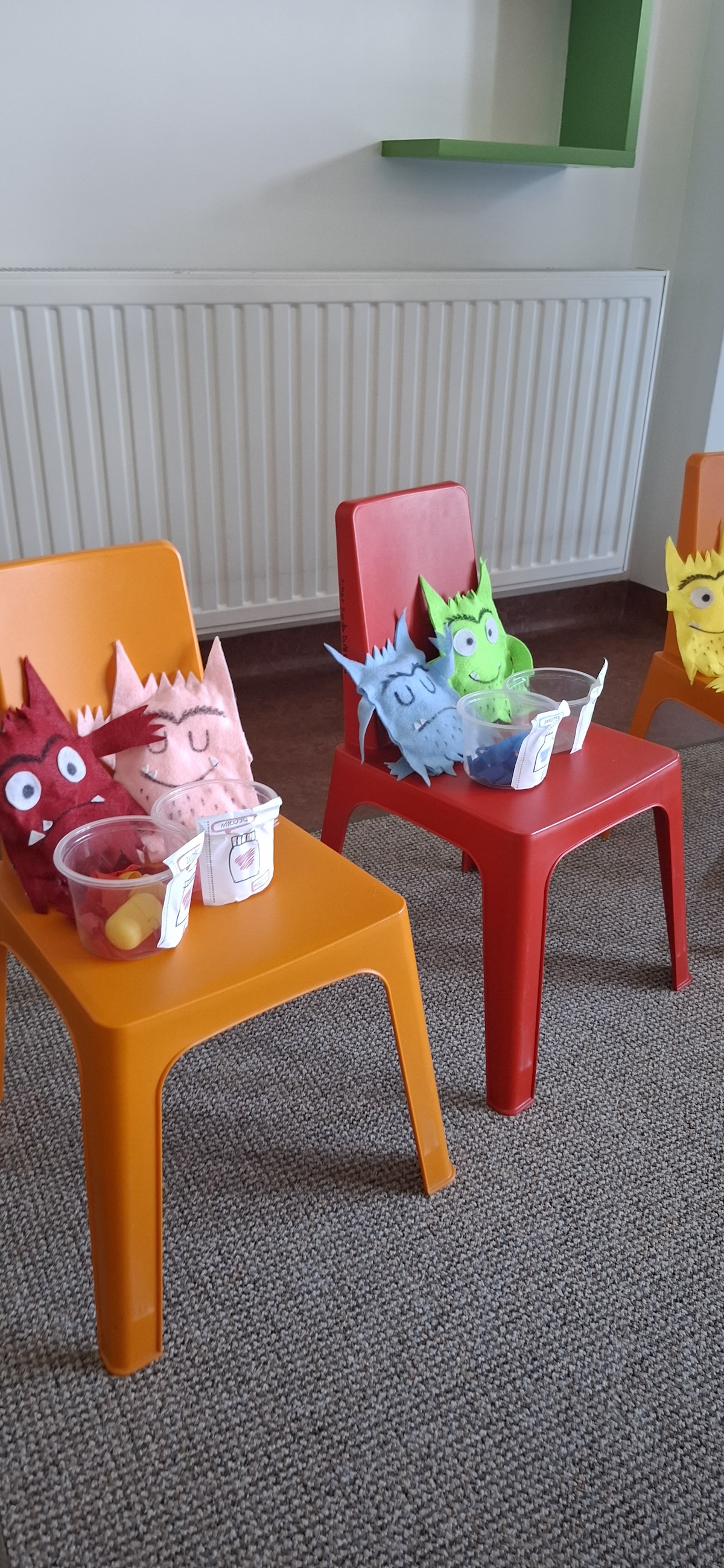 Dnia 18 września nasza szkoła wybrała się na pierwszą w tym roku szkolnym wizytę do Centrum Kulturalno-Bibliotecznego w Brzesku, do zaprzyjaźnionego oddziału dziecięcego. Podczas zajęć Pani przygotowała dla nas czytankę o emocjach. Następnie dzieci szukały ukrytych w „Bajkowozie” maskotek przedstawiających różne emocje i nazywały je. Kolejnym zadaniem było łowienie „rybek” – w każdej z nich, ukrytej w plastikowym jajku, znajdował się kolor emocji, który należało dopasować do odpowiedniej maskotki. Najwięcej radości sprawiła dzieciom zabawa w odkrywanie kolorów poprzez wstrząsanie słoiczkiem – woda w nim zmieniała barwę na kolor danej emocji. Na zakończenie wykonaliśmy pracę plastyczną „Moja własna emocja” – każdy uczeń mógł ozdobić ją według własnego pomysłu. Czas upłynął tak szybko, że nawet nie zauważyliśmy, kiedy zajęcia dobiegły końca.