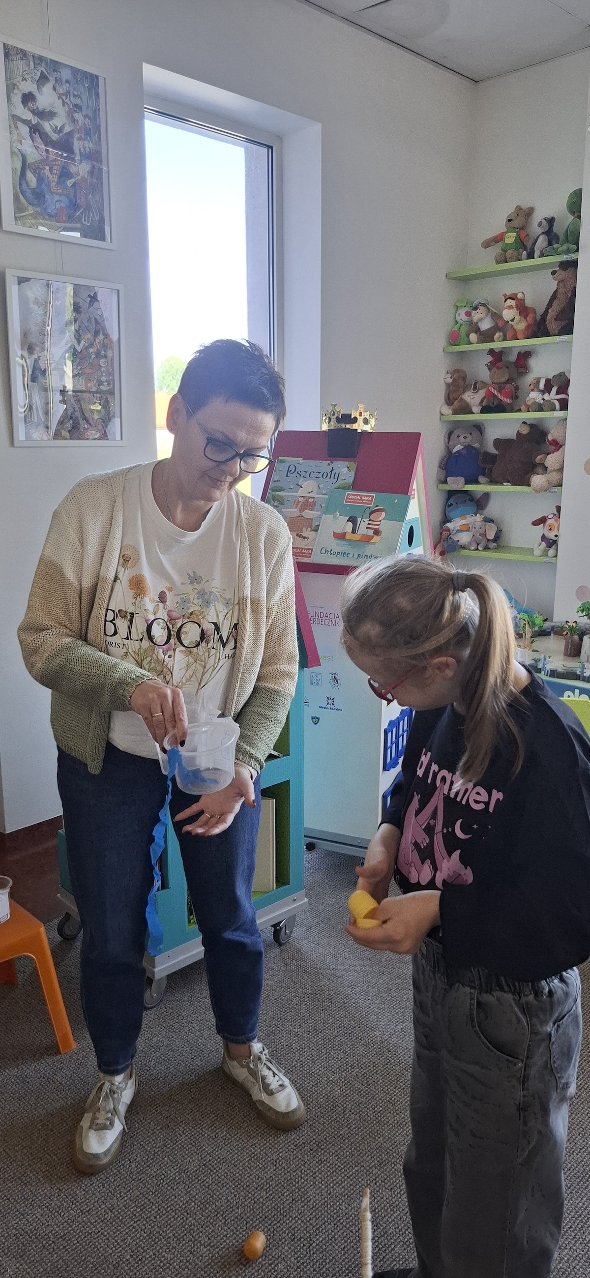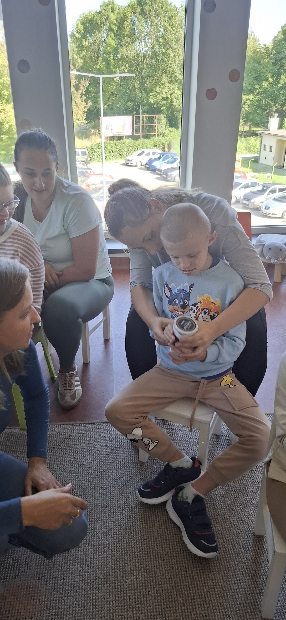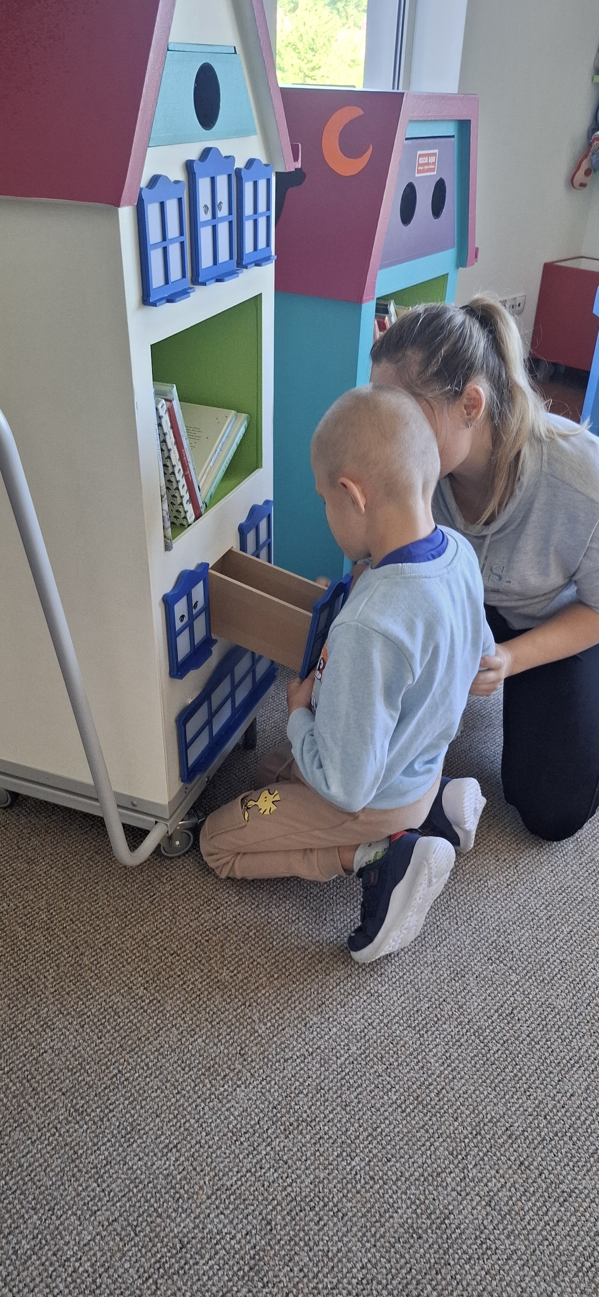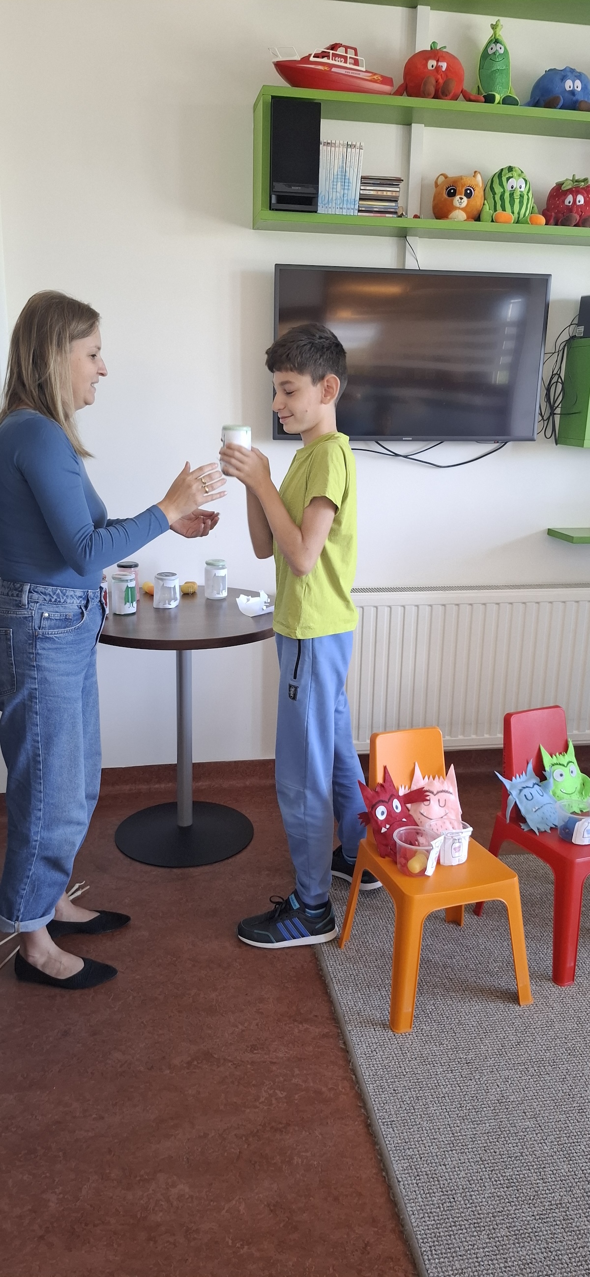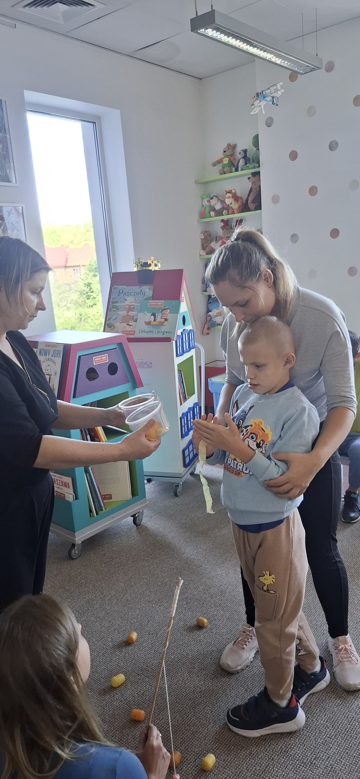 Dnia 18 września nasza szkoła wybrała się na pierwszą w tym roku szkolnym wizytę do Centrum Kulturalno-Bibliotecznego w Brzesku, do zaprzyjaźnionego oddziału dziecięcego. Podczas zajęć Pani przygotowała dla nas czytankę o emocjach. Następnie dzieci szukały ukrytych w „Bajkowozie” maskotek przedstawiających różne emocje i nazywały je. Kolejnym zadaniem było łowienie „rybek” – w każdej z nich, ukrytej w plastikowym jajku, znajdował się kolor emocji, który należało dopasować do odpowiedniej maskotki. Najwięcej radości sprawiła dzieciom zabawa w odkrywanie kolorów poprzez wstrząsanie słoiczkiem – woda w nim zmieniała barwę na kolor danej emocji. Na zakończenie wykonaliśmy pracę plastyczną „Moja własna emocja” – każdy uczeń mógł ozdobić ją według własnego pomysłu. Czas upłynął tak szybko, że nawet nie zauważyliśmy, kiedy zajęcia dobiegły końca.