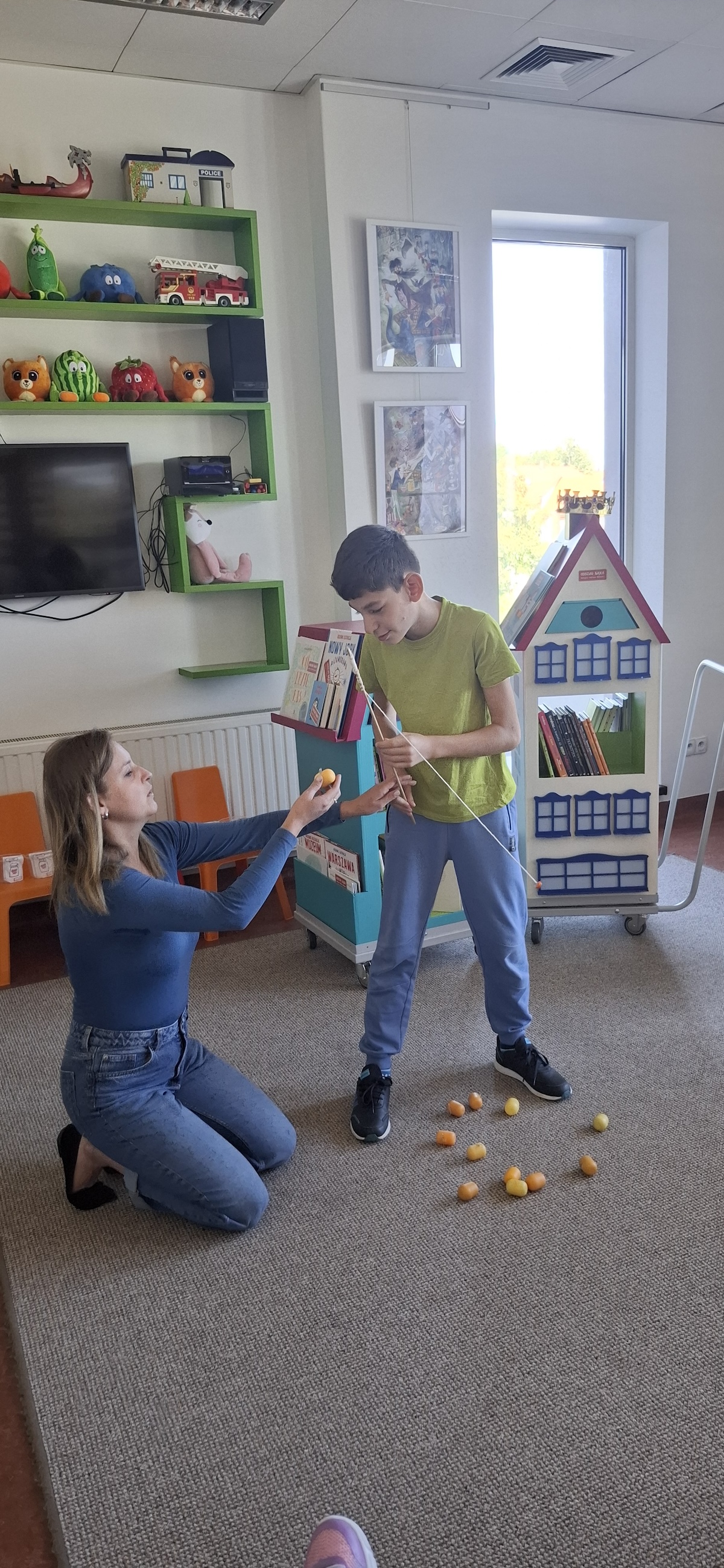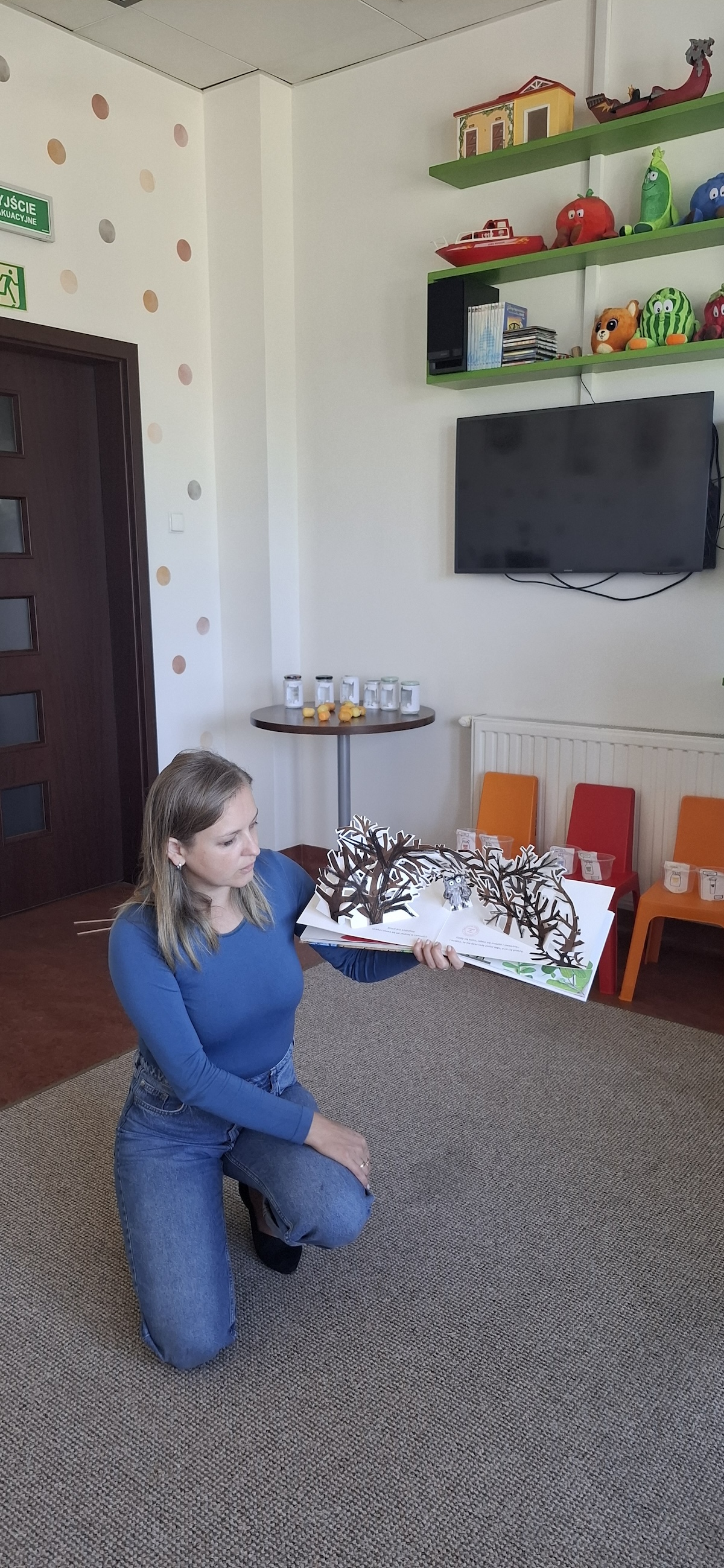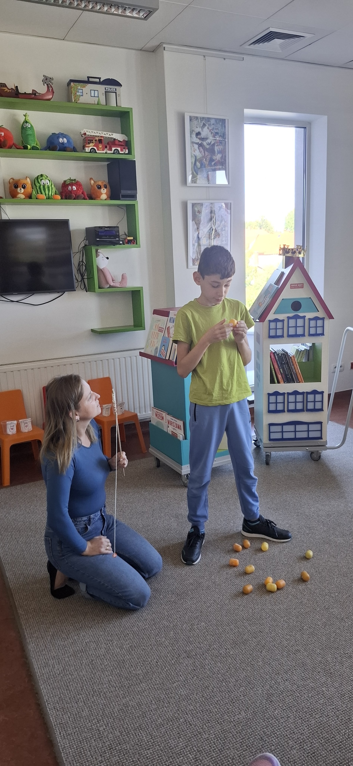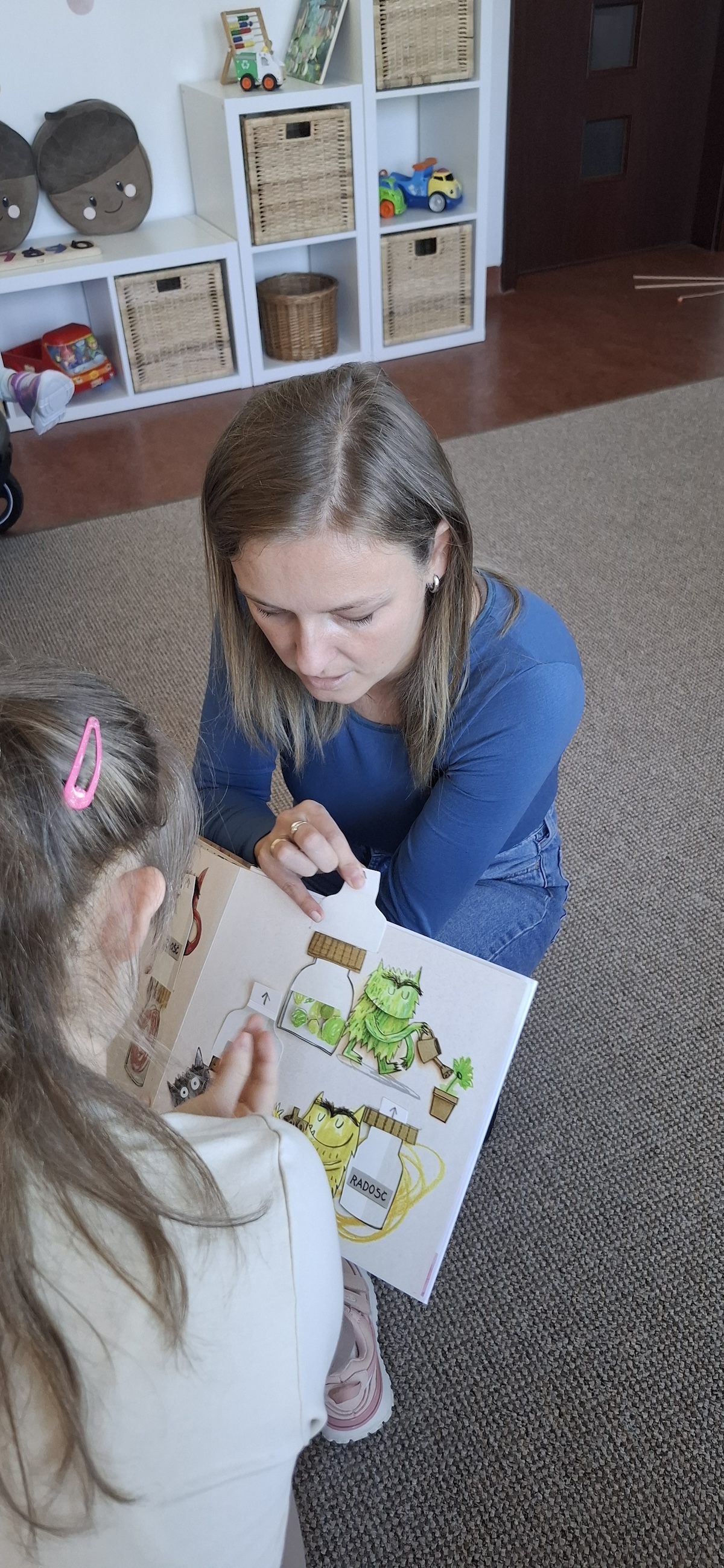 Dnia 18 września nasza szkoła wybrała się na pierwszą w tym roku szkolnym wizytę do Centrum Kulturalno-Bibliotecznego w Brzesku, do zaprzyjaźnionego oddziału dziecięcego. Podczas zajęć Pani przygotowała dla nas czytankę o emocjach. Następnie dzieci szukały ukrytych w „Bajkowozie” maskotek przedstawiających różne emocje i nazywały je. Kolejnym zadaniem było łowienie „rybek” – w każdej z nich, ukrytej w plastikowym jajku, znajdował się kolor emocji, który należało dopasować do odpowiedniej maskotki. Najwięcej radości sprawiła dzieciom zabawa w odkrywanie kolorów poprzez wstrząsanie słoiczkiem – woda w nim zmieniała barwę na kolor danej emocji. Na zakończenie wykonaliśmy pracę plastyczną „Moja własna emocja” – każdy uczeń mógł ozdobić ją według własnego pomysłu. Czas upłynął tak szybko, że nawet nie zauważyliśmy, kiedy zajęcia dobiegły końca.