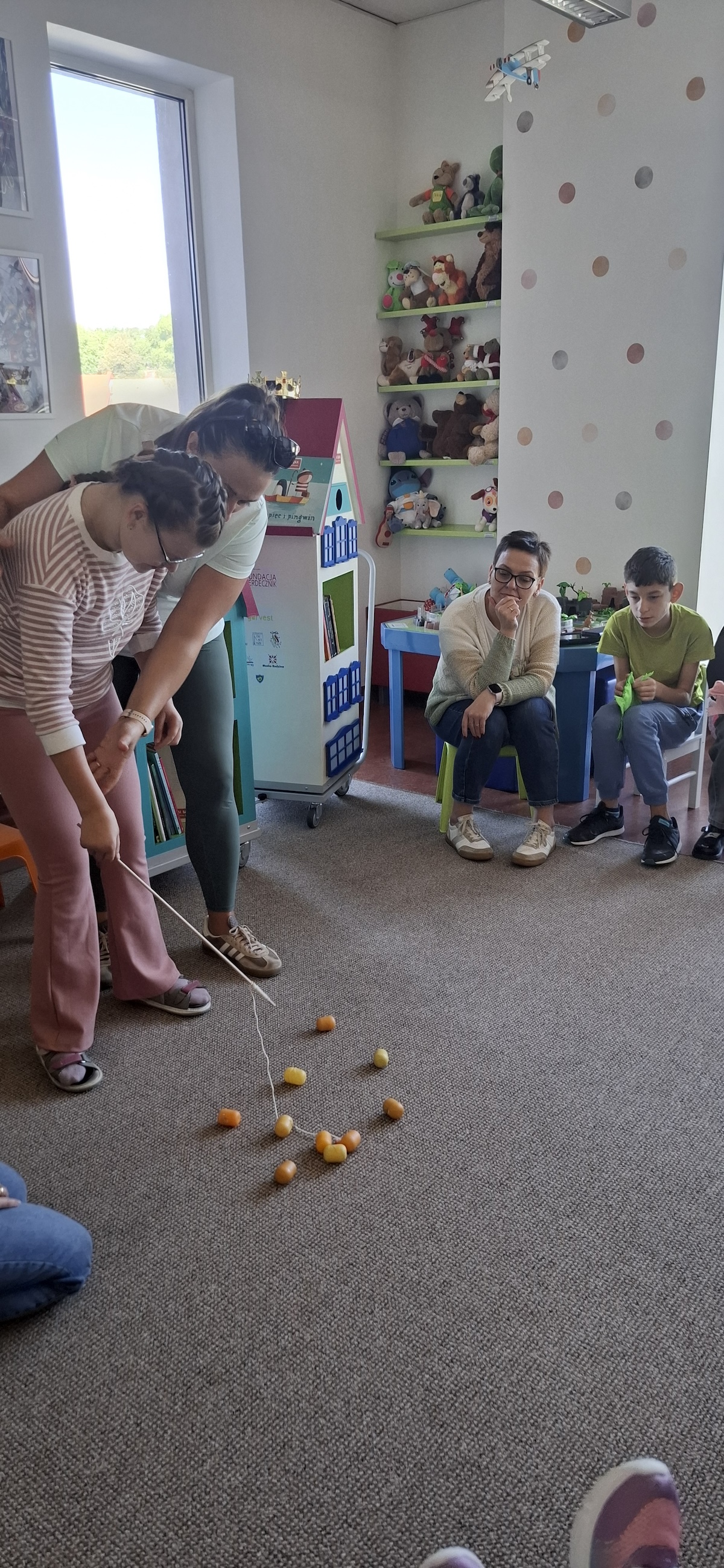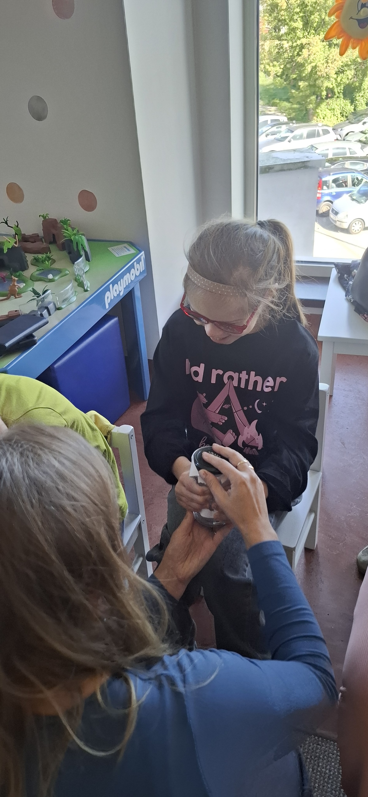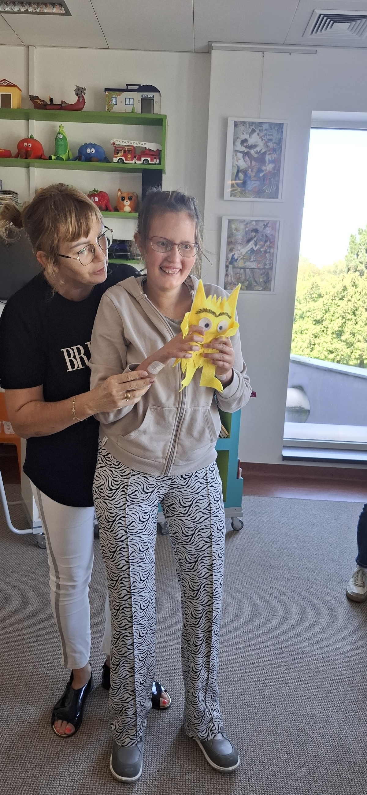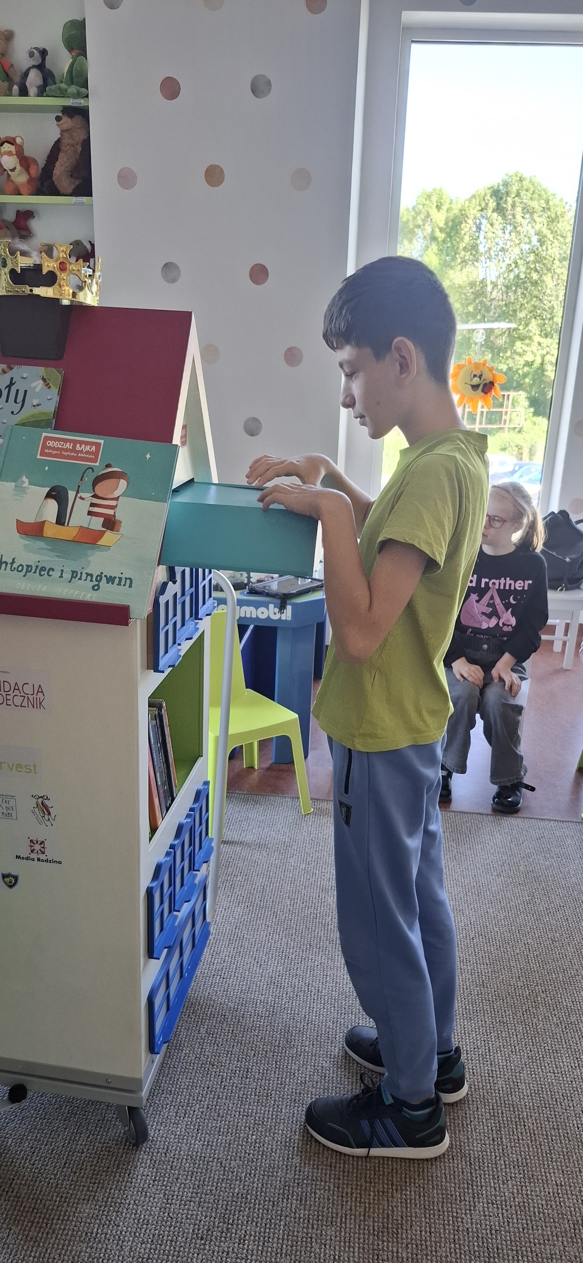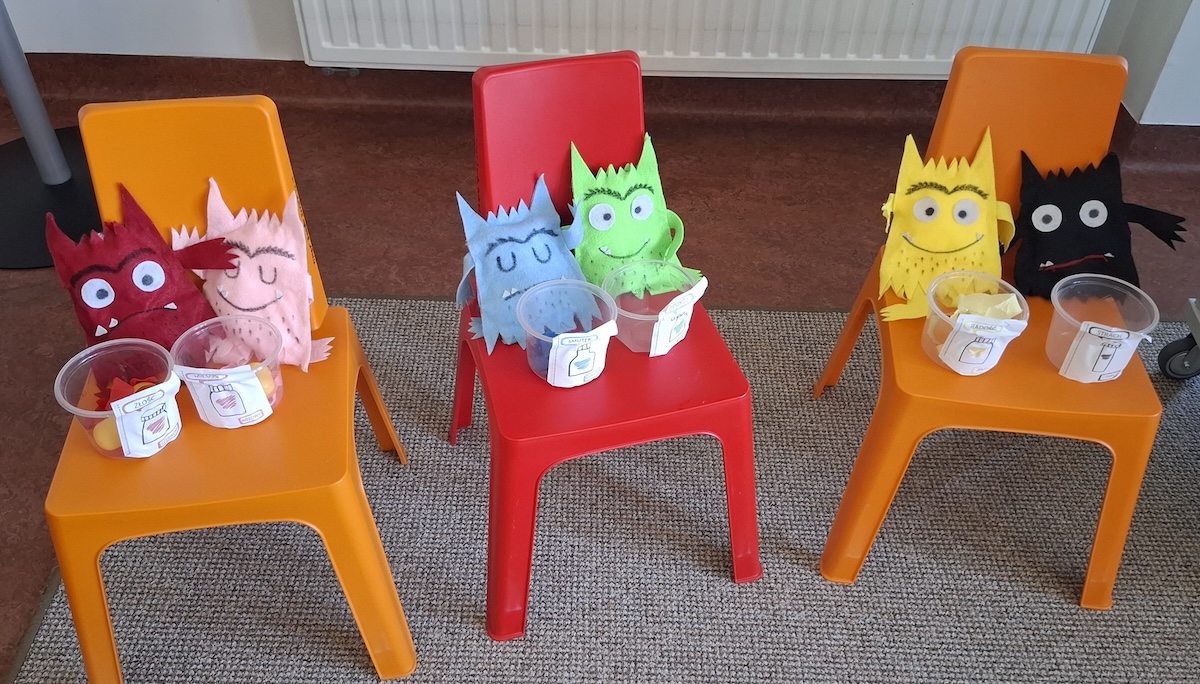 Dnia 18 września nasza szkoła wybrała się na pierwszą w tym roku szkolnym wizytę do Centrum Kulturalno-Bibliotecznego w Brzesku, do zaprzyjaźnionego oddziału dziecięcego. Podczas zajęć Pani przygotowała dla nas czytankę o emocjach. Następnie dzieci szukały ukrytych w „Bajkowozie” maskotek przedstawiających różne emocje i nazywały je. Kolejnym zadaniem było łowienie „rybek” – w każdej z nich, ukrytej w plastikowym jajku, znajdował się kolor emocji, który należało dopasować do odpowiedniej maskotki. Najwięcej radości sprawiła dzieciom zabawa w odkrywanie kolorów poprzez wstrząsanie słoiczkiem – woda w nim zmieniała barwę na kolor danej emocji. Na zakończenie wykonaliśmy pracę plastyczną „Moja własna emocja” – każdy uczeń mógł ozdobić ją według własnego pomysłu. Czas upłynął tak szybko, że nawet nie zauważyliśmy, kiedy zajęcia dobiegły końca.