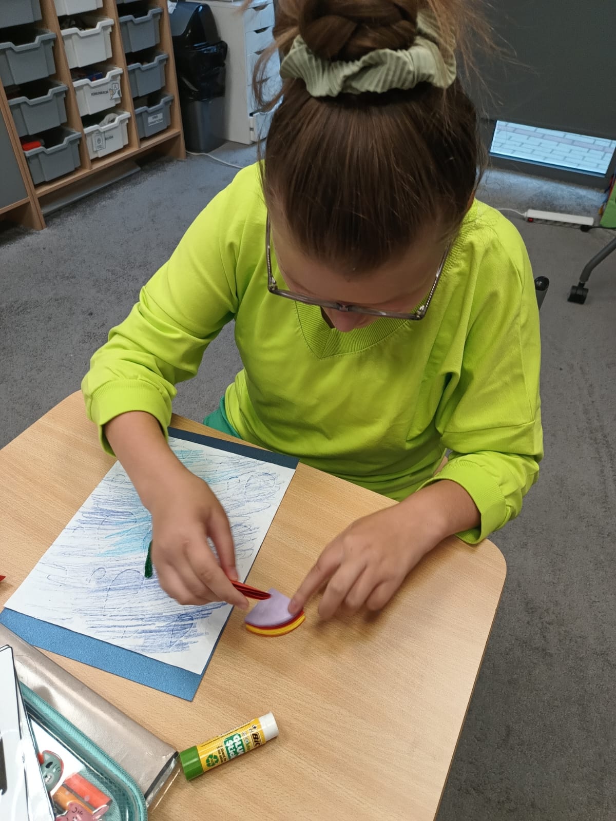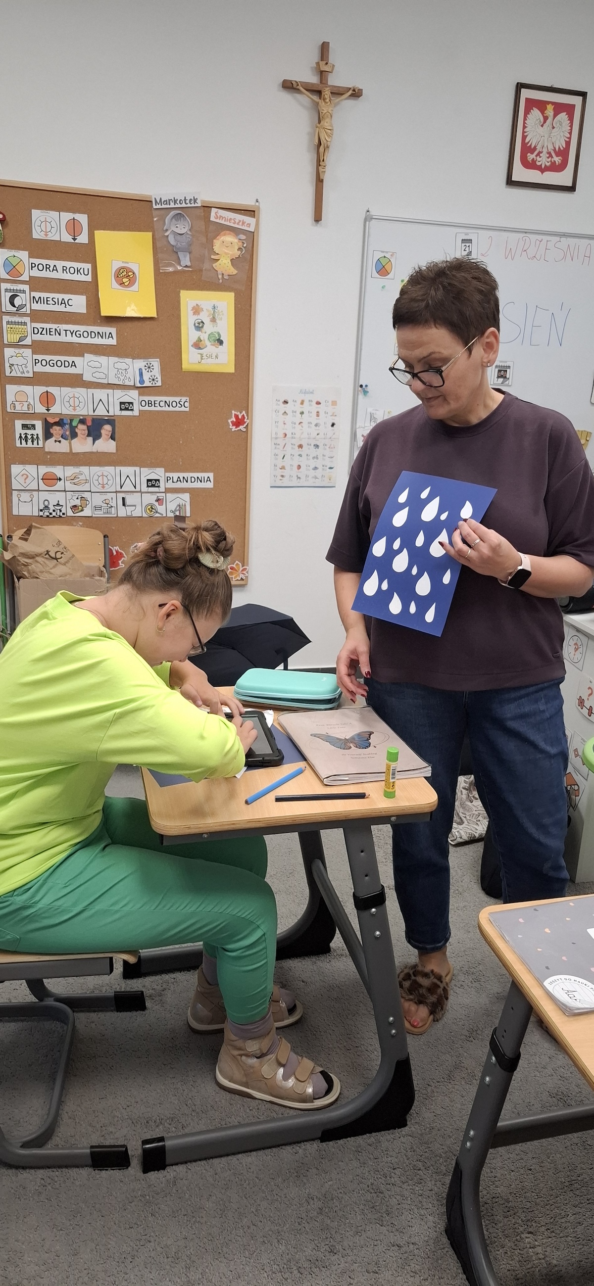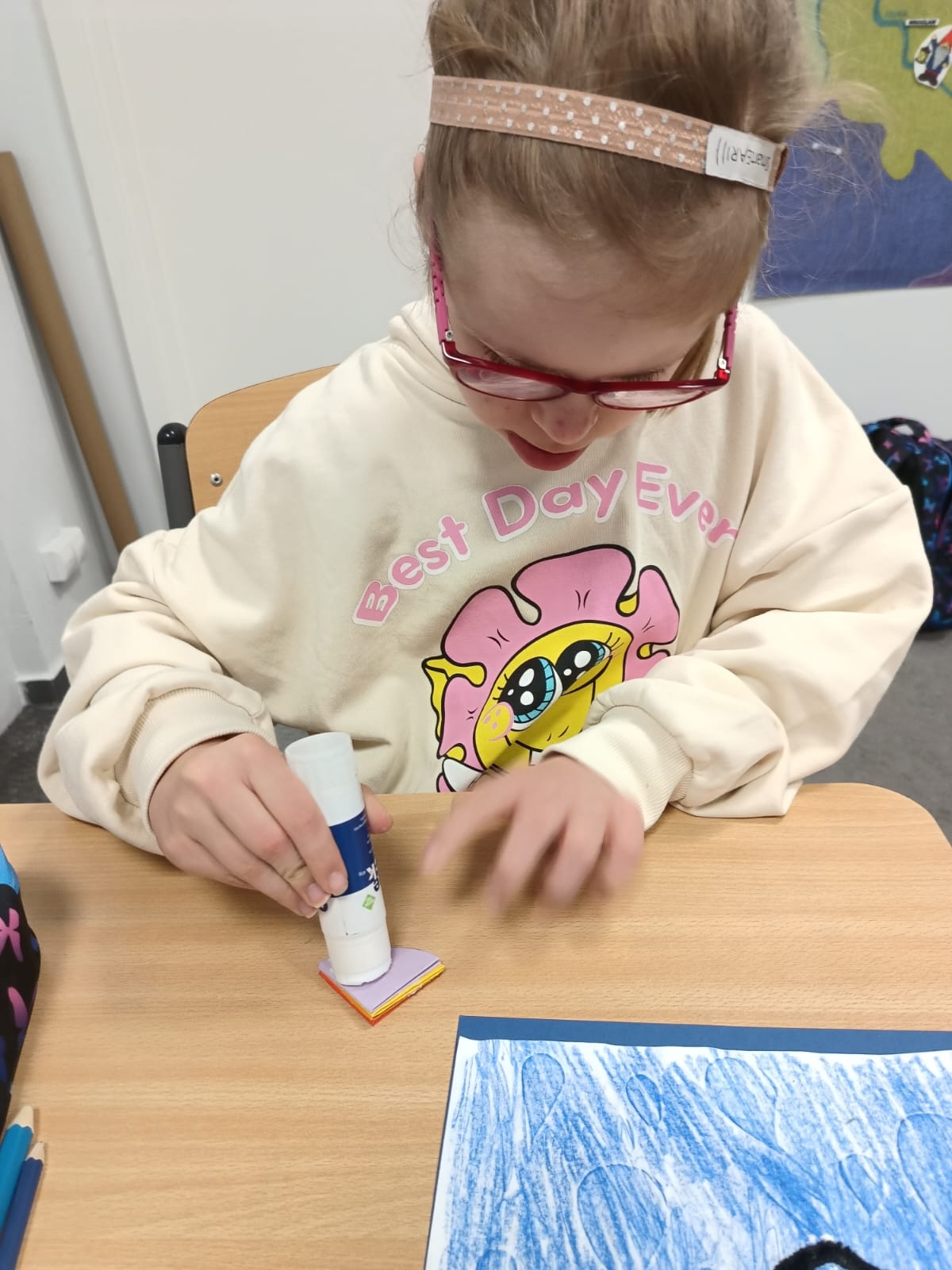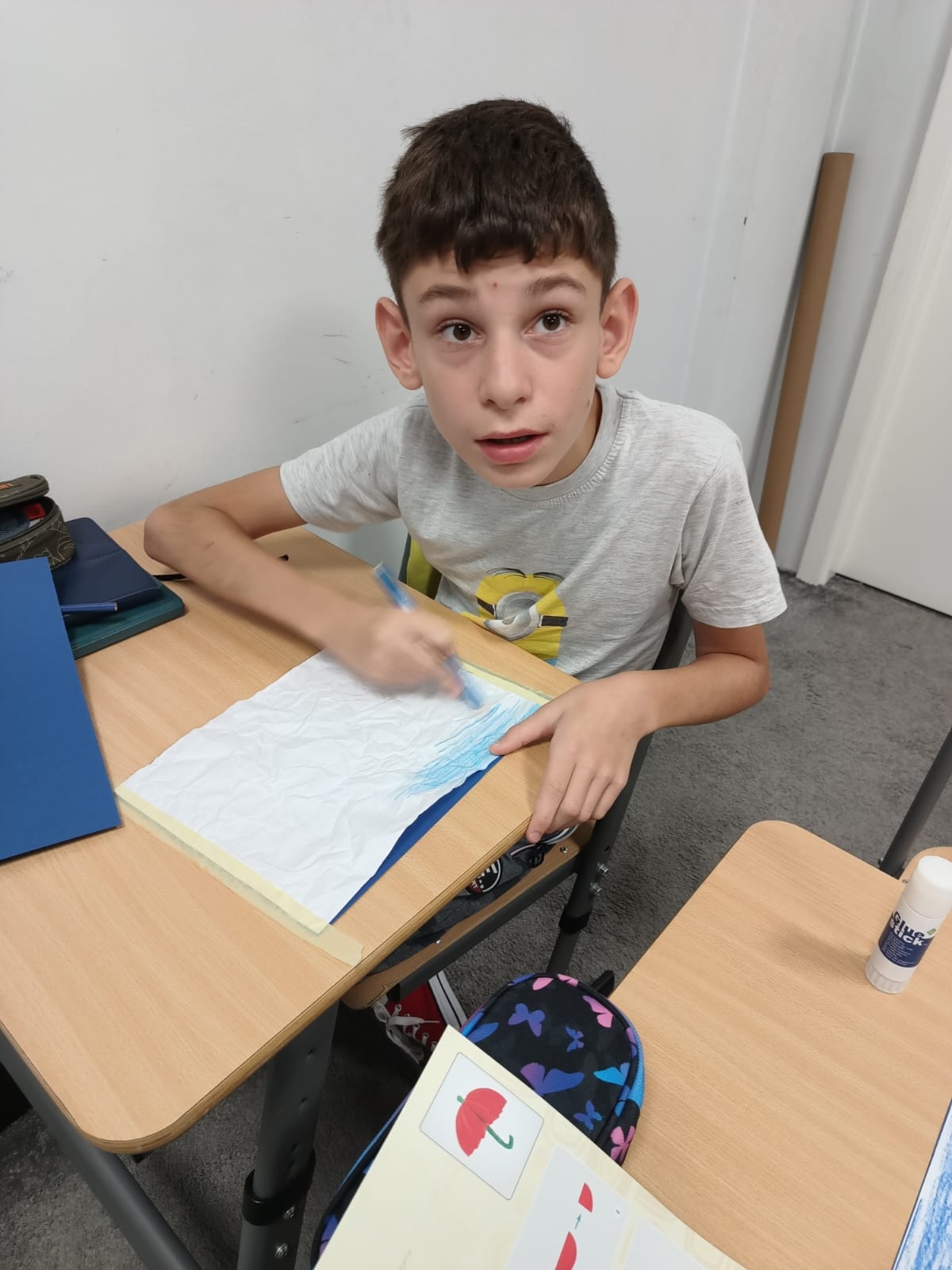 W tygodniu o tematyce Jesieni, uczniowie oddziału „I” w ramach zajęć rozwijających kreatywność wykonali pracę plastyczną „ Jesienna pogoda” wykonując ciekawą techniką „deszcz”, a na nim kolorowe parasolki z kółek. Podczas zajęć uczniowie utrwalali wiadomości dotyczące jesiennej pogody, kształt koła, pojęcie połowy, ćwiartki oraz kolory.
