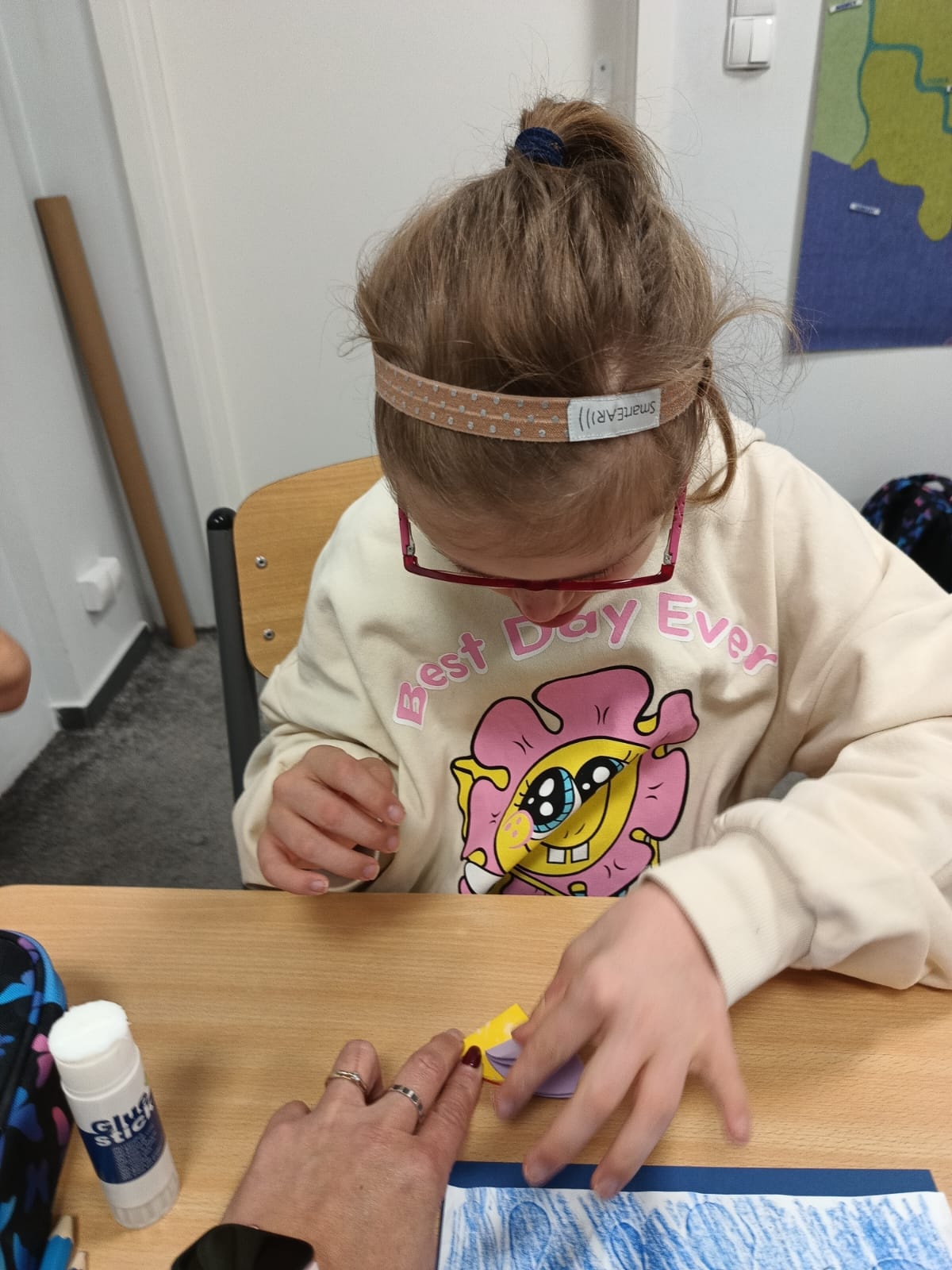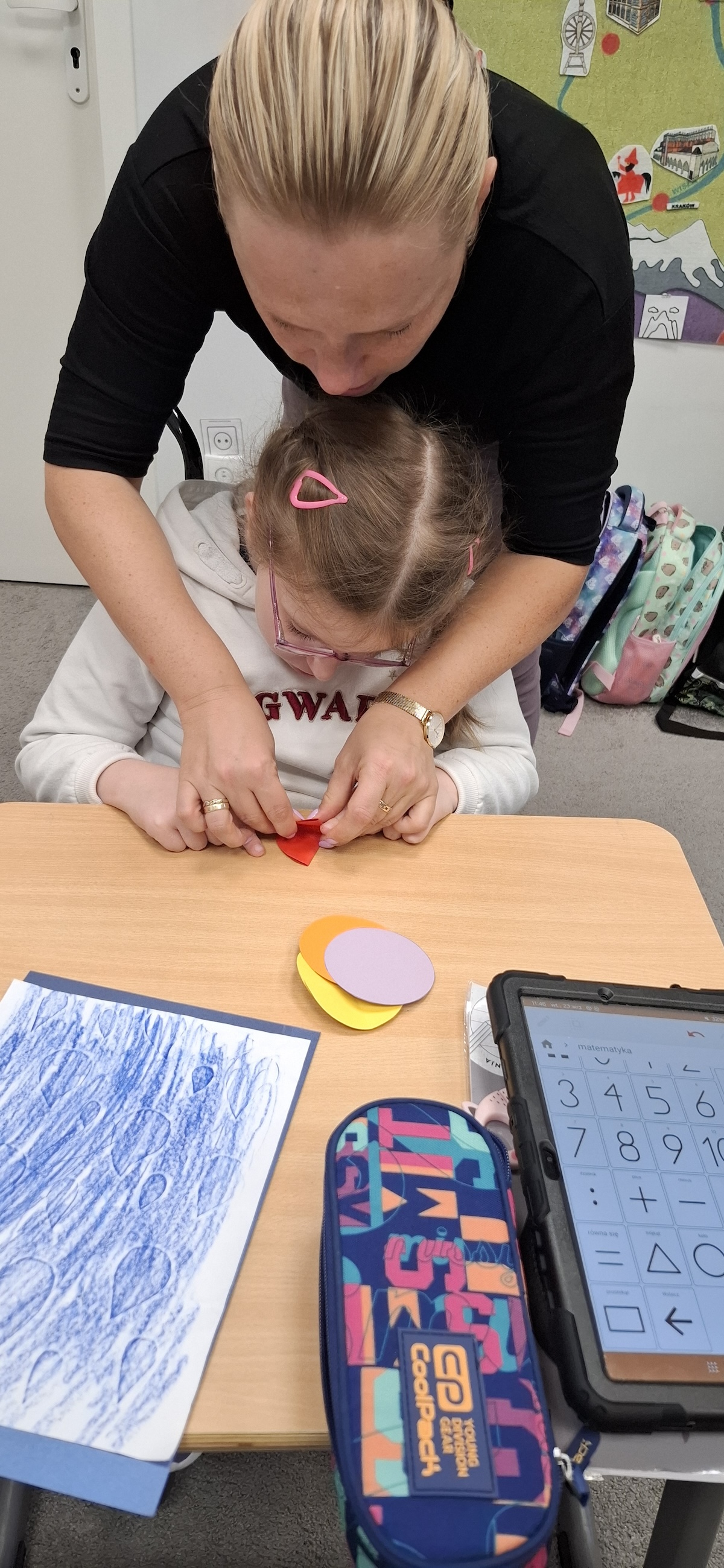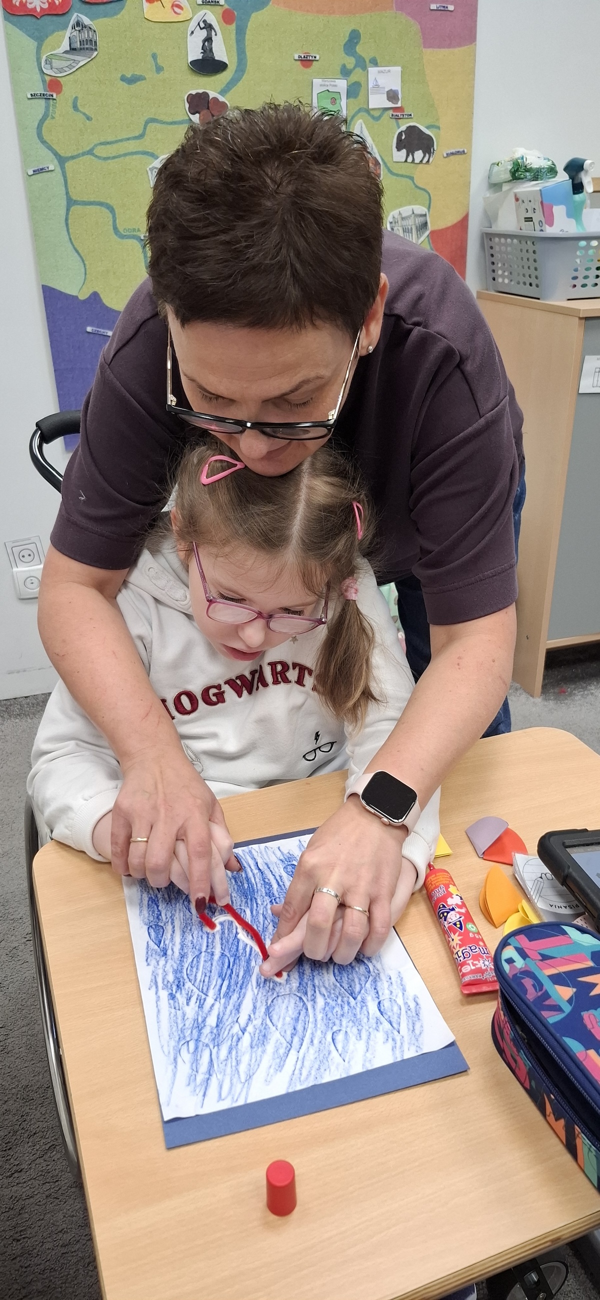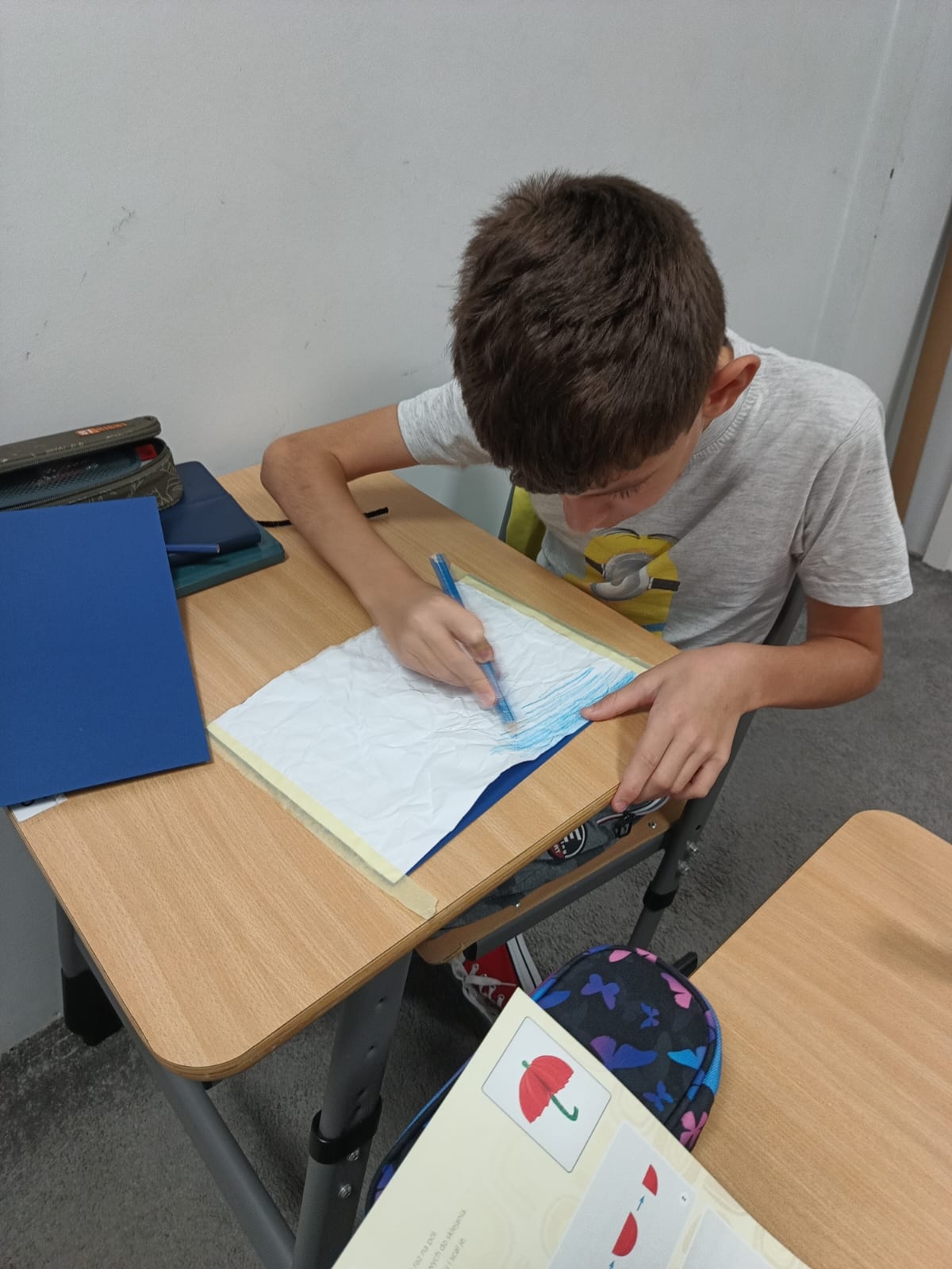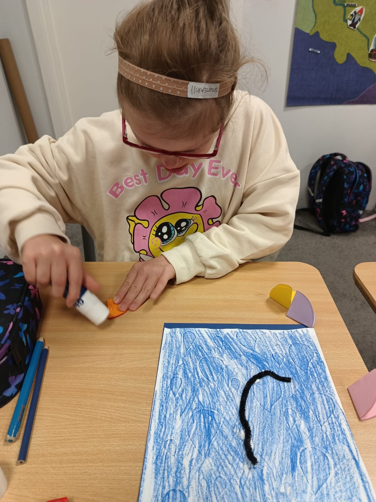 W tygodniu o tematyce Jesieni, uczniowie oddziału „I” w ramach zajęć rozwijających kreatywność wykonali pracę plastyczną „ Jesienna pogoda” wykonując ciekawą techniką „deszcz”, a na nim kolorowe parasolki z kółek. Podczas zajęć uczniowie utrwalali wiadomości dotyczące jesiennej pogody, kształt koła, pojęcie połowy, ćwiartki oraz kolory.