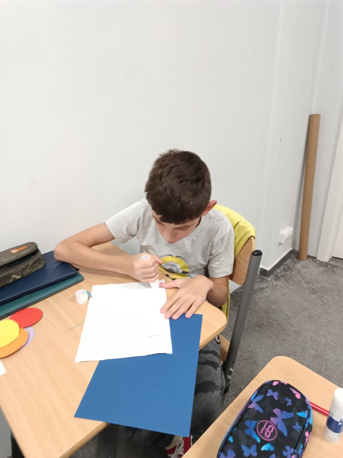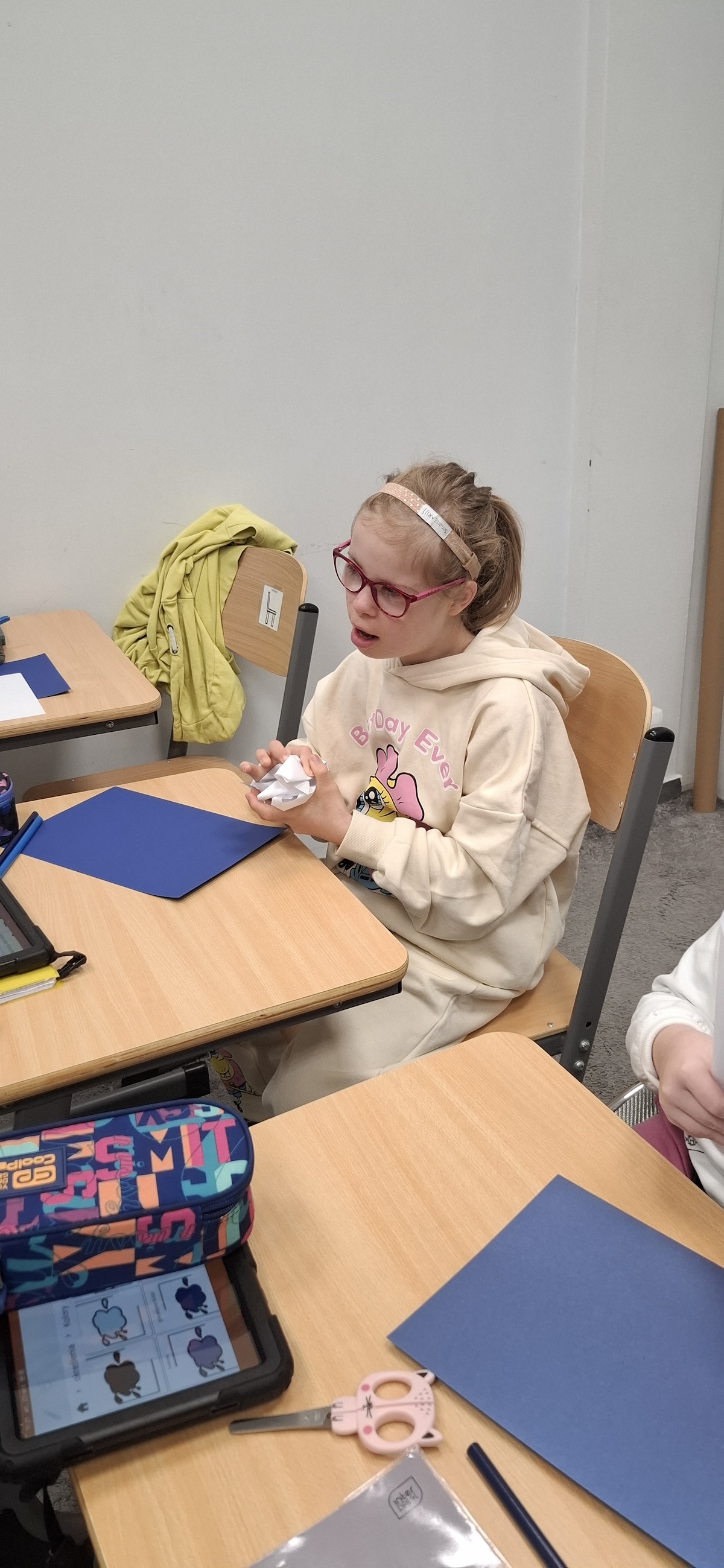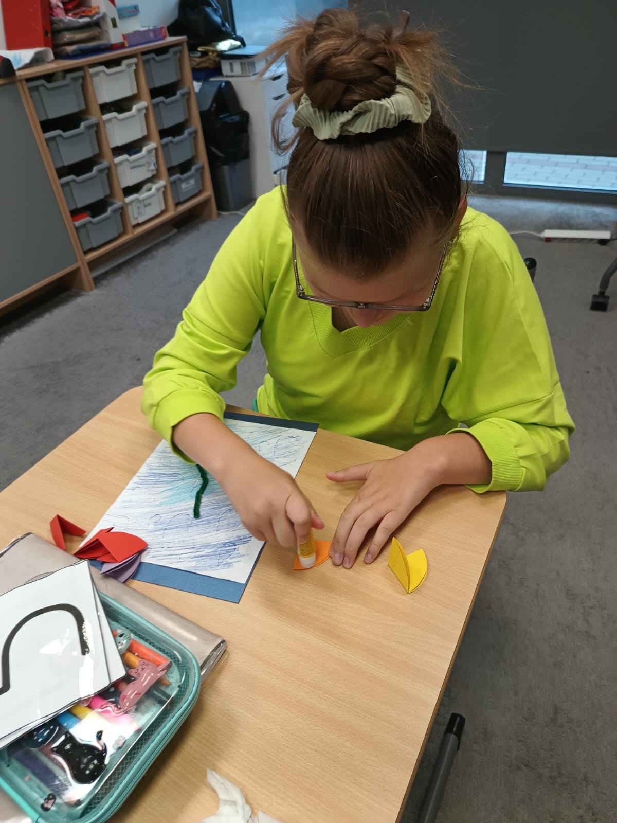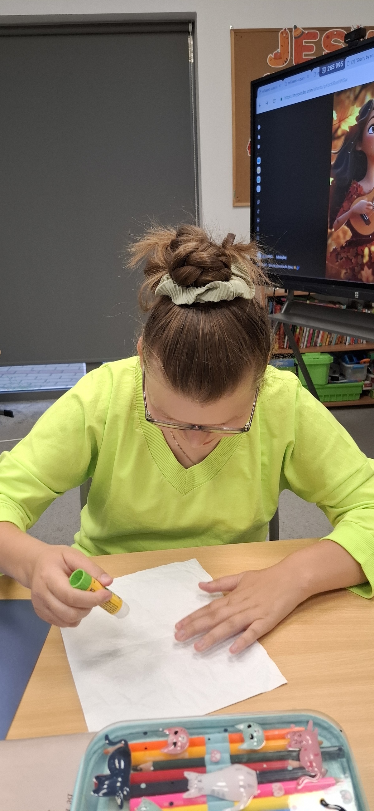 W tygodniu o tematyce Jesieni, uczniowie oddziału „I” w ramach zajęć rozwijających kreatywność wykonali pracę plastyczną „ Jesienna pogoda” wykonując ciekawą techniką „deszcz”, a na nim kolorowe parasolki z kółek. Podczas zajęć uczniowie utrwalali wiadomości dotyczące jesiennej pogody, kształt koła, pojęcie połowy, ćwiartki oraz kolory.