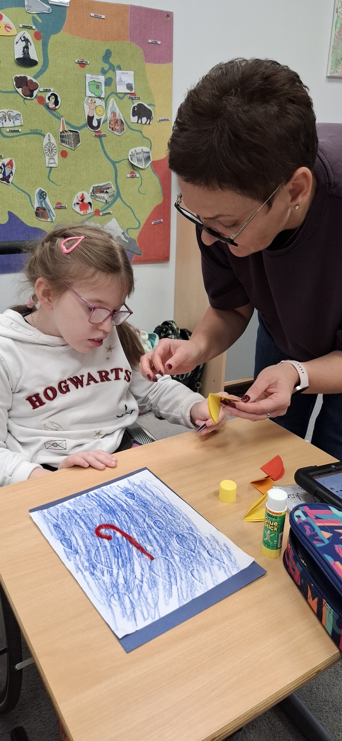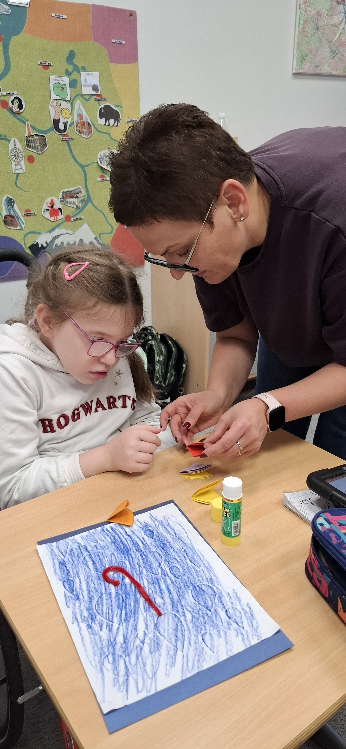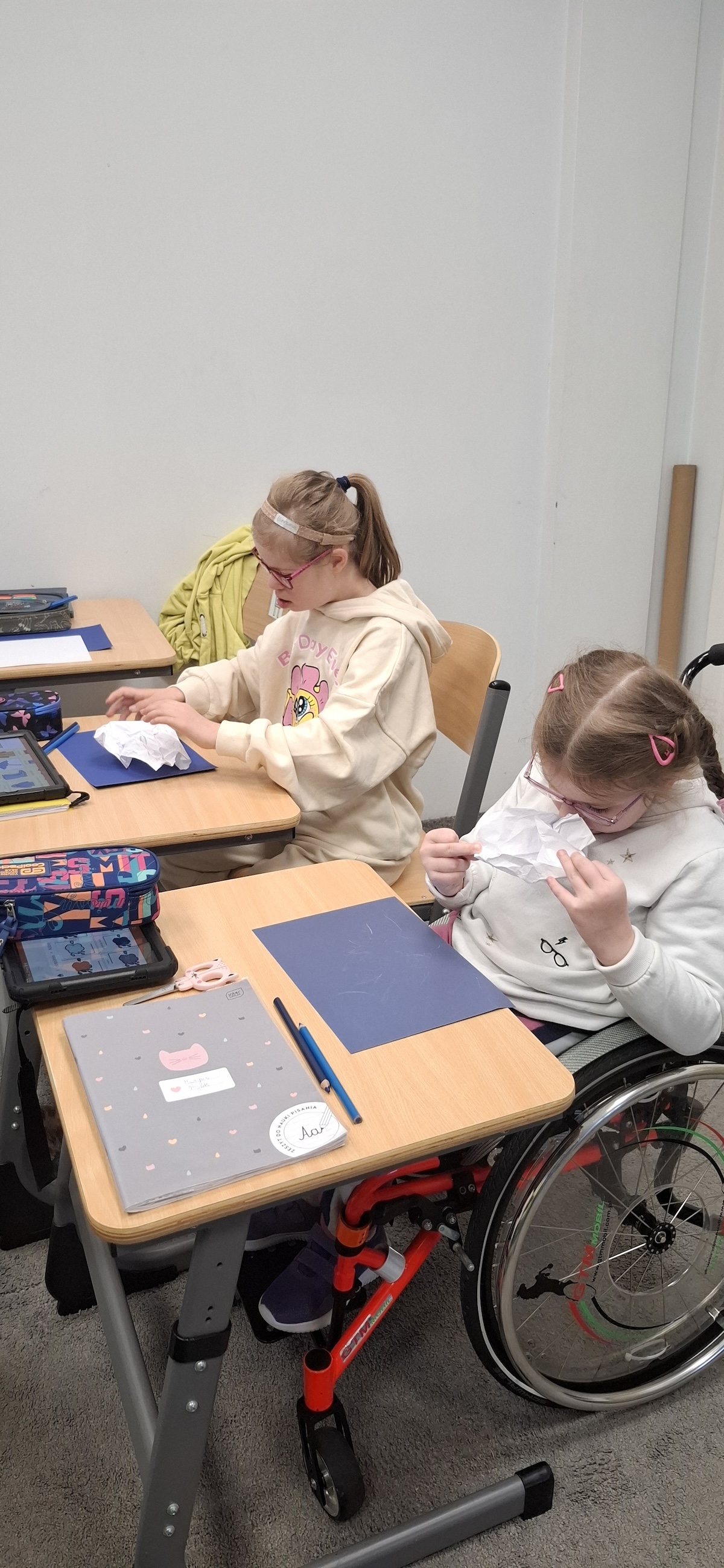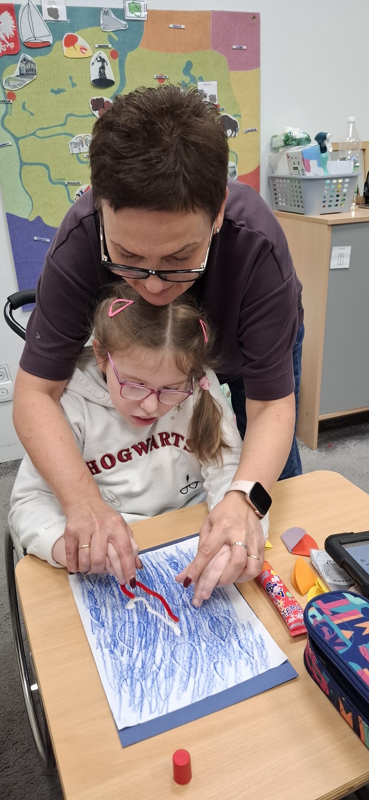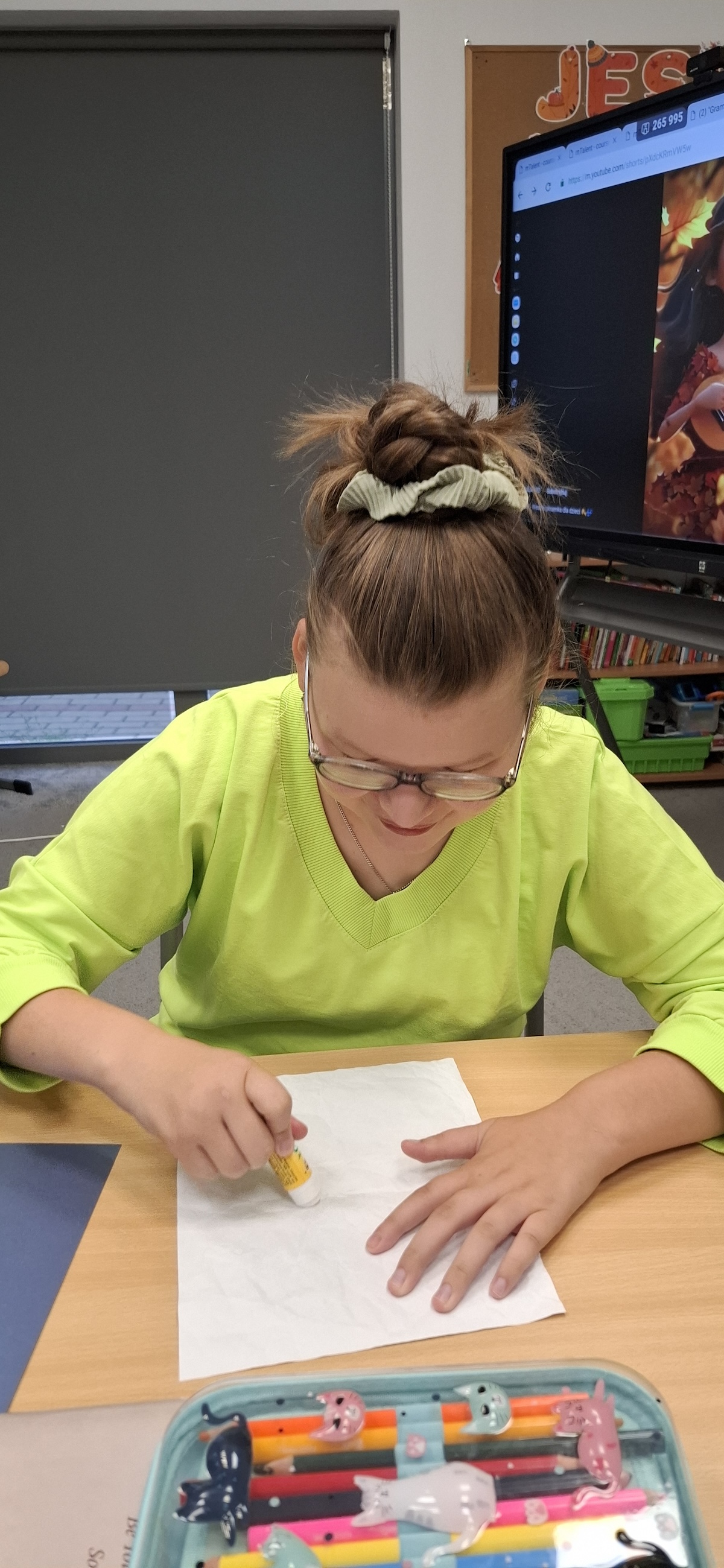 W tygodniu o tematyce Jesieni, uczniowie oddziału „I” w ramach zajęć rozwijających kreatywność wykonali pracę plastyczną „ Jesienna pogoda” wykonując ciekawą techniką „deszcz”, a na nim kolorowe parasolki z kółek. Podczas zajęć uczniowie utrwalali wiadomości dotyczące jesiennej pogody, kształt koła, pojęcie połowy, ćwiartki oraz kolory.