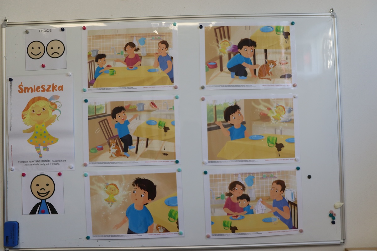 W naszej szkole rozpoczęliśmy projekt edukacyjny „Czuciaki z Krainy Emocji” - polegający na poznawaniu emocji jedna po drugiej Za nami pierwsza z emocji - radość. Odwiedziliśmy wyspę radości, a w tej podróży towarzyszyła nam Śmieszka! Jaka jest Śmieszka? Jej kolory świetnie ukazują uczucia wywoływane przez radość! Śmieszka przybliżyła nam czym jest radość, a pomogła nam w tym opowieść o Antku, który cieszył się na wieść o nowym członku rodziny. Rozmawialiśmy o tym, że każdy człowiek inaczej okazuję swoją radość, wypełnialiśmy dedykowane zeszyty i kolorowaliśmy sylwetę Śmieszki. A jak Wy okazujecie radość?