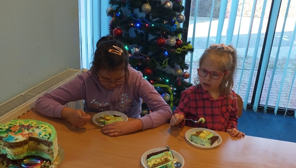 Po części warsztatowej dla dziadków czekał tort oraz słodki poczęstunek. Dzieci oczywiście też skorzystały ze słodkości. Spotkanie przebiegło w ciepłej, rodzinnej atmosferze i było piękną okazją do integracji oraz wspólnego świętowania.