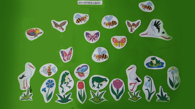 dydaktyczną. Uczniowie pracowali z kolorowymi, papierowymi sylwetami ptaków,