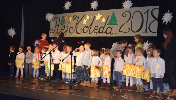„Hej kolęda, kolęda…” pod takim hasłem 10 stycznia 2018 roku w RCKB odbyło się spotkanie kolędnicze zorganizowane przez naszą szkołę. Jego celem było kultywowanie tradycji związanych ze świętami Bożego Narodzenia oraz integracja wszystkich uczestników. Do wspólnego kolędowania nasi uczniowie zaprosili kolegów i koleżanki z brzeskich przedszkoli publicznych i prywatnych, jak również wychowanków Domu Pomocy Społecznej w Brzesku oraz podopiecznych Warsztatu Terapii Zajęciowej. Każda z grup zaprezentowała kolędę lub pastorałkę, niosącą głębokie przesłanie, które trafiło do szerokiego grona publiczności. Nasi uczniowie przedstawili również program artystyczny – jasełka zatytułowane „Do stajenki”. Całemu spotkaniu towarzyszyła miła, świąteczna atmosfera.