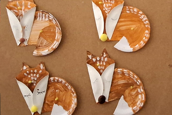 Kolejnym etapem była praca plastyczna uczniów oddziału II. Z papierowych talerzyków powstały kolorowe misie, które dzieci malowały farbami, a następnie doklejały uszy, łapki, oczka, buźkę, szelki z papierowych prostokątów oraz guziki. Całości towarzyszyły radosne piosenki z dziecięcego repertuaru o misiach, które dodatkowo wzmacniały pozytywne emocje i zaangażowanie uczniów.